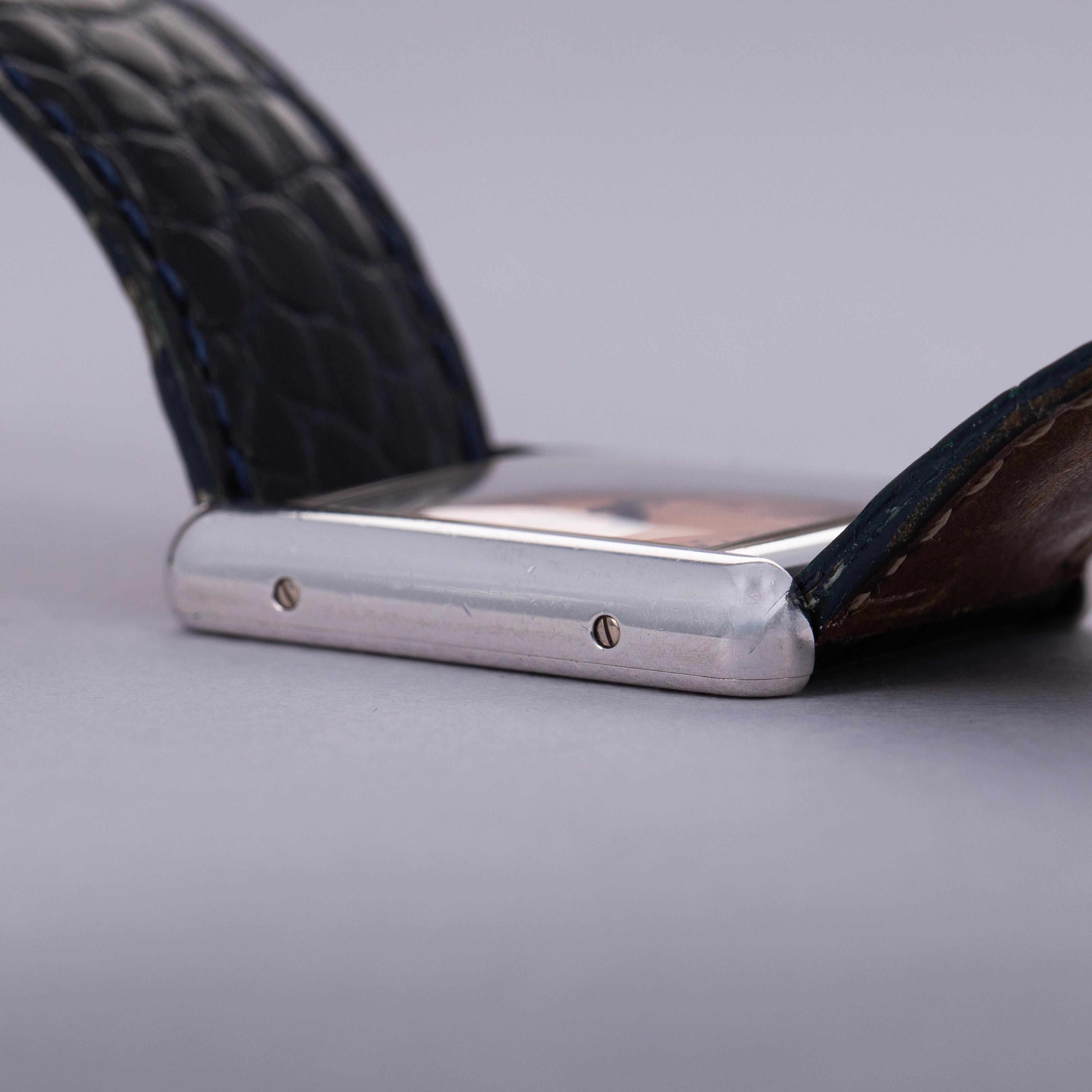 Introduced in the early 1980s following the success of Cartier’s collaboration with Dupont on a collection of co-branded lighters that ended up securing Cartier’s financial future, the Tank Must de Cartier collection is a diffusion line that leveraged the Cartier Tank Louis’ iconic silhouette and Cartier’s legendary branding in a more affordable package so as to offer customers the same look as before but at a more palatable price tag. While the Tank Louis, which the Tank Must is based on, is made of 18kt yellow gold, the Tank Must collection primarily uses a sterling silver case that is then electroplated in 18kt yellow gold, resulting in a far more economical watch without sacrificing aesthetics. Offered here, we have the Must de Cartier Tank ref. 2414 in bare sterling silver, with a stunning salmon dial that was launched in 1999 as a limited edition release of 100 pieces. Celebrating the 100th anniversary of Cartier Paris’ flagship location on 13 rue de la Paix, which is referenced by the number 13 that finds itself at 12 o’clock on the ref. 2414’s dial, this watch serves as a reminder of Cartier’s single-most important location.