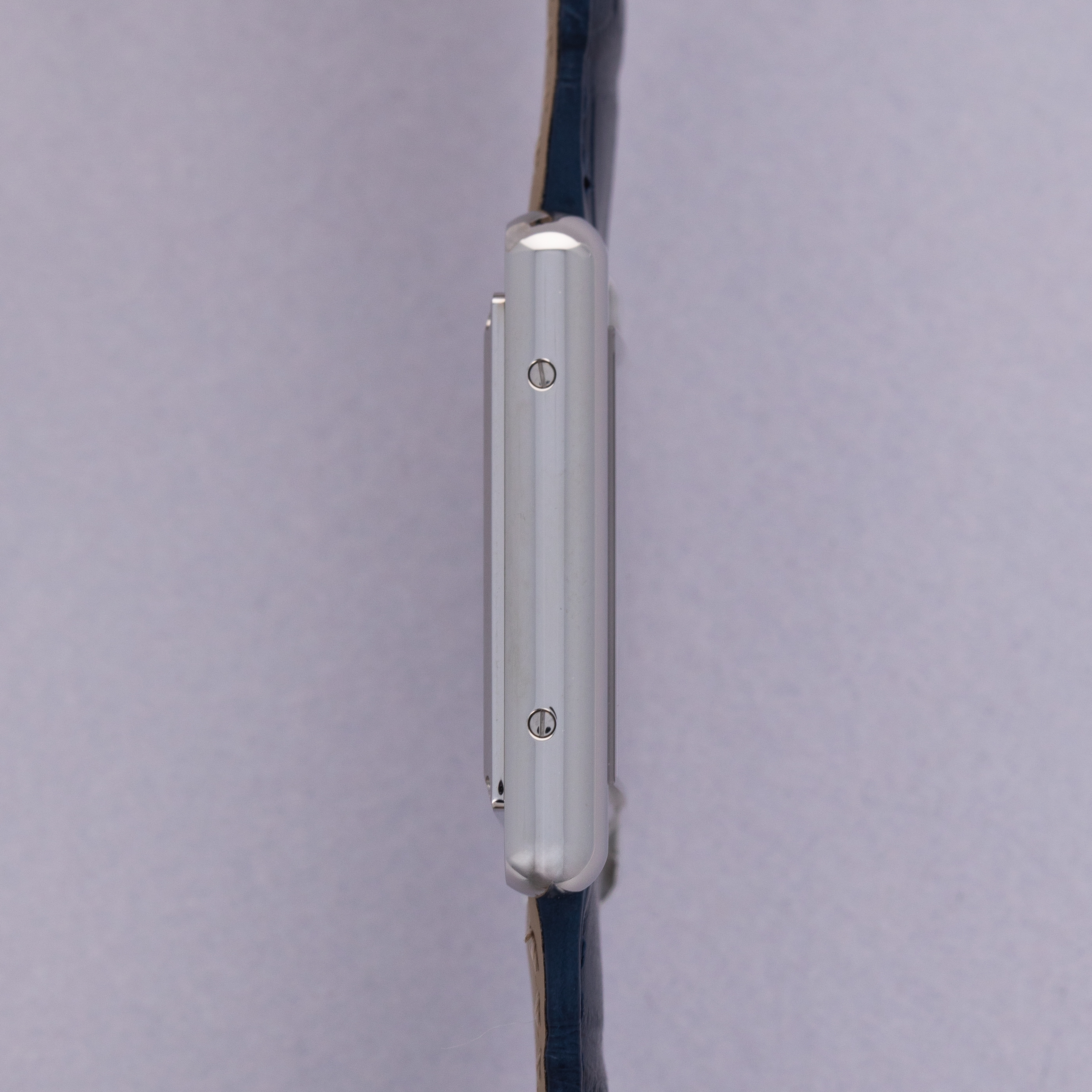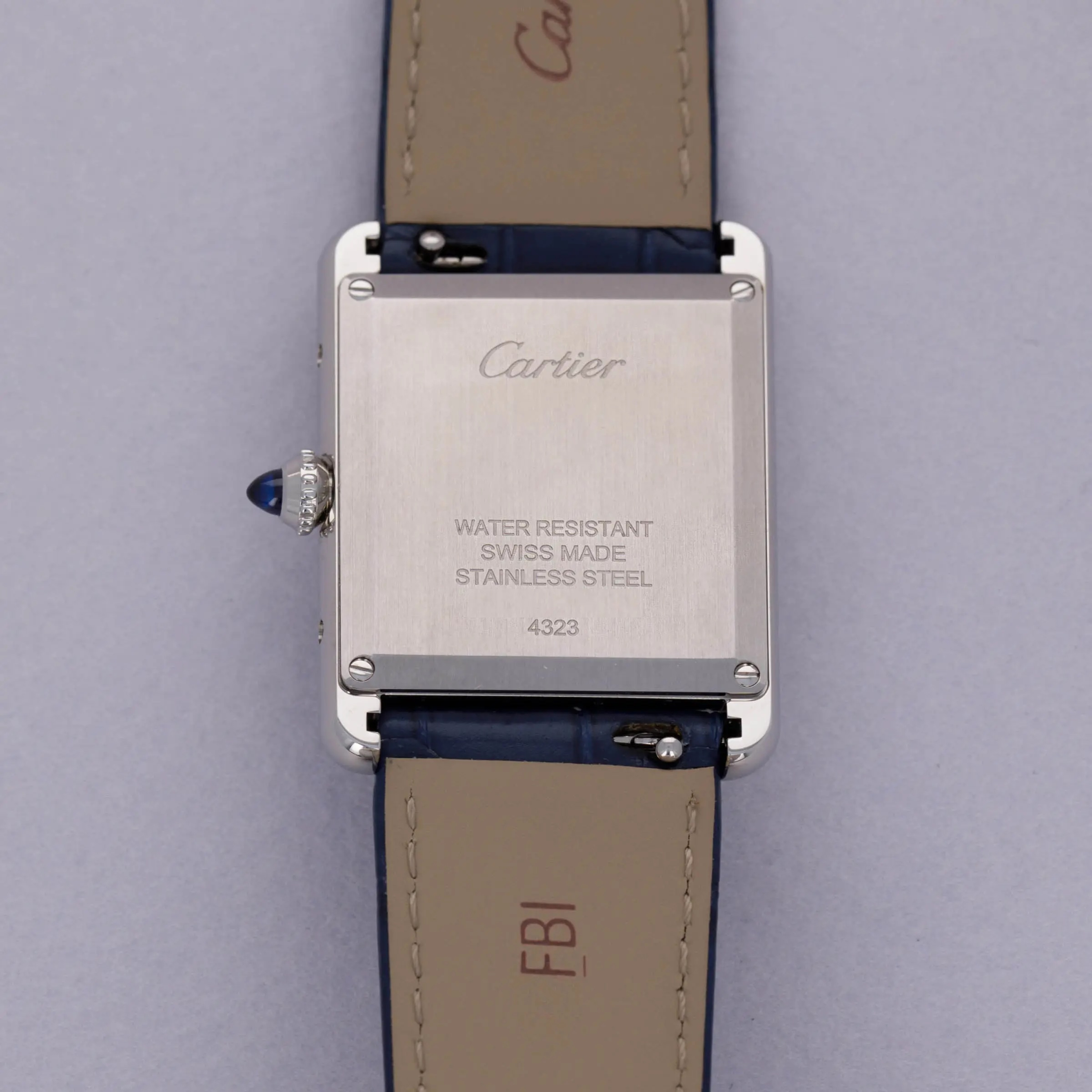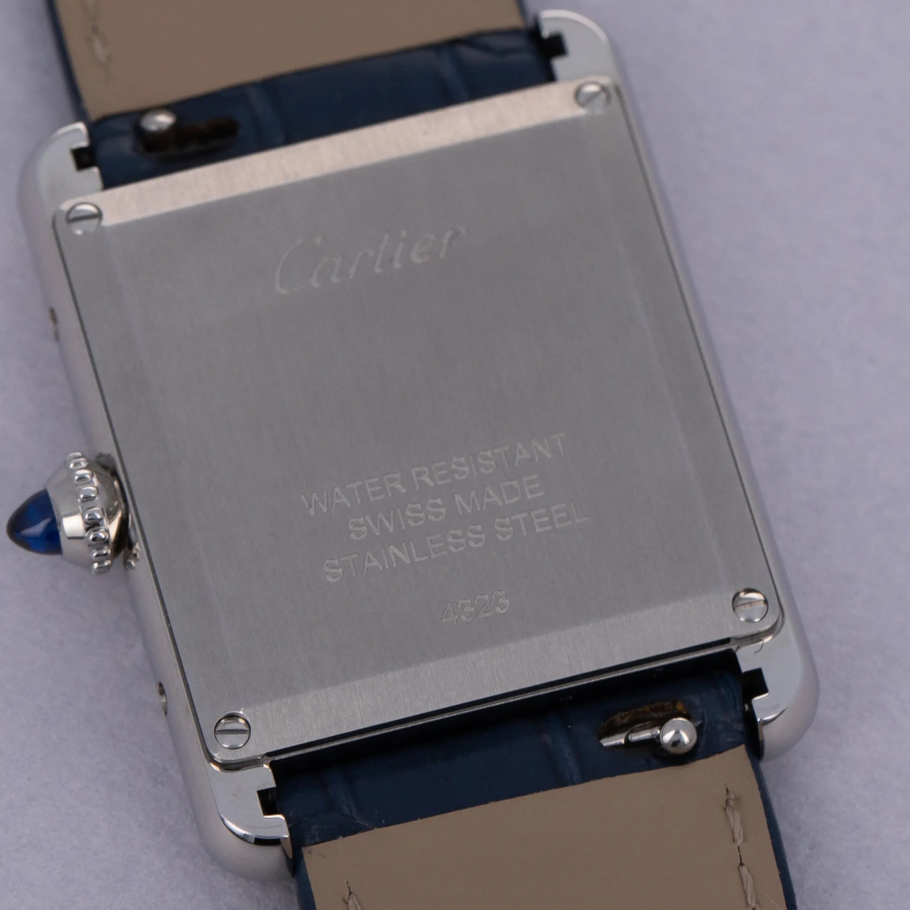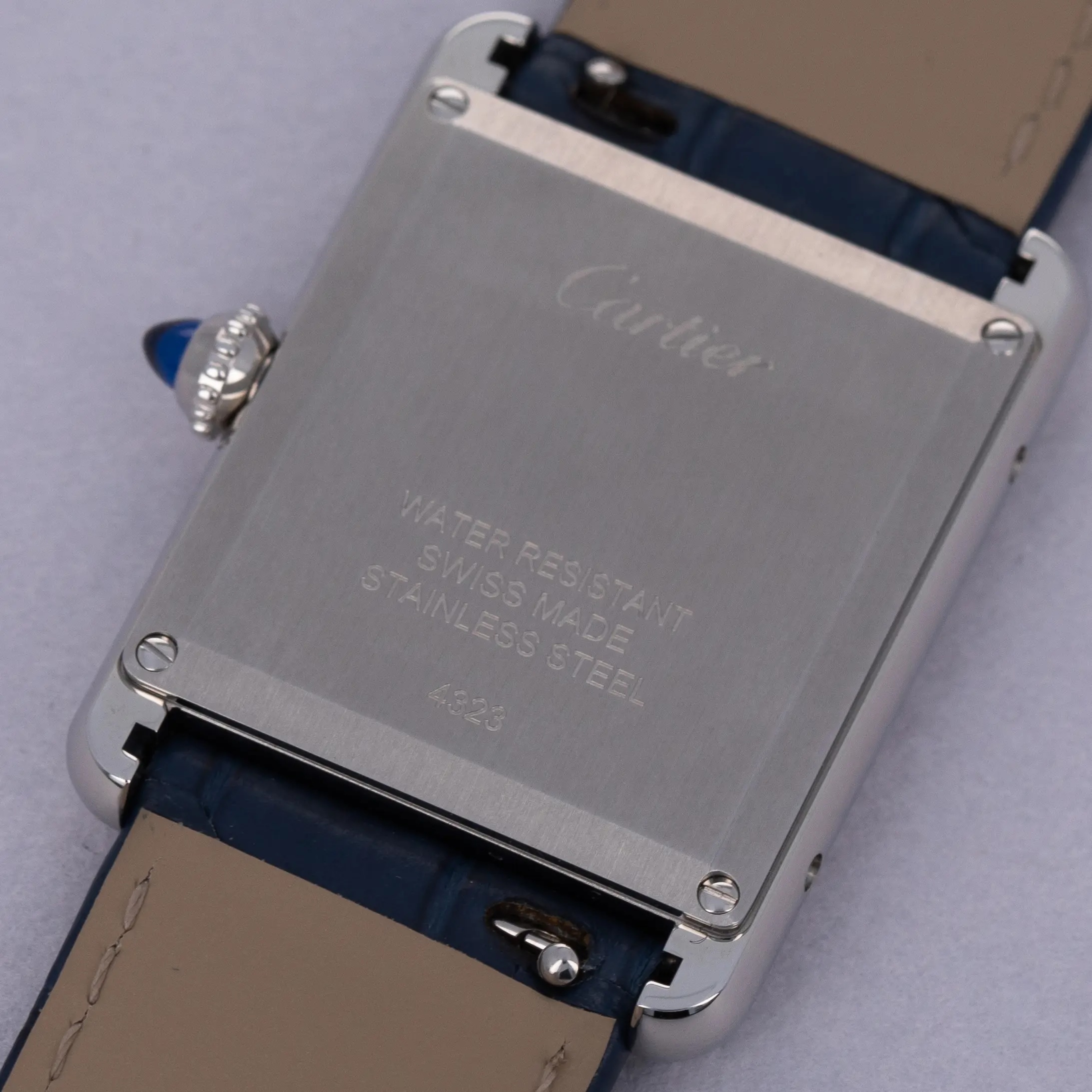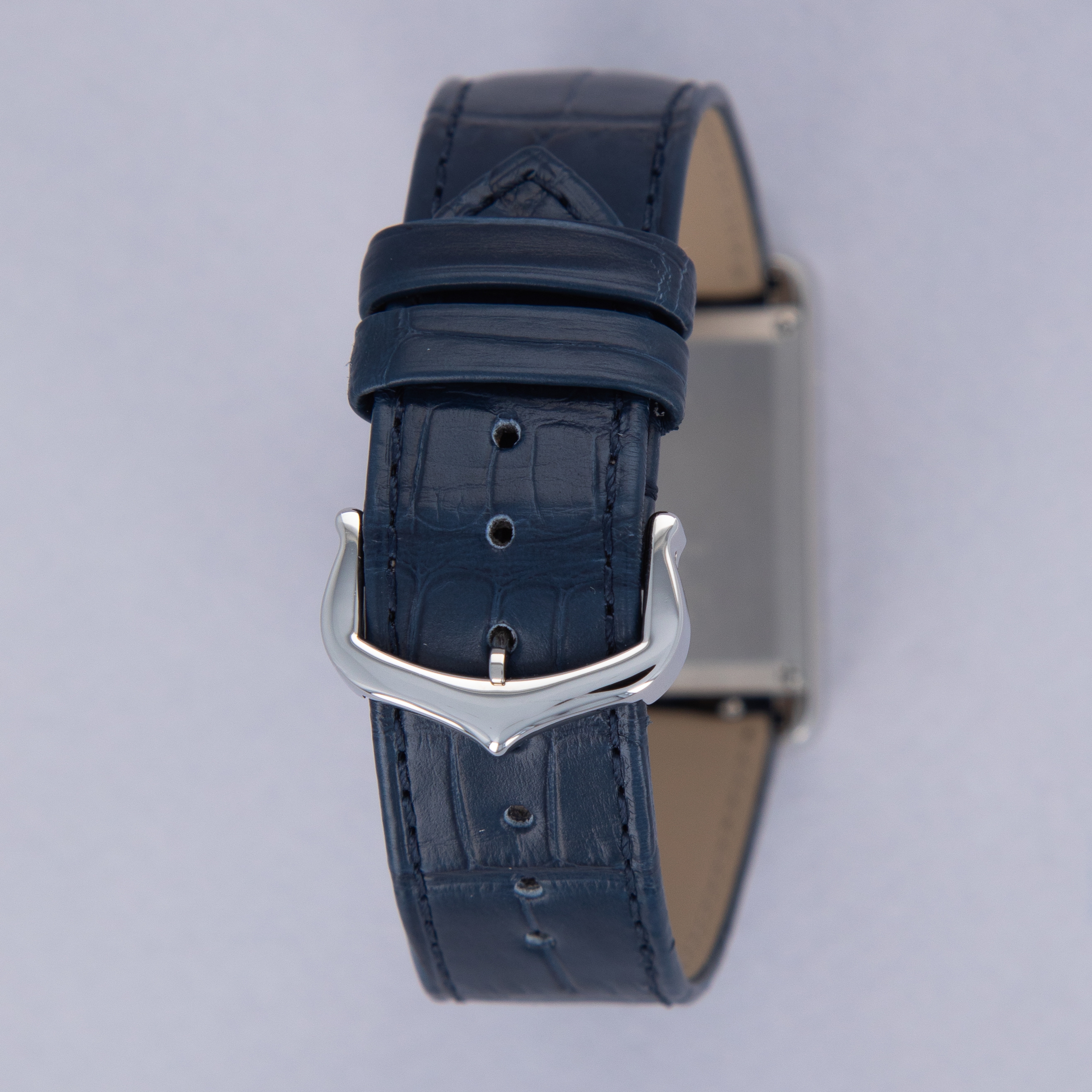 Featuring a blue lacquer dial free from any indices or inscriptions beyond Cartier's name at 12 o'clock, the ref. WSTA0055 is incredibly understated and monochromatic thanks to its dial and strap perfectly matching Cartier's signature sapphire cabochon.