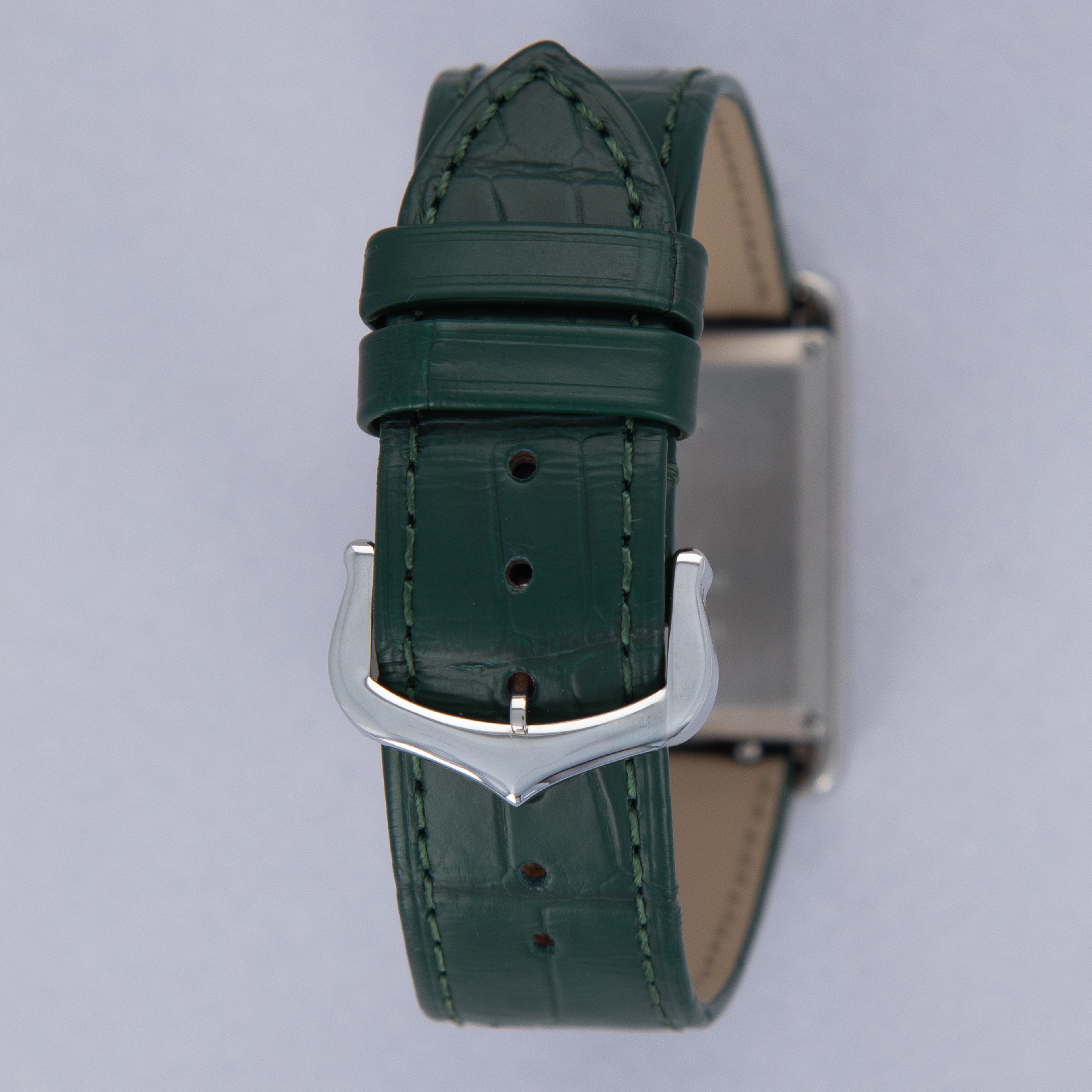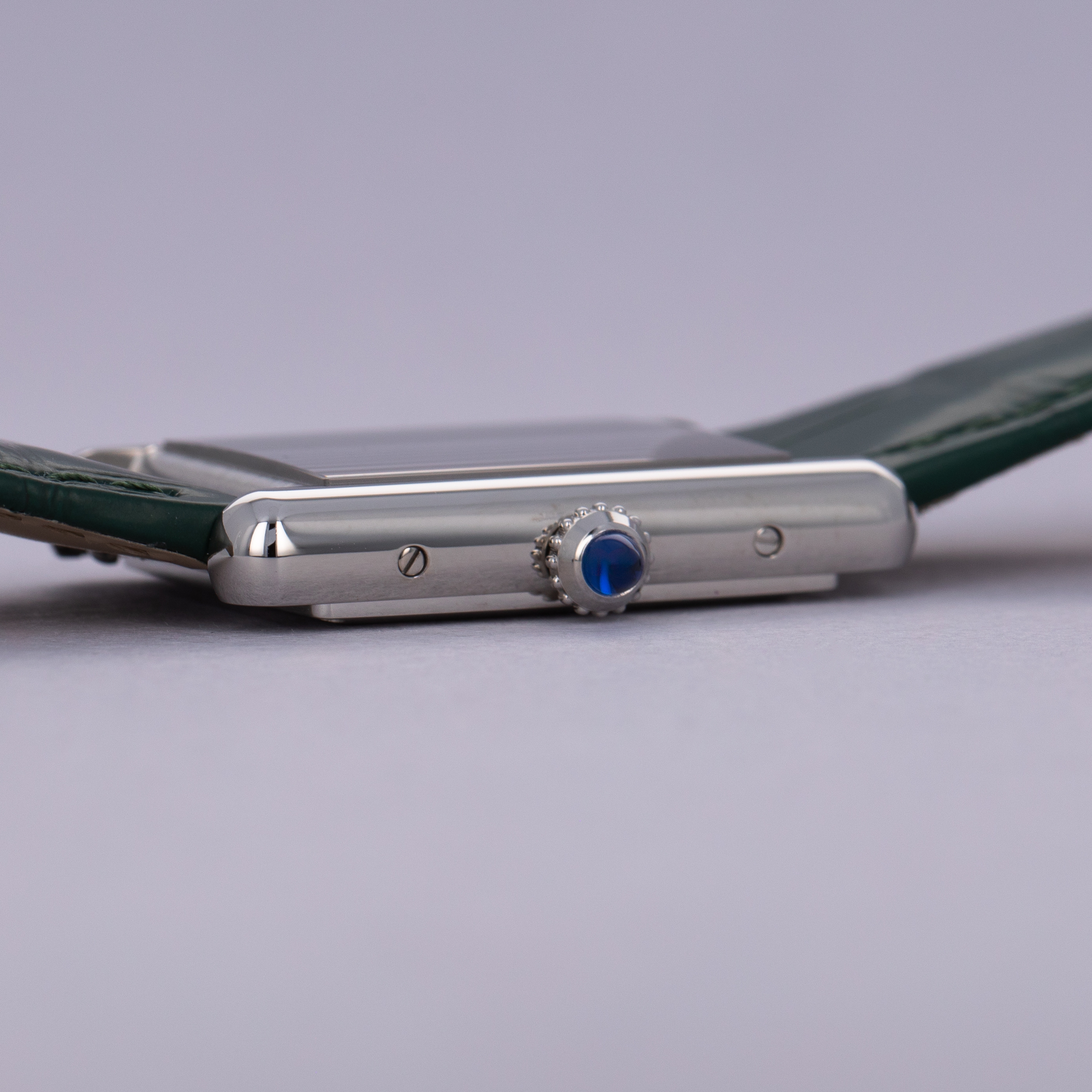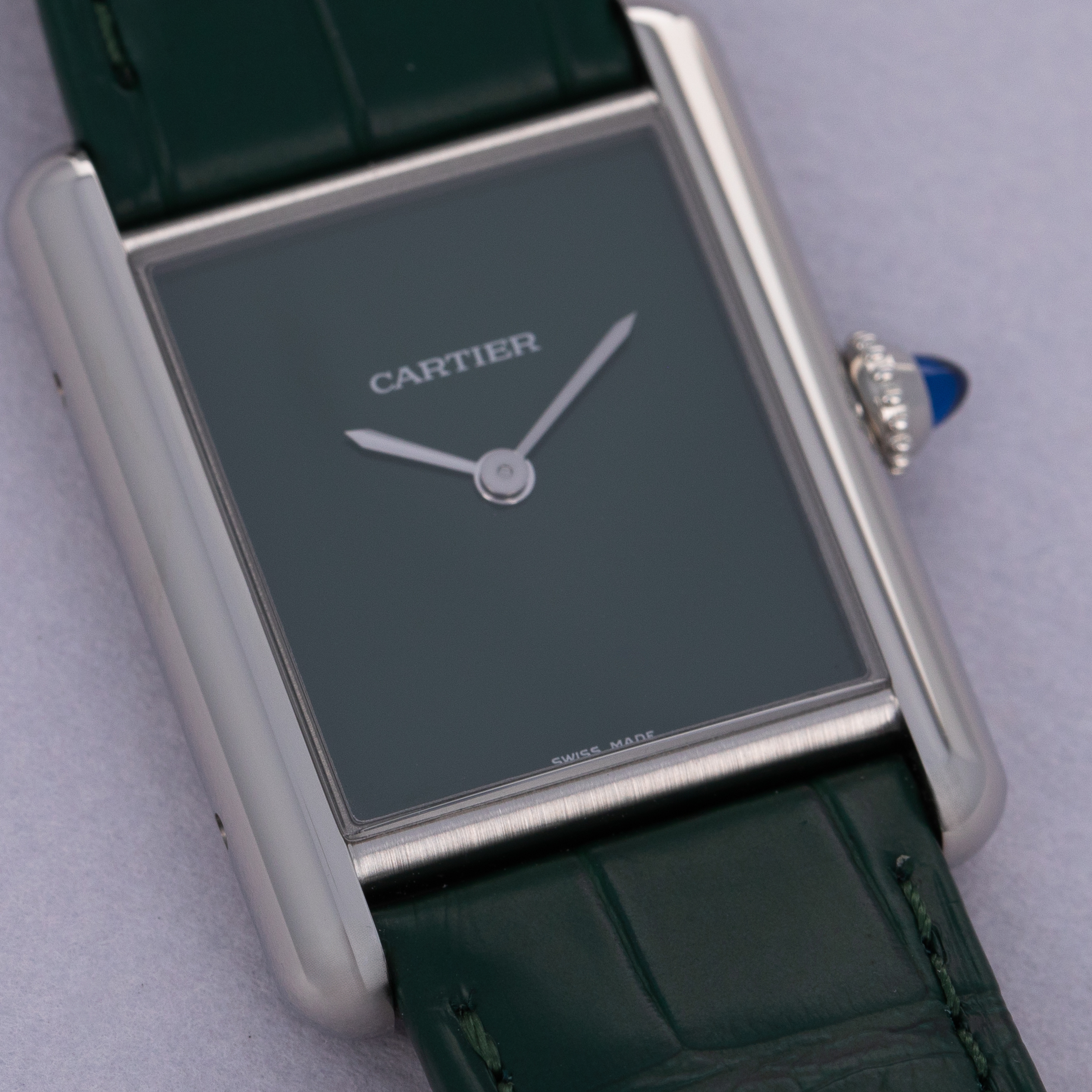 Featuring a green lacquer dial free from any indices or inscriptions beyond Cartier's name at 12 o'clock, the ref. WSTA0056 is incredibly understated.
