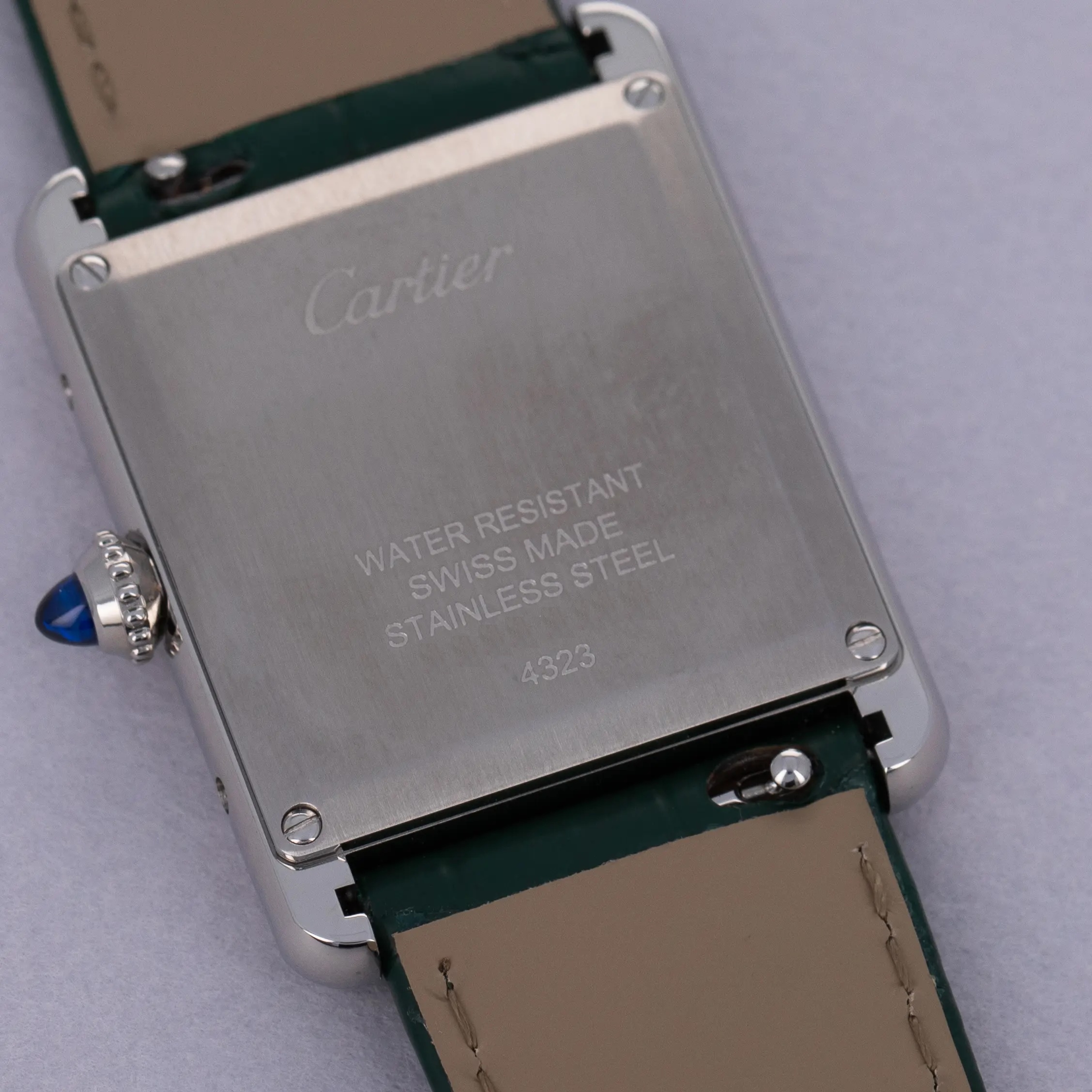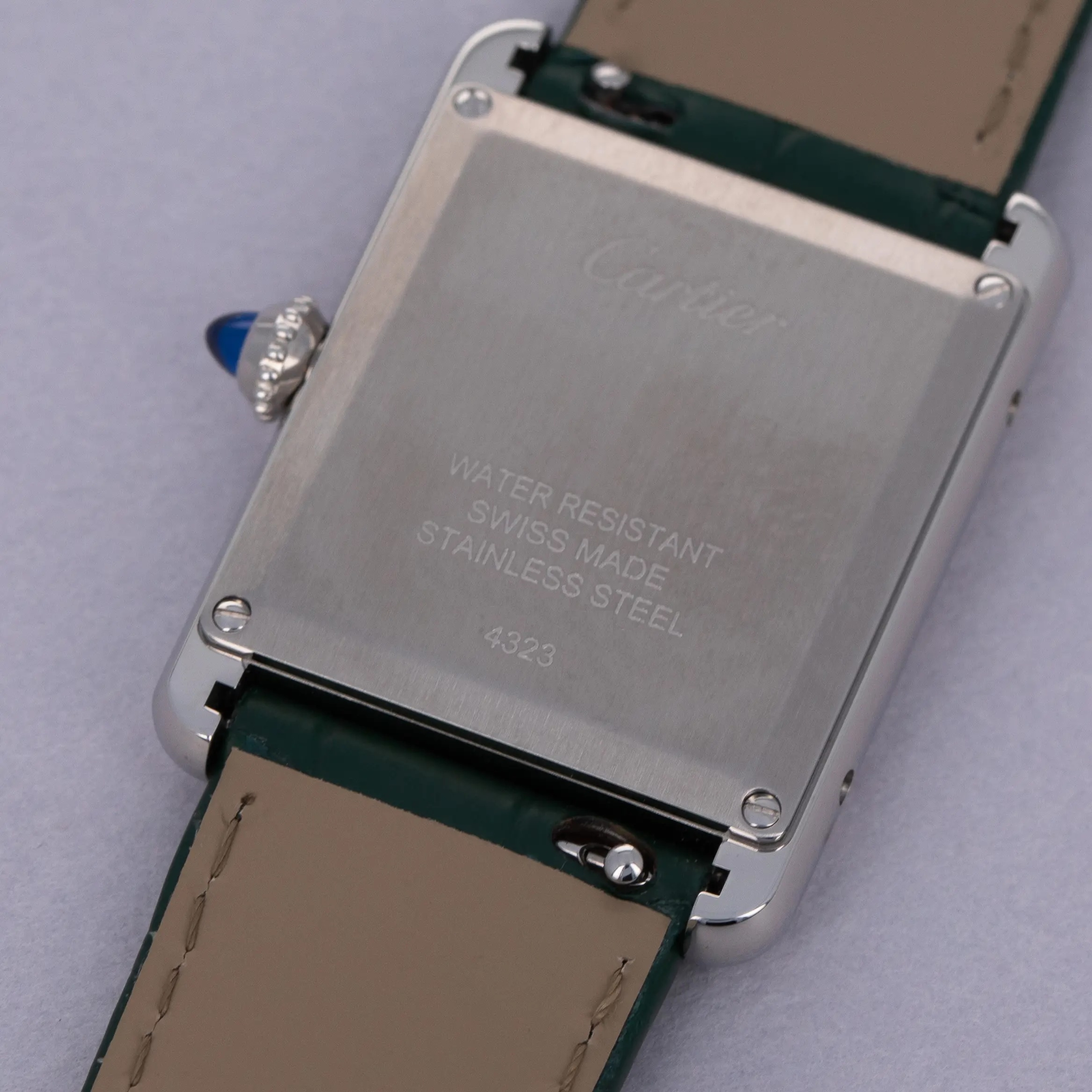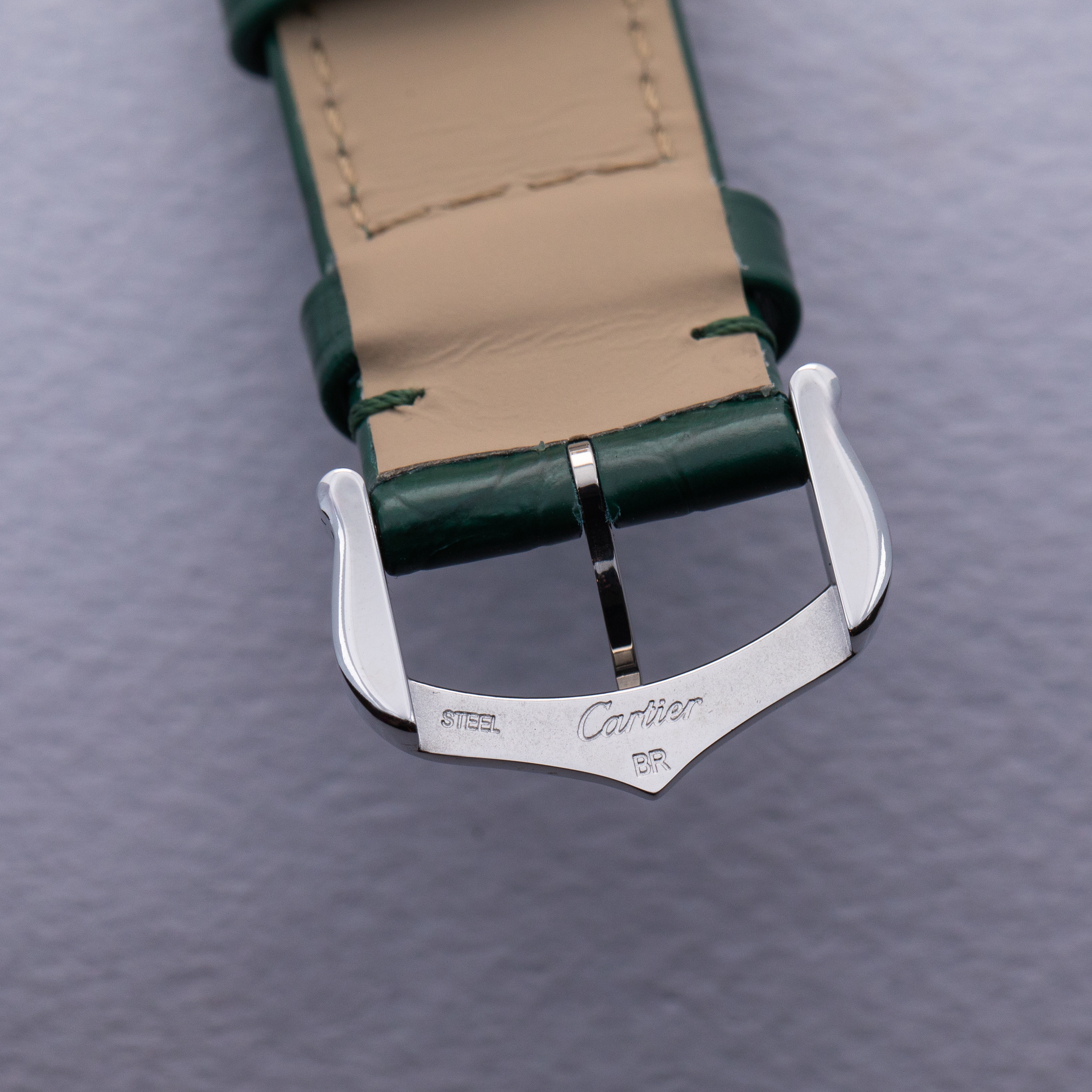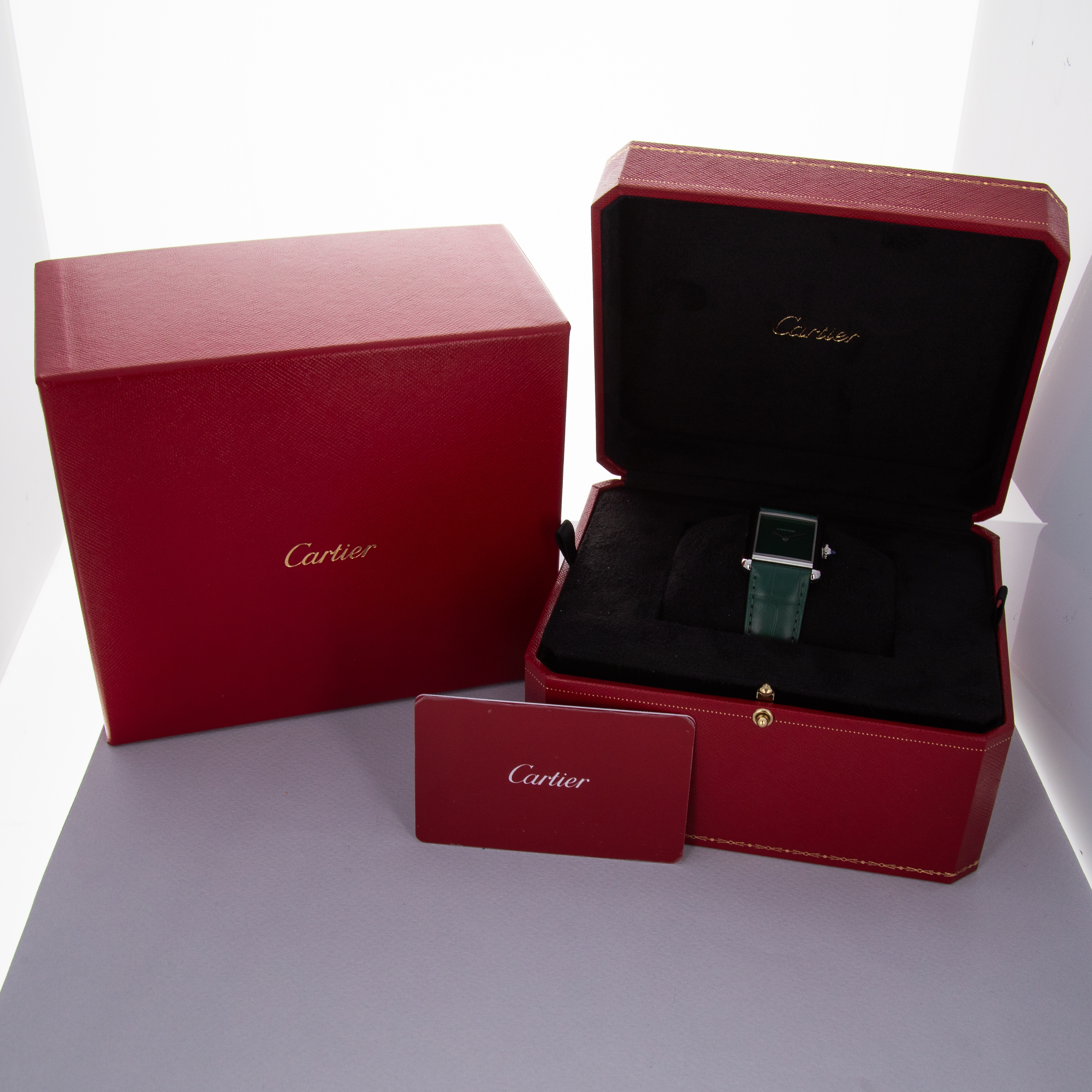 Featuring a green lacquer dial free from any indices or inscriptions beyond Cartier's name at 12 o'clock, the ref. WSTA0056 is incredibly understated.