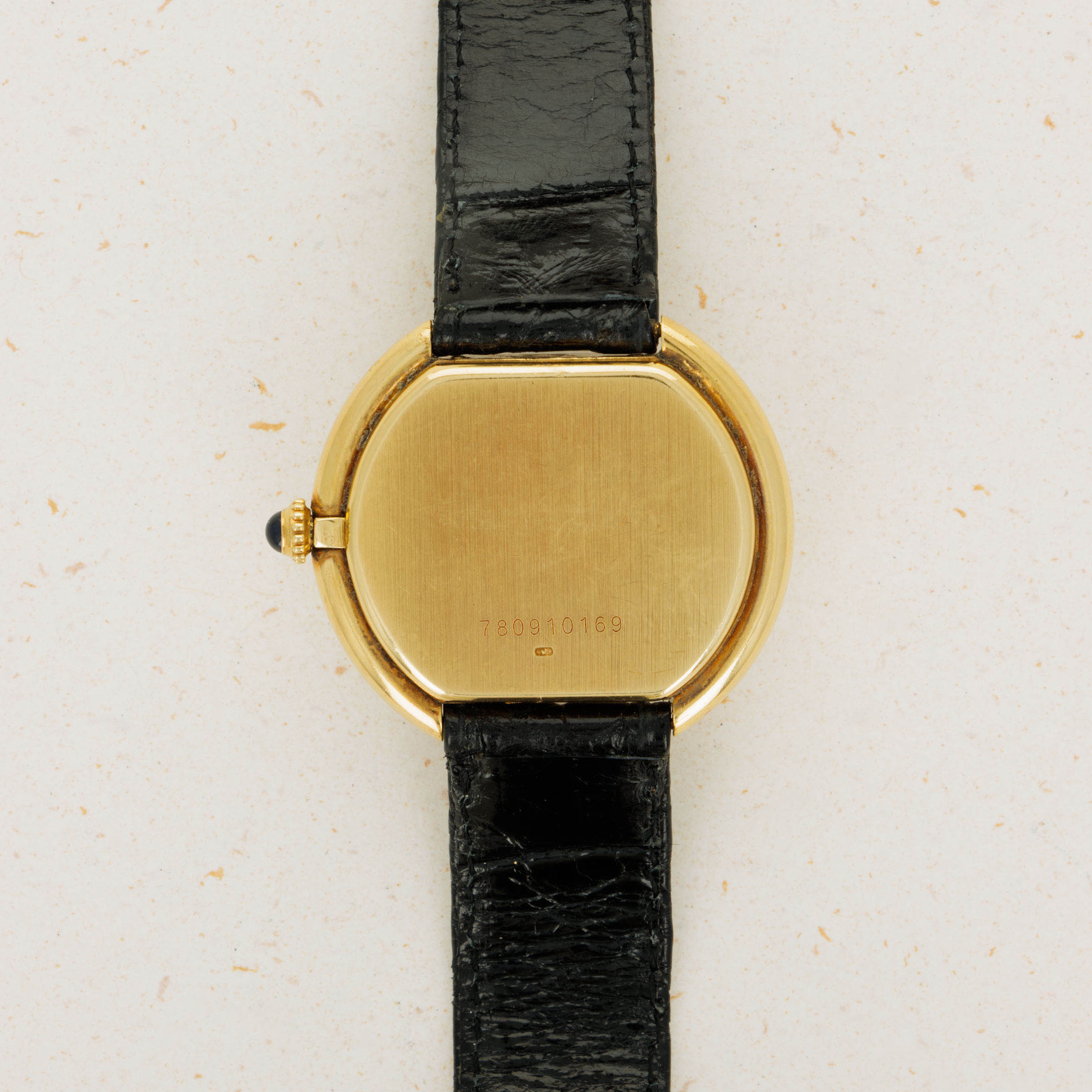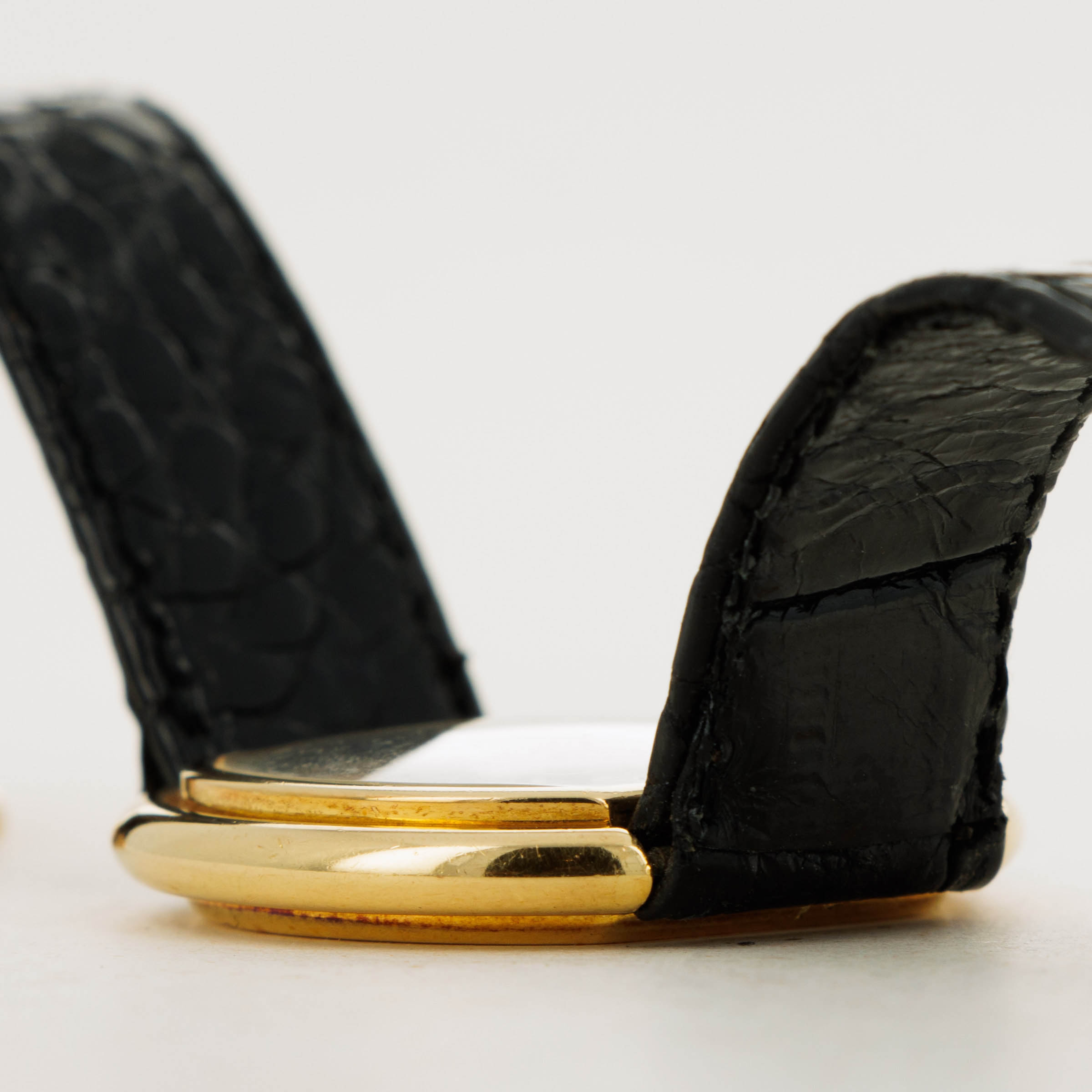 With its squared-off oval shape, the Gondole Ellipse wears neatly on the wrist while still maintaining a distinctive presence on account of its hefty 18kt yellow gold construction, stepped bezel and unique shape.