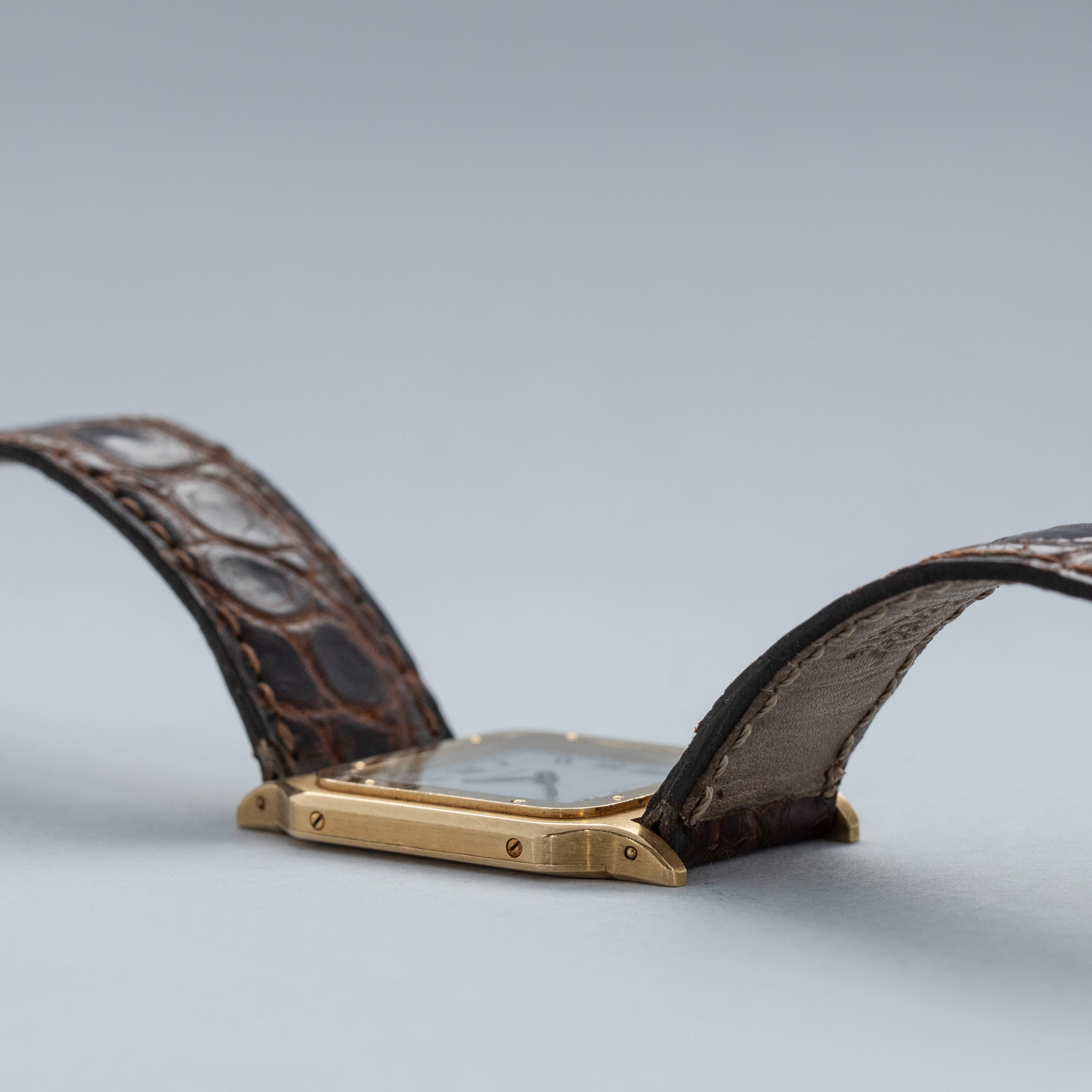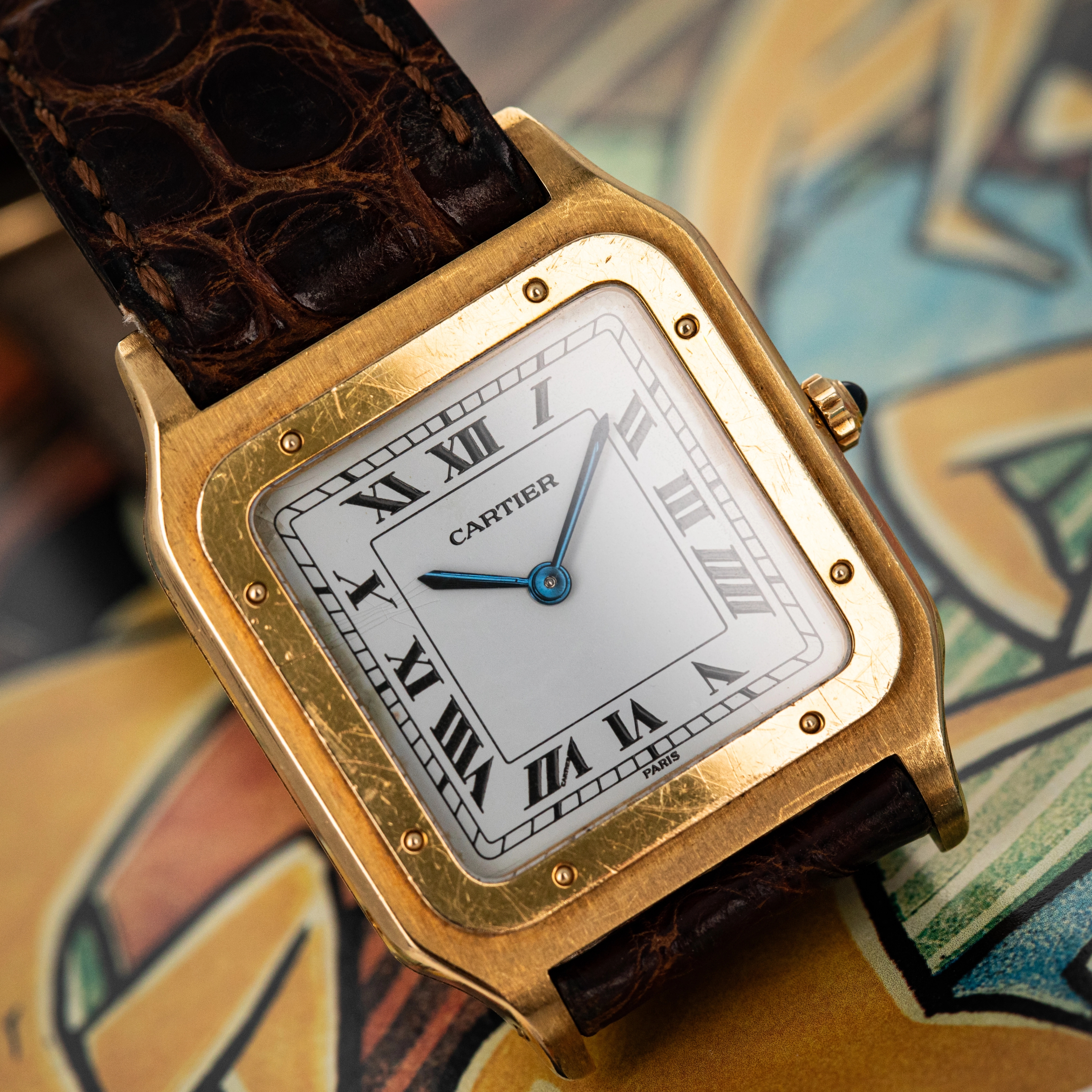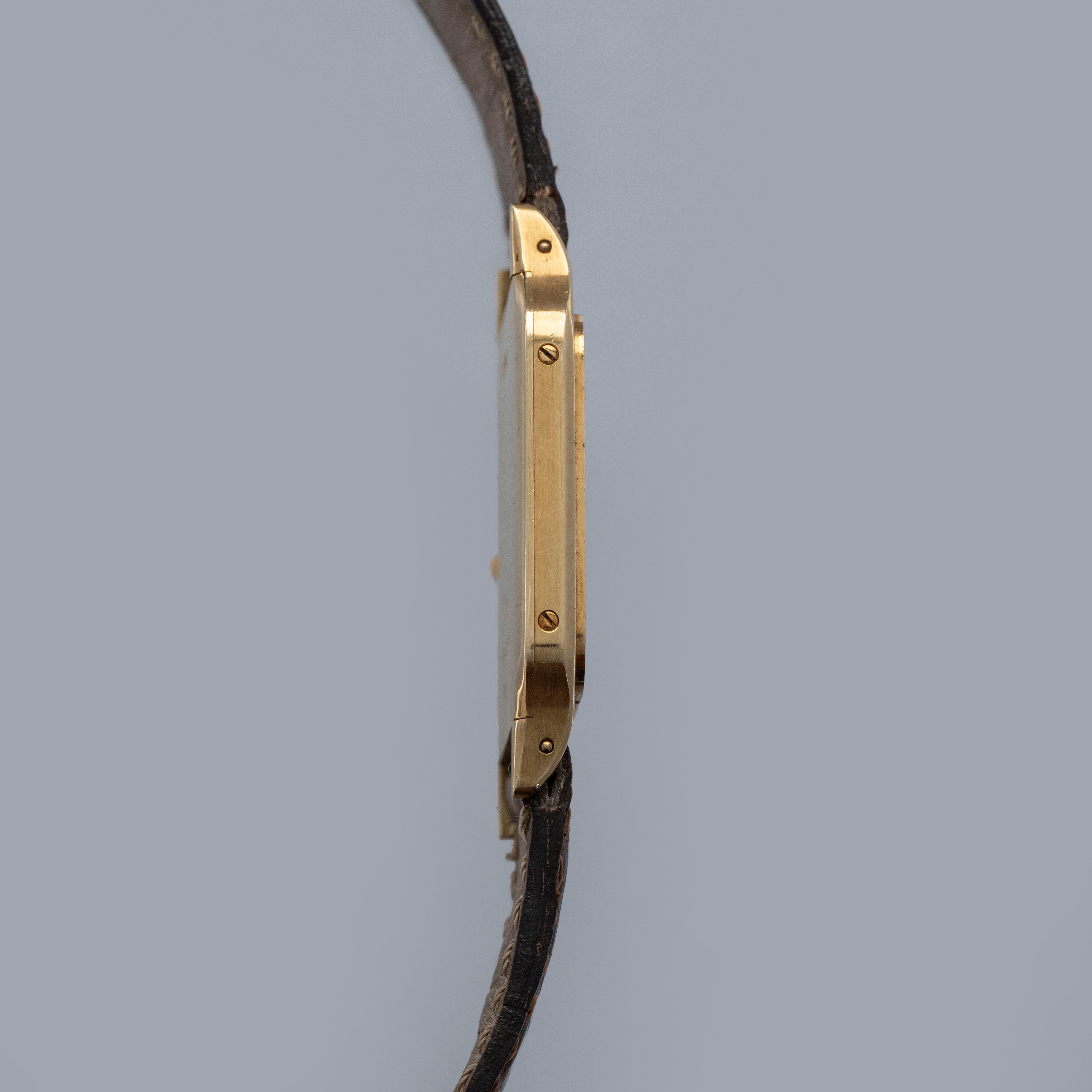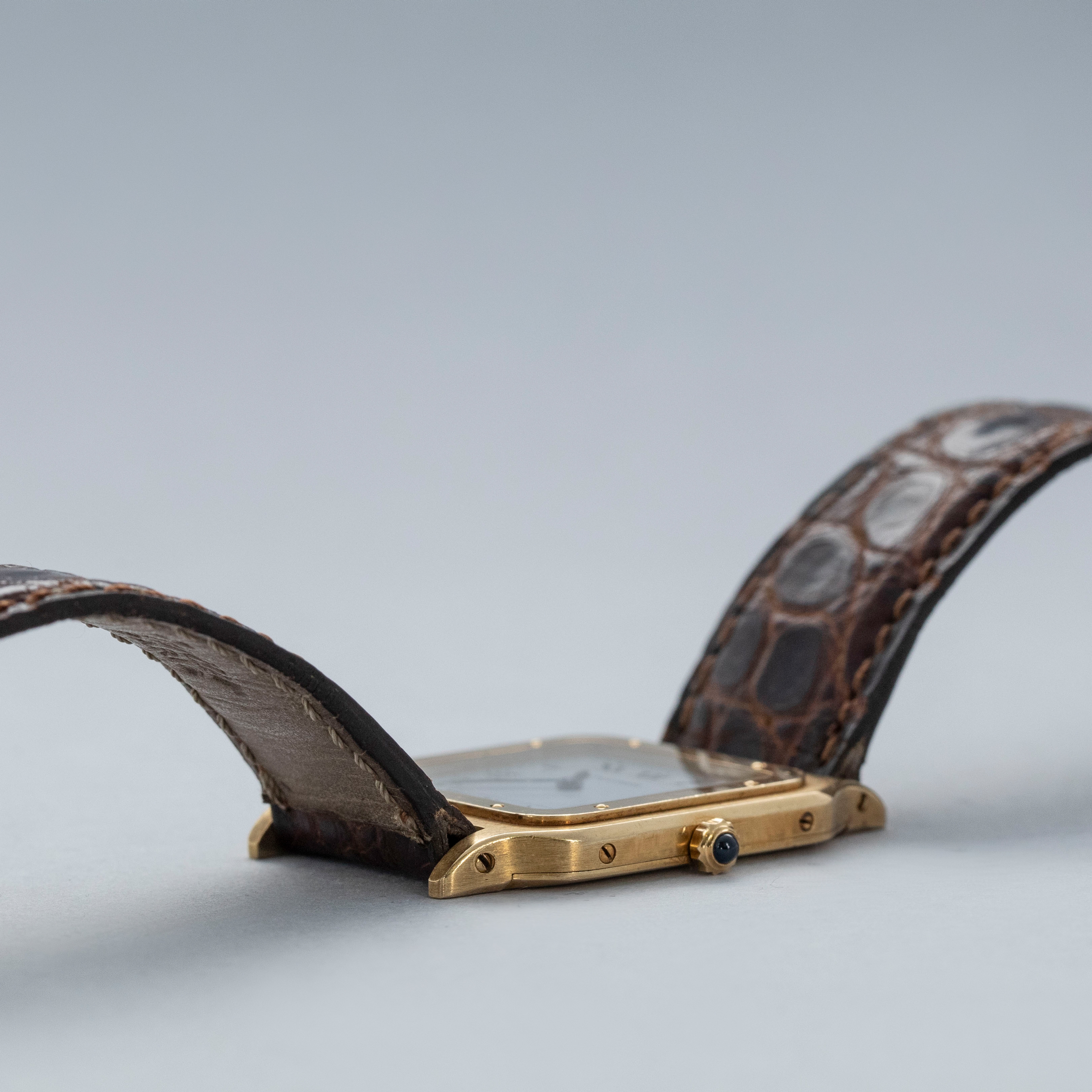 With the aviation industry growing at unprecedented rates, one pioneering Brazilian aviator saw the need for a particular kind of tool - a pilot’s watch. So, this aviator, Alberto Santos-Dumont, went to Louis Cartier in 1904 and asked him to design a watch fit for flight. This watch became the Cartier Santos Dumont, the very first tool watch. Evolving through time as an extensive array of wonderful models, the Santos Dumont has become one of watchmaking’s most iconic designs, and is famed for creating the humble wristwatch as we know it. Offered here as a Santos Dumont variant from the 1980s, the ref. 96054 that we have is known as the "Extra Plate", which means "extra flat" in French, due to its 4.4mm tall case, a result of its ultra-thin manual-wind Frederic Piguet cal. 21 movement.