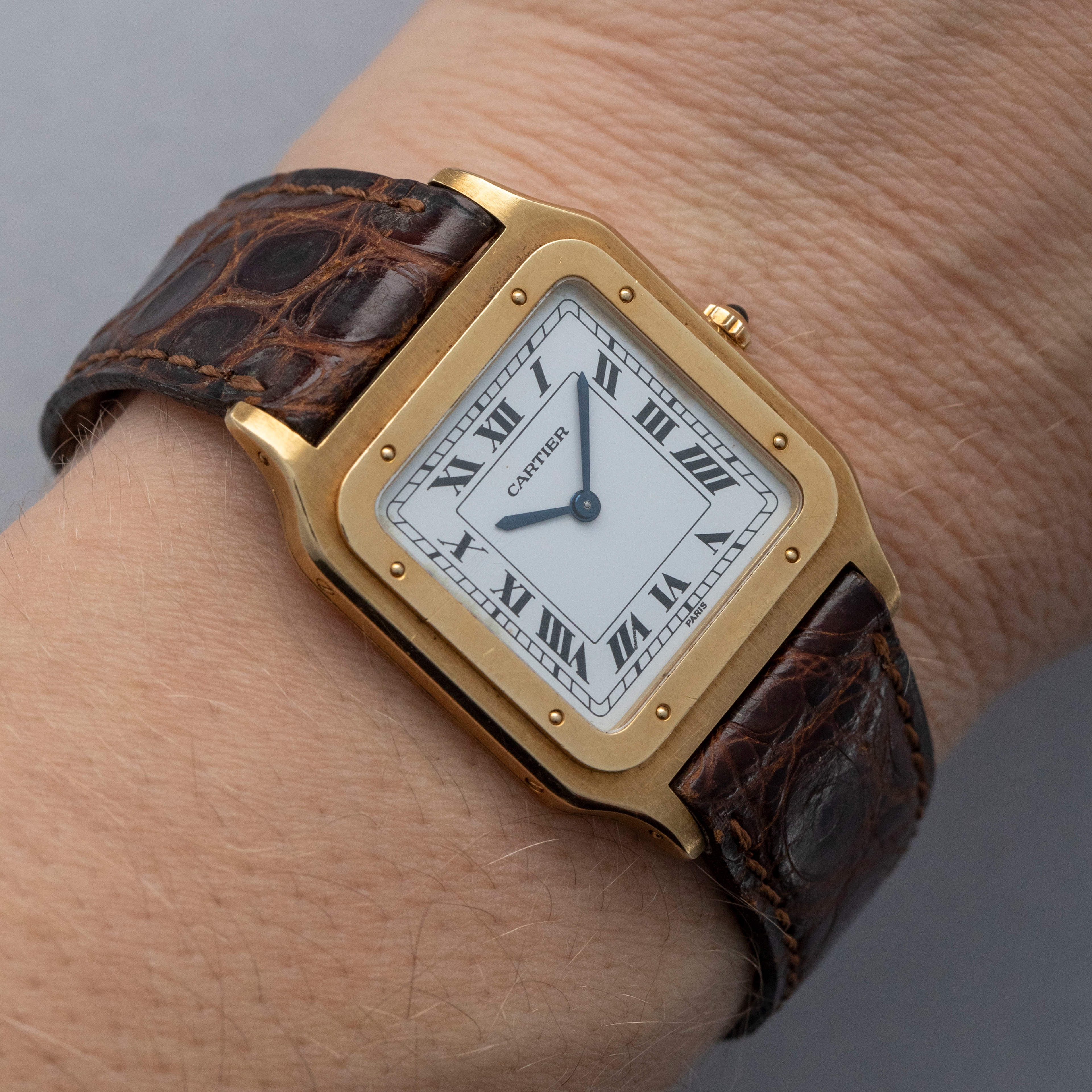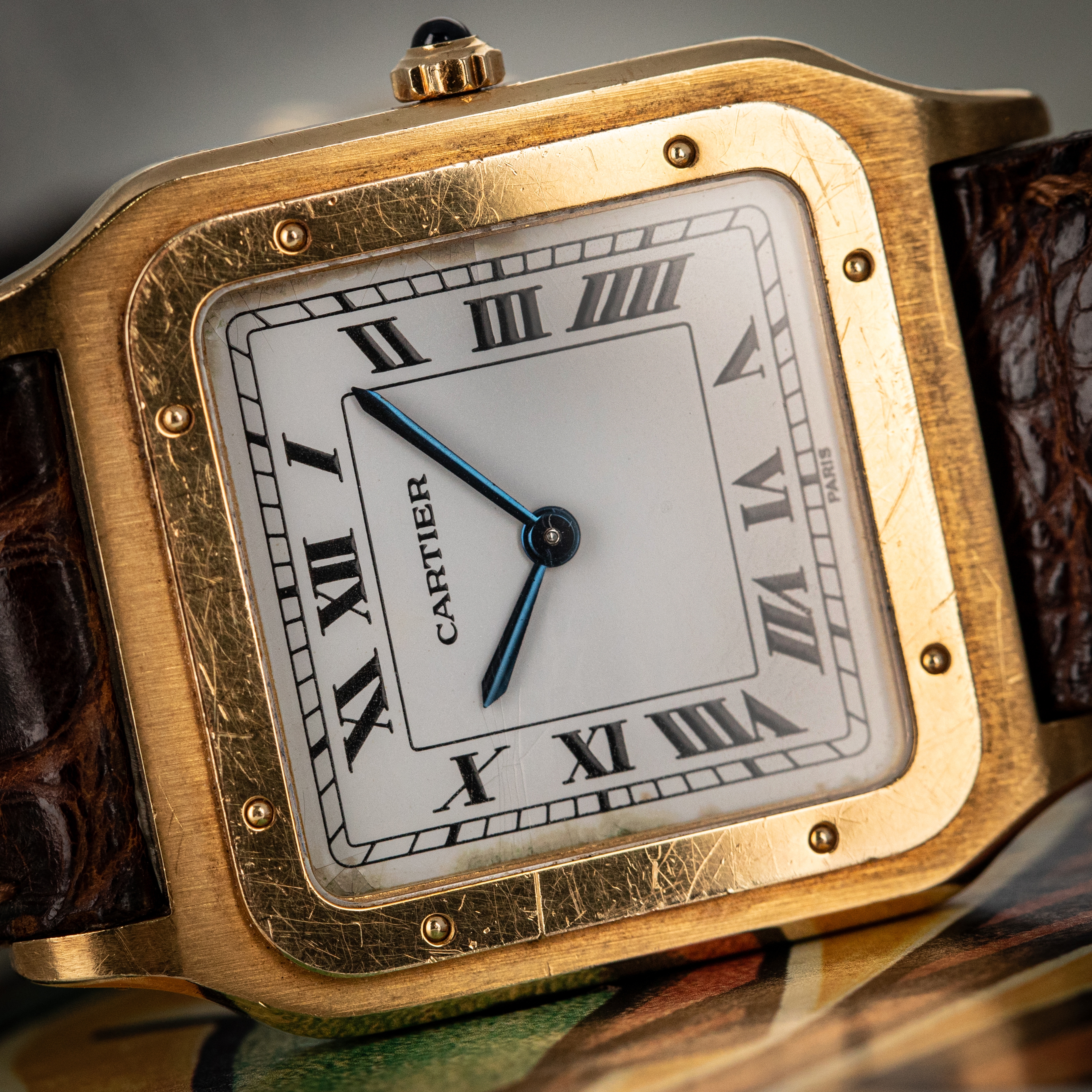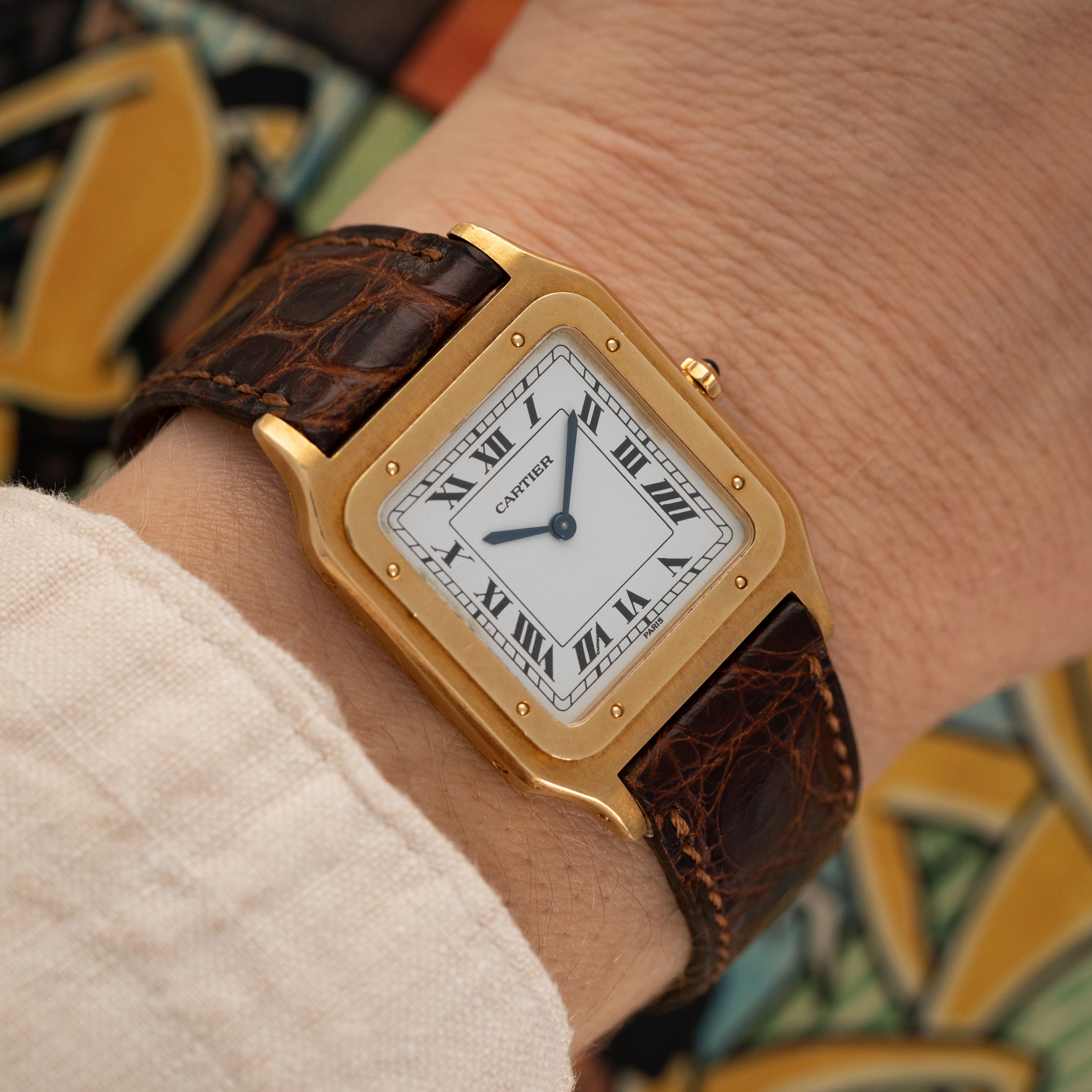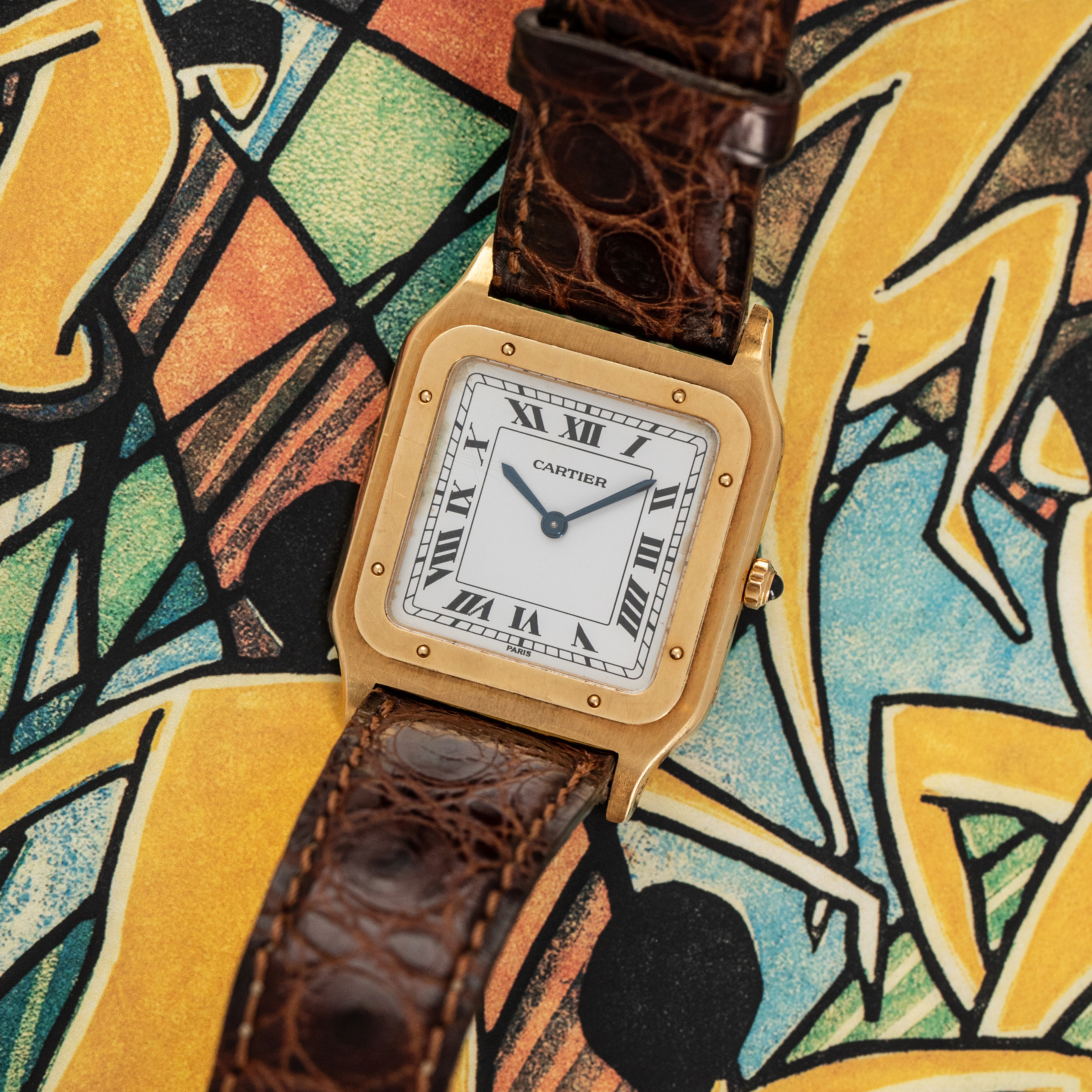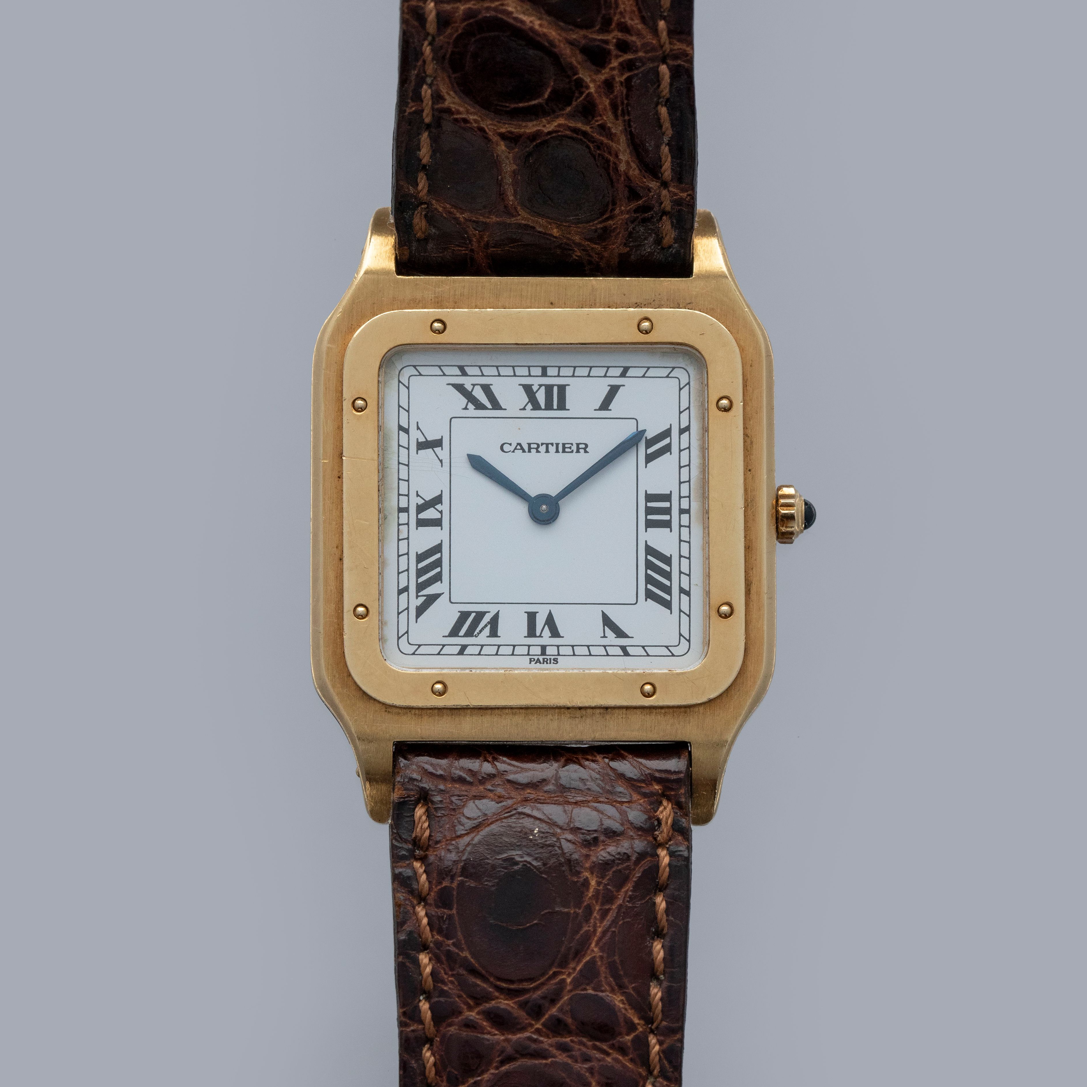 With the aviation industry growing at unprecedented rates, one pioneering Brazilian aviator saw the need for a particular kind of tool - a pilot’s watch. So, this aviator, Alberto Santos-Dumont, went to Louis Cartier in 1904 and asked him to design a watch fit for flight. This watch became the Cartier Santos Dumont, the very first tool watch. Evolving through time as an extensive array of wonderful models, the Santos Dumont has become one of watchmaking’s most iconic designs, and is famed for creating the humble wristwatch as we know it. Offered here as a Santos Dumont variant from the 1980s, the ref. 96054 that we have is known as the "Extra Plate", which means "extra flat" in French, due to its 4.4mm tall case, a result of its ultra-thin manual-wind Frederic Piguet cal. 21 movement.