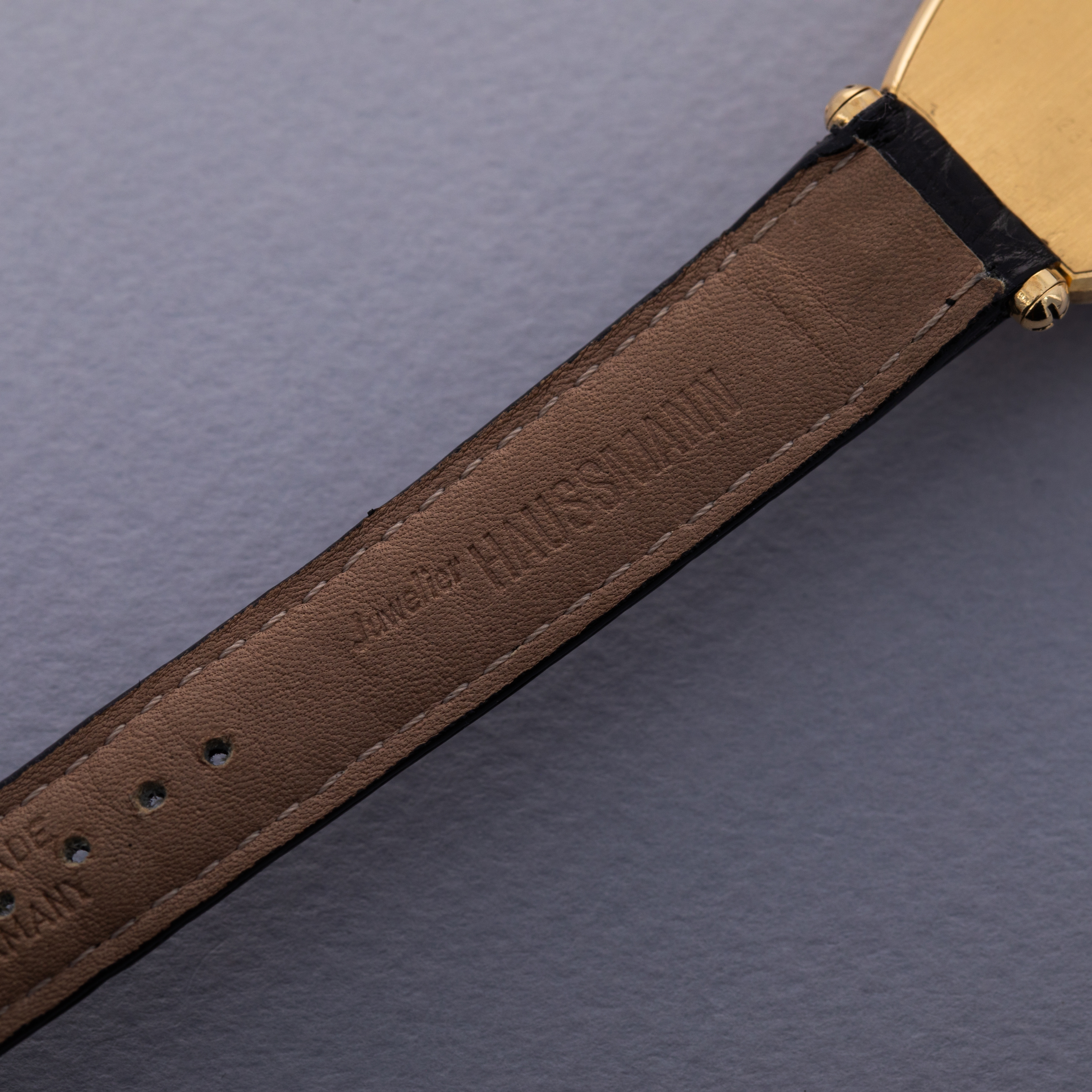 With its banana-shaped 18kt yellow gold case and dropped screw bar lugs, the Tonneau allows the strap to follow its curvy profile and wrap around the wrist for a wonderfully comfortable experience.
