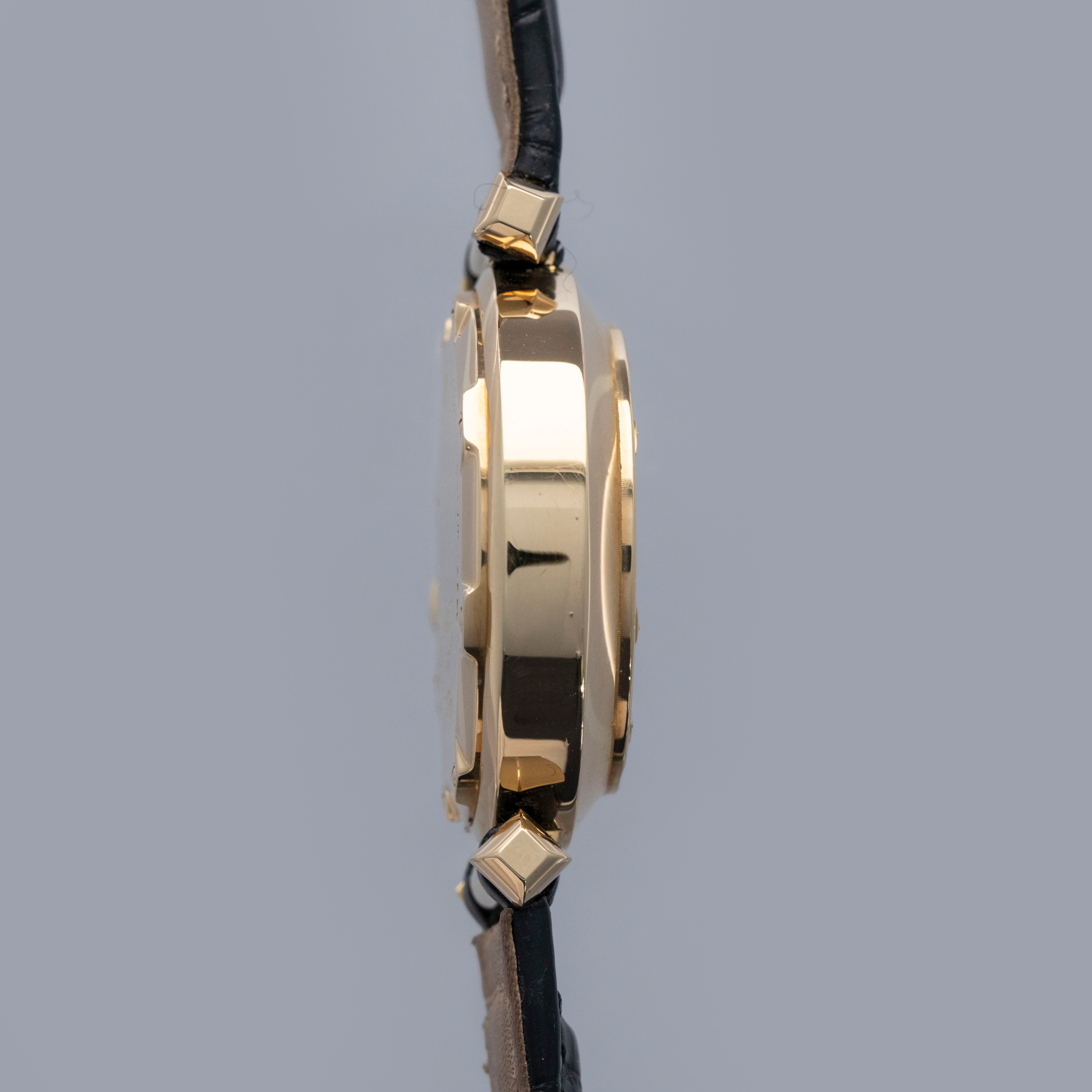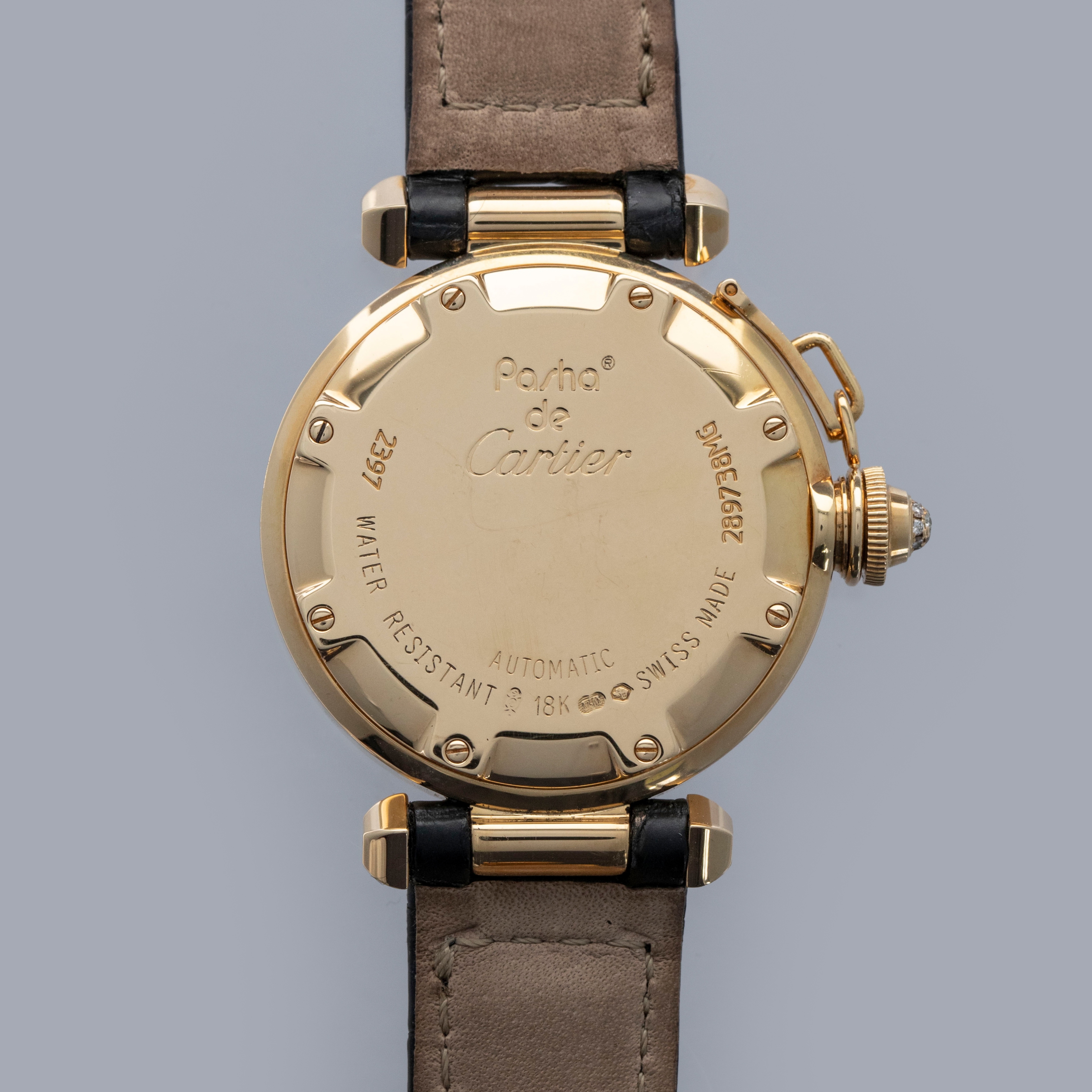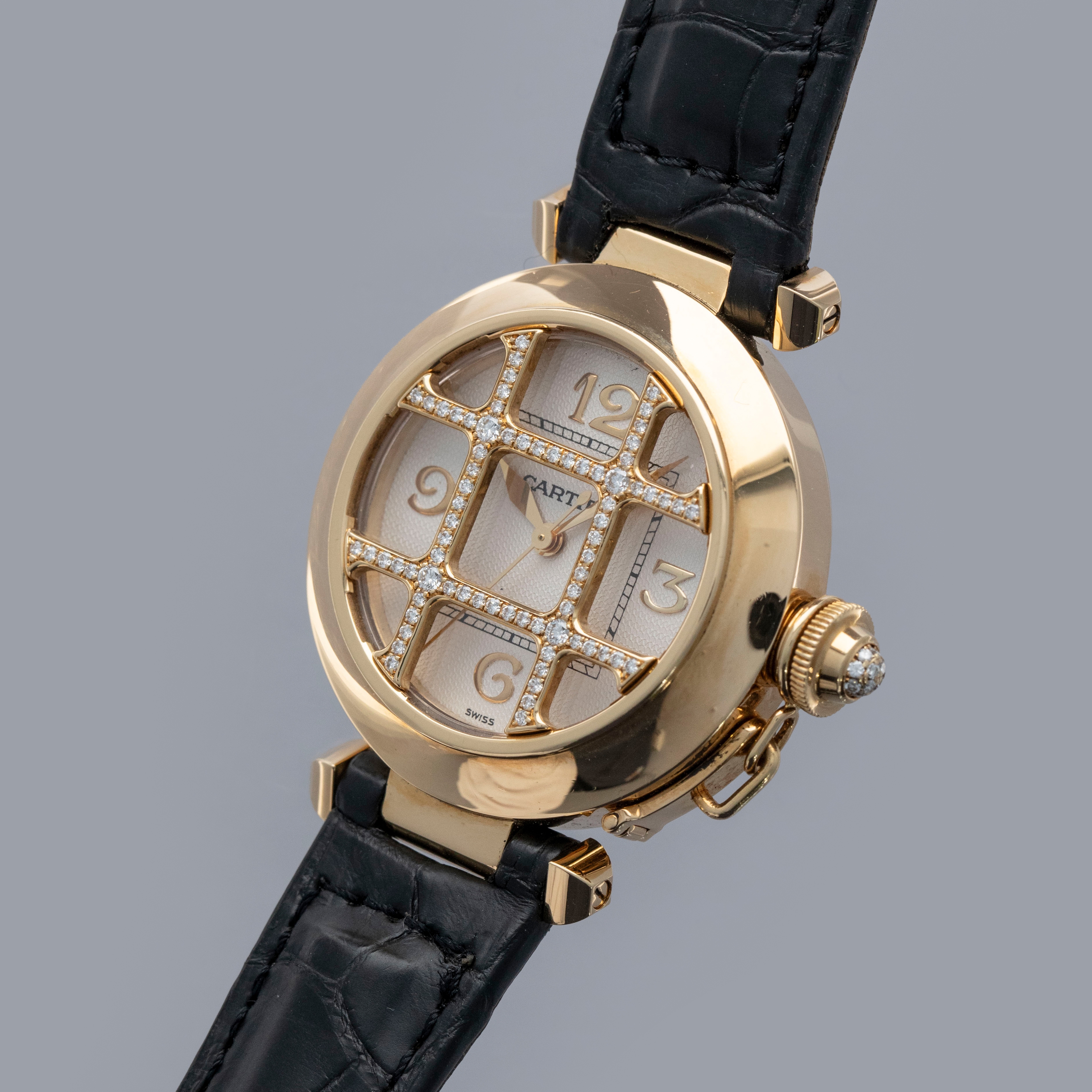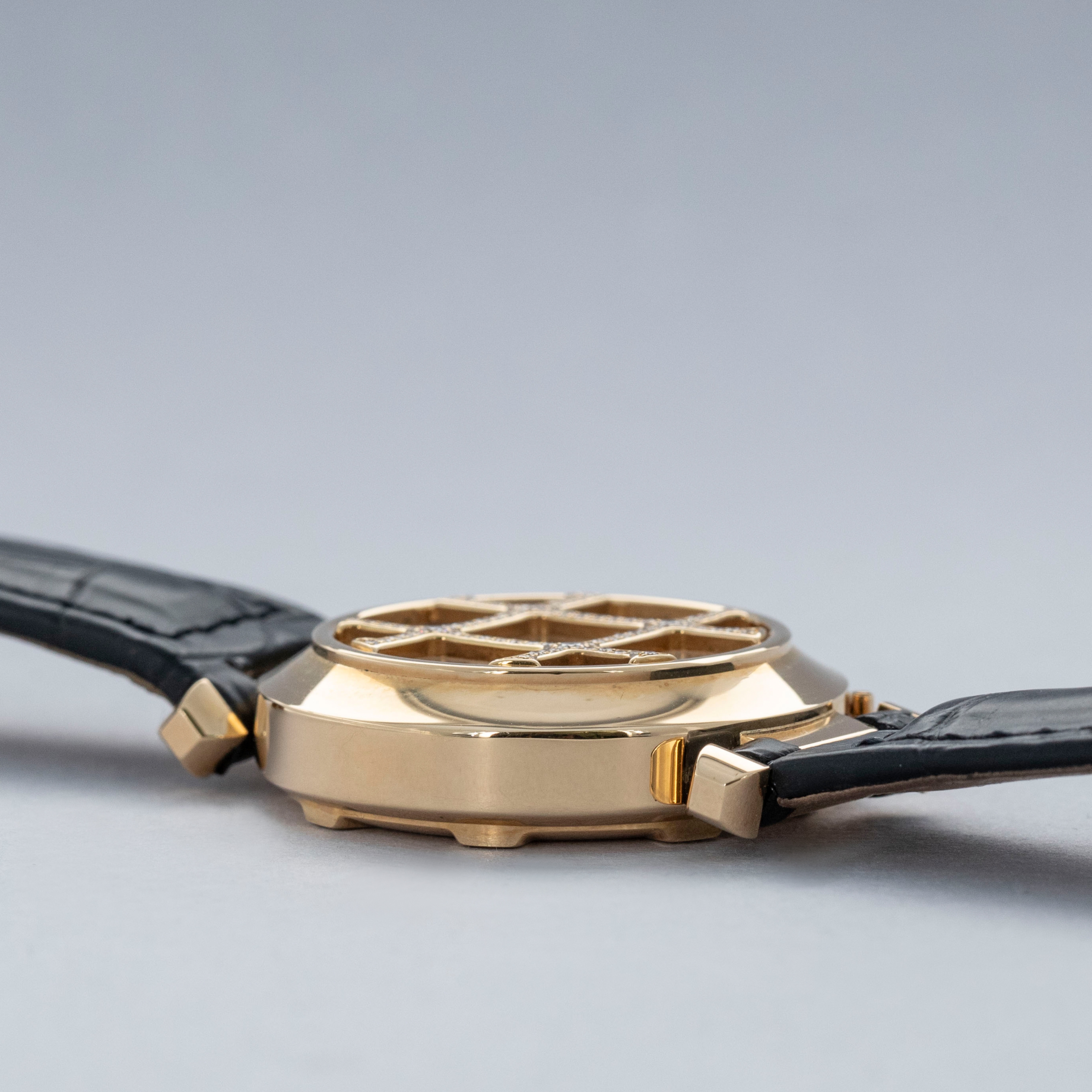 An exceptional combination of Cartier's design prowess, the Pasha's history, and Cartier's general capacity as a fine watchmaker and jeweler, the ref. 2397's diamond-set grill and 18kt yellow gold construction combine to create a true feast for the eyes.