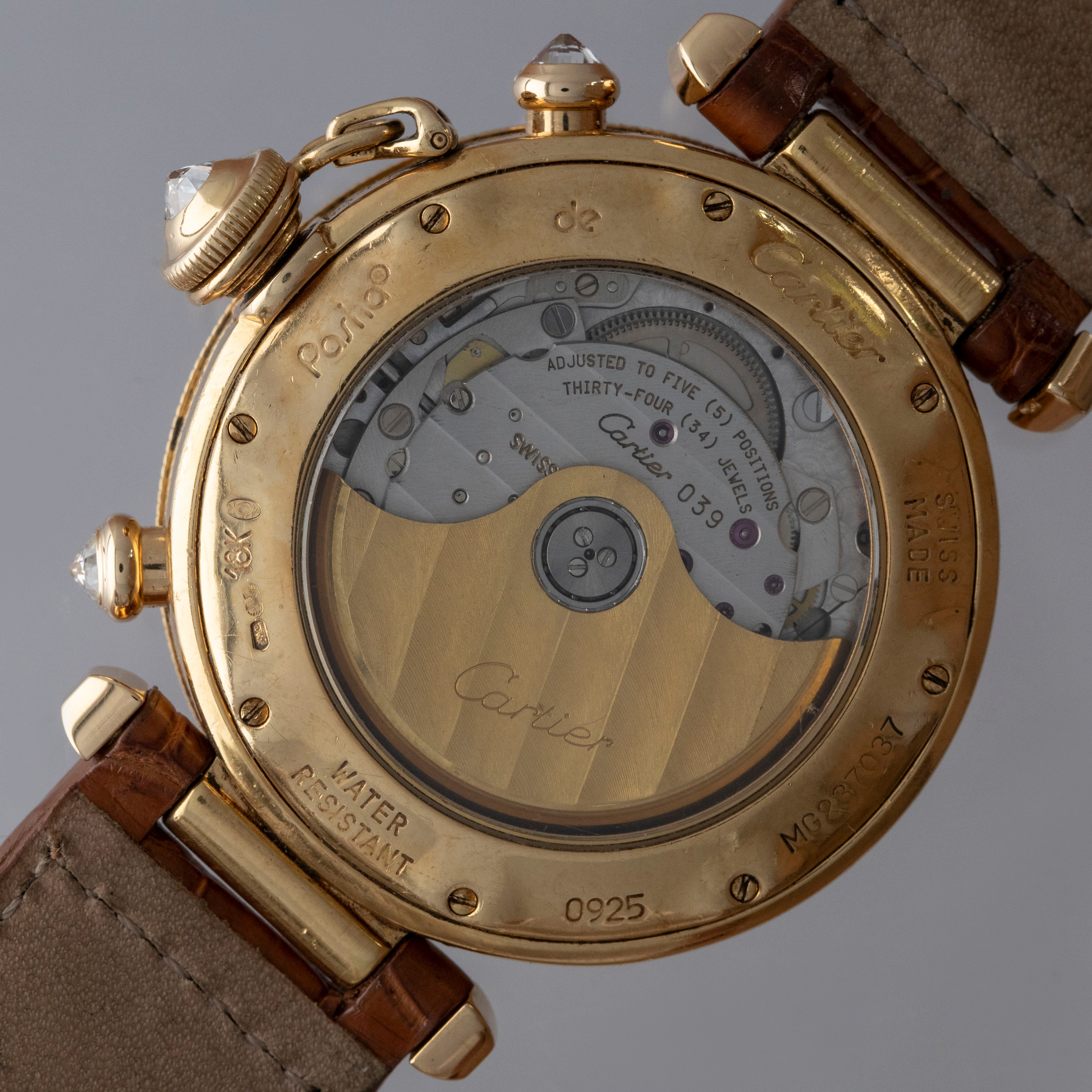 Cartier Pasha de Cartier Triple Timezone Moonphase Date Diamond Dil 18k YG