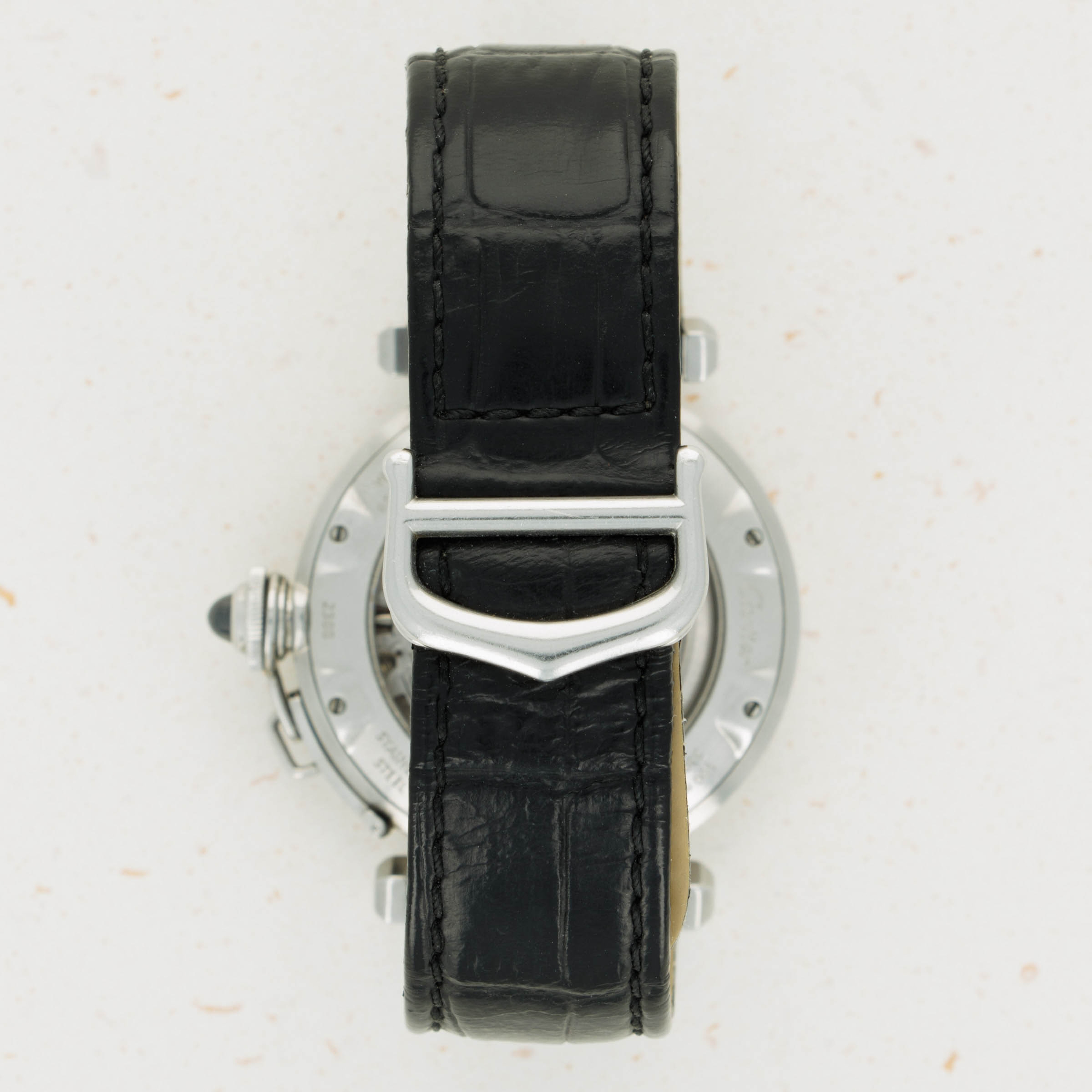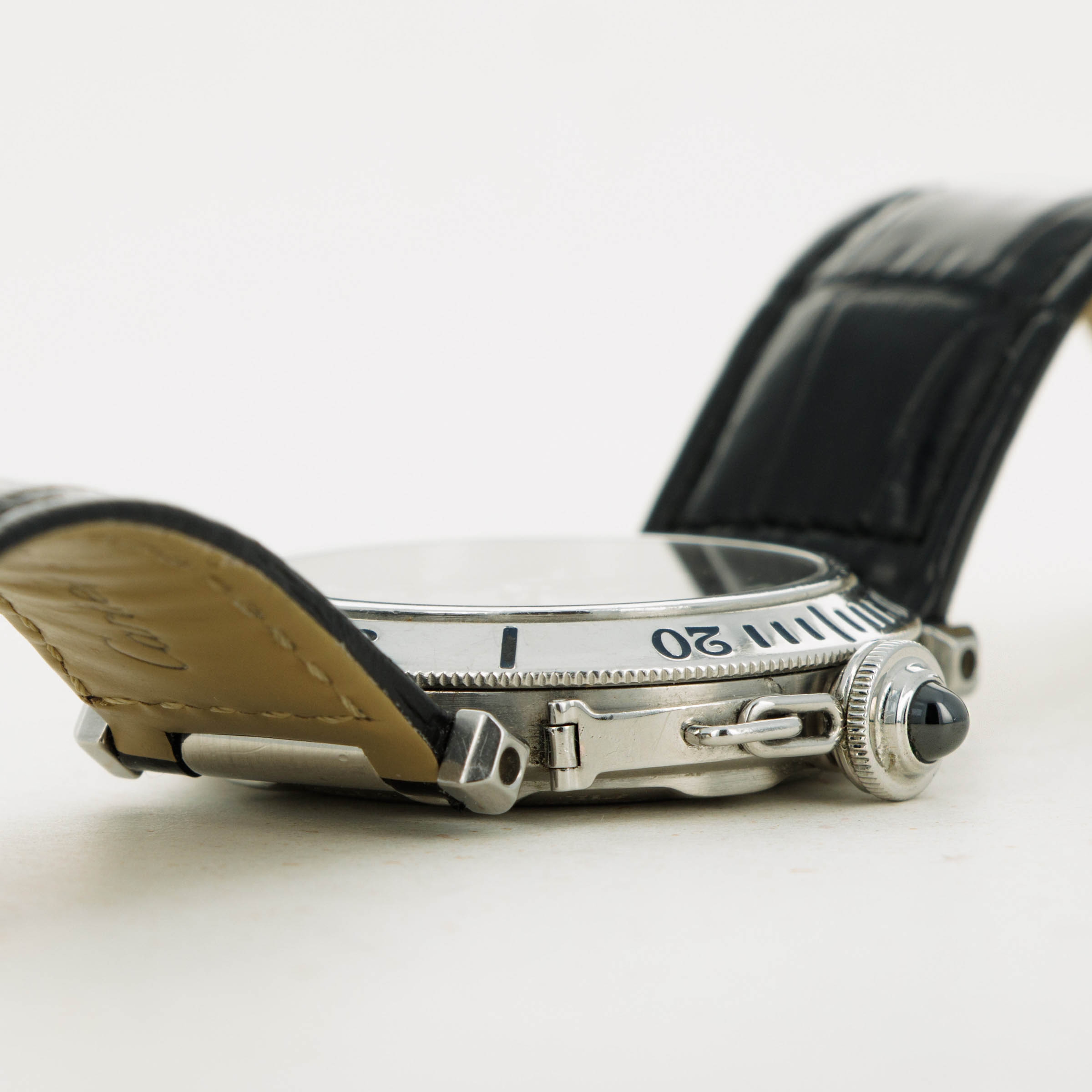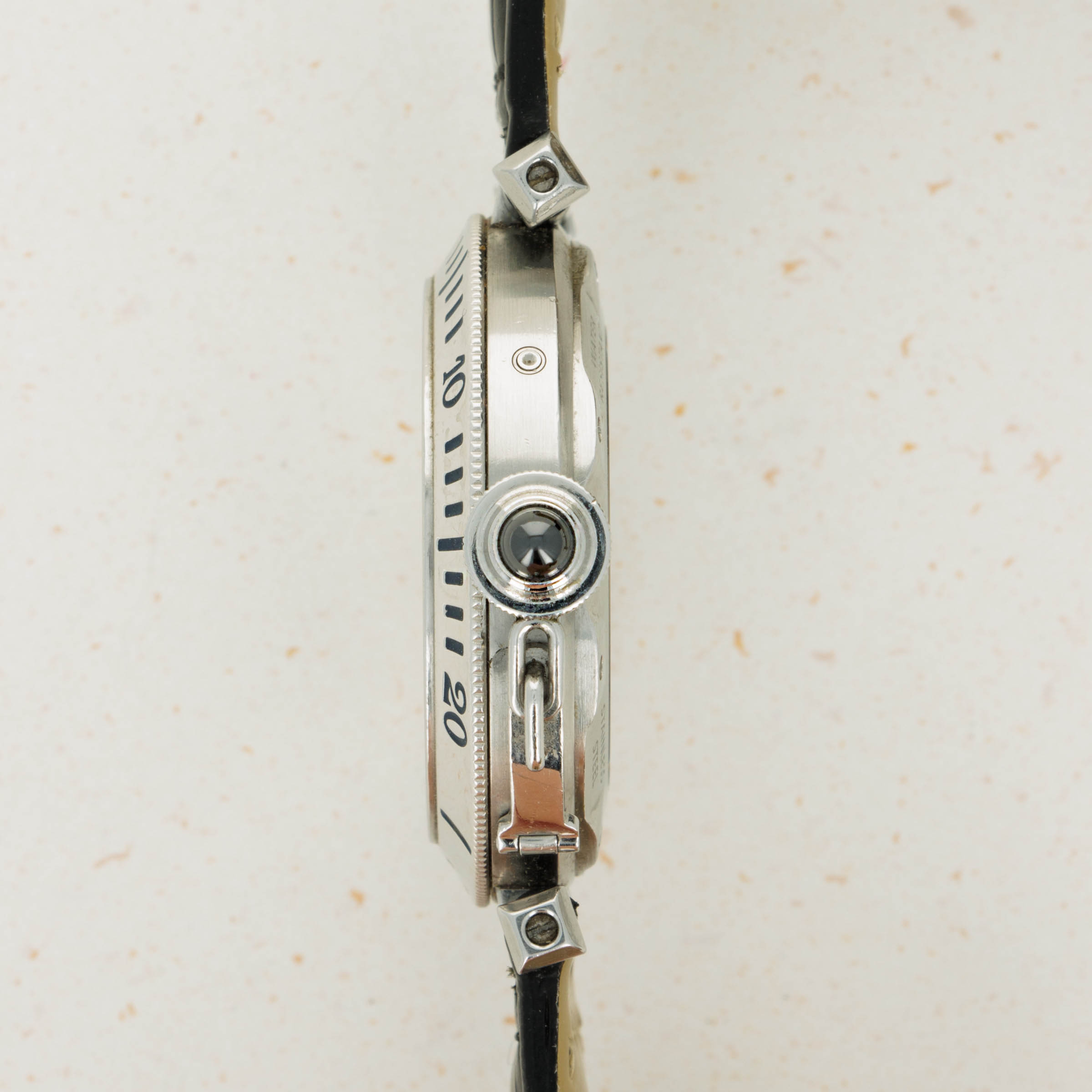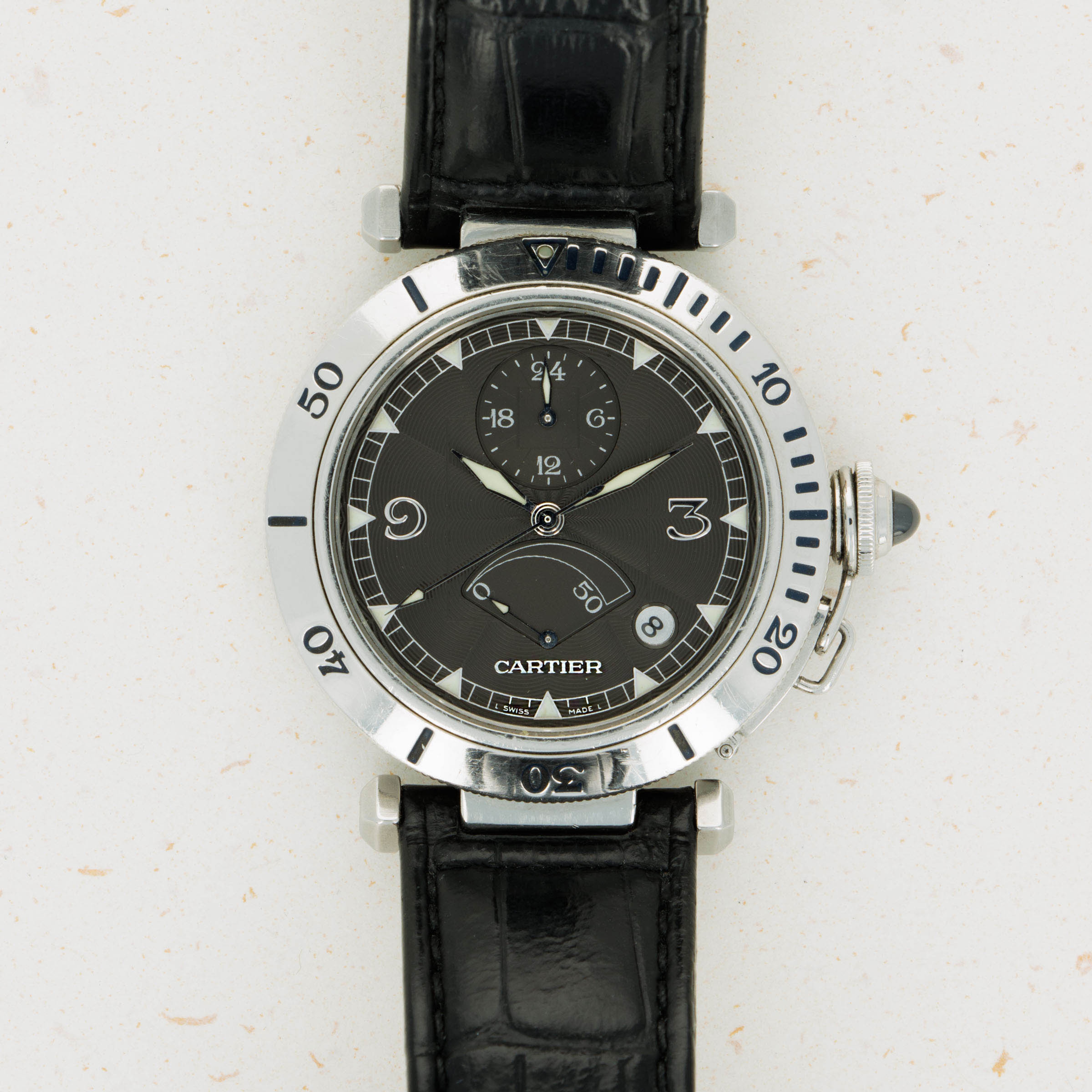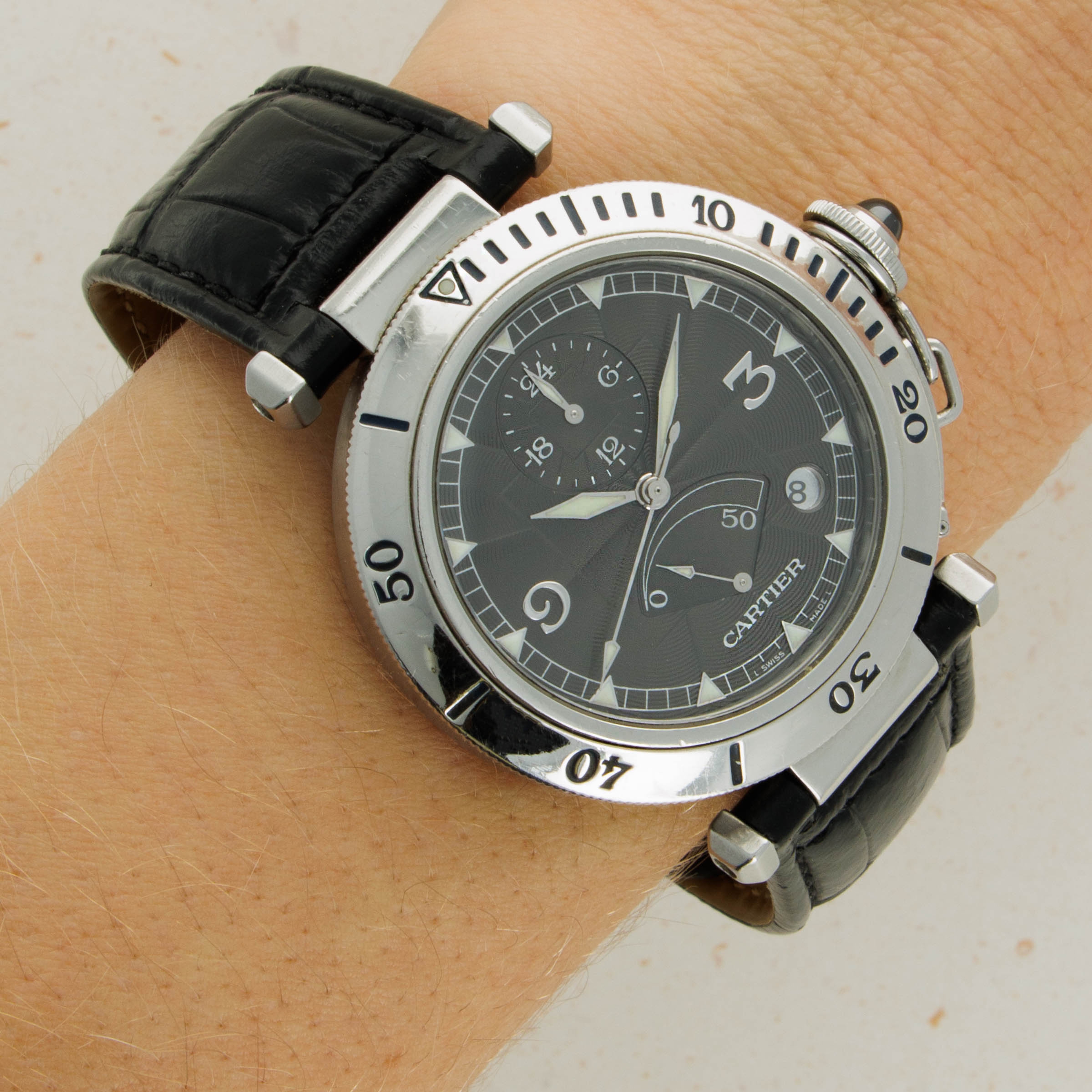 A wonderfully attractive watch that pulls on the heartstrings of Cartier collectors, the Pasha breaks from aesthetic norms and celebrates Cartier's willingness to do new things. Furthermore, with its practical complications, this example perfectly fits the Pasha's original design brief from The Pasha of Marrakesh, Thami El Glaoui, as a practical watch that could do anything he needed it to.