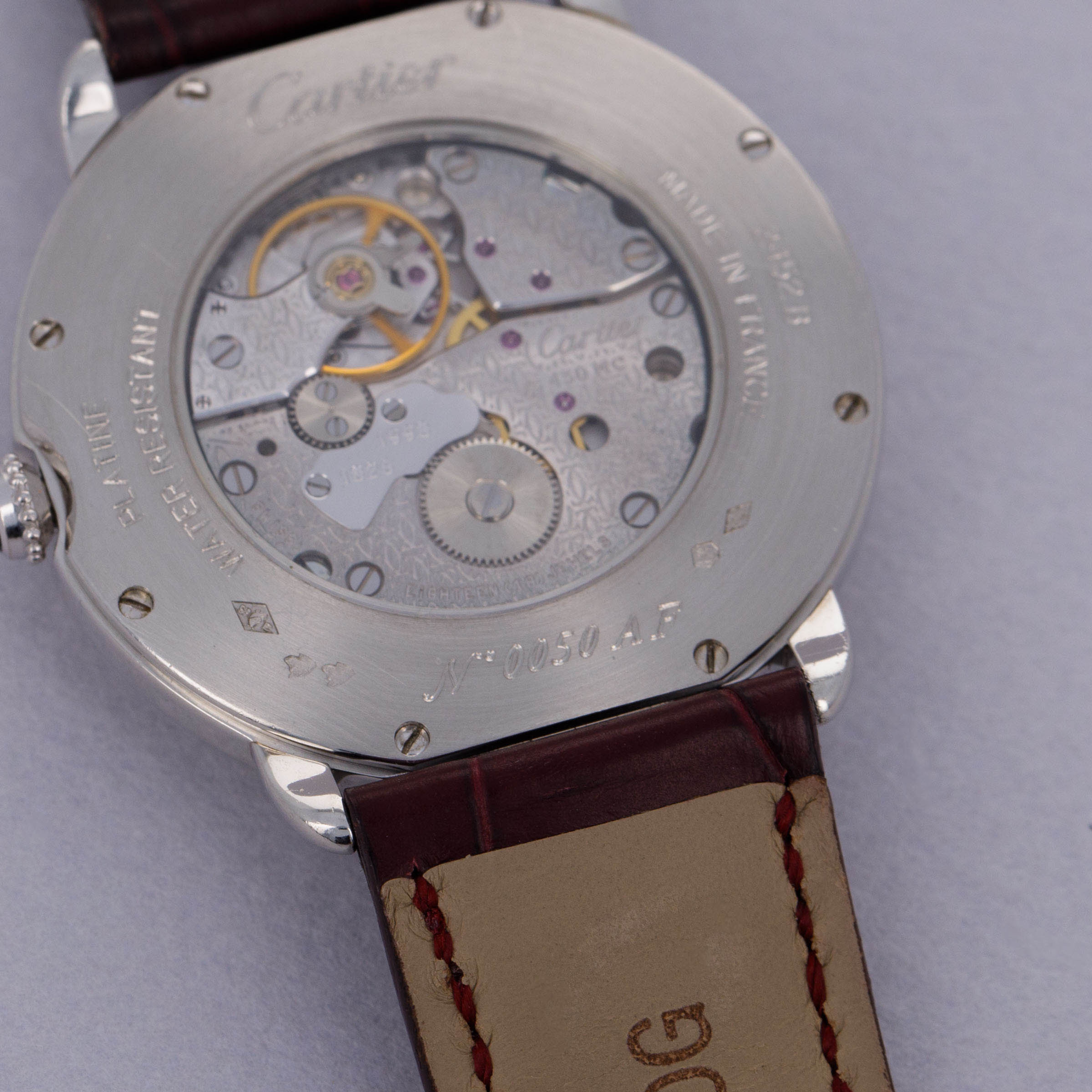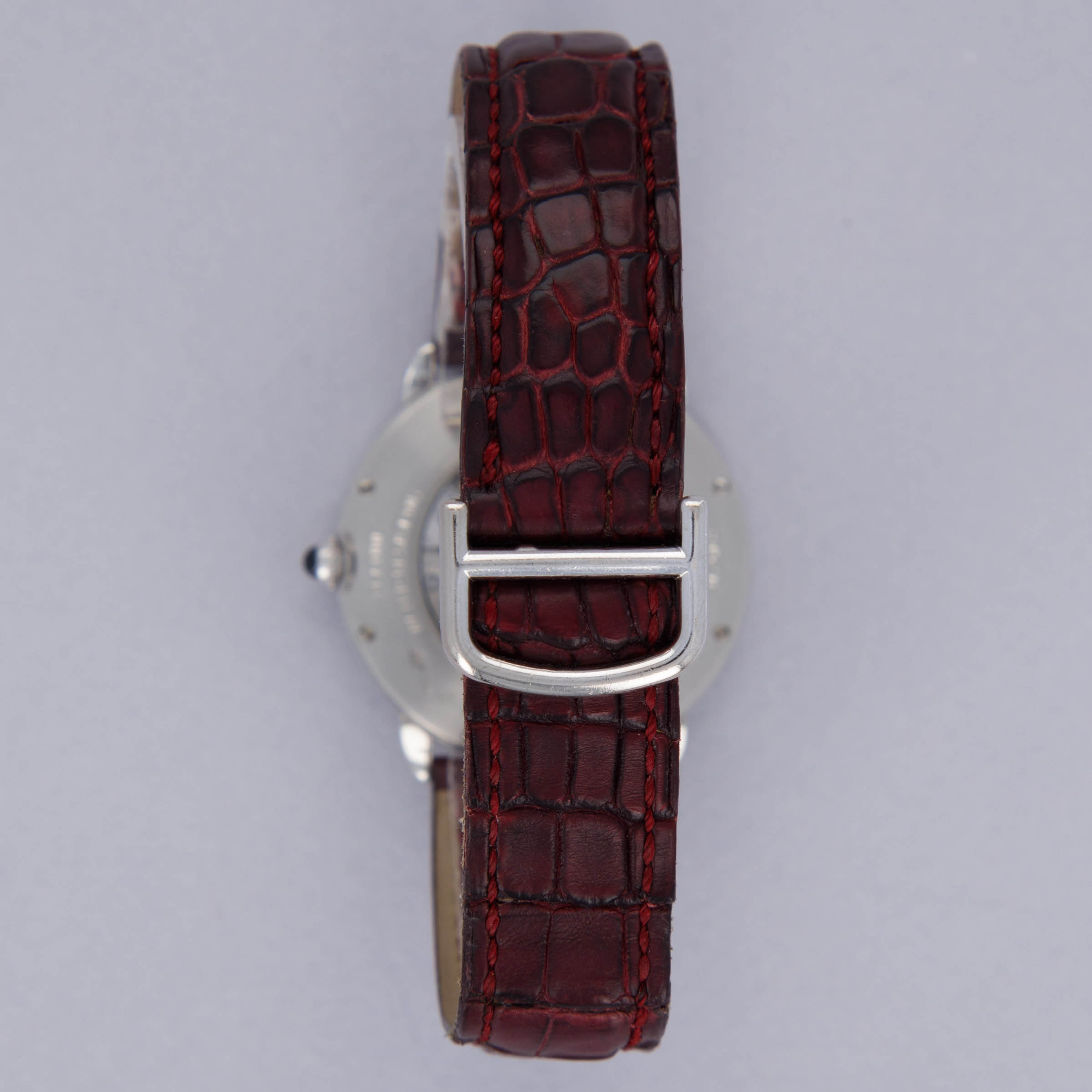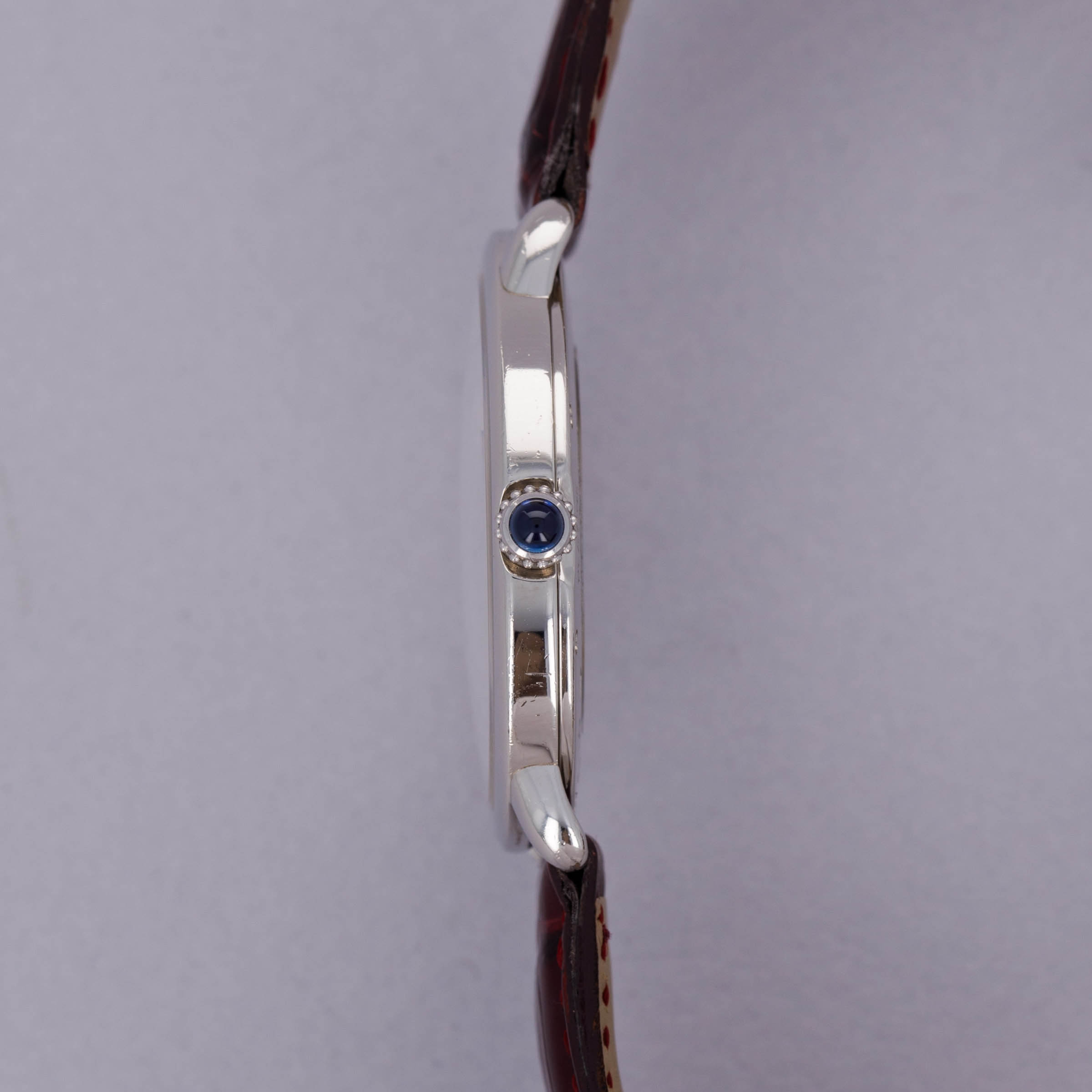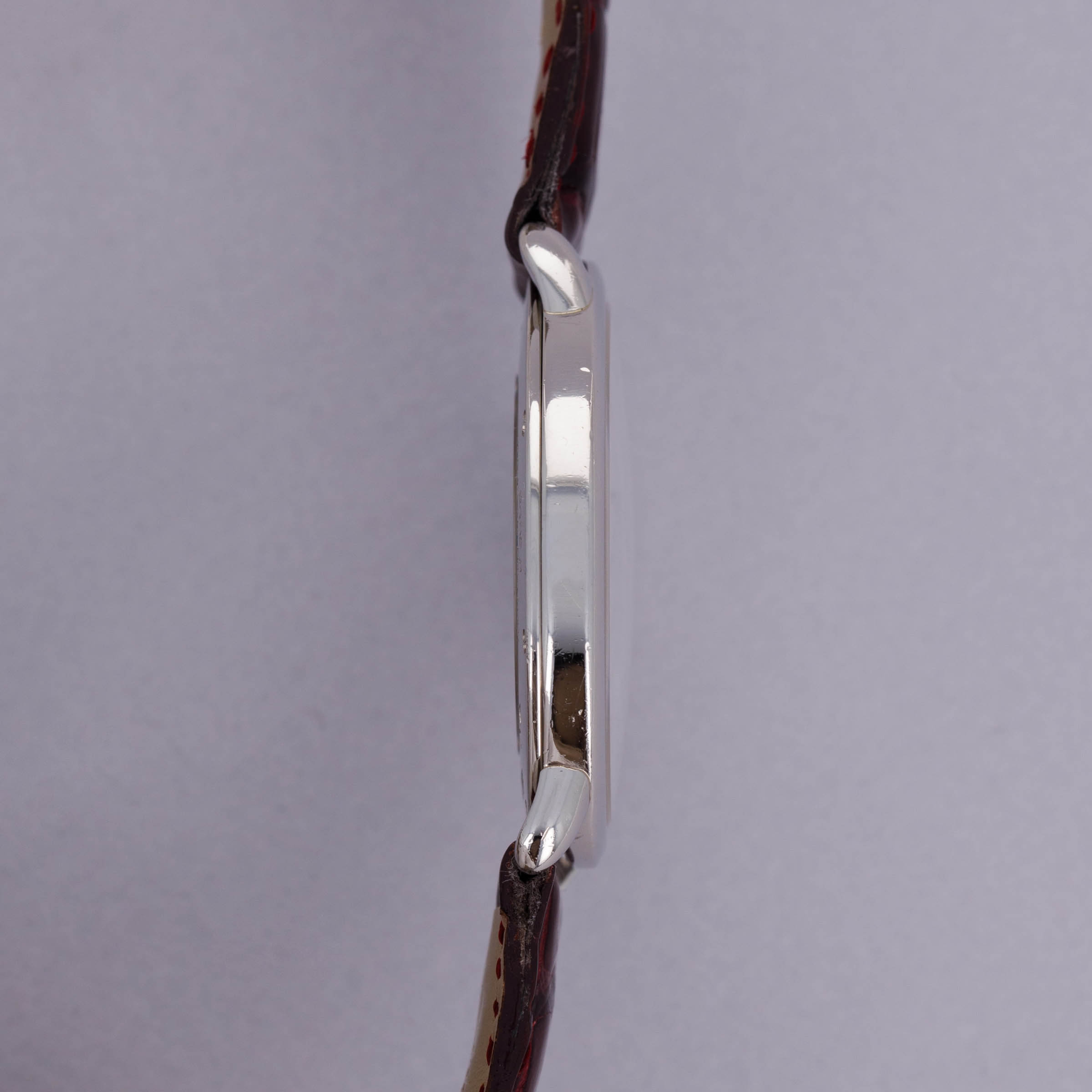 Elegantly reserved like so many of Cartier's iconic designs, the ref. 2452B's 34mm platinum case wears close to the wrist thanks to its thin profile resulting from its manual-wind cal. 430 MC movement. Unlike most of Cartier's creations made in Switzerland, the 2452B was made in a special workshop in France, where the firm's finest creations are born.