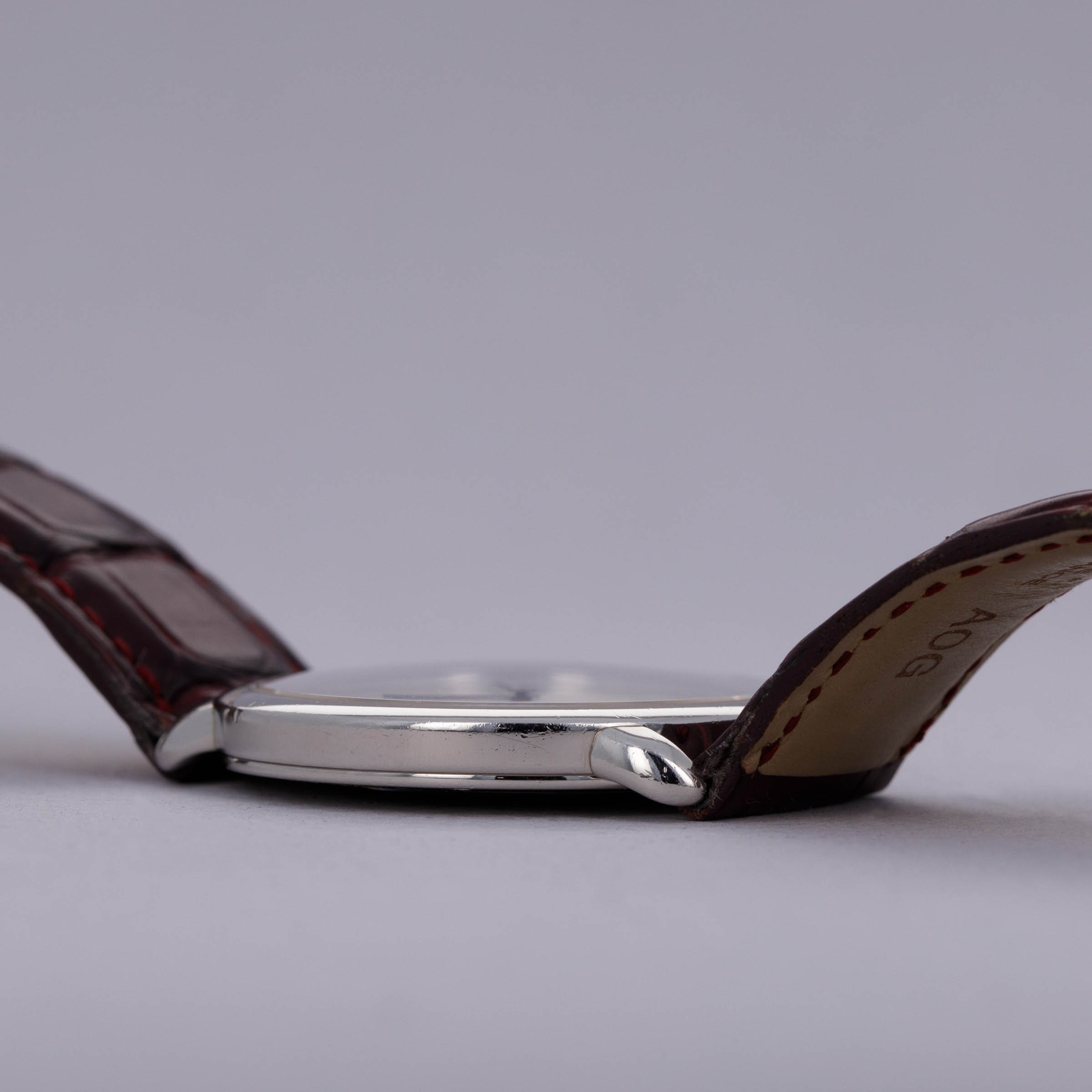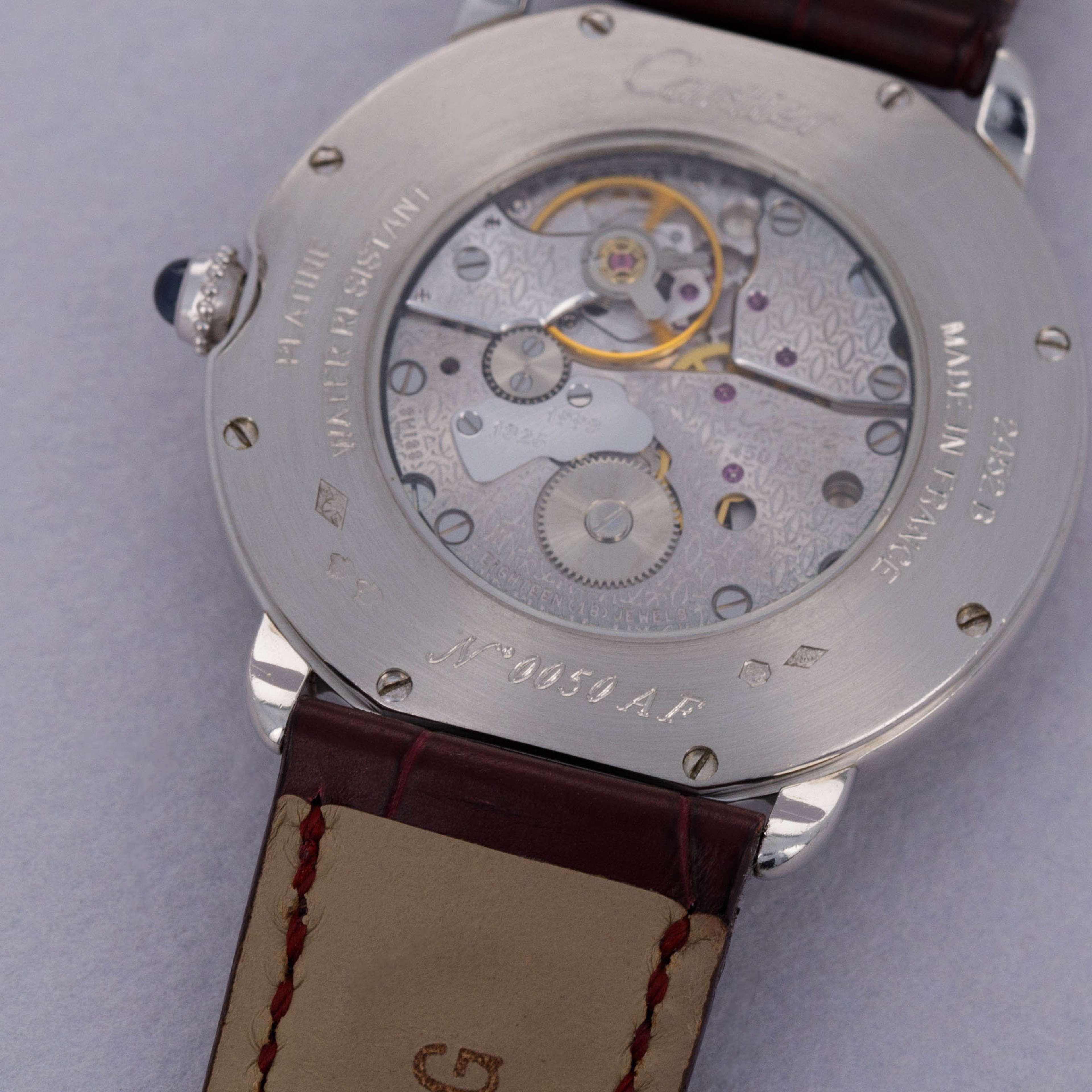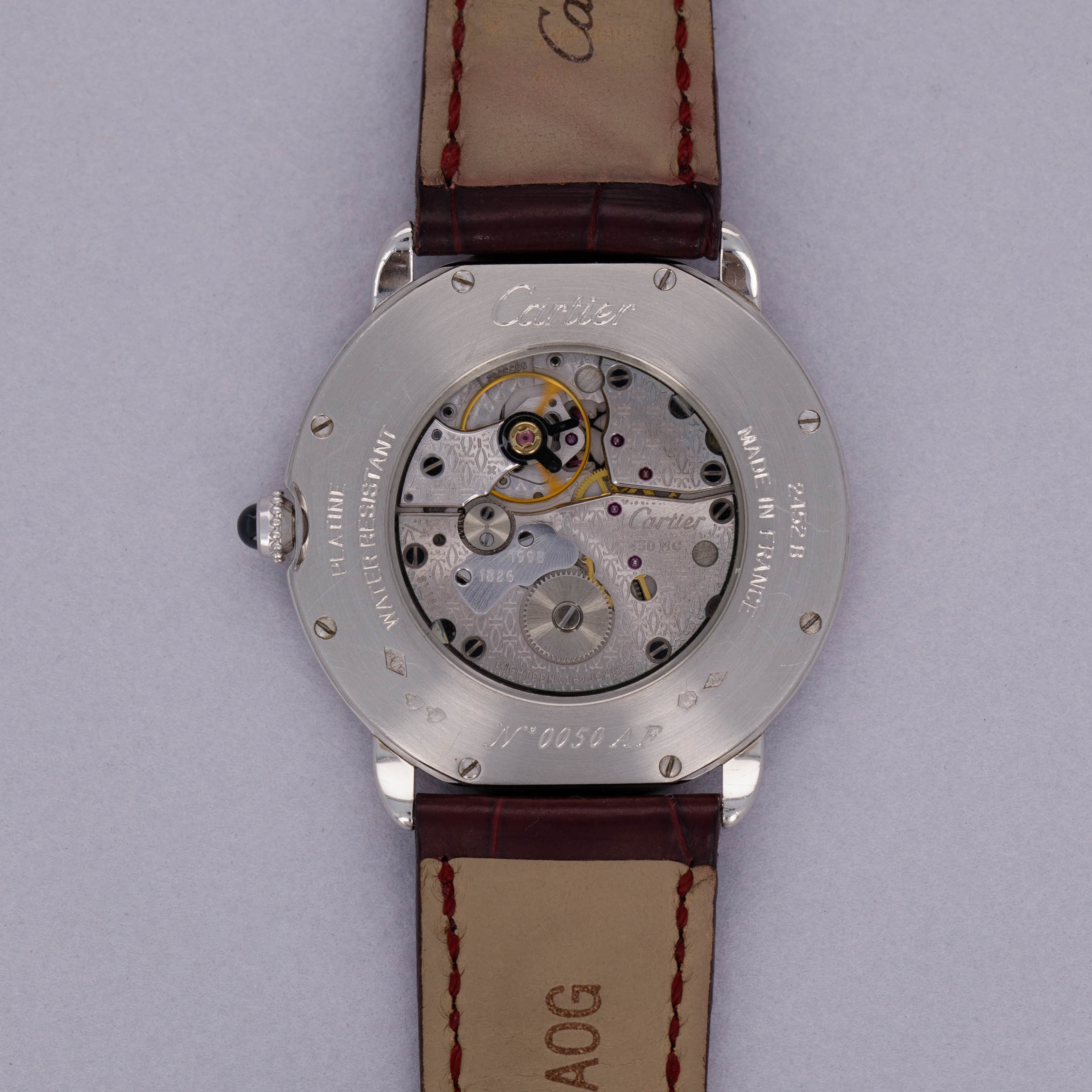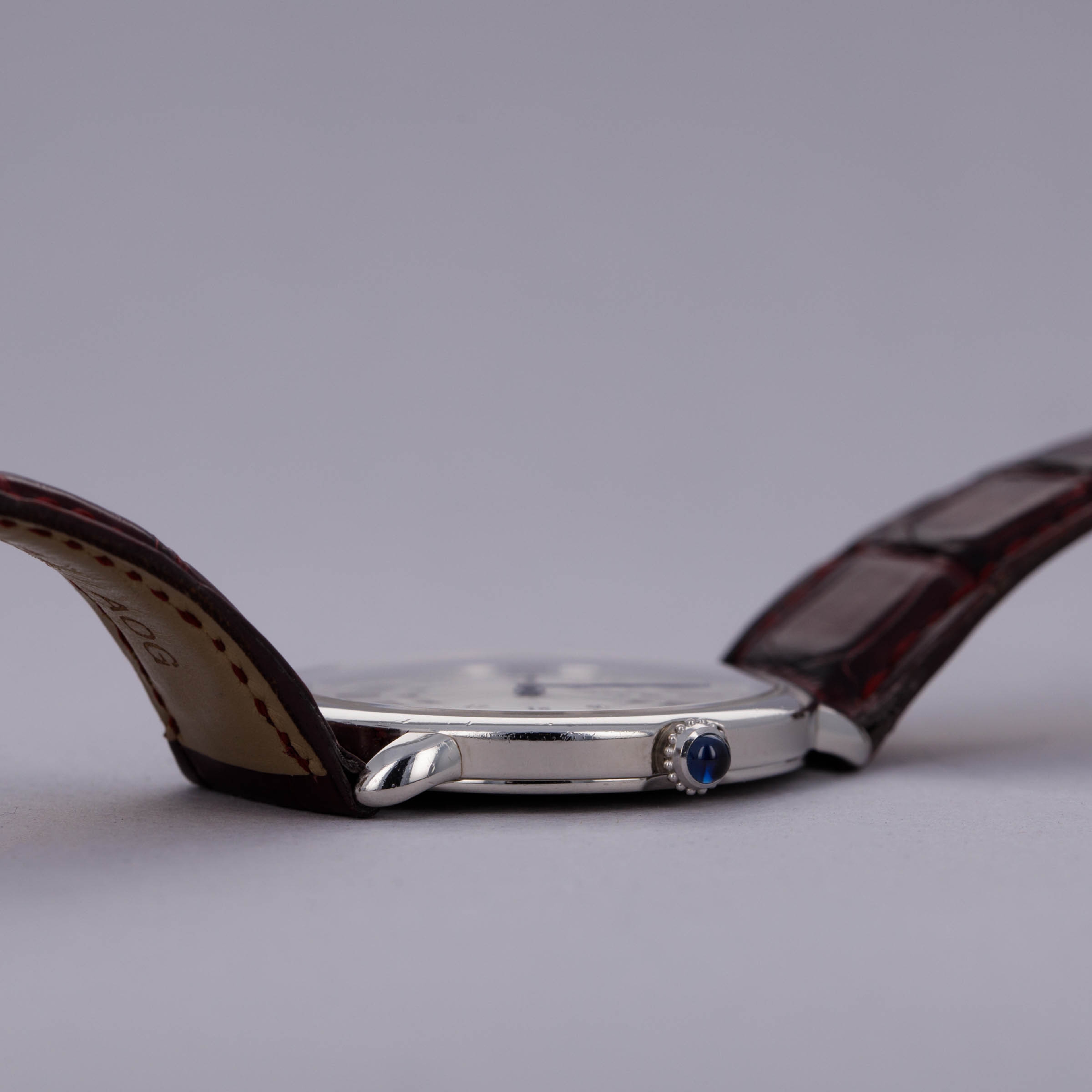 Elegantly reserved like so many of Cartier's iconic designs, the ref. 2452B's 34mm platinum case wears close to the wrist thanks to its thin profile resulting from its manual-wind cal. 430 MC movement. Unlike most of Cartier's creations made in Switzerland, the 2452B was made in a special workshop in France, where the firm's finest creations are born.