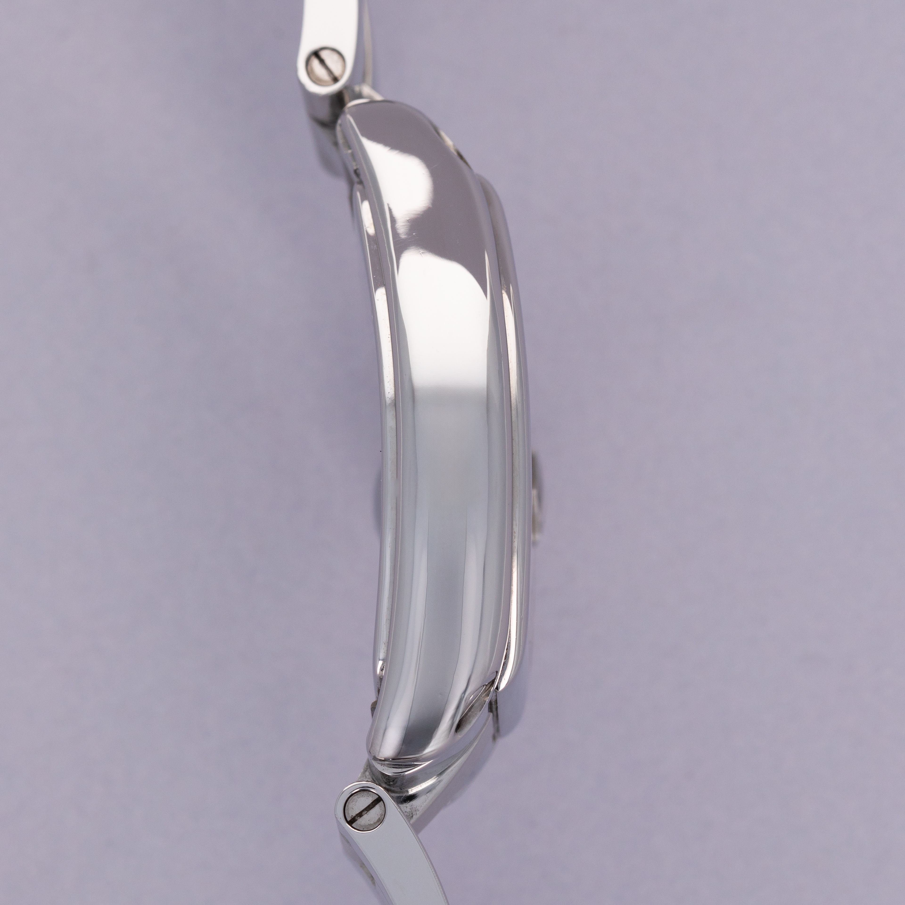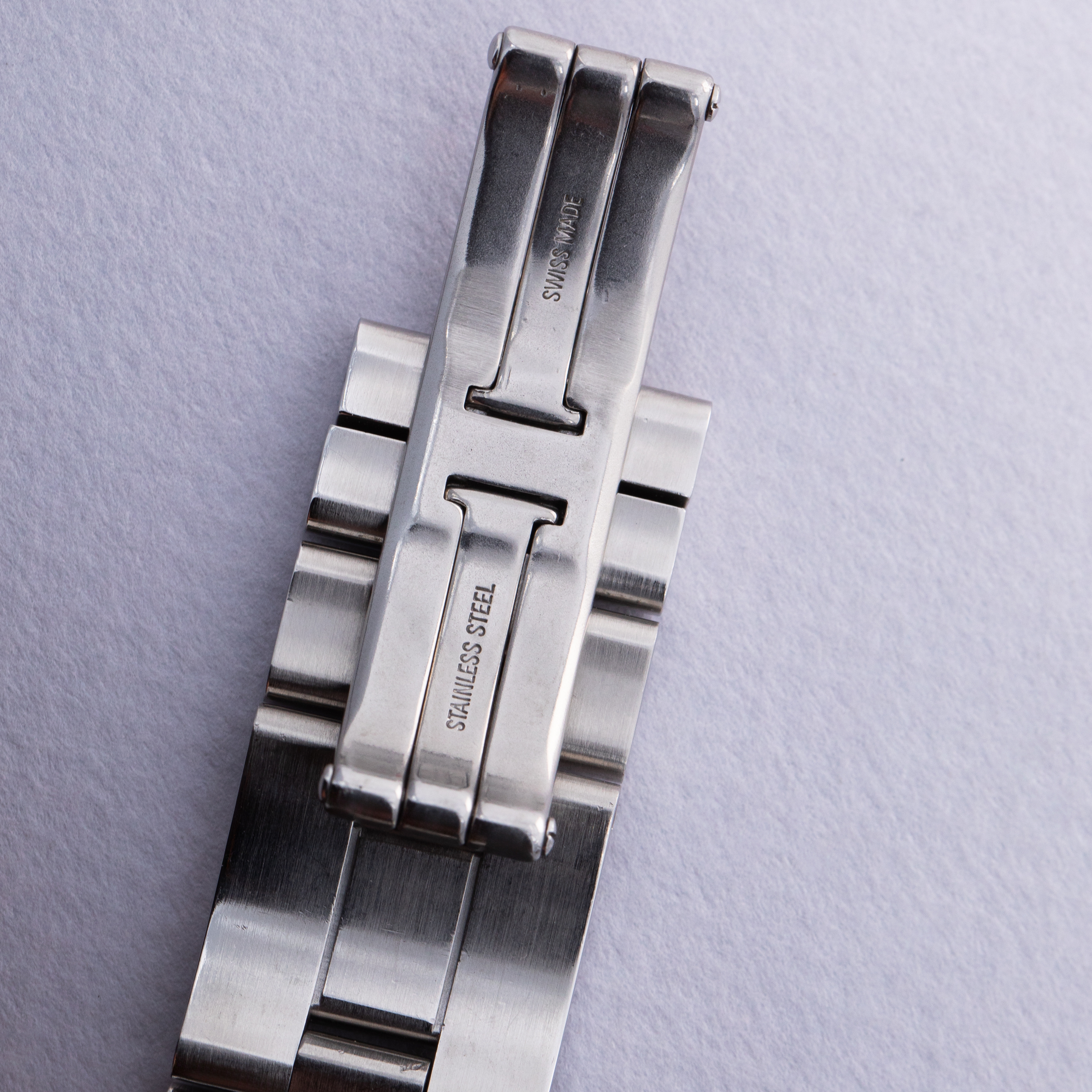 Watch is I very good overall condition. Case shows some wear, with signs of previous polishing. There are soft edges along the case, as visible in the images. The bracelet fits an approx 7" wrist, and has 4 large links, 2 standard ones, and 2 half links.