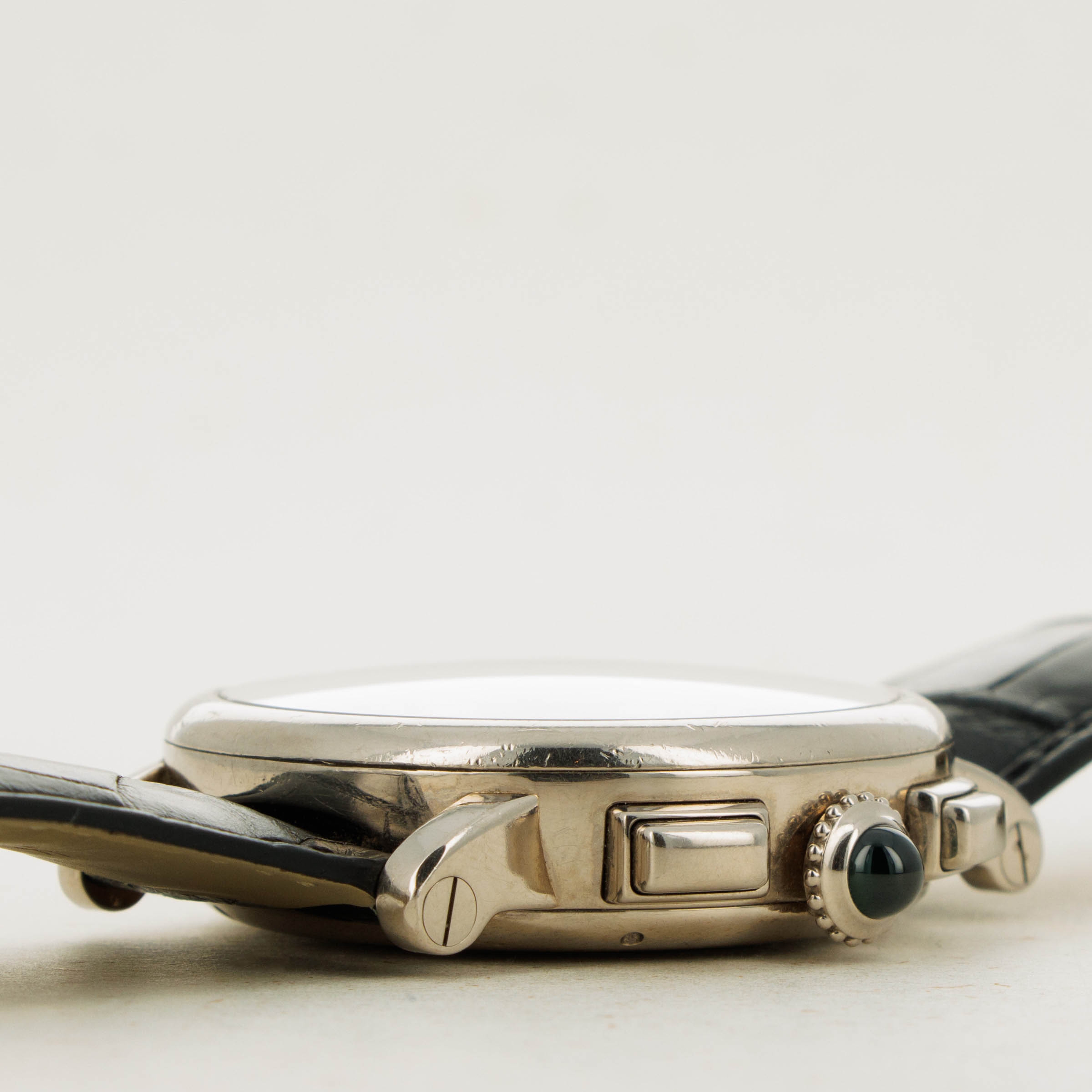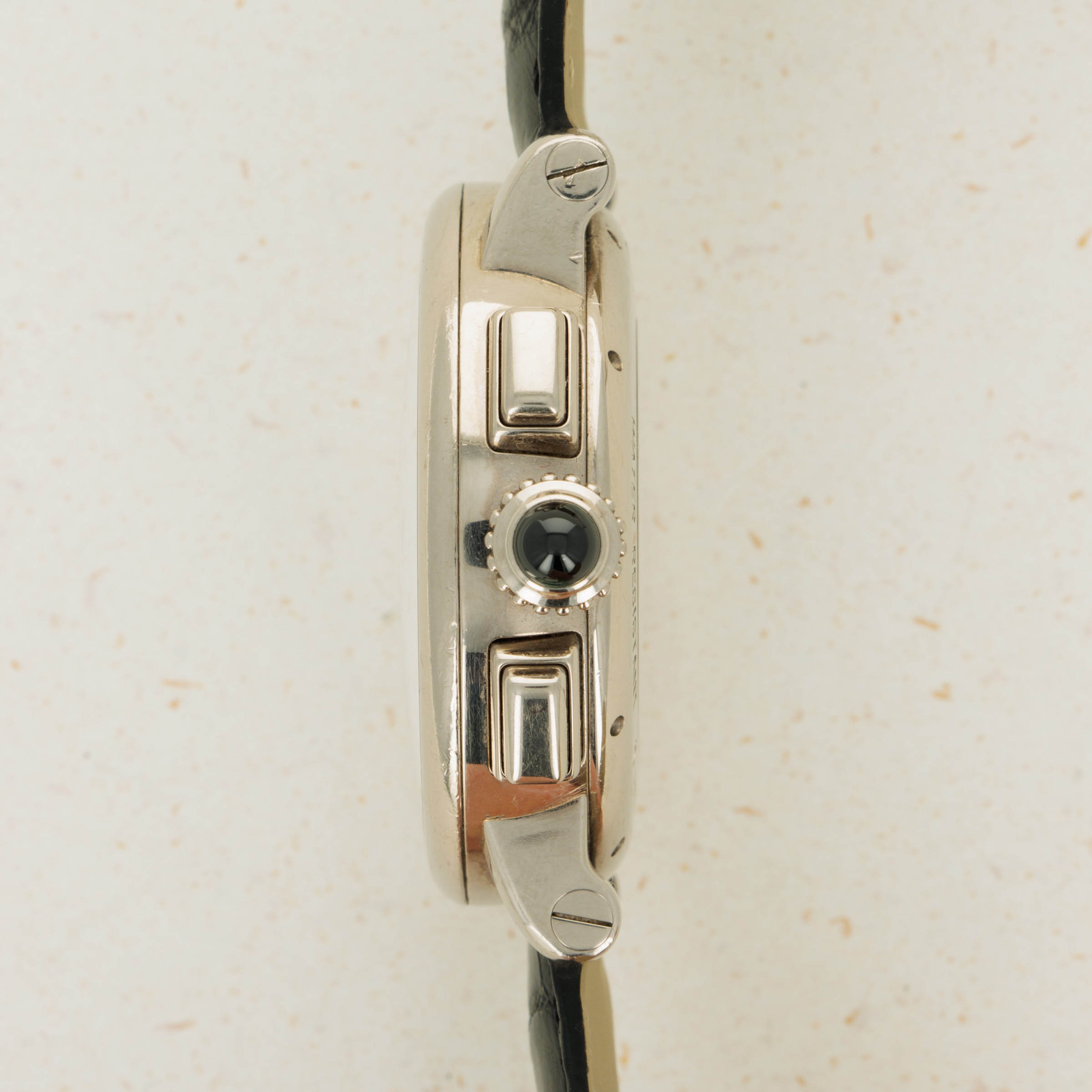 Over the course of their history, Cartier has developed an incredibly strong history as a revered watchmaker, with models like the Tank, Santos, Crash and many others earning their place within the horological spotlight. However, while these may be icons from a historical and design standpoint, they typically don’t feature a level of watchmaking that is all too impressive. As a result, Cartier launched the Rotonde de Cartier collection to showcase their horological talents, and this example, the Rotonde de Cartier Central Chronograph ref. W1556051 is no different. Made out of 18kt white gold, its 42mm polished construction is immediately unique from Cartier’s typically svelte angular designs. Building upon this unique construction is the Rotonde de Cartier Central Chronograph’s unique dial. Featuring a tonal aesthetic with various shades of grey, silver, and black, the Rotonde de Cartier Central Chronograph’s dial is unique due to its chronograph display's position. While watchmakers have long used separate subdials within the dial to house the minutes and seconds displays of their chronographs, the Rotonde de Cartier Central Chronograph is completely different. It uses a raised central platform with the chronograph’s minutes track that rotates in its center and a seconds track along its periphery that is pointed to by a small blued steel hand. With just the tip of its blued steel hour and minutes hands exposed, the Rotonde de Cartier Central Chronograph is still legible, much like a normal timepiece, as its large black Roman numerals provide the wearer with a regular time-reading experience. Powered by the in-house manual-wind cal. 9907MC, the Rotonde de Cartier Central Chronograph showcases Cartier’s ability to take a century-old design, the chronograph, and repackage it as something unique and interesting.