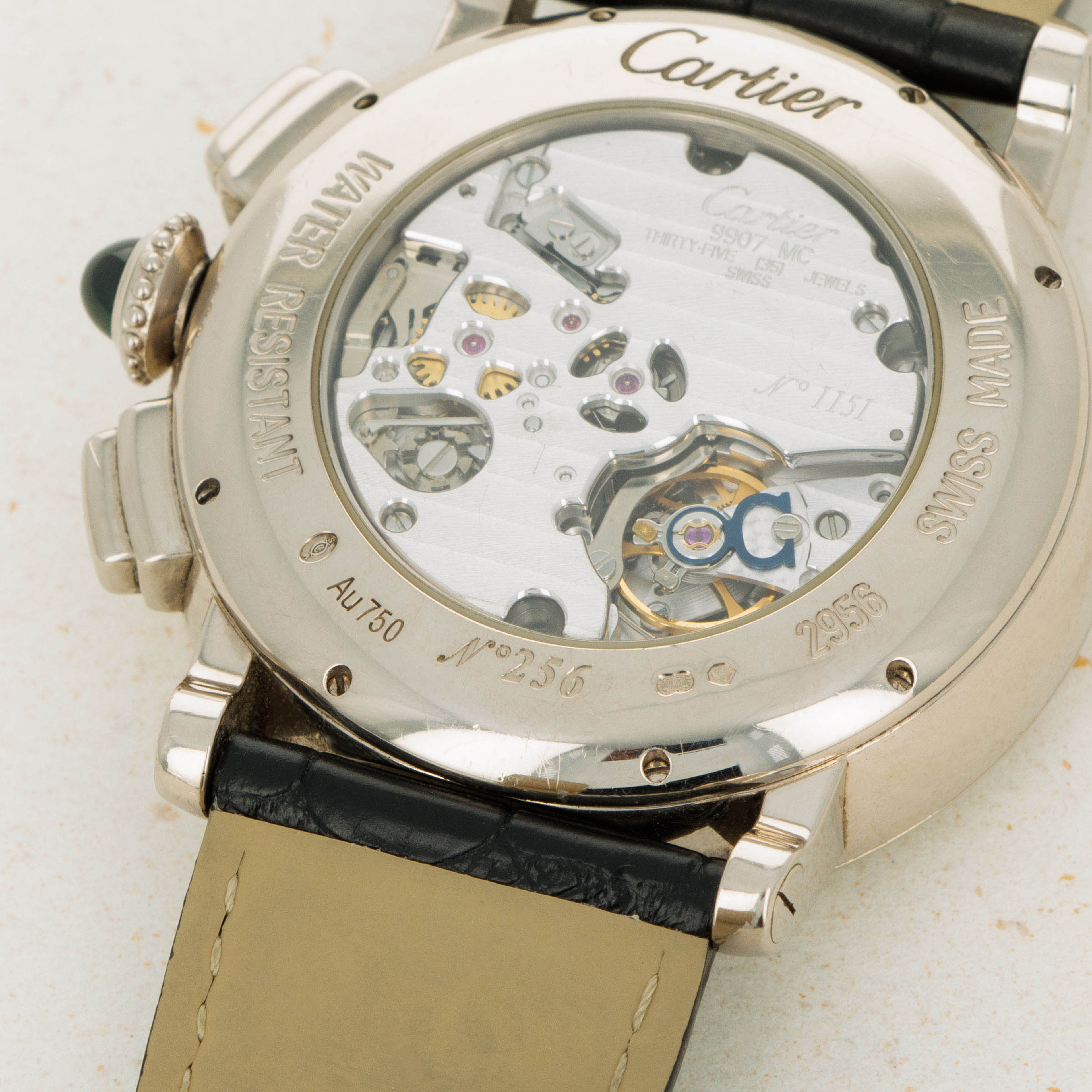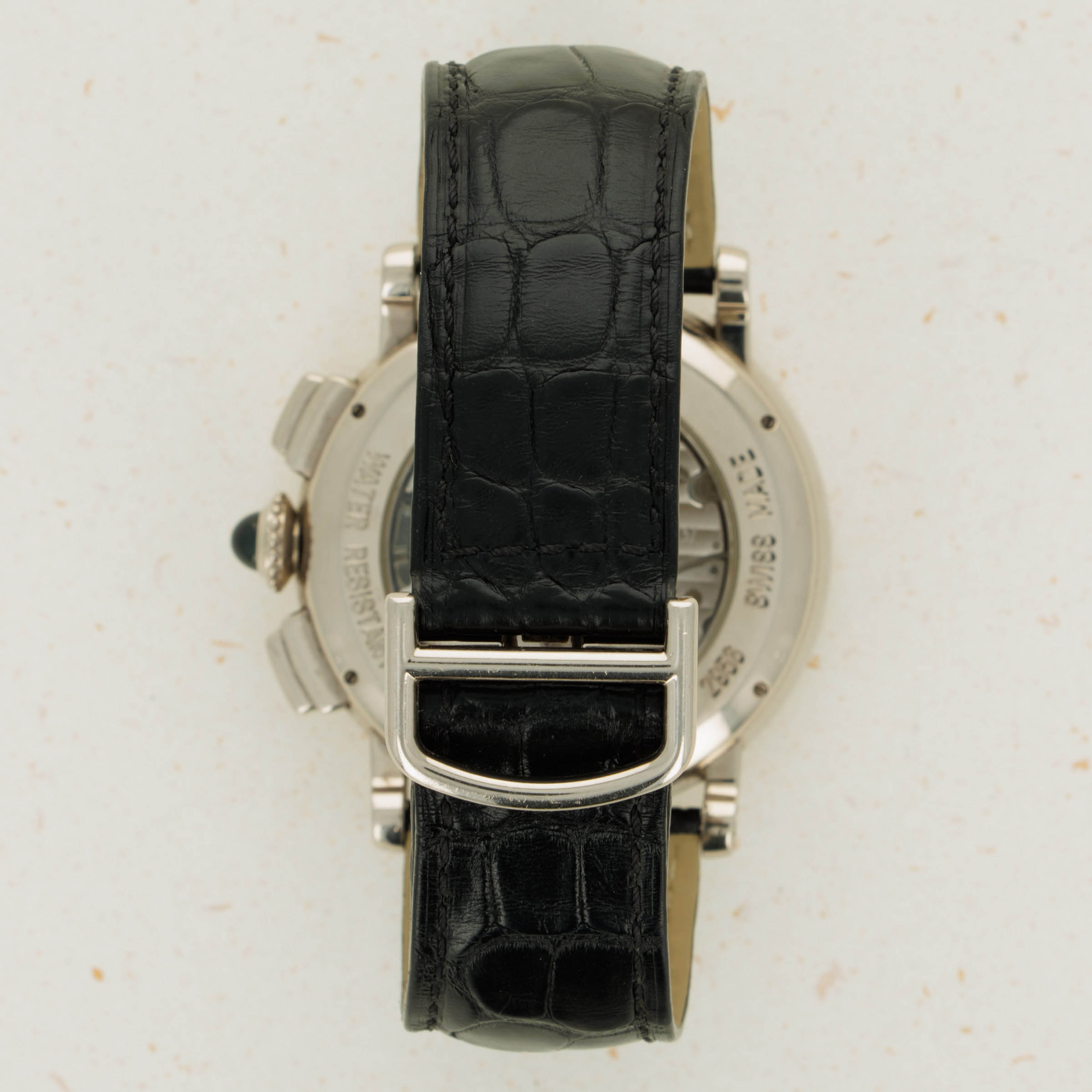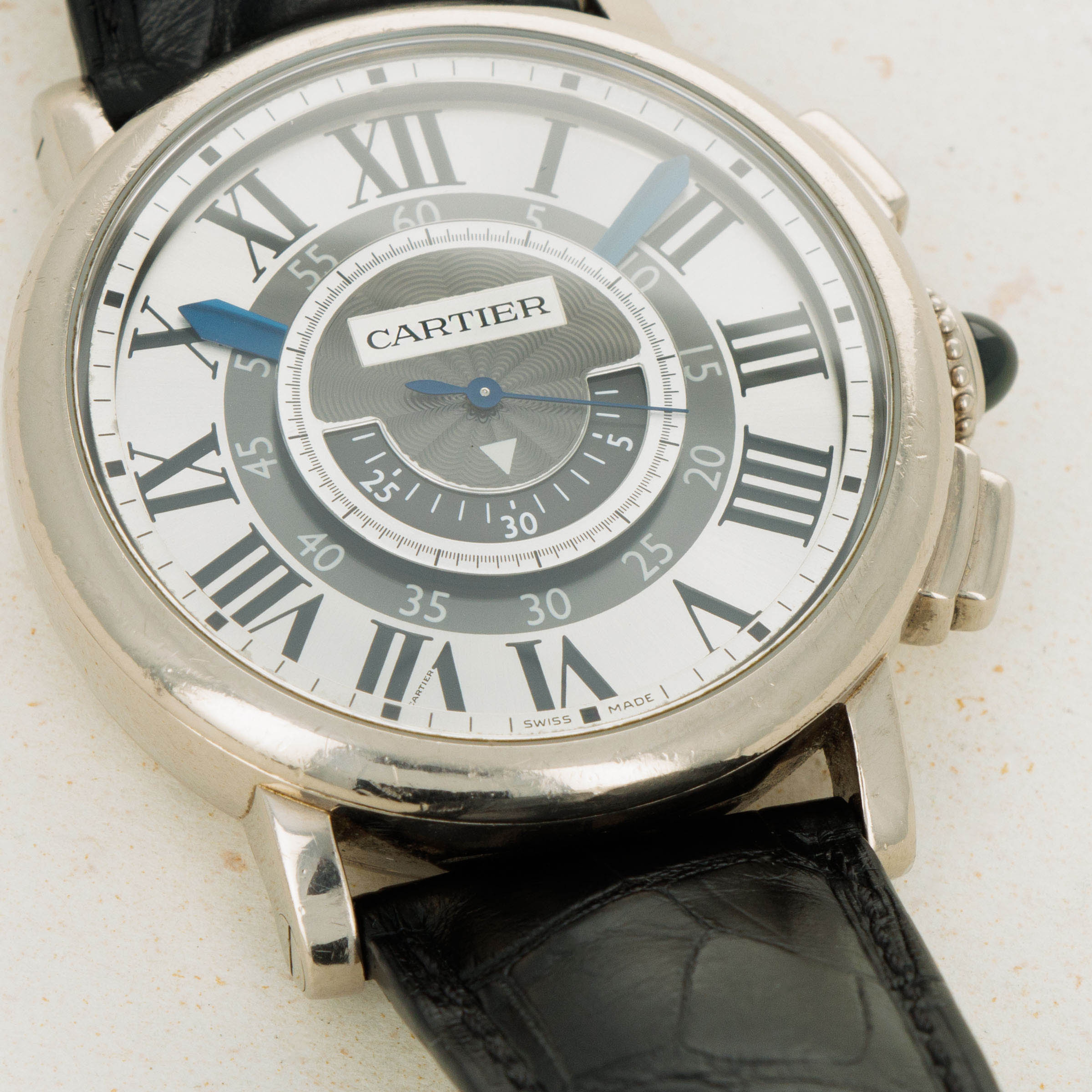 Larger than Cartier's traditional timepieces, the Rotonde de Cartier uses a 42mm 18kt white gold case to fit its impressive hand-wound movement and beautiful information-dense dial.