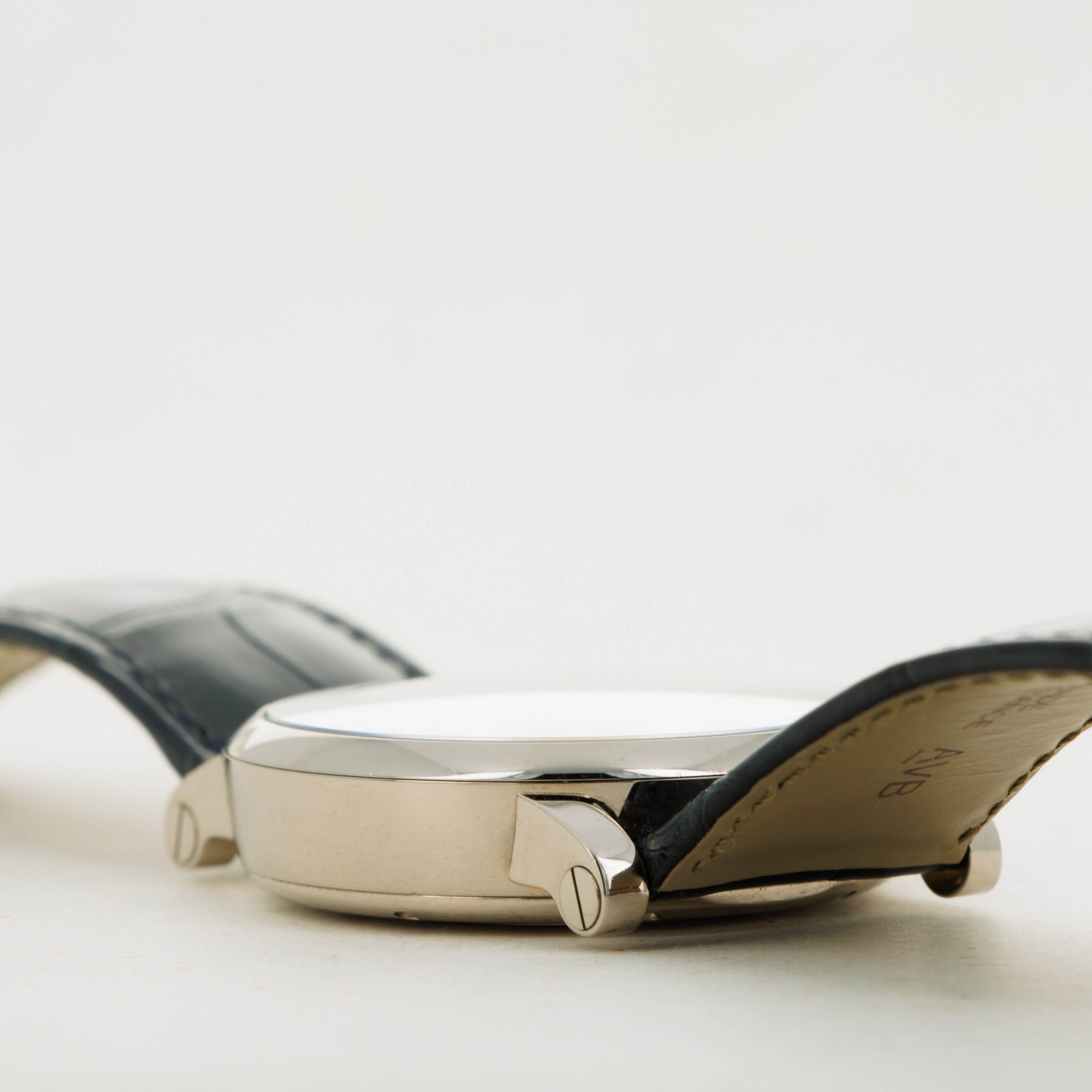 As elegant as anything, the ref. 3769's 40mm 18kt white gold case wears neatly on the wrist thanks to its perfectly circular design, thin bezel and curved lugs that lead the strap around the wrist.