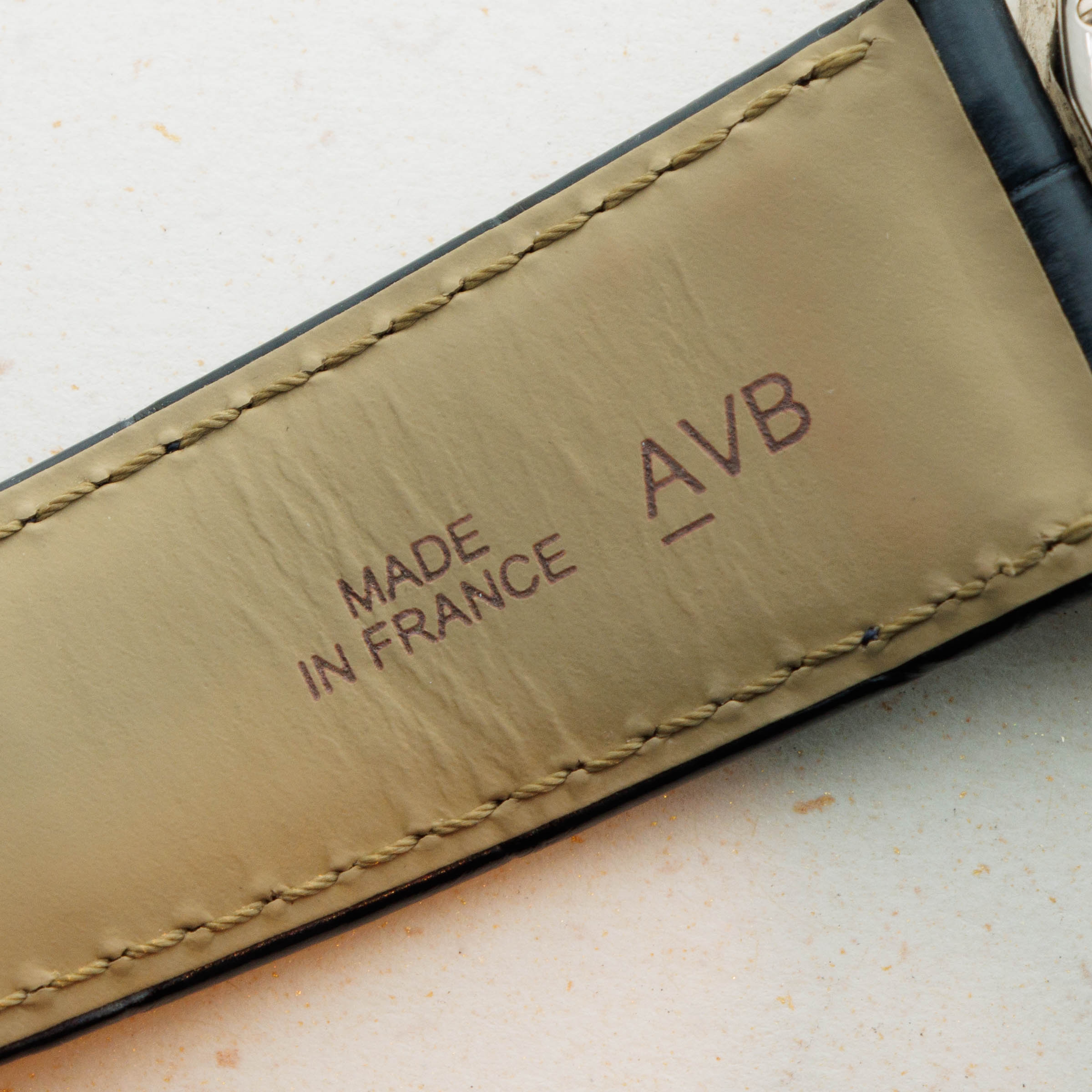 Boasting a bright blue dial with concentric guilloche engraving, the ref. 3769 features two chronograph subdials, a 30-minute and 12-hour, and a date aperture that stands handsomely at 6 o’clock amongst Cartier's signature Roman numerals and Breguet hands.
