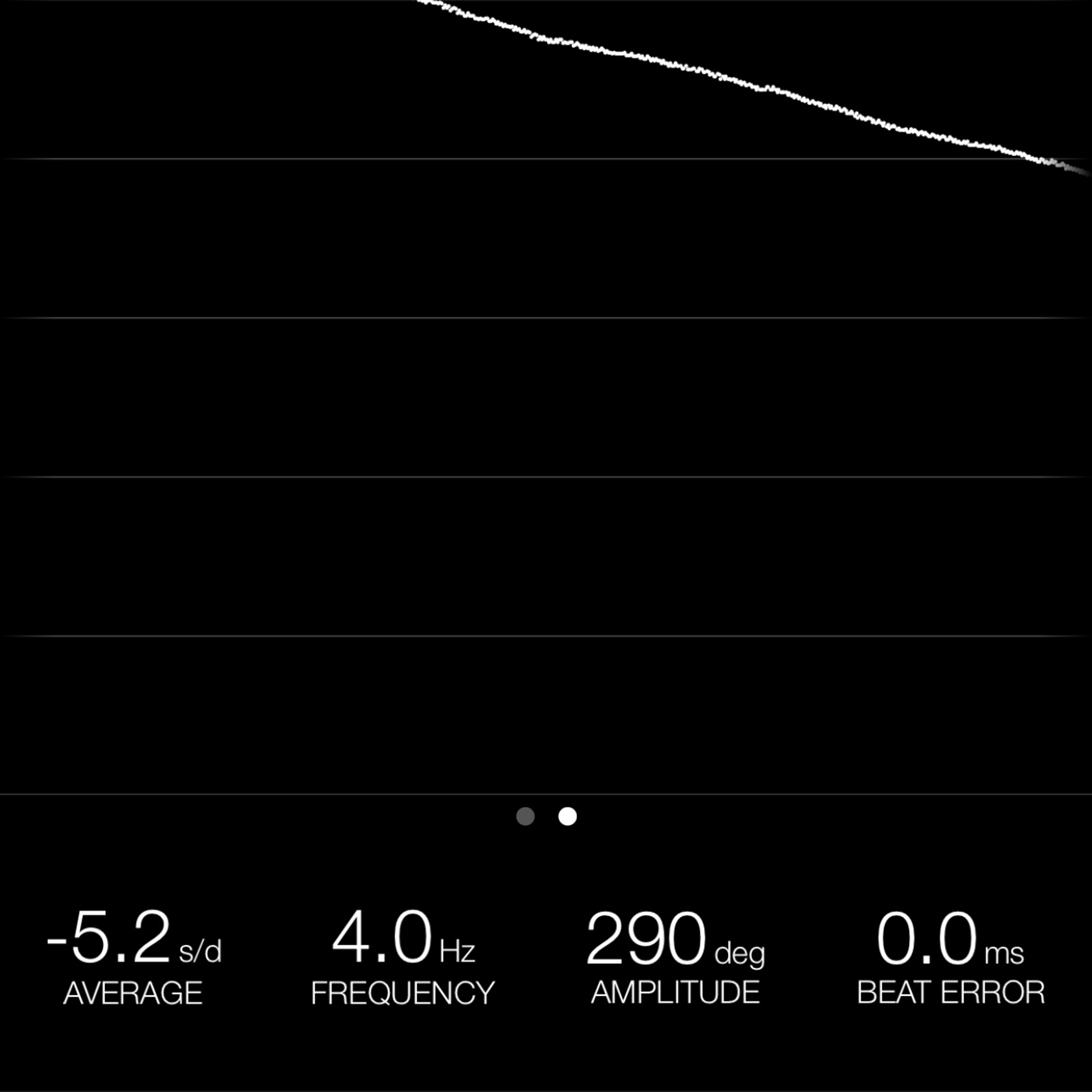 This reading was taken (crown down) with a ONEOF Accuracy Boutique Edition timing machine at time of cataloging. It is provided as a courtesy only, and shall not be construed as a warranty or guarantee of any kind. Please refer to our terms and conditions of sale for more information.