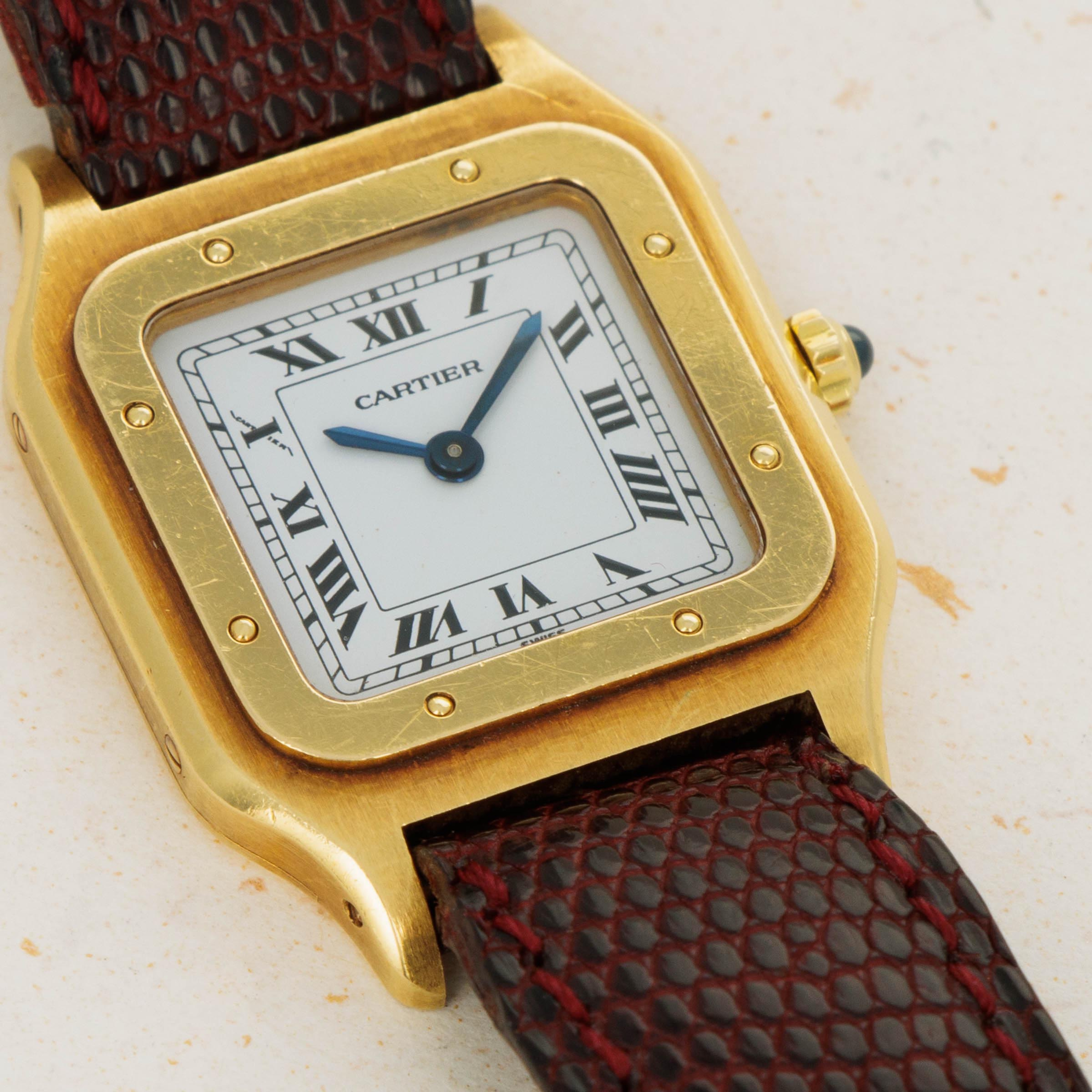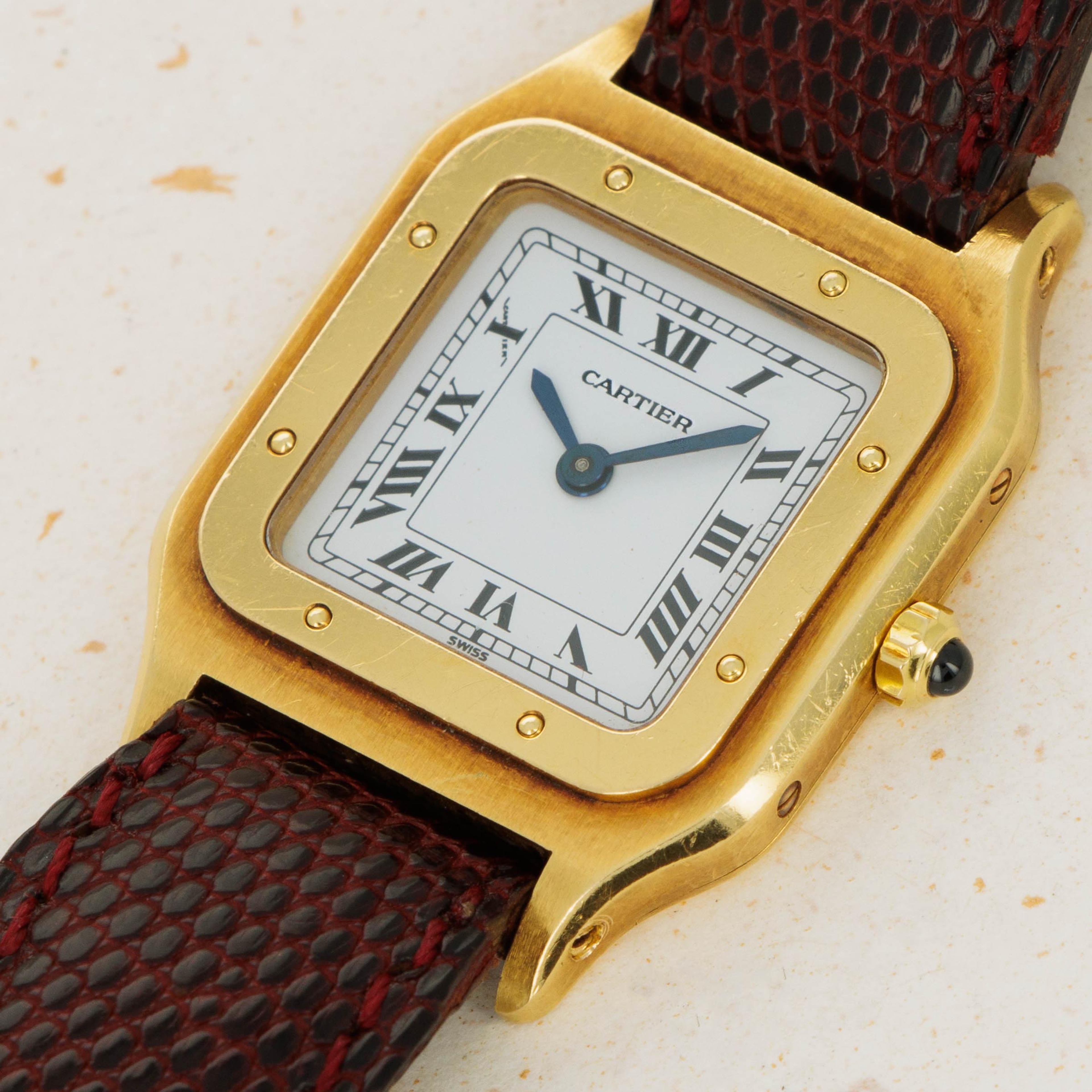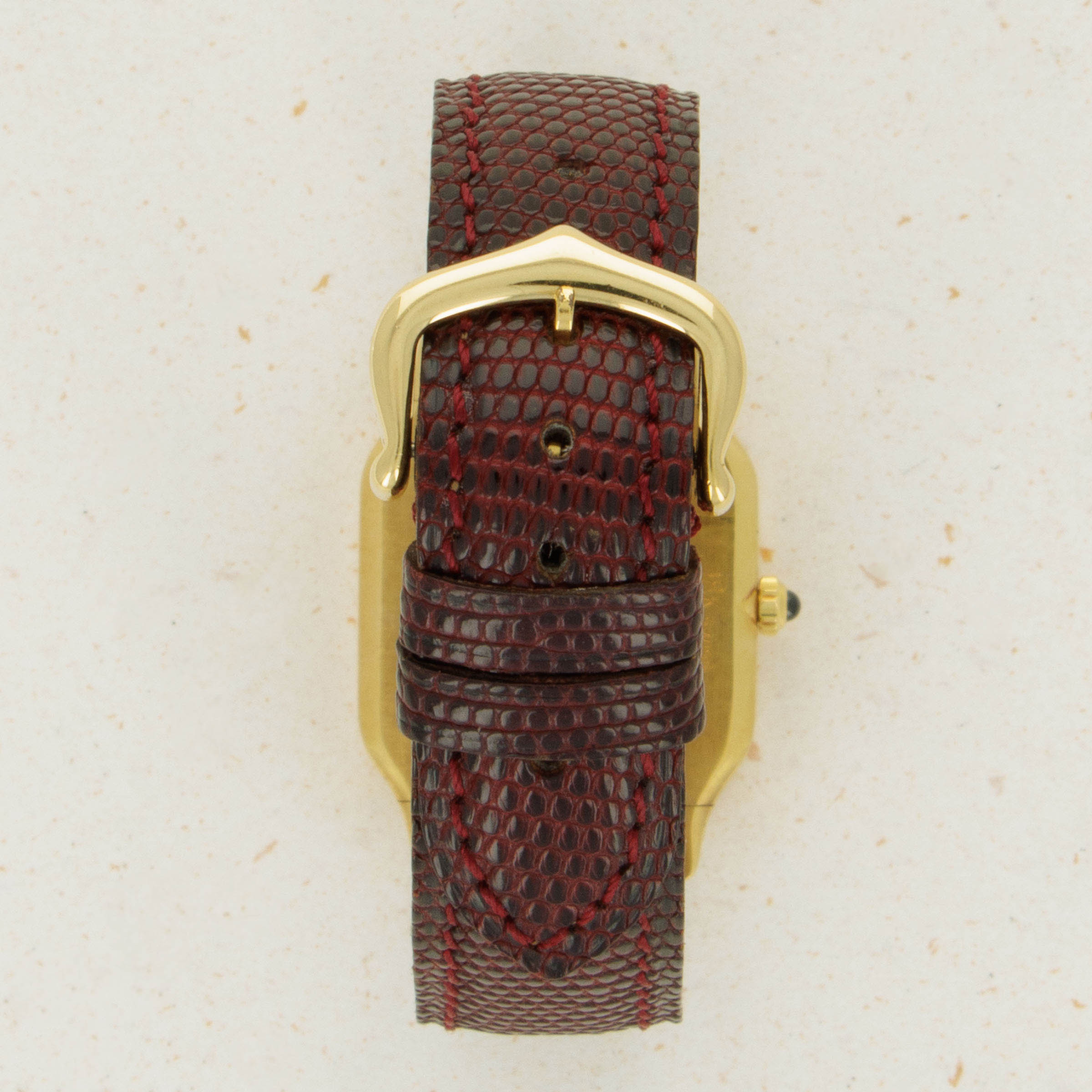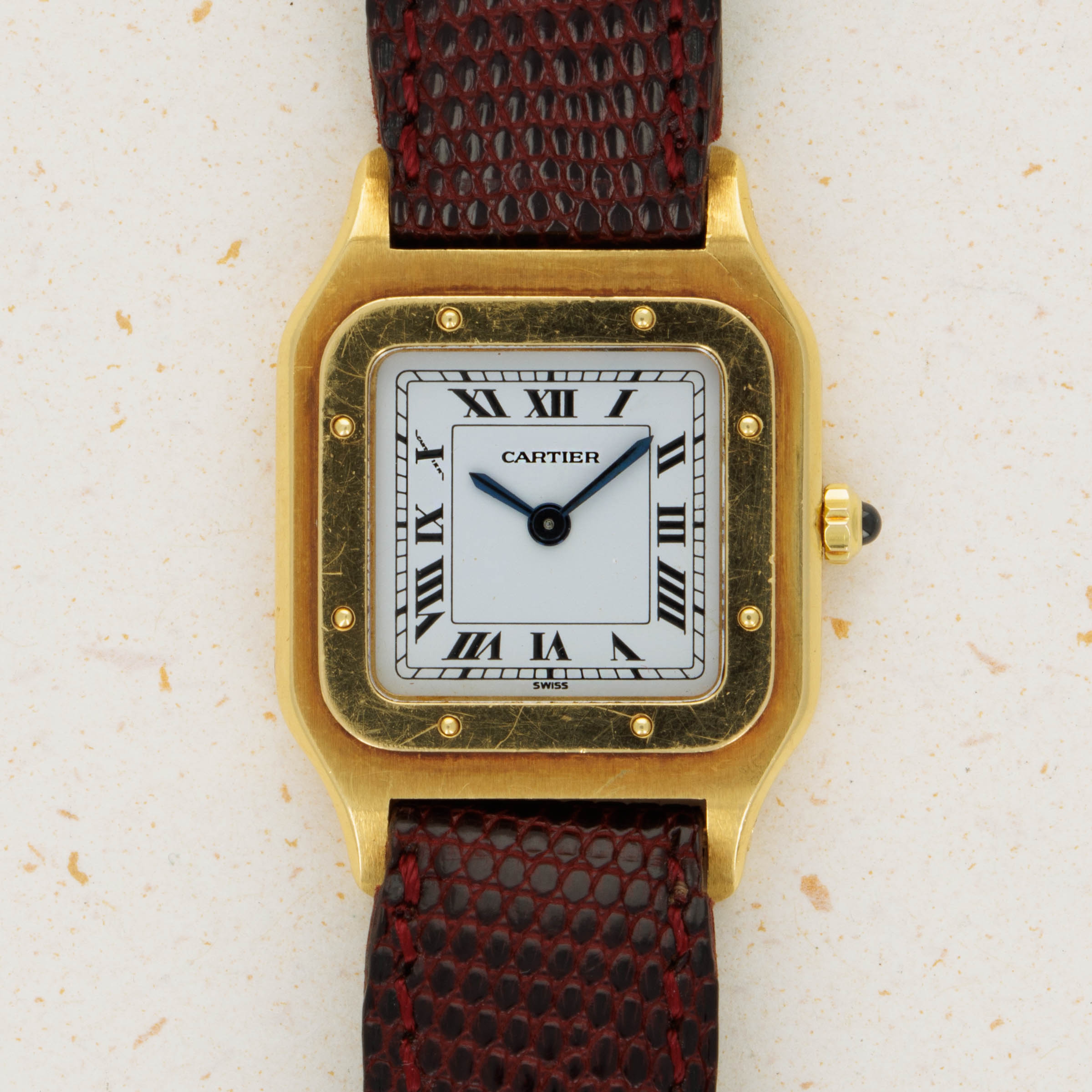 With the early aviation industry growing at unprecedented rates, one pioneering Brazilian aviator saw the need for a particular kind of tool - a pilot’s watch. So, this aviator, Alberto Santos-Dumont, went to Louis Cartier in 1904 and asked him to design a watch fit for flight. This watch became the Cartier Santos Dumont, the very first tool watch. Evolving through time as an extensive array of wonderful models, the Santos Dumont has become one of watchmaking’s most iconic designs, and is famed for creating the humble wristwatch as we know it. Offered here we have a Santos Dumont ref. 9605 from the 1990s that takes the Santos’ iconic design and packages it into a dense 23mm diameter package of 18kt yellow gold. Boasting an angular case with its distinctive bezel and Cartier’s signature dial design, this timepiece showcases Cartier’s impressive ability to create timeless designs, as evidenced by how popular the Santos and all of its subsequent sibling models continue to be in the modern age of watchmaking as we know it.