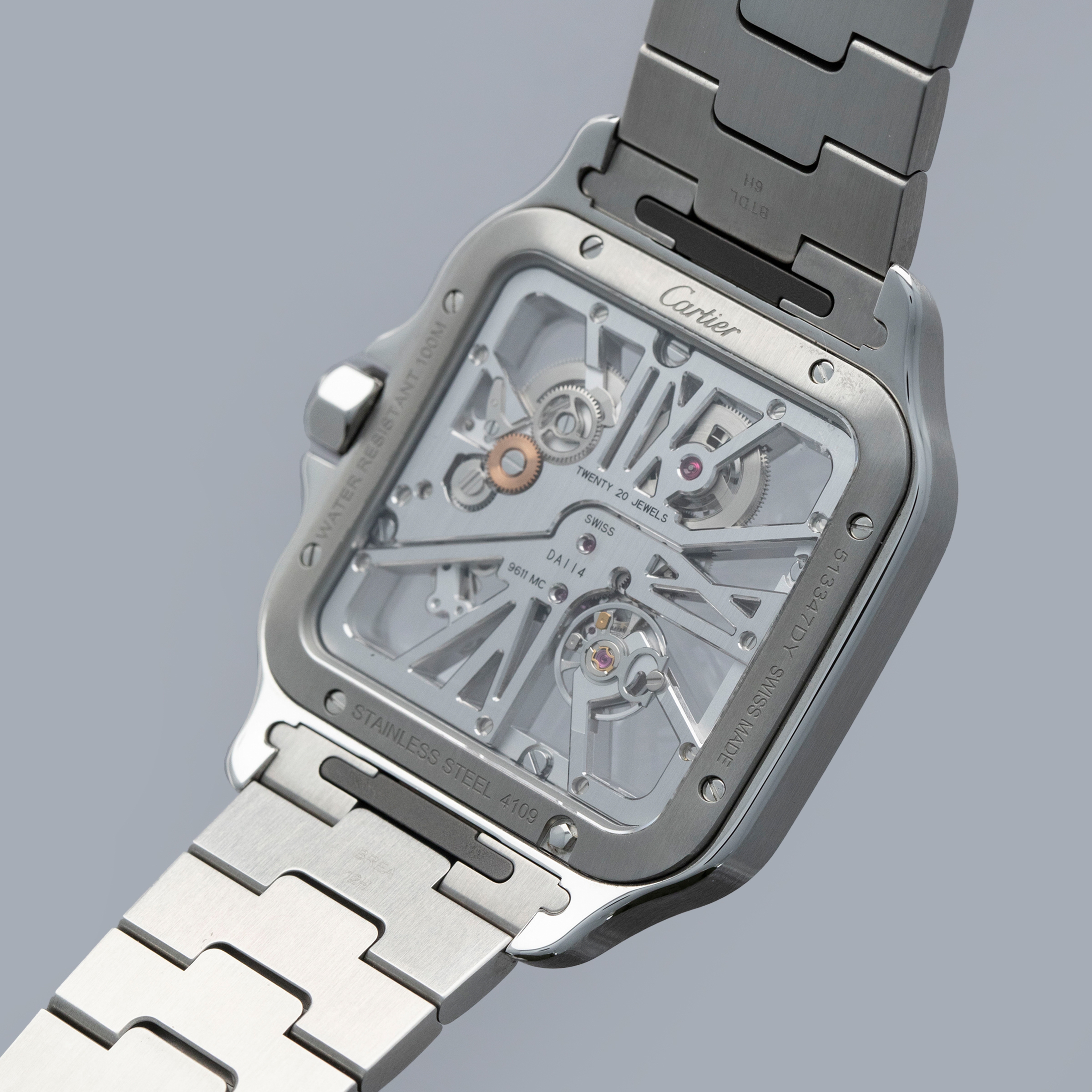 Famed for a litany of iconic timepieces like the Tank, Santos, Pasha and others, French jeweler and watchmaker Cartier are time and time again at the forefront of horological design in some way, shape or form. With key tenets of their design, such as their use of Roman numerals forming the lynchpin of their timeless aesthetic, it is only fitting that Cartier decided to incorporate Roman numerals into the skeletonized variant of their contemporary Santos de Cartier ref. WHSA0028. Launched in 2018, the Santos de Cartier Skeleton provides a wonderfully unencumbered view of its manual-wind cal. 9611MC movement, with its bridges being formed out of the Roman numerals that double as the hour markers in its dial. Additionally, on the ref. WHSA0028, these Roman numerals are filled with green enamel to give the watch a bright burst of color, and to match its green jasper winding crown cabochon. An incredibly creative and wonderfully executed synthesis between a technique that isn't often associated with the brand and a key visual characteristic of the brand, the Santos de Cartier Skeleton is one of the finest skeletonized watches on the market today, all the while perfectly representing Cartier and their incredible climb up the horological ladder as they continue to challenge brands that were previously considered to be beyond their level with regards to raw horological skill.