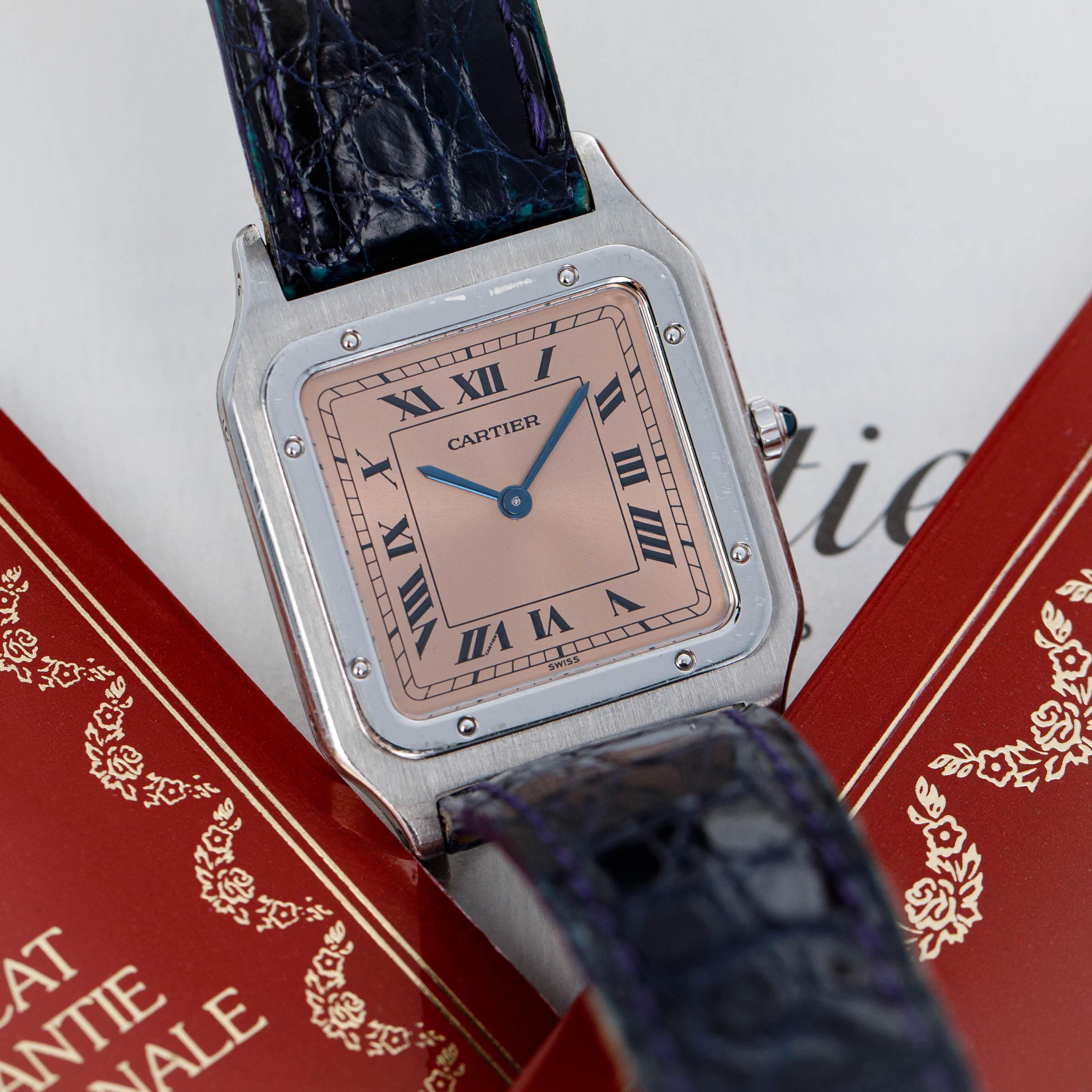 Cartier Santos Dumont 1575 Platinum Salmon Dial Limited Edition Box and Papers