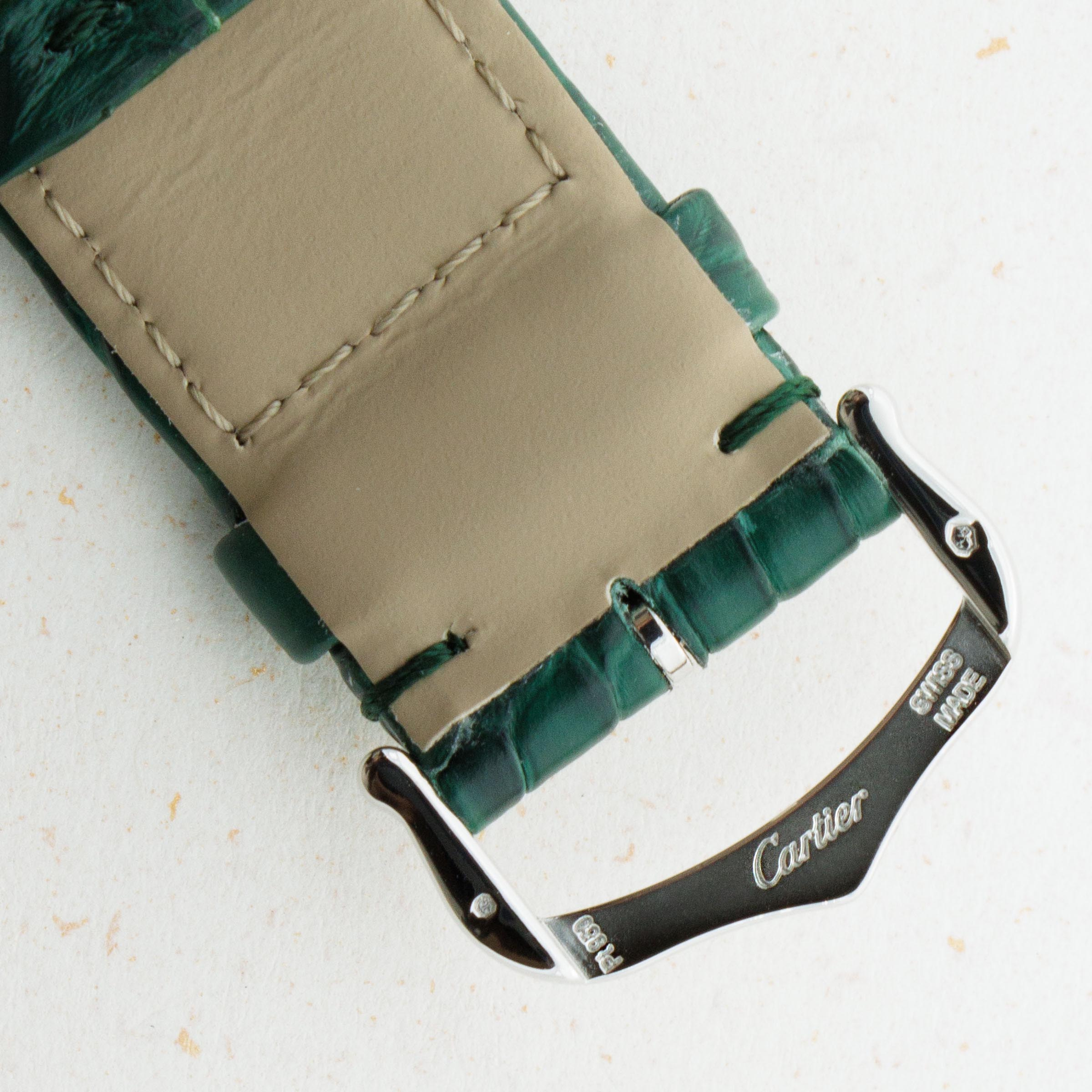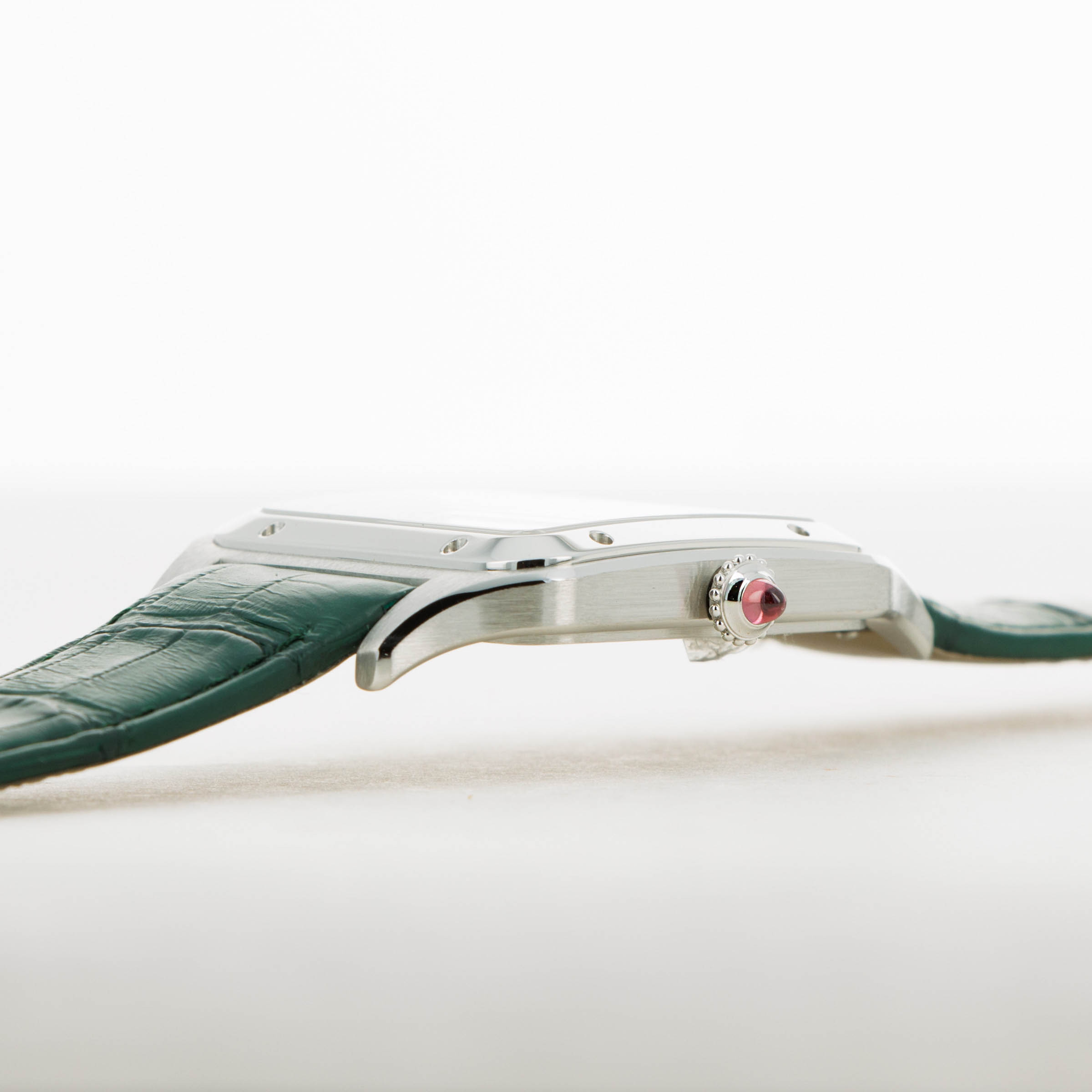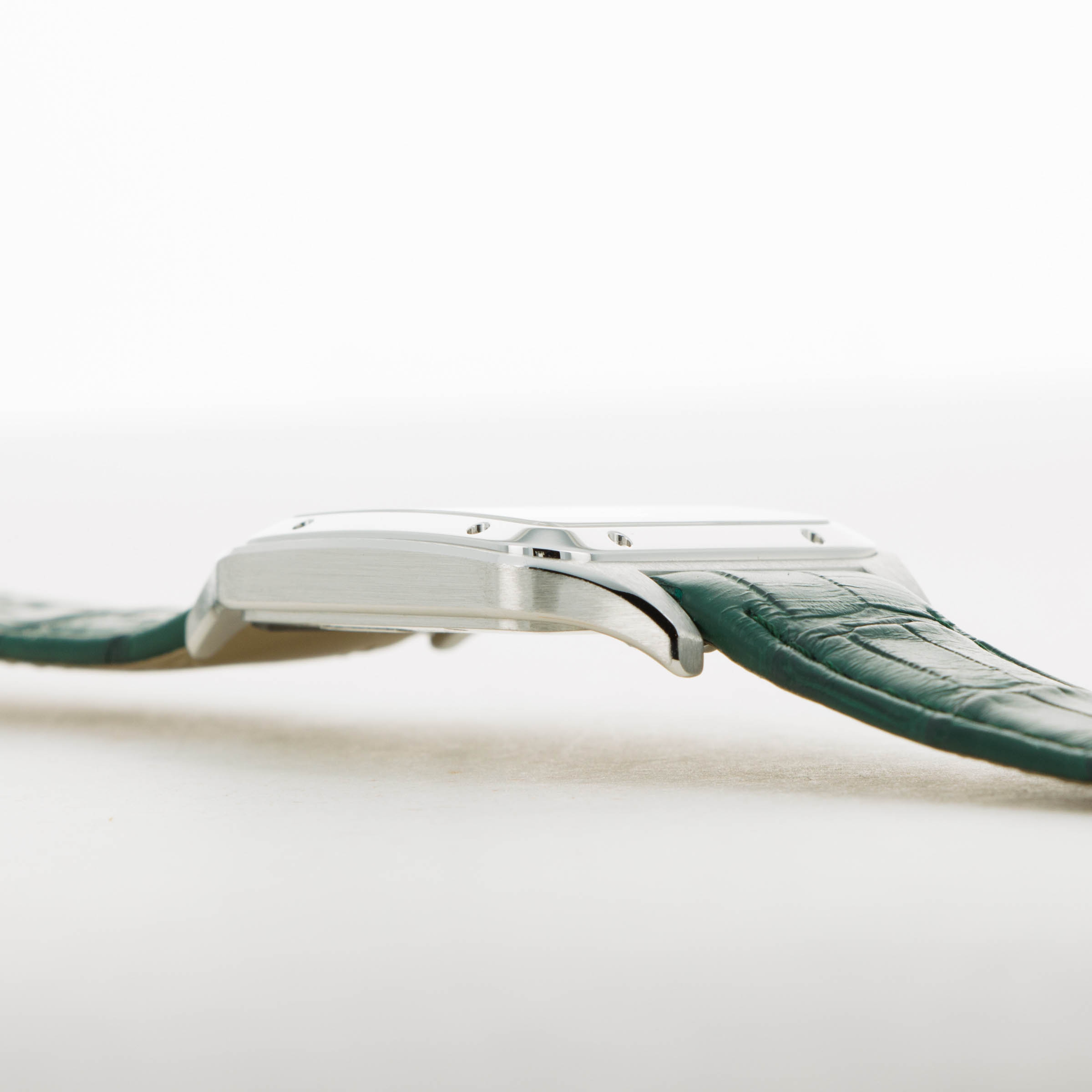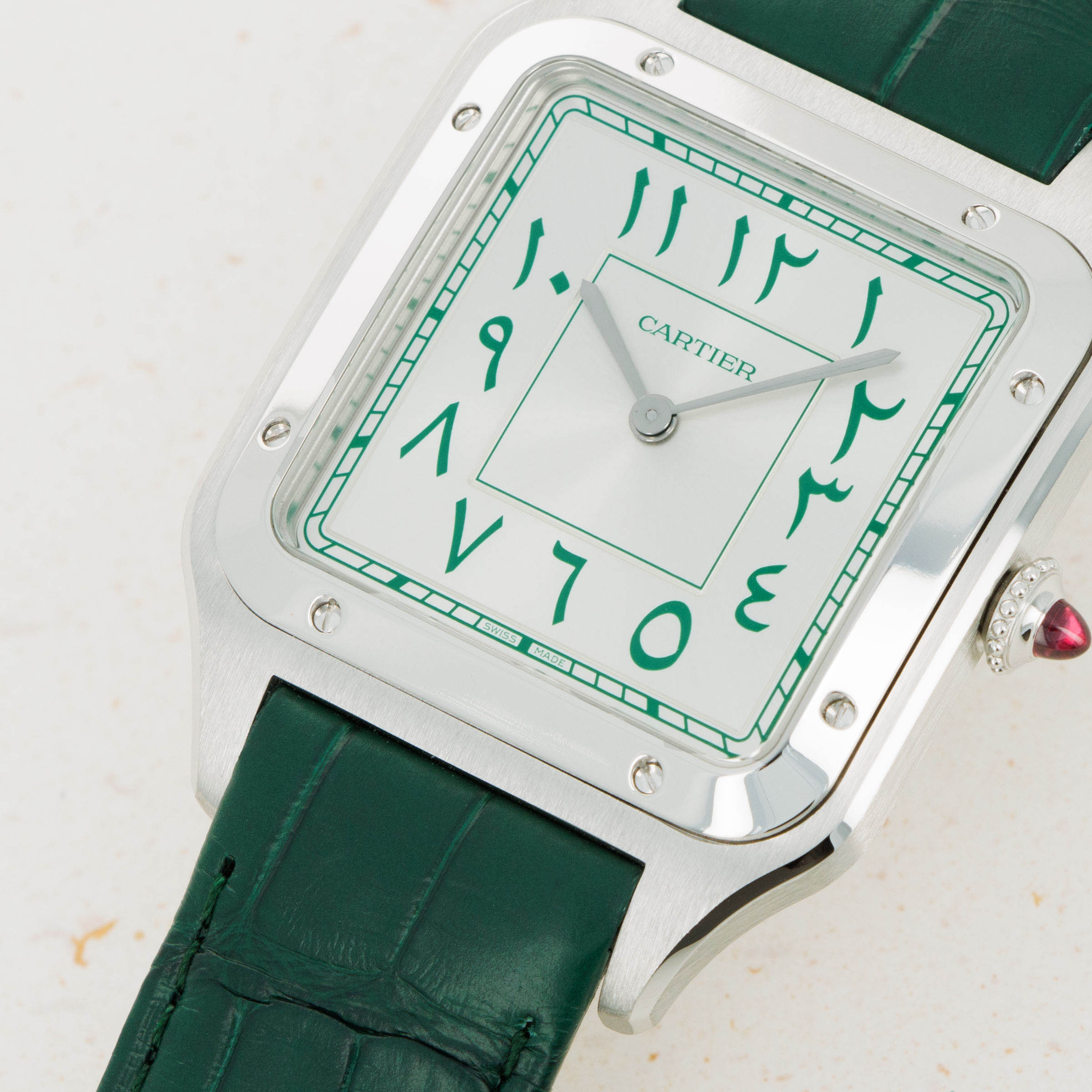 Imbued with Cartier's iconic design and its own heritage as the world's first tool watch, the Santos Dumont is important as the timepiece that set the entire industry as we know it today into motion. A limited-edition example of just 100 pieces, this variant tastefully pays homage to the Middle East through its platinum construction and tasteful use of green across its dial.