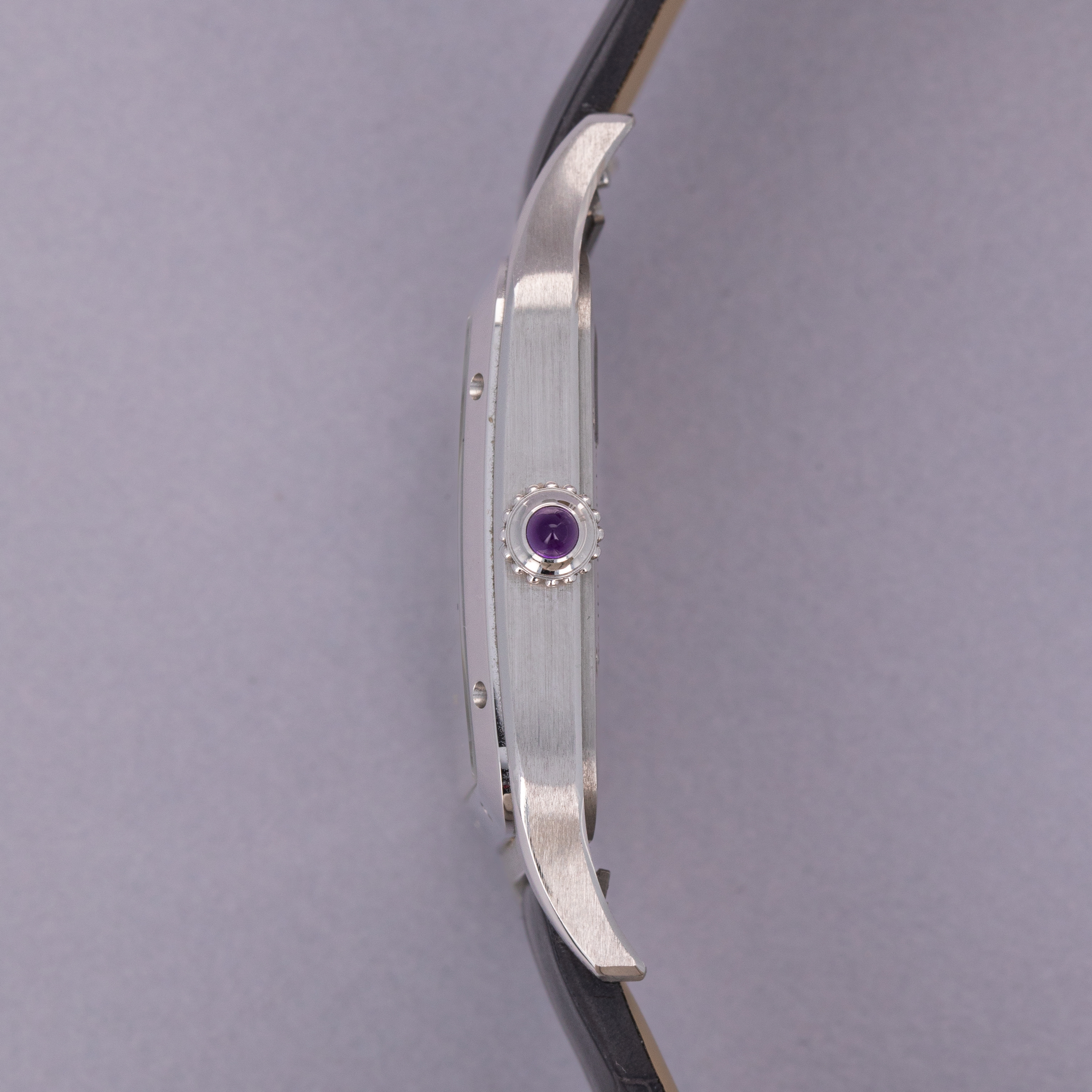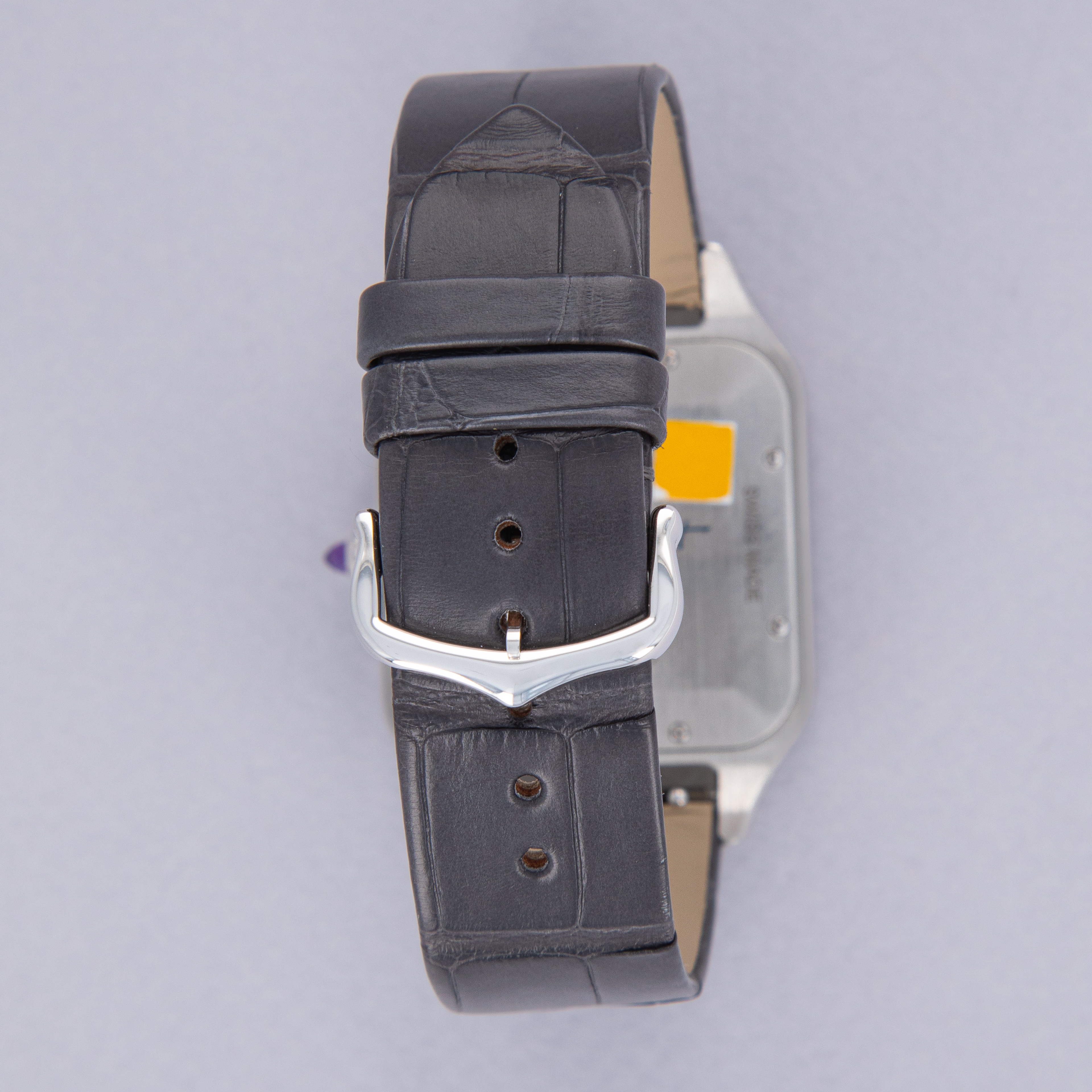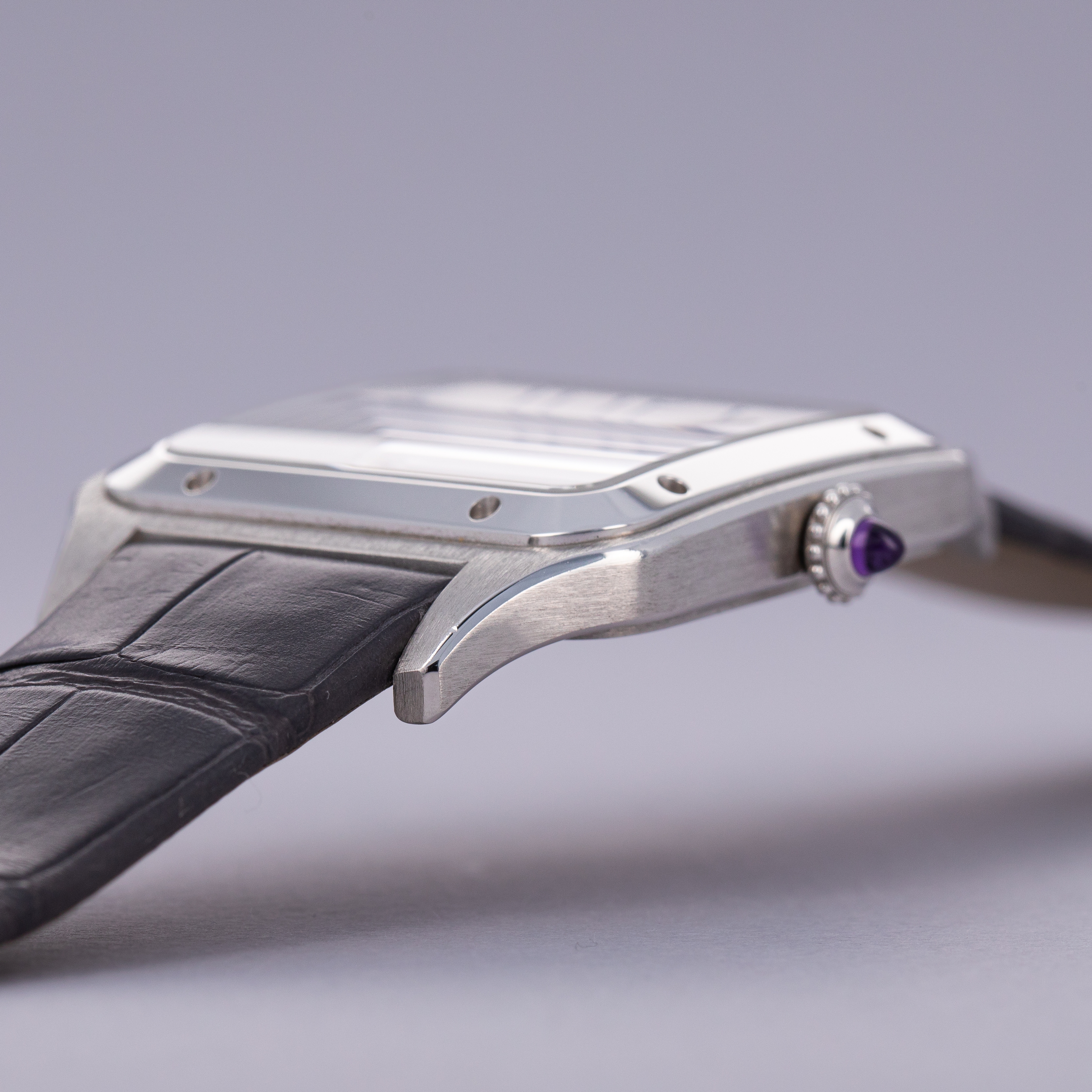 Boasting the Santos Dumnont's construction in its XL sizing and made of platinum with a purple amethyst in its winding crown, the ref. WGSA0086 brings a truly unique wrist presence that Cartier doesnt often speak to.