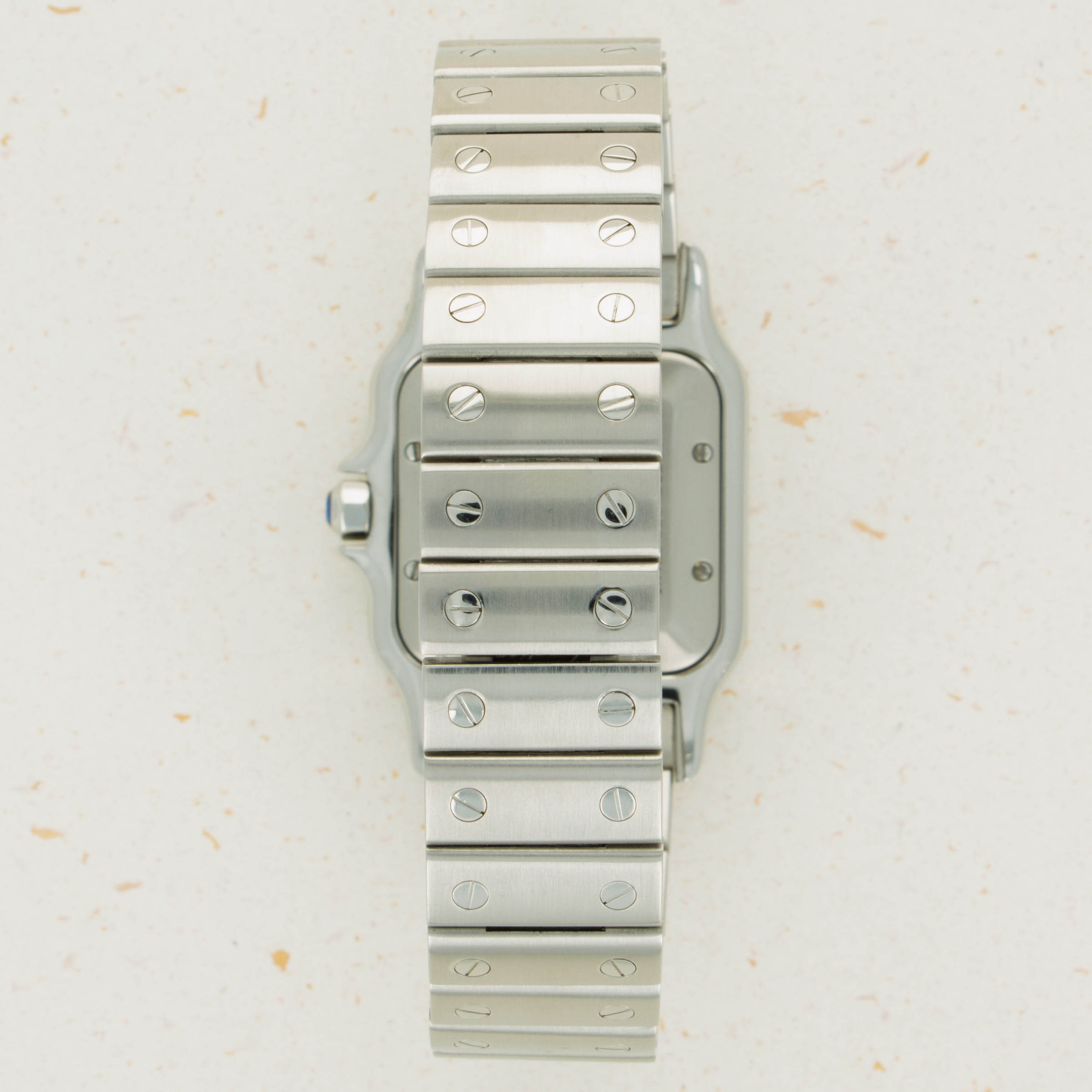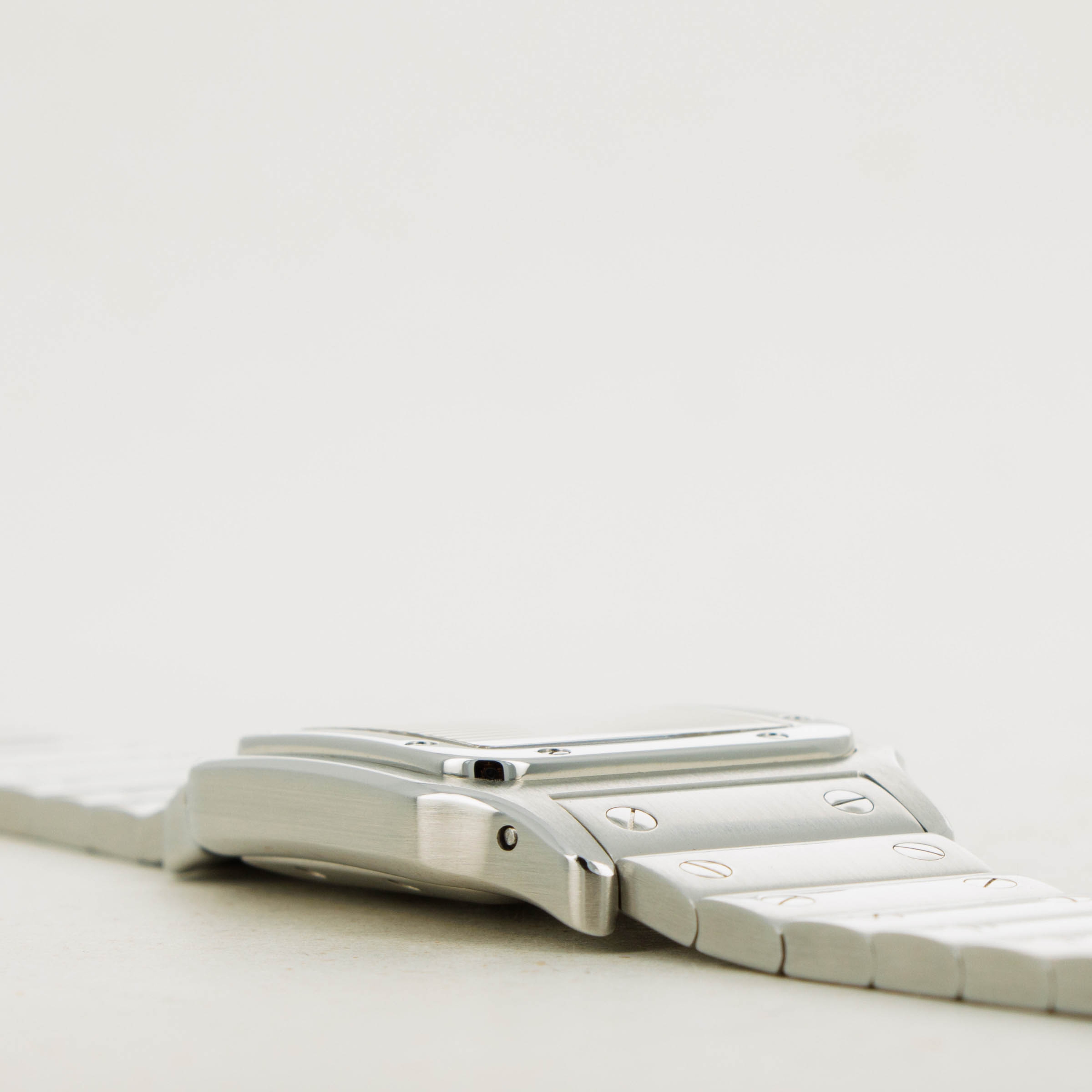 Perhaps one of the most legendary timepieces ever, the Cartier Santos is the watch we must thank for the modern horology industry that we all know and love. Designed in 1904 as the first-ever pilot’s watch and thus the first-ever tool watch, the Cartier Santos has continued to push boundaries ever since it was strapped to the wrist of famous aviator Alberto Santos-Dumont. As the story goes, Alberto asked Louis Cartier for a wristwatch that he could wear while flying as it would be so much more practical than his using his usual pocket watch while also trying to control his plane. Evolving through time like most pieces of design, the Cartier Santos has been characteristically fluid in its unique ability to encapsulate the aesthetic zeitgeist of whatever era it finds itself in. As such, Cartier released the Cartier Santos Galbee in 1987 to capitalise on the growing market for angular integrated bracelet watches thanks to the popularity of the Royal Oak, Nautilus and other such watches. With its integrated bracelet, exposed screws, angular design, raised polished bezel, distinctive bracelet and classical Cartier dial, the Santos Galbee was a success and since then has continued to grow as a collection, with the ref. 2319 that we have here representing the mid-sized variants that were offered within the collection during the 2000s.