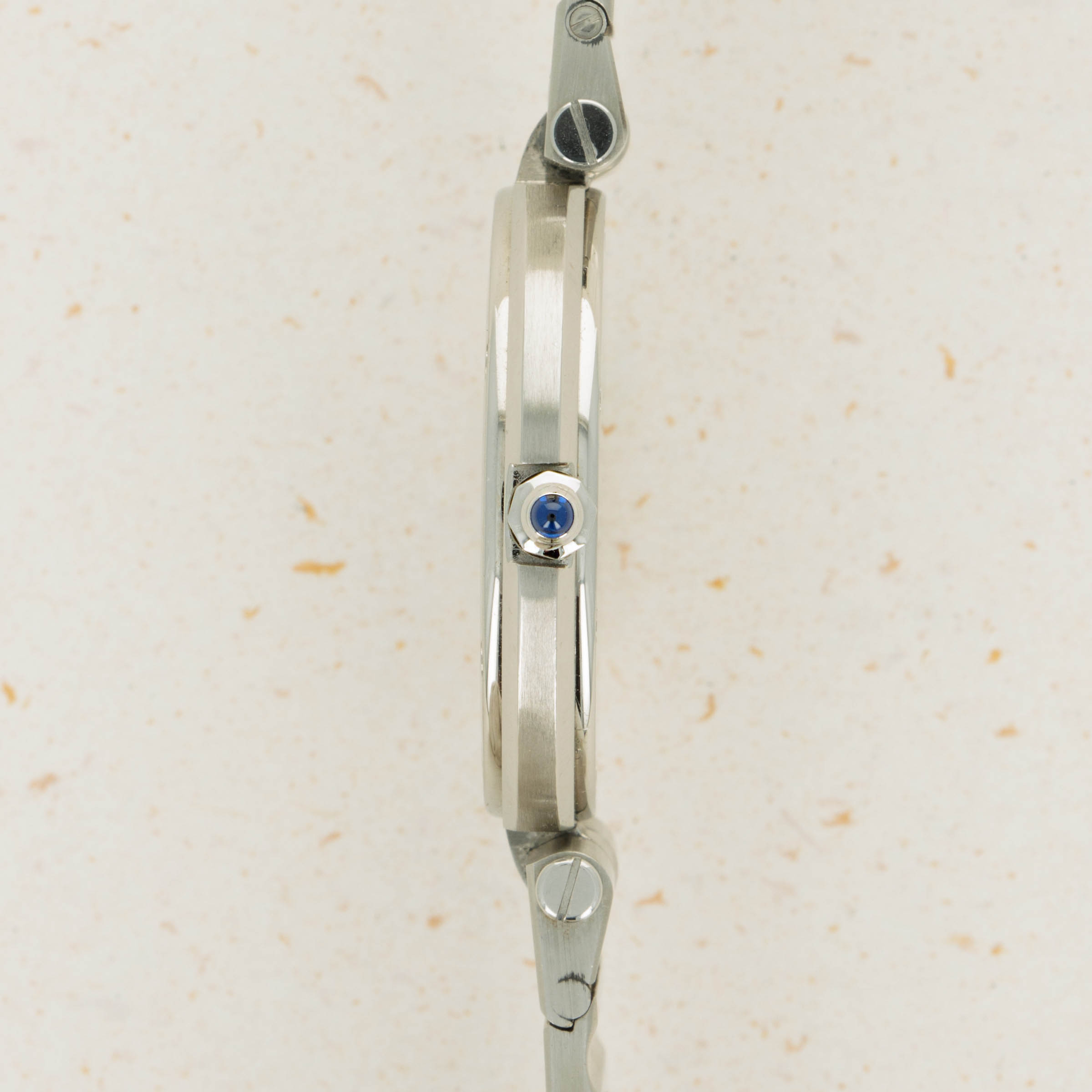 Perhaps one of the most legendary timepieces ever, the Cartier Santos is the watch collection we must thank for the modern horology industry that we all know and love. Designed in 1904 as the first-ever pilot’s watch and thus the first-ever tool watch, the Cartier Santos has continued to push boundaries ever since it was strapped to the wrist of famous aviator Alberto Santos-Dumont. As the story goes, Alberto asked Louis Cartier for a wristwatch that he could wear while flying as it would be much more practical than using his pocket watch while also trying to control his plane. Evolving through time like most pieces of design, the Cartier Santos collection has been characteristically fluid in its unique ability to encapsulate the aesthetic zeitgeist of whatever era it finds itself in, and the Santos Vendome Ronde collection, which the example we have here hails from, traces its design language back through three collections from Cartier’s collection over the years. To begin with, it features a round case shape that is borrowed from the Cartier Ronde, which was the brand’s first round watch released in 1937. Secondly, the watch also forgoes the traditional extended ‘shoulder lugs’ on the left and right side of the case, like the Cartier Vendôme. It features a single lug at the 6 and 12 o’clock position that holds a bar that connects to the metal bracelet, which then includes a distinctive screwed design that is inspired by the Cartier Santos itself, and so the Santos Vendôme Ronde’s name is born from the trio of inspirations that created this beautiful timepiece and classic piece of Cartier design.
