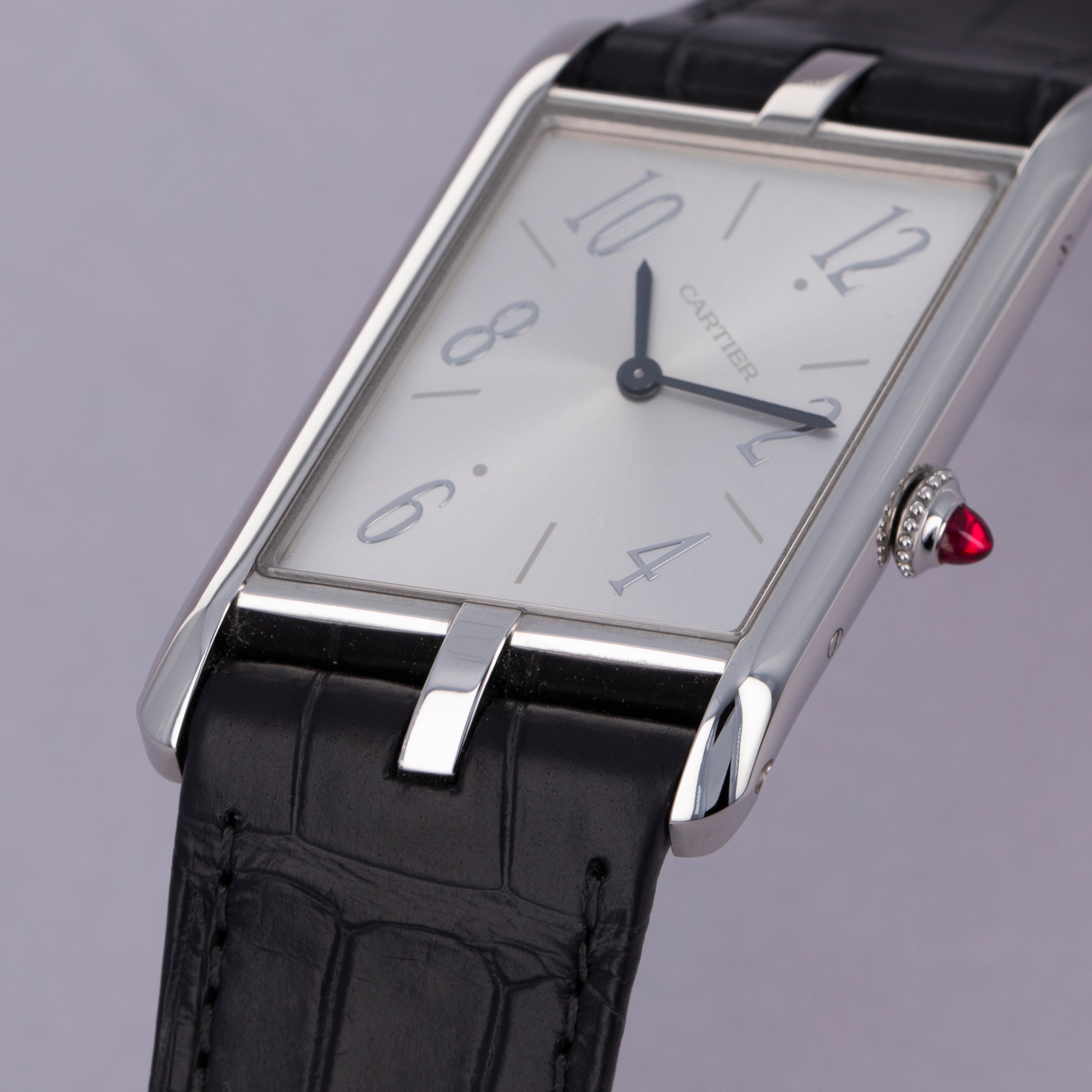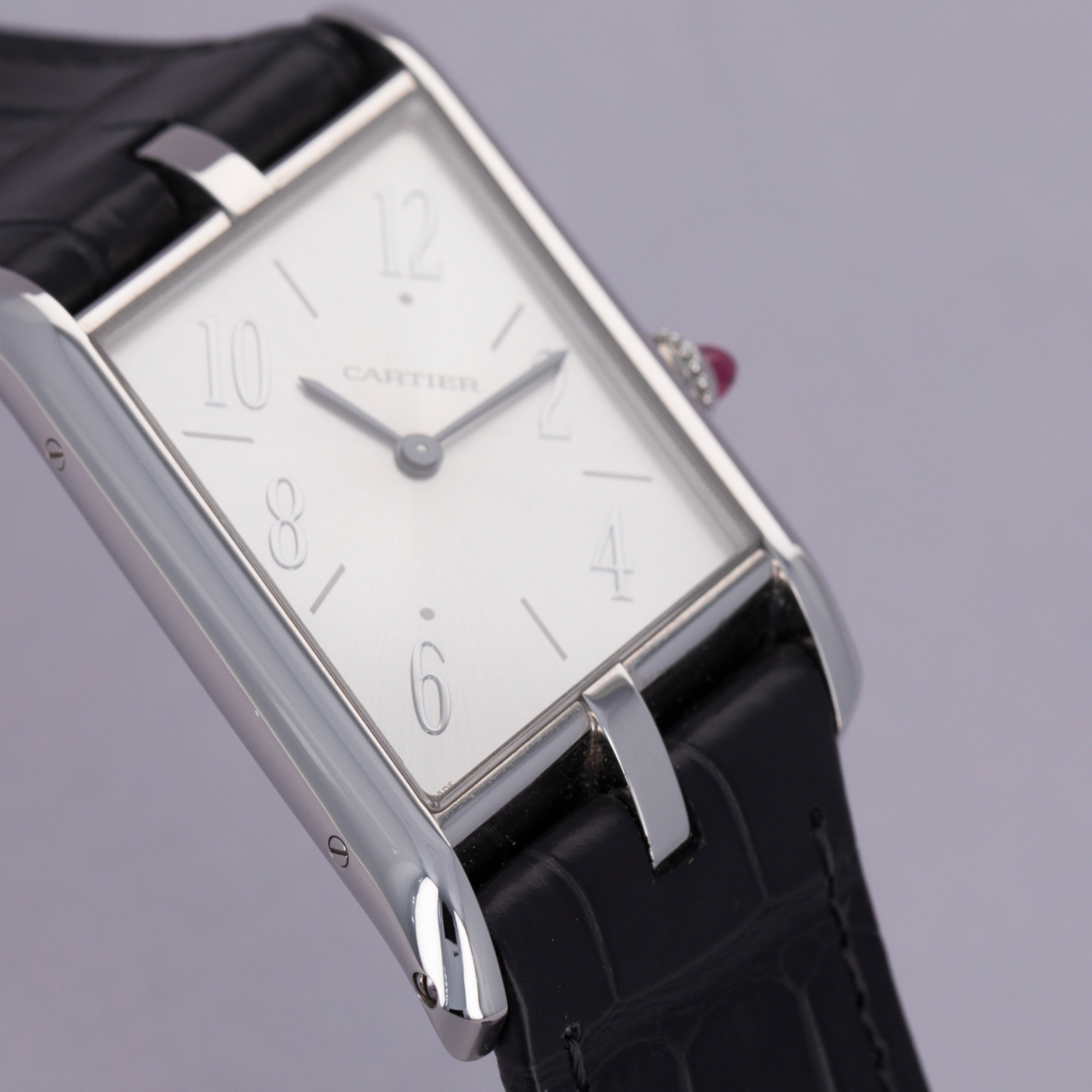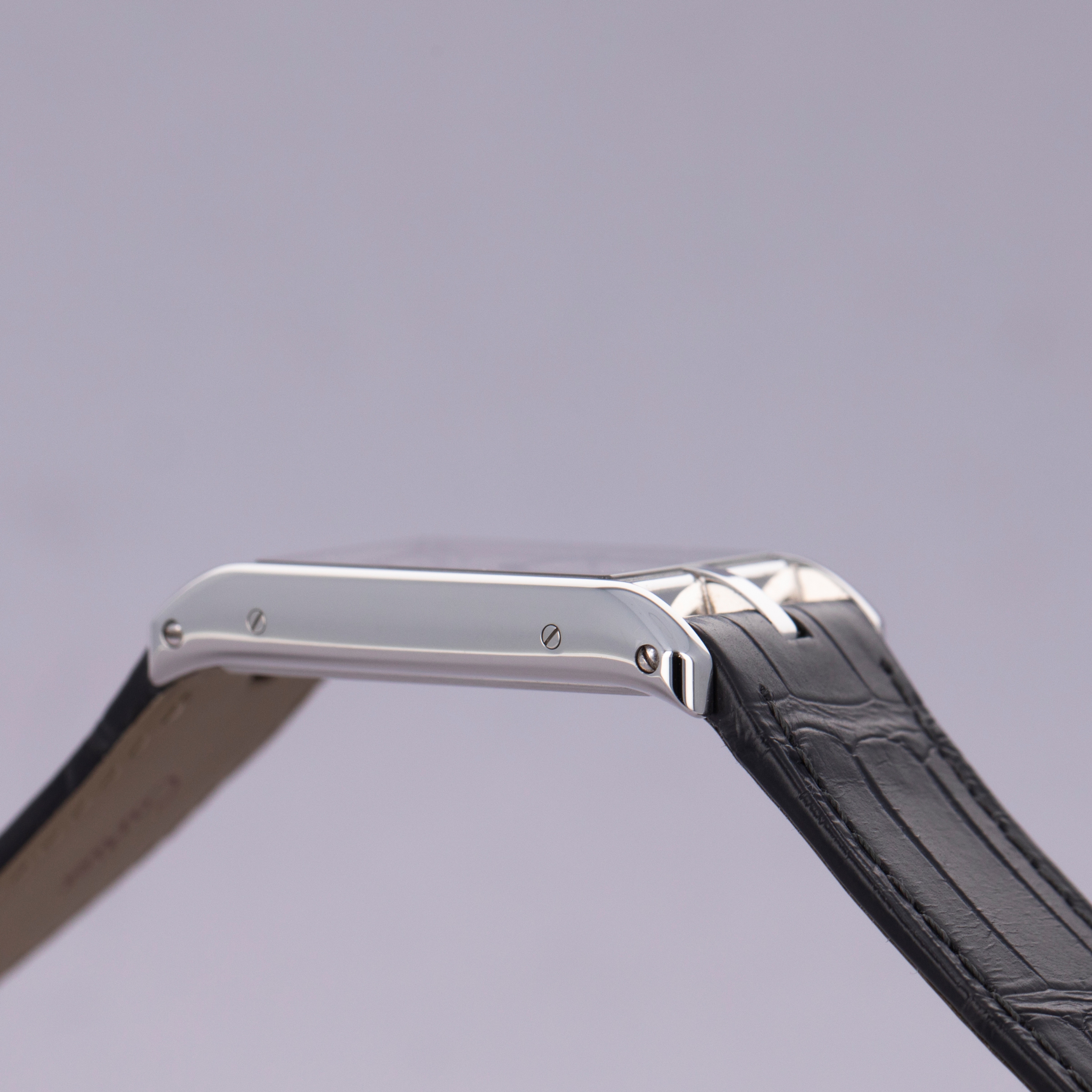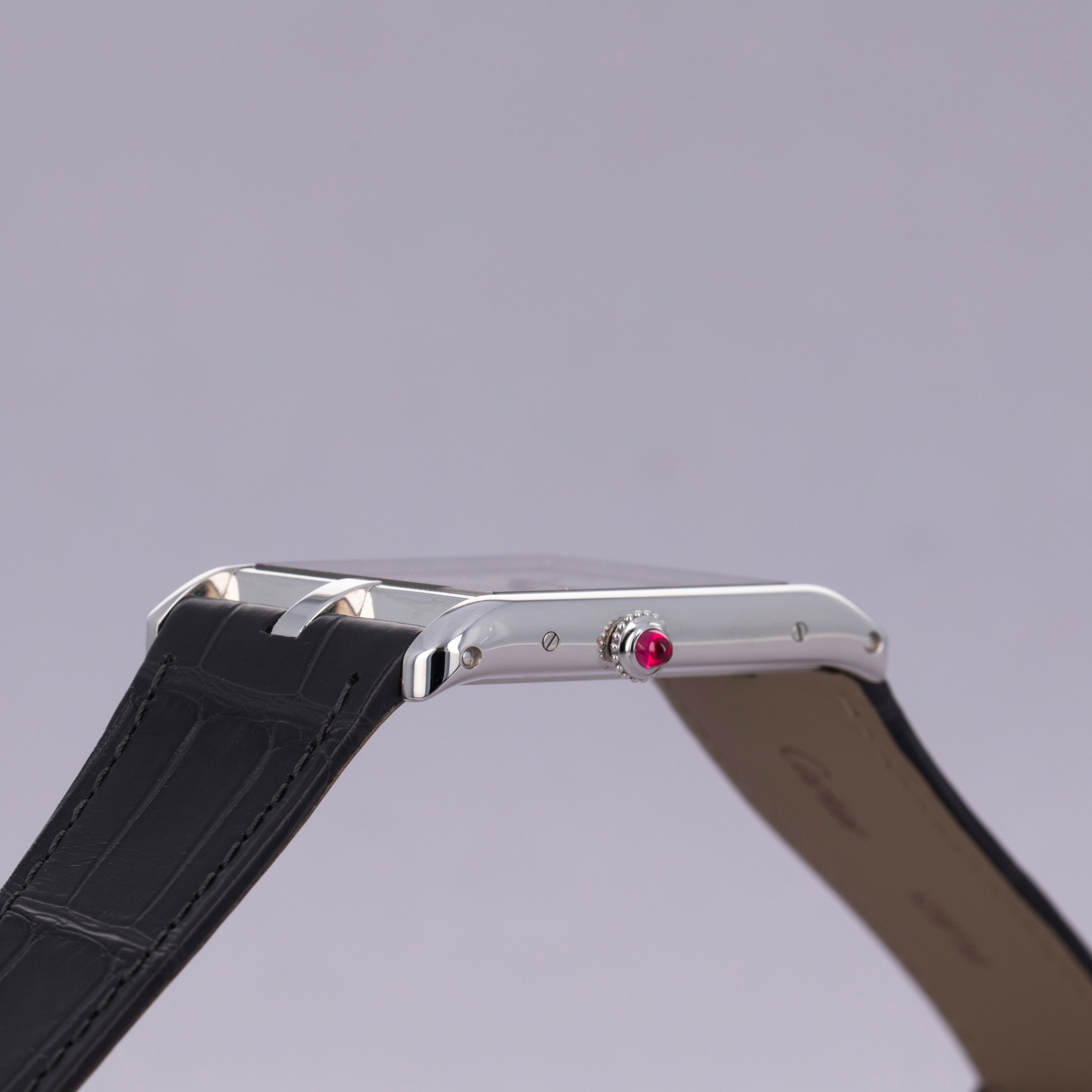With its angled design, the Tank Asymètrique enables its wearer to read the time quickly and easily while their arms are stretched in front of them, like when holding a steering wheel.