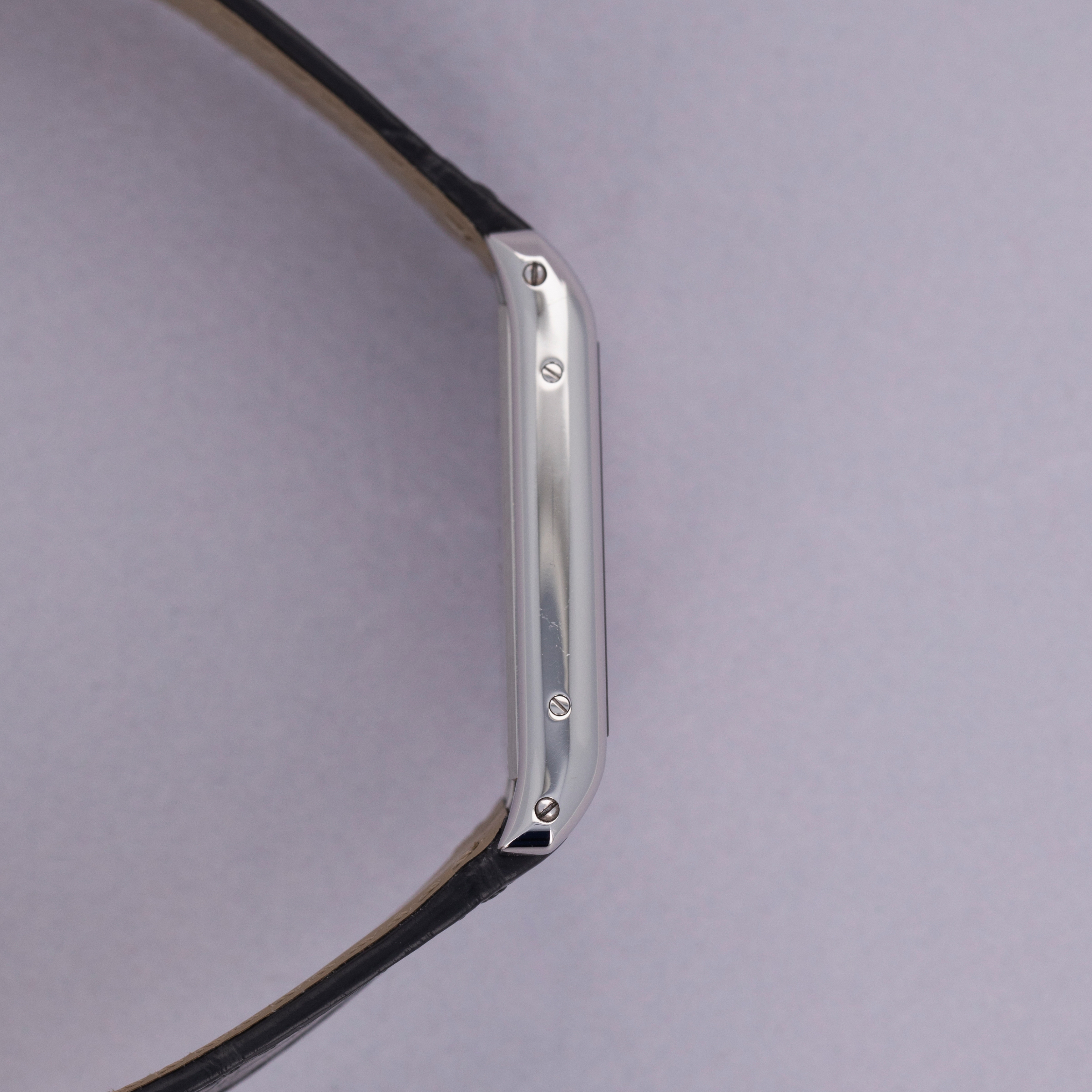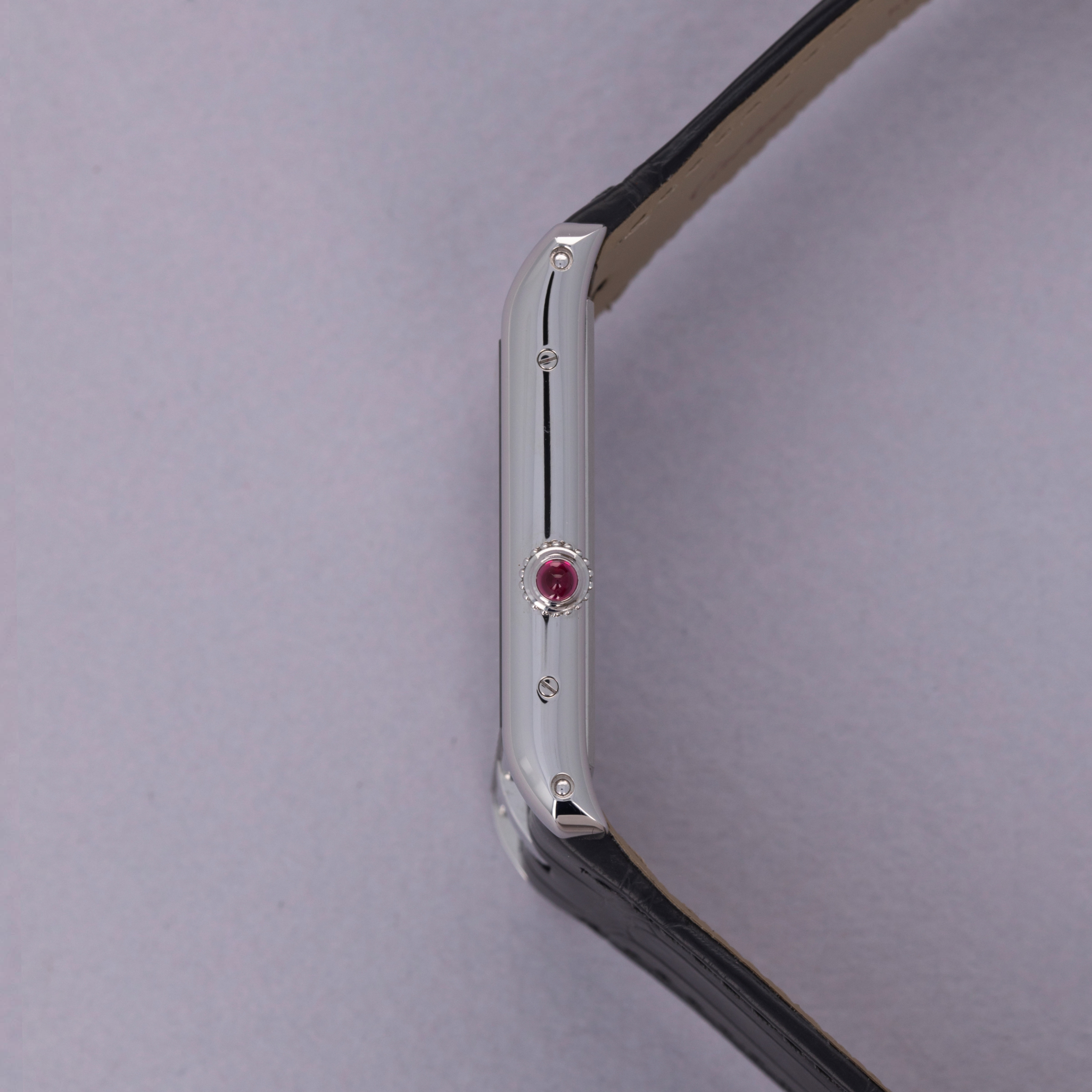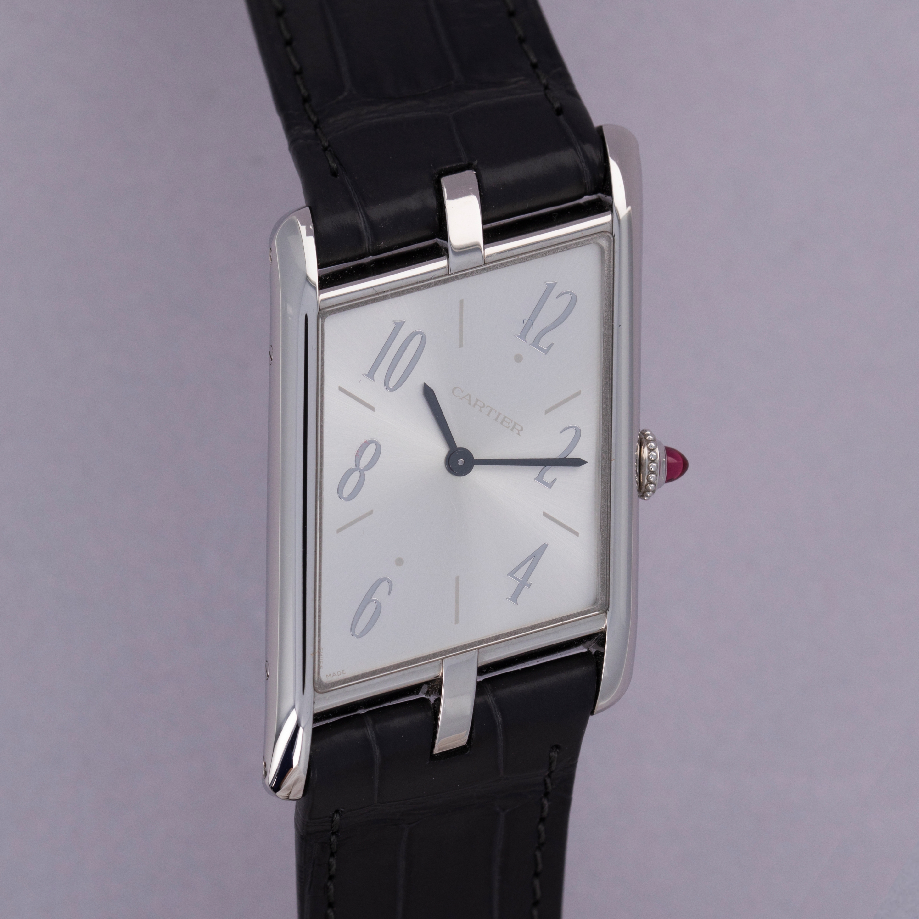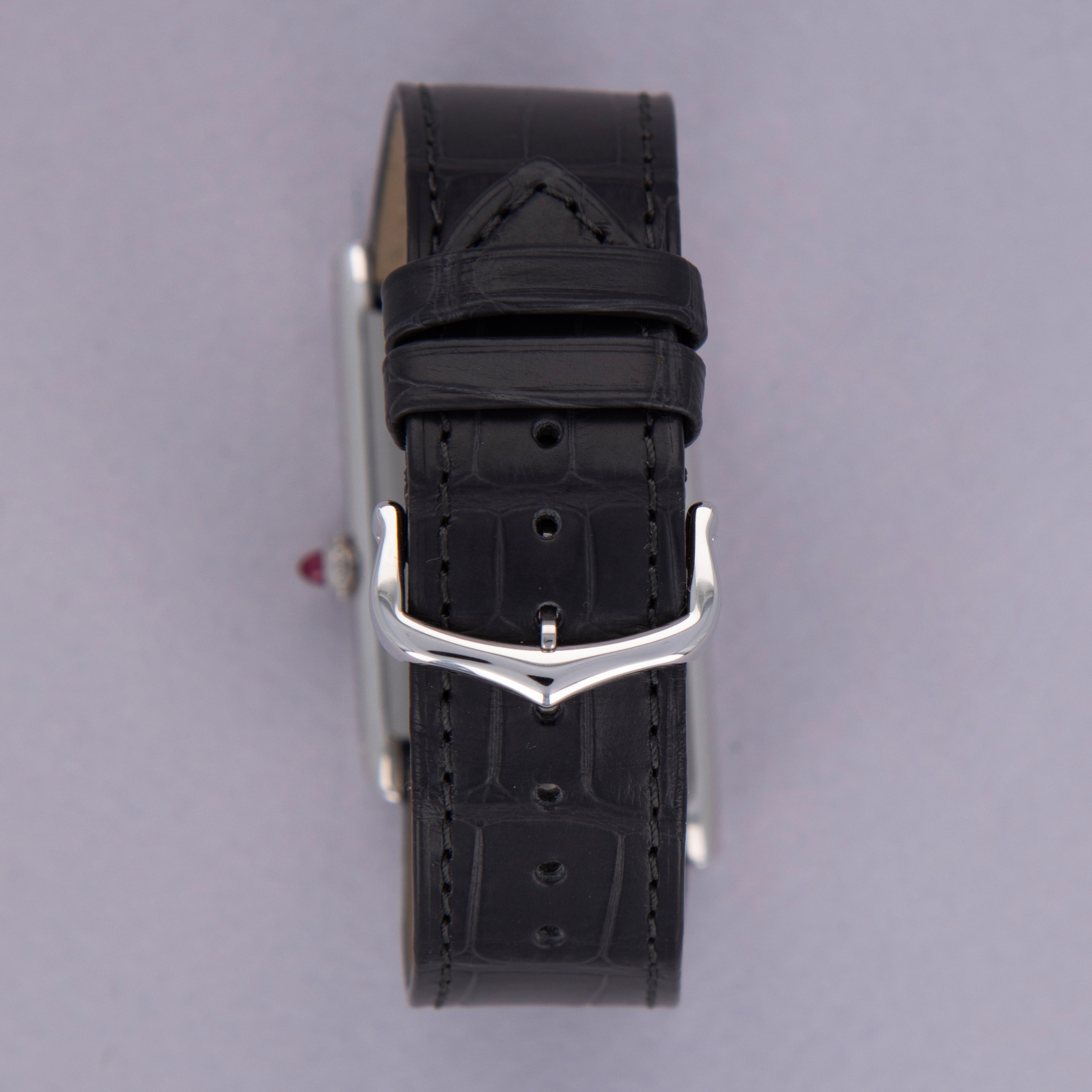 With its angled design, the Tank Asymètrique enables its wearer to read the time quickly and easily while their arms are stretched in front of them, like when holding a steering wheel.
