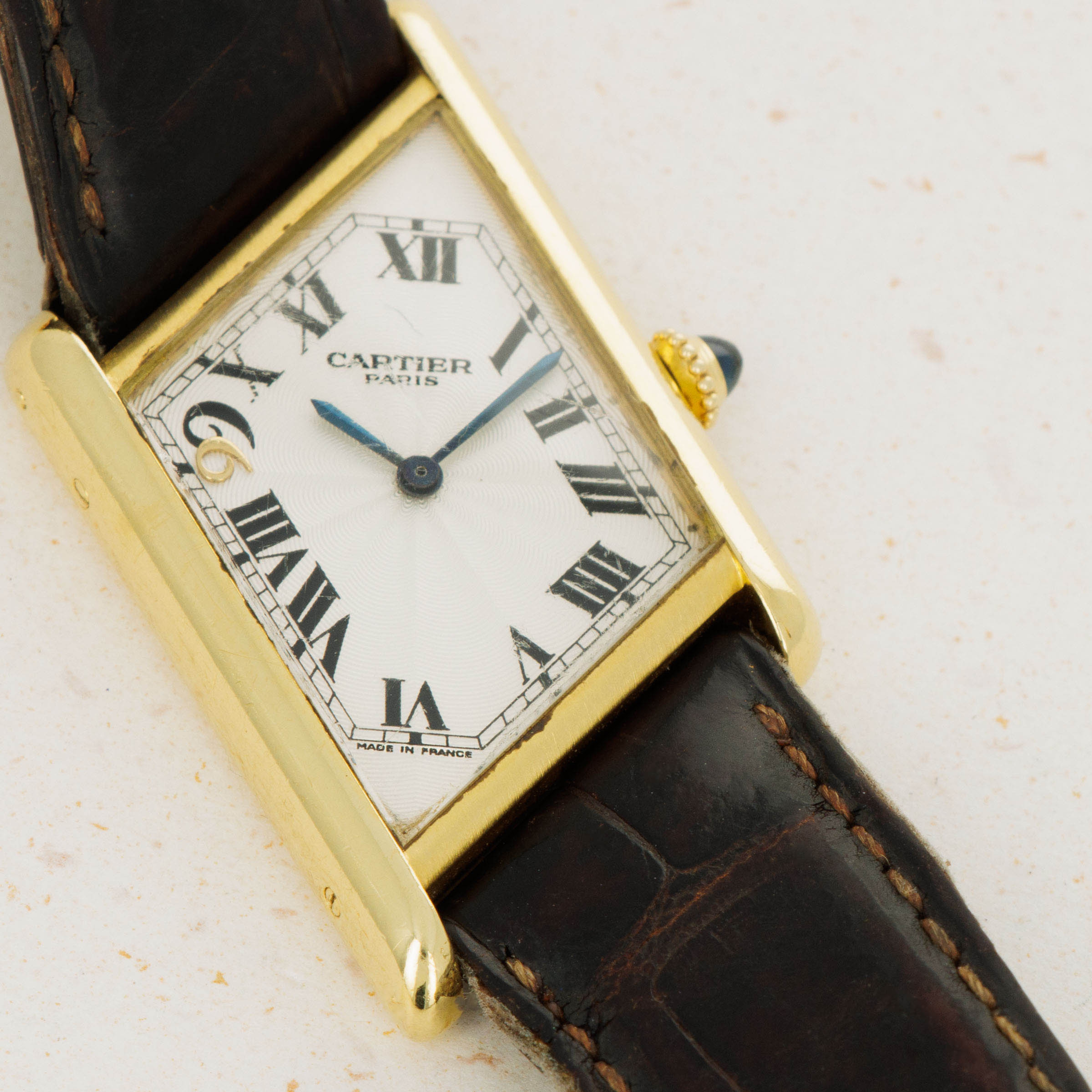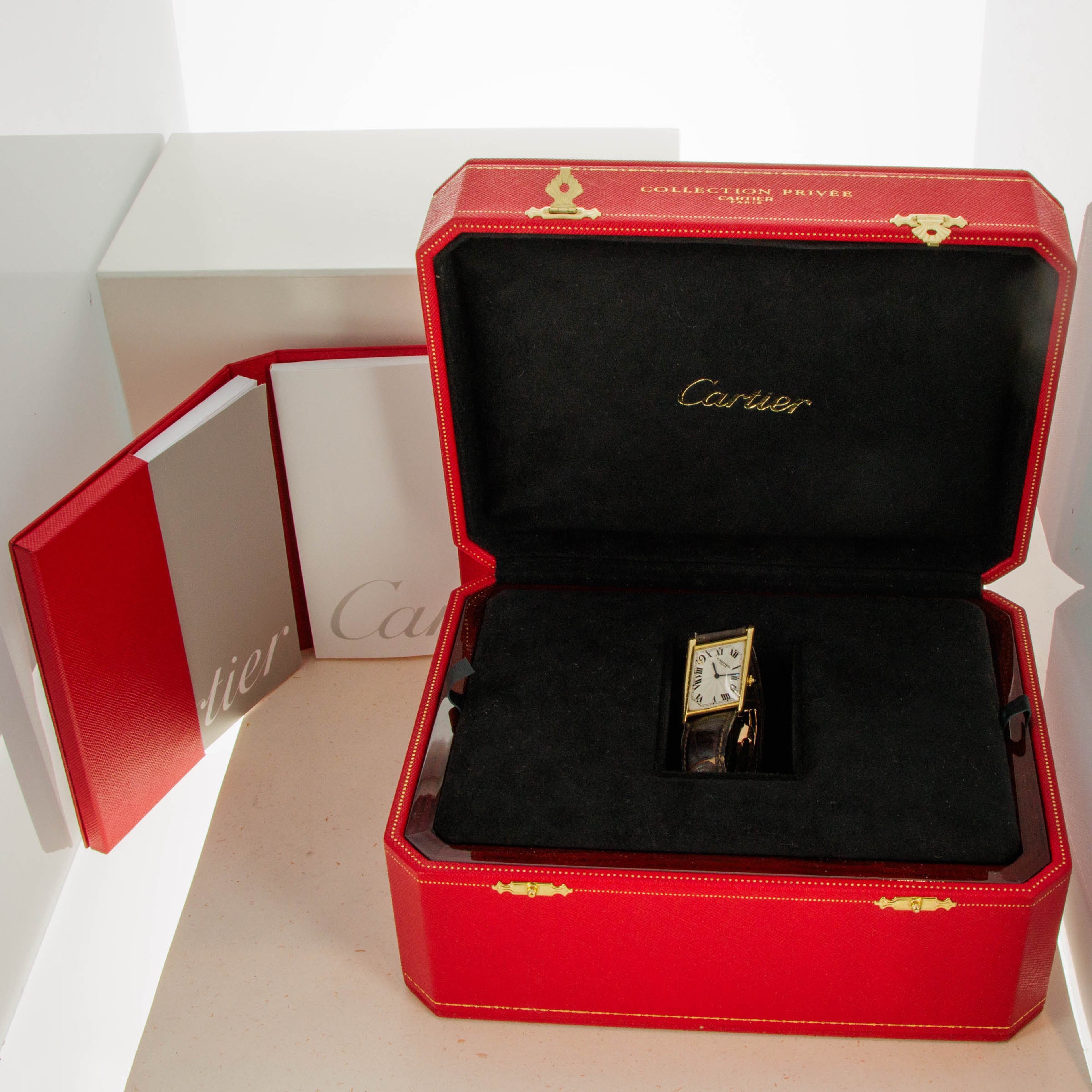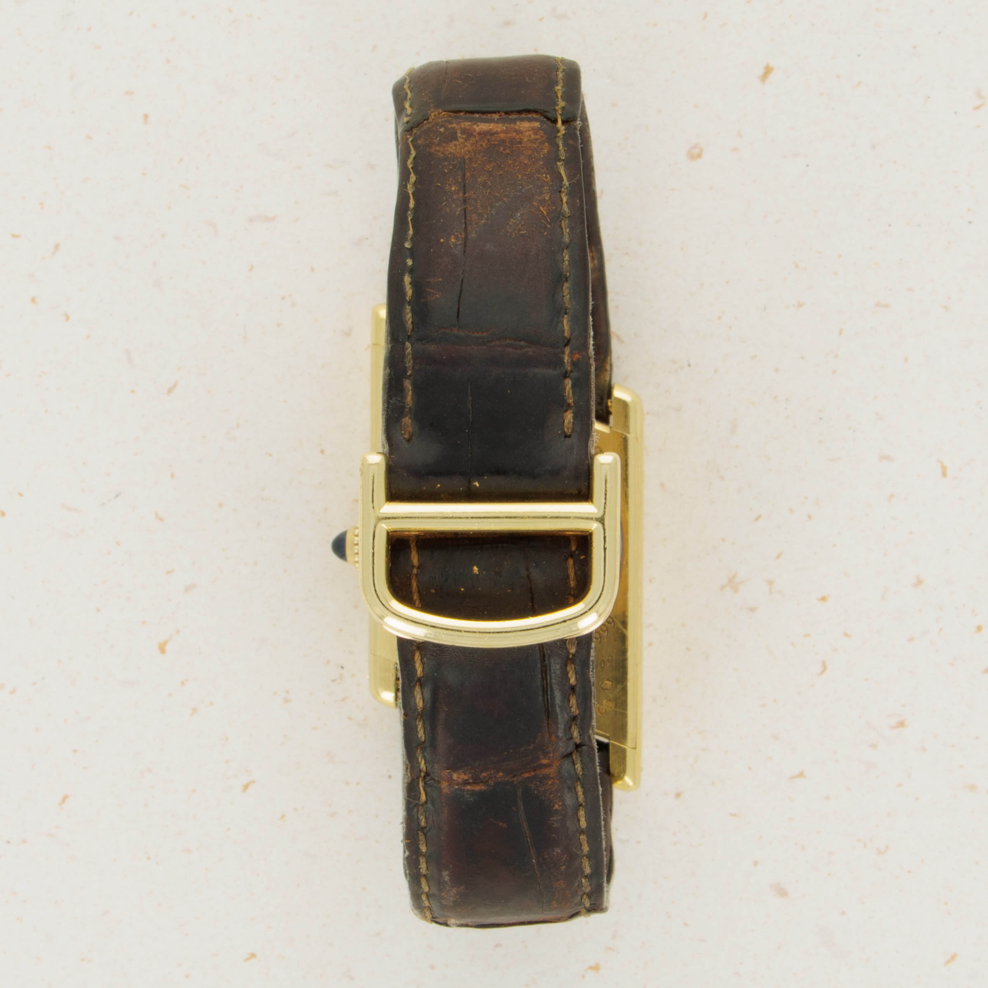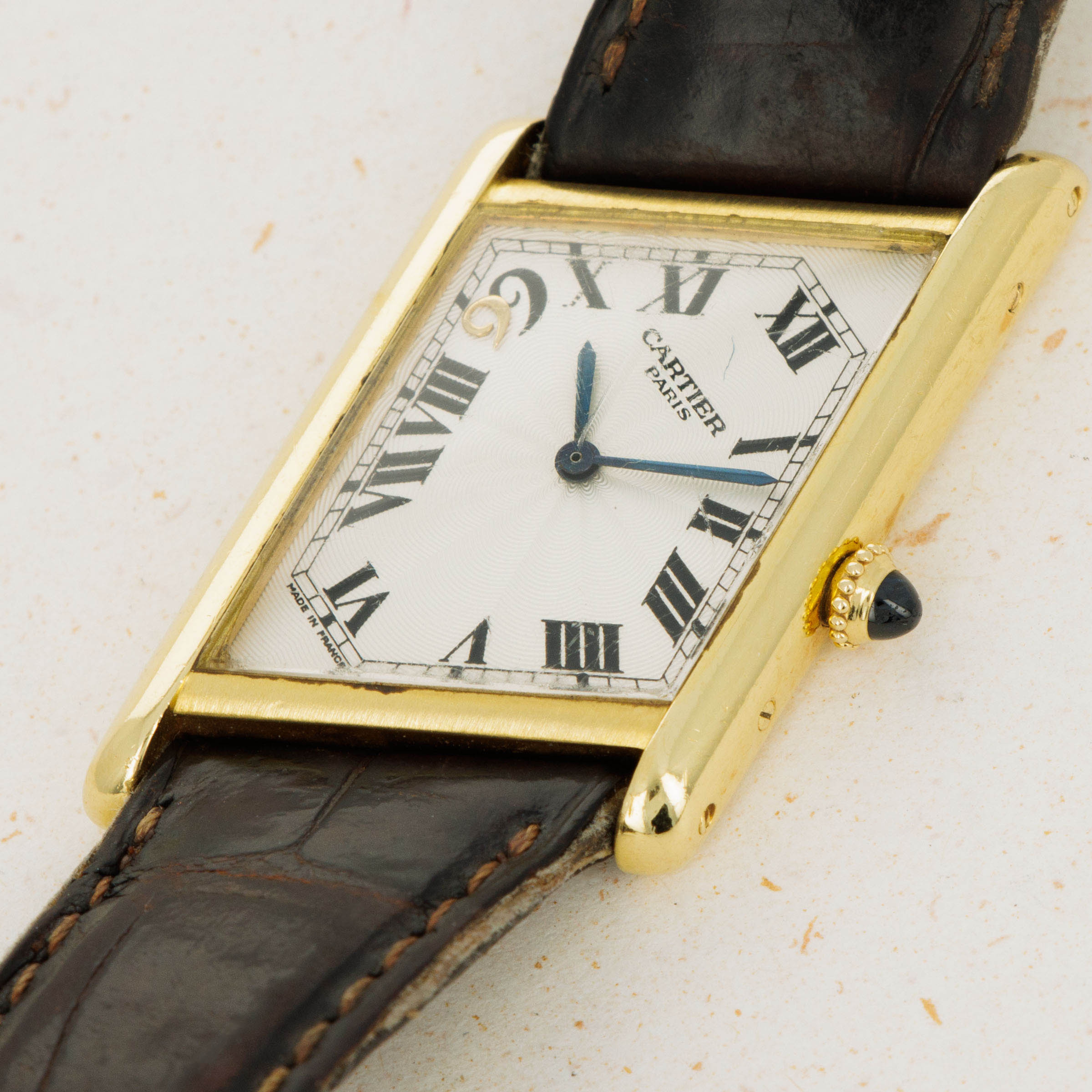 Watch is in very good overall condition. Case has many superficial scratches and marks along the surface. Dial is in excellent condition. There appears to be a tiny hair above the Cartier signature on the dial-it can be seen in the images. Crystal is has numerous scratches on the surface. Caseback engravings are crisp and fully visible, bur scratches and marks are visible on the surface and on the edges. Crocodile leather strap is very worn and needs to be replaced. It is fitted with the original 18kt yellow gold folding deployant clasp. Watch comes with an original dated certificate as well as limited edition paperwork.