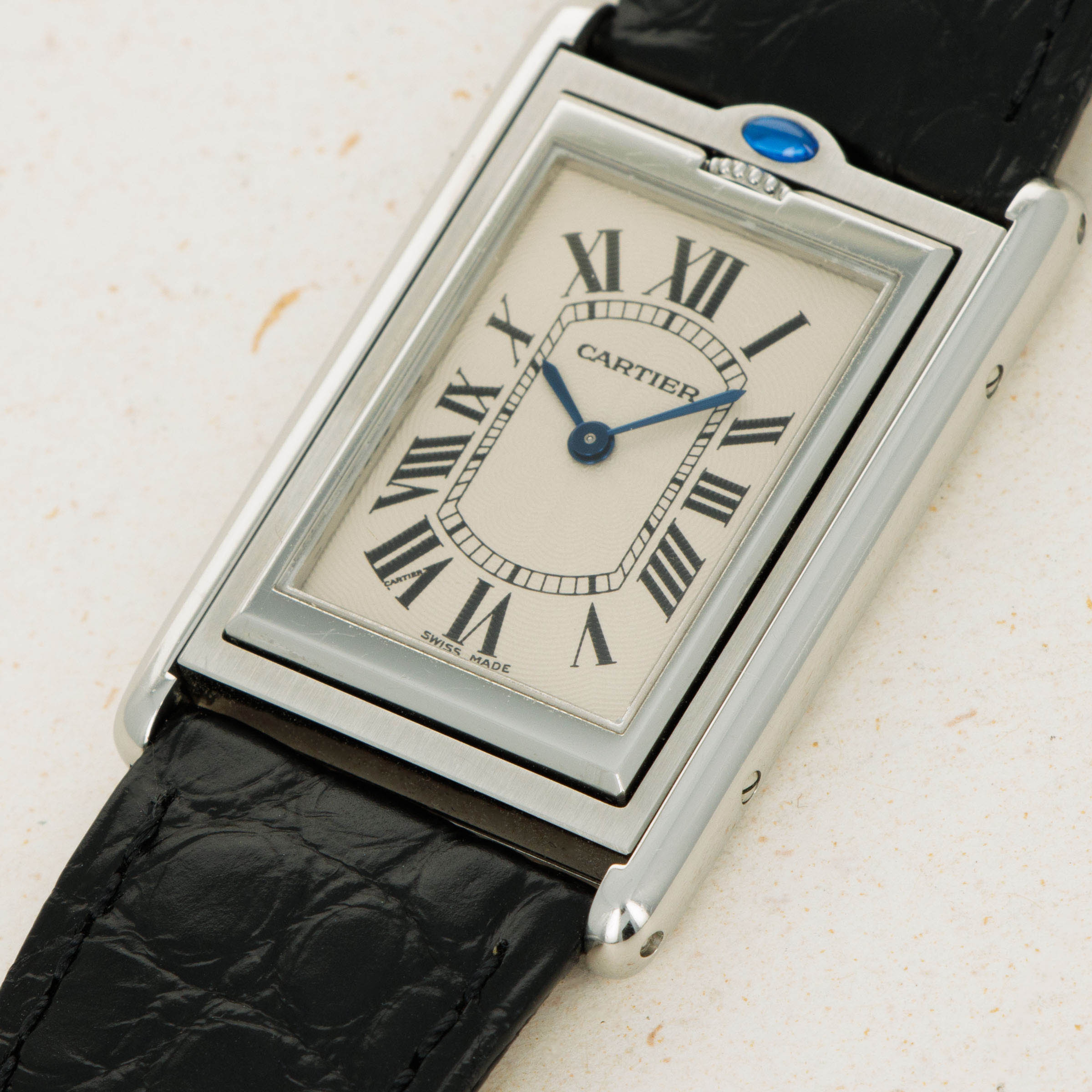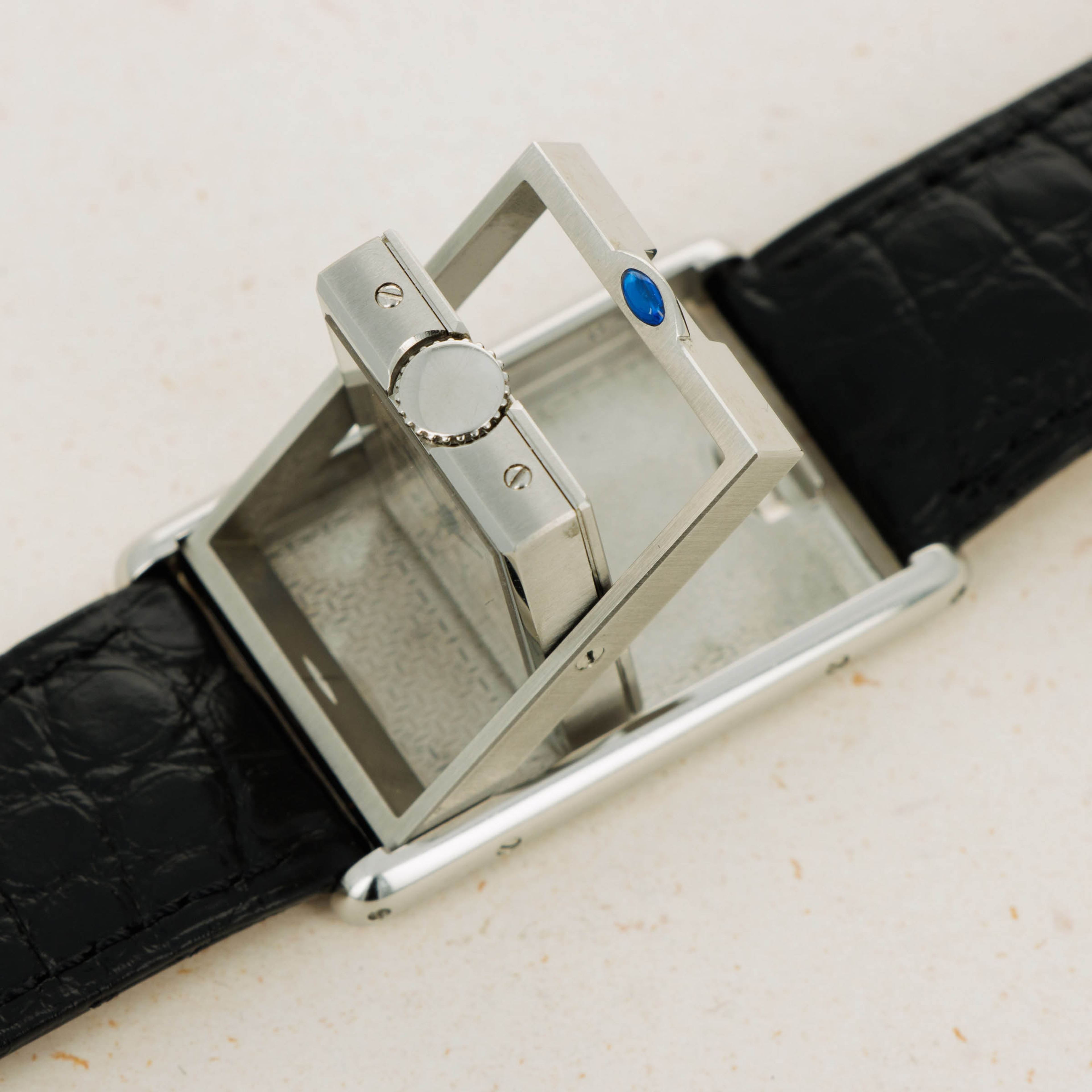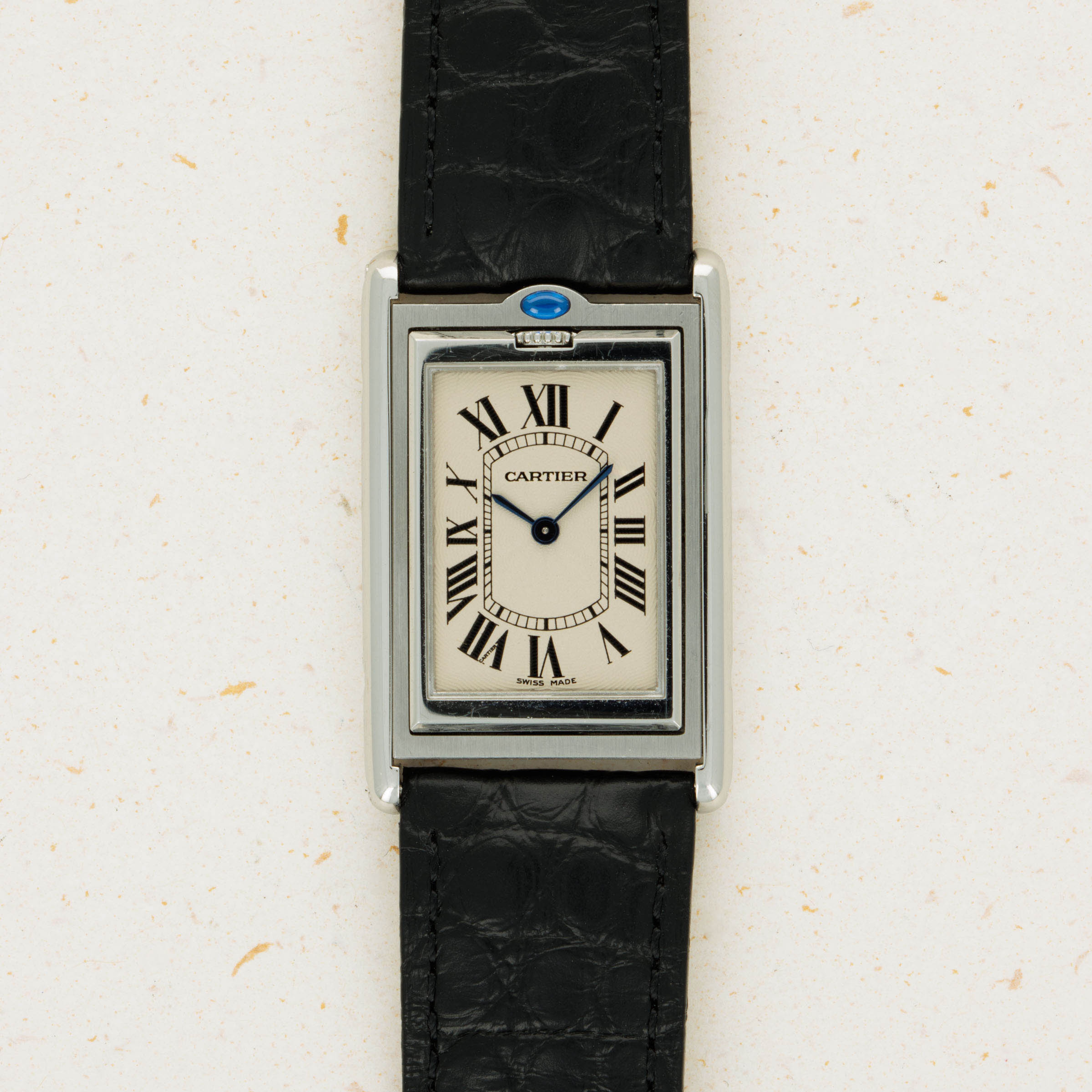 An incredibly iconic timepiece, the Cartier Tank features one of the most easily recognizable watch designs of all time. With its thin rectangle-shaped case and elegant dial, it remains as classical a timepiece today as when it was first released in 1917. Inspired by the Renault FT-17 Tank, the Cartier Tank is, somewhat ironically, a dress watch. Recognizing the need for a more robust variant, Cartier released the Tank Basculante. Launched in 1933, Cartier took inspiration from the JLC Reverso, another classically styled early sports watch that would rotate within its case, to create the Tank Basculante, a watch that would also turn in its case. As such, the Basculante rotates vertically along the 12 to 6 axis within its case to protect its dial from damage caused during sports, and enabling it to double as a table clock if you so wished. Debuting in the early 1990s, the Basculante model that we have here is the Basculante Mechanique ref. 2390 with a 26mm x 38mm stainless steel case. Powered by the 2mm thick manually-wound Piguet-derived Cartier cal. 050 MC, the ref. 2390 is just 5.8mm tall and brings a distinguished wrist presence through its unique design and rich heritage.