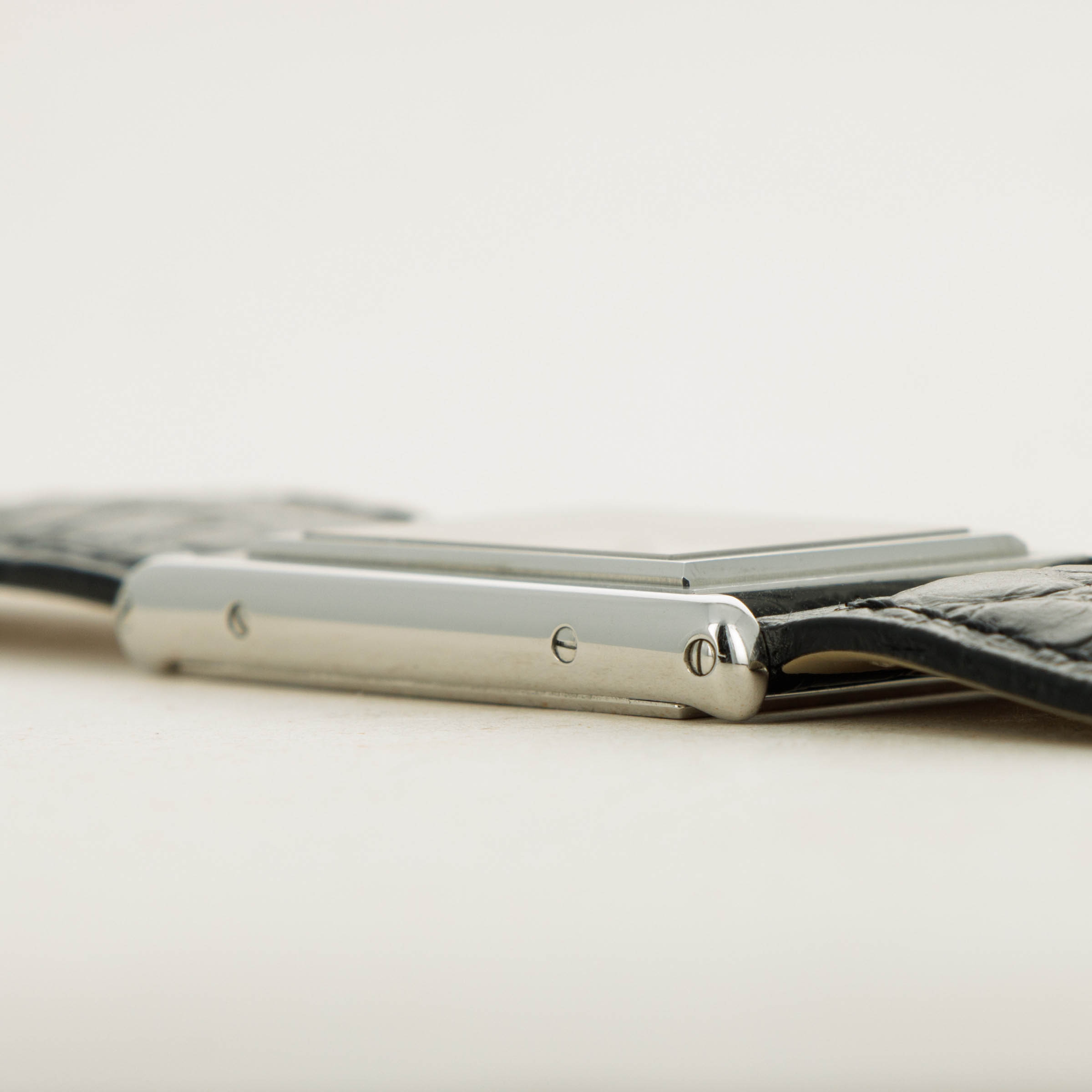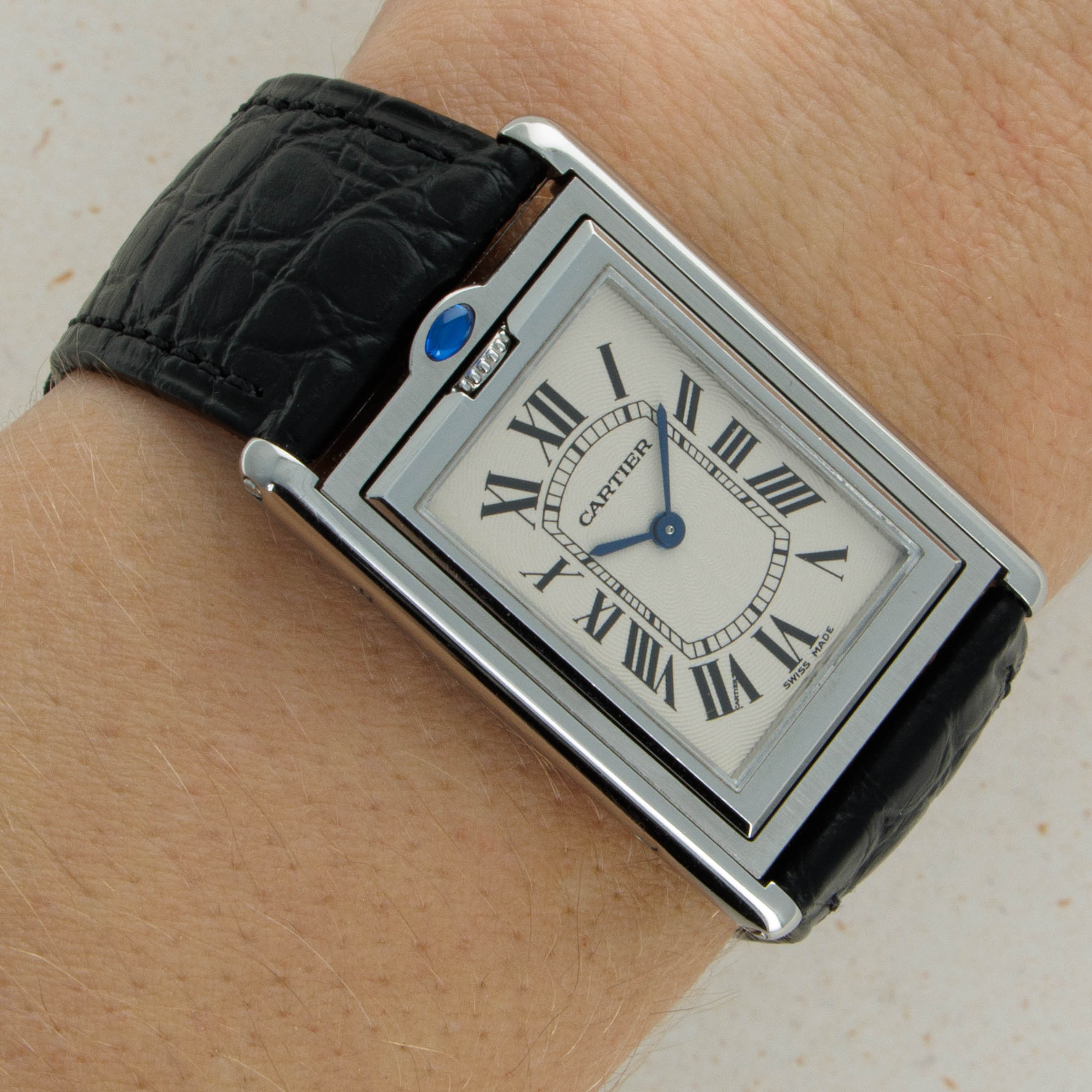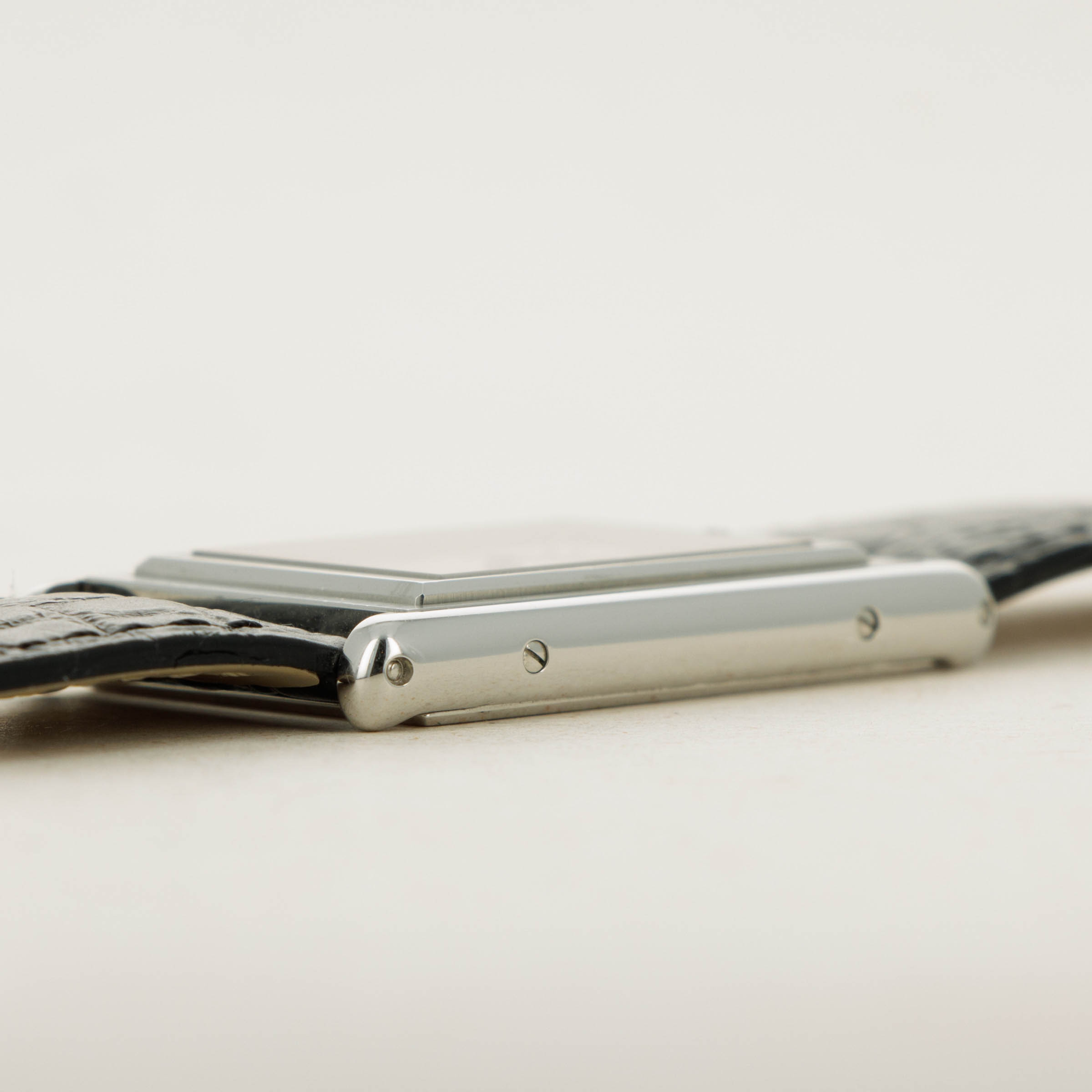 An incredibly iconic timepiece, the Cartier Tank features one of the most easily recognizable watch designs of all time. With its thin rectangle-shaped case and elegant dial, it remains as classical a timepiece today as when it was first released in 1917. Inspired by the Renault FT-17 Tank, the Cartier Tank is, somewhat ironically, a dress watch. Recognizing the need for a more robust variant, Cartier released the Tank Basculante. Launched in 1933, Cartier took inspiration from the JLC Reverso, another classically styled early sports watch that would rotate within its case, to create the Tank Basculante, a watch that would also turn in its case. As such, the Basculante rotates vertically along the 12 to 6 axis within its case to protect its dial from damage caused during sports, and enabling it to double as a table clock if you so wished. Debuting in the early 1990s, the Basculante model that we have here is the Basculante Mechanique ref. 2390 with a 26mm x 38mm stainless steel case. Powered by the 2mm thick manually-wound Piguet-derived Cartier cal. 050 MC, the ref. 2390 is just 5.8mm tall and brings a distinguished wrist presence through its unique design and rich heritage.