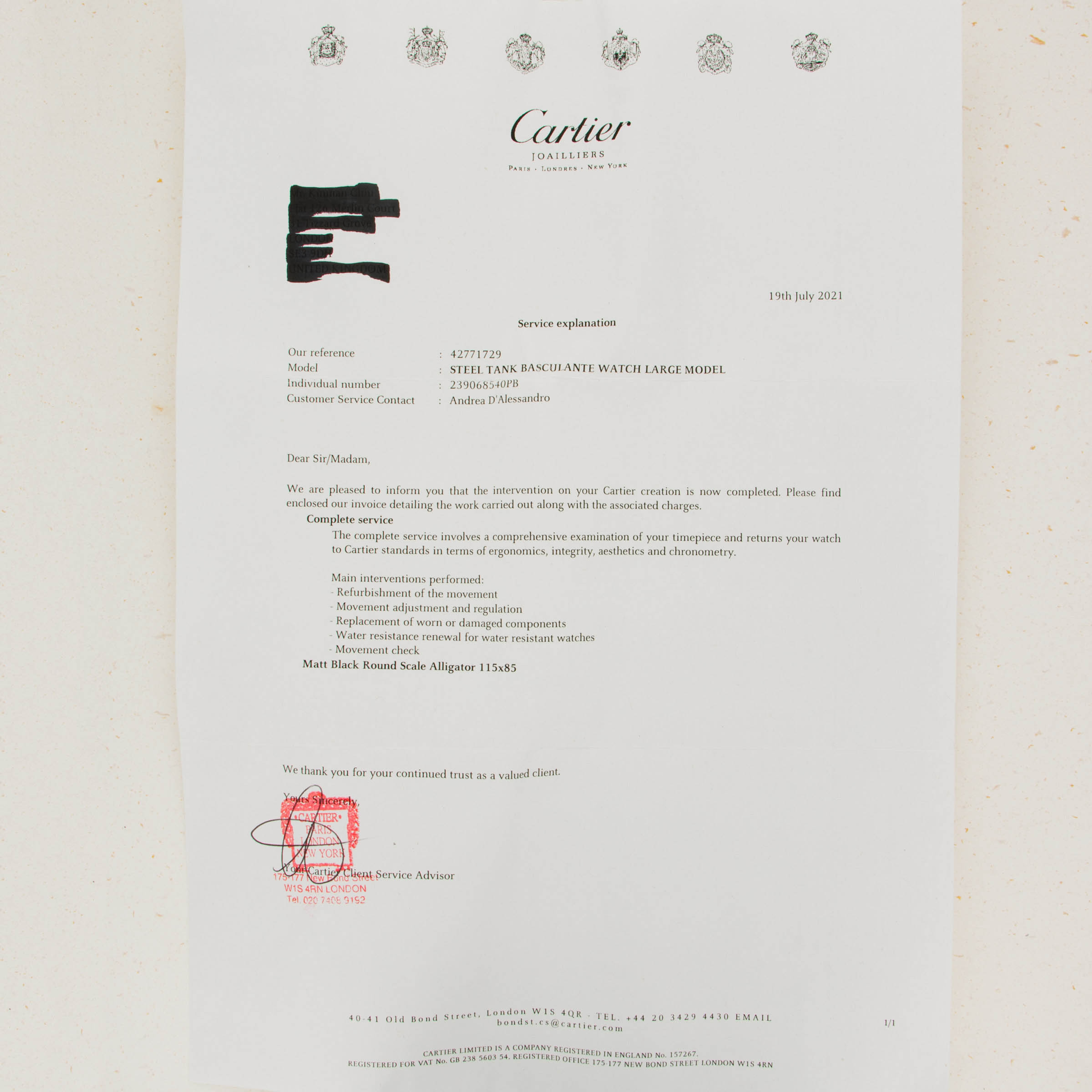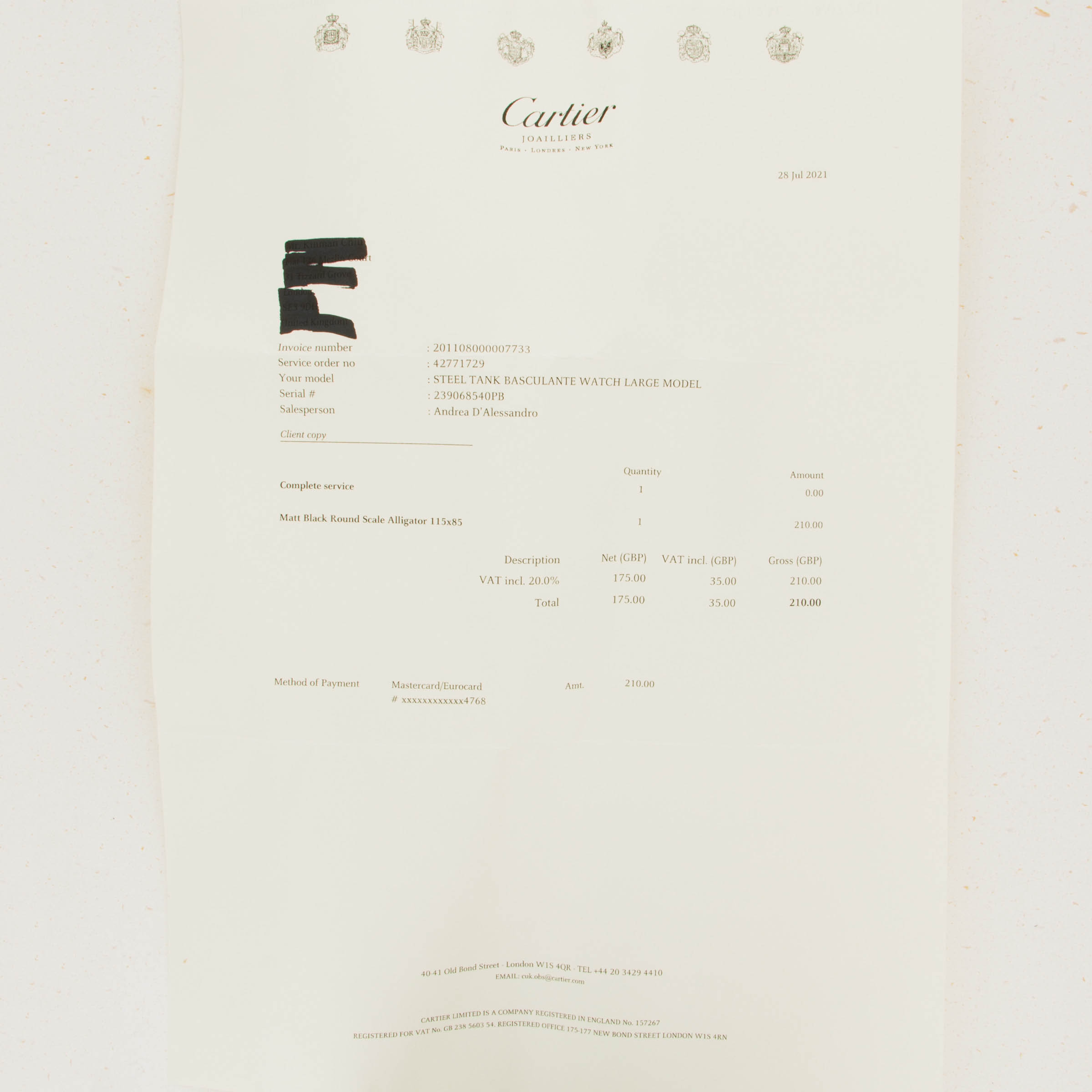 Watch, Cartier service pouch, 2021 Service invoice and receipt for the leather strap