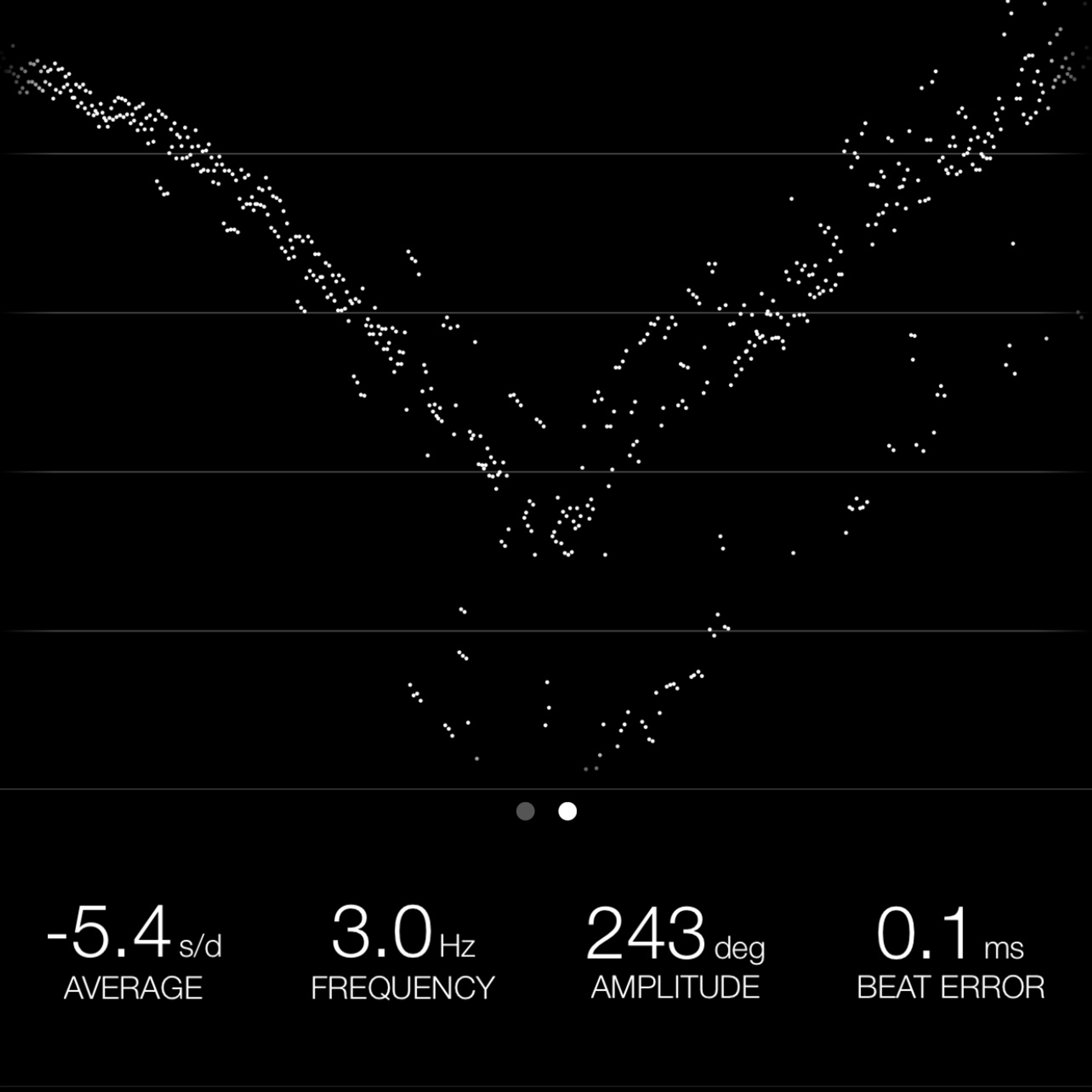 This reading was taken (crown down) with a ONEOF Accuracy Boutique Edition timing machine at time of cataloging. It is provided as a courtesy only, and shall not be construed as a warranty or guarantee of any kind. Please refer to our terms and conditions of sale for more information.