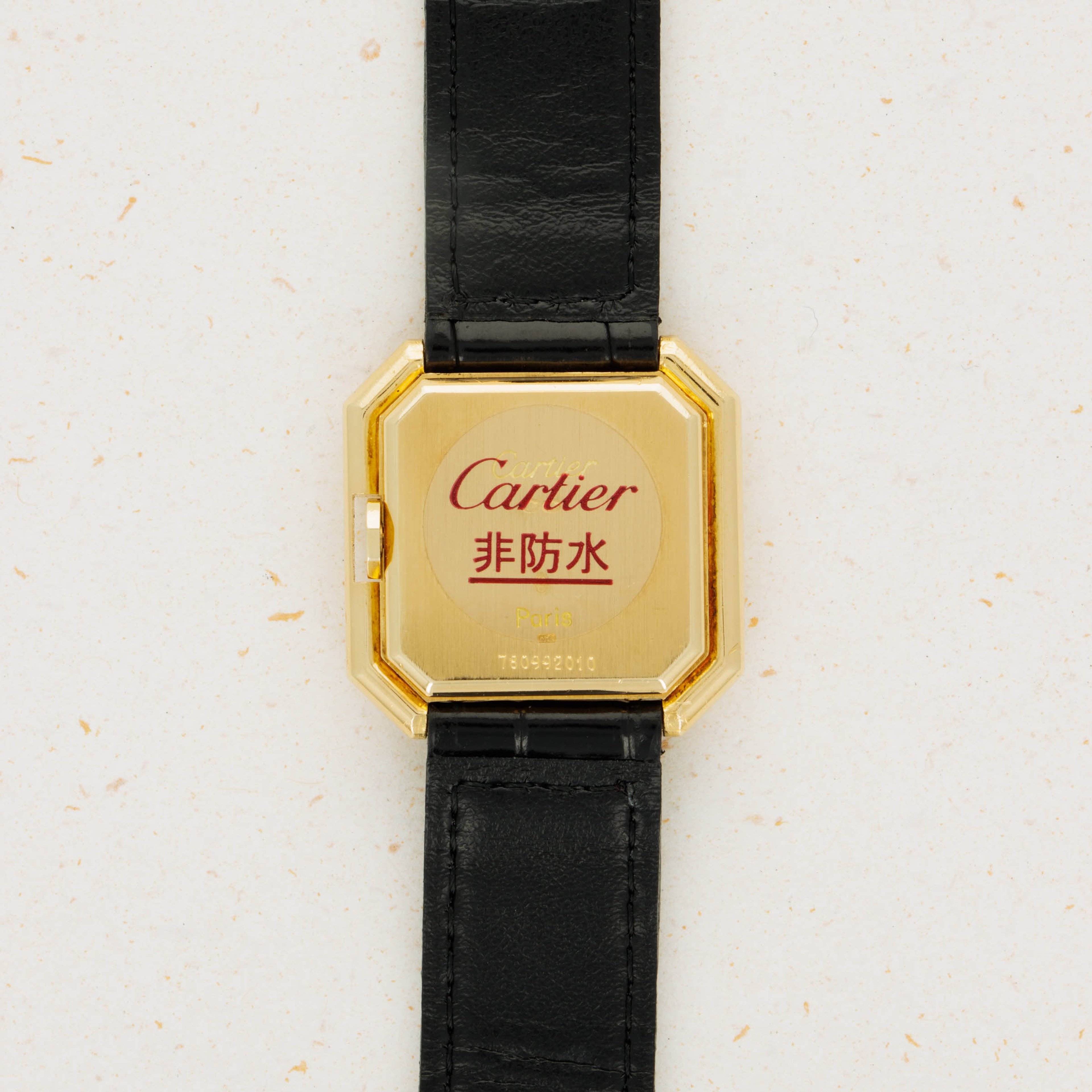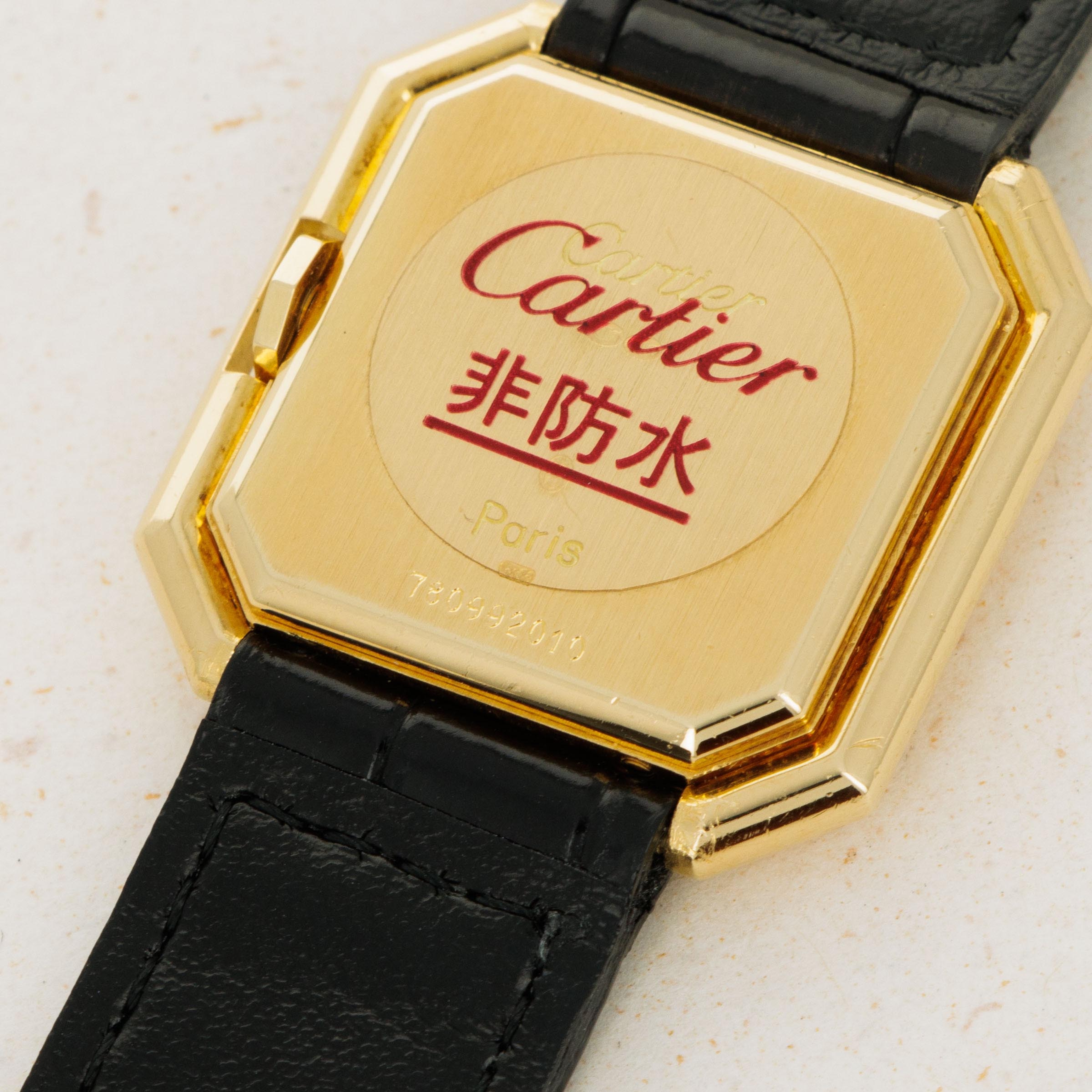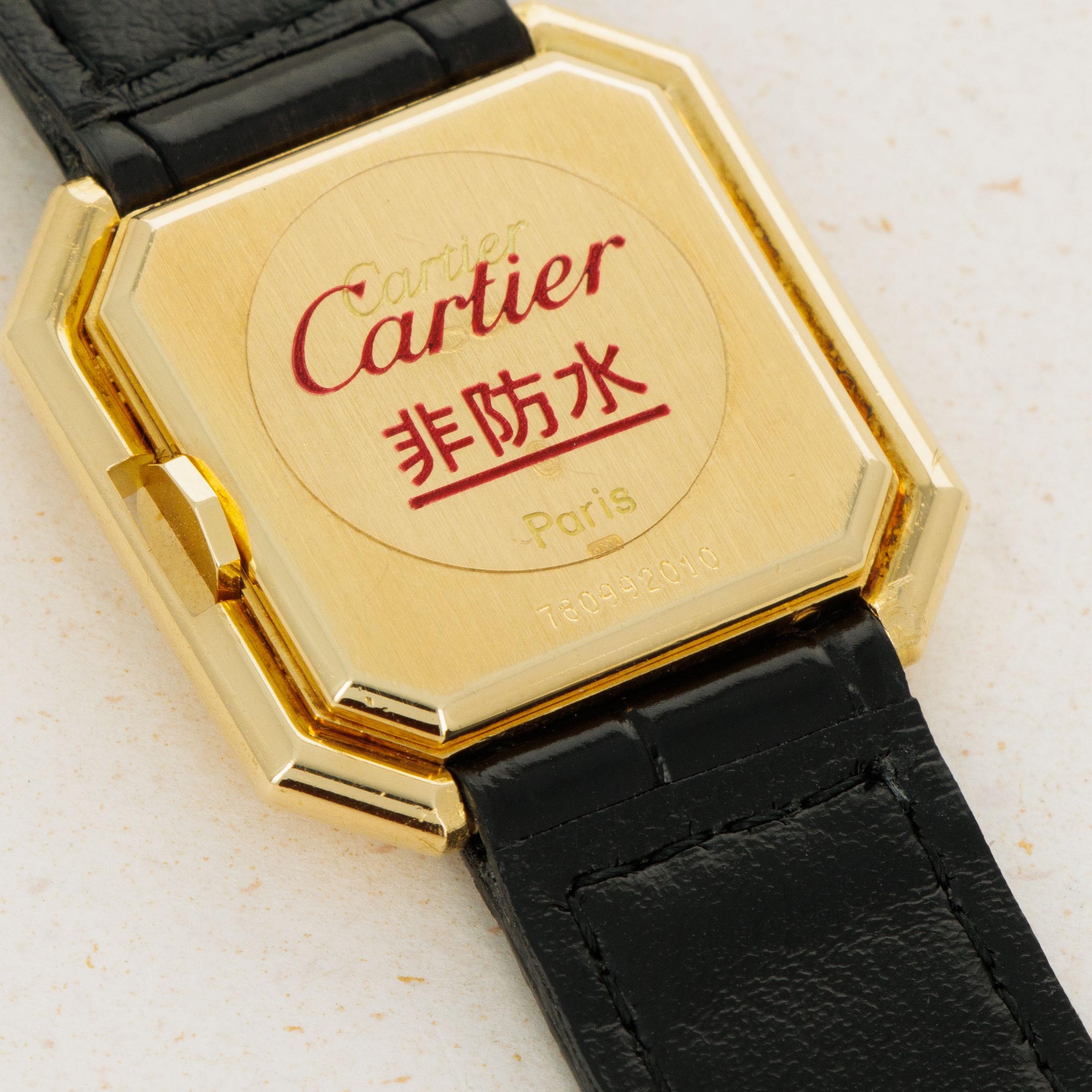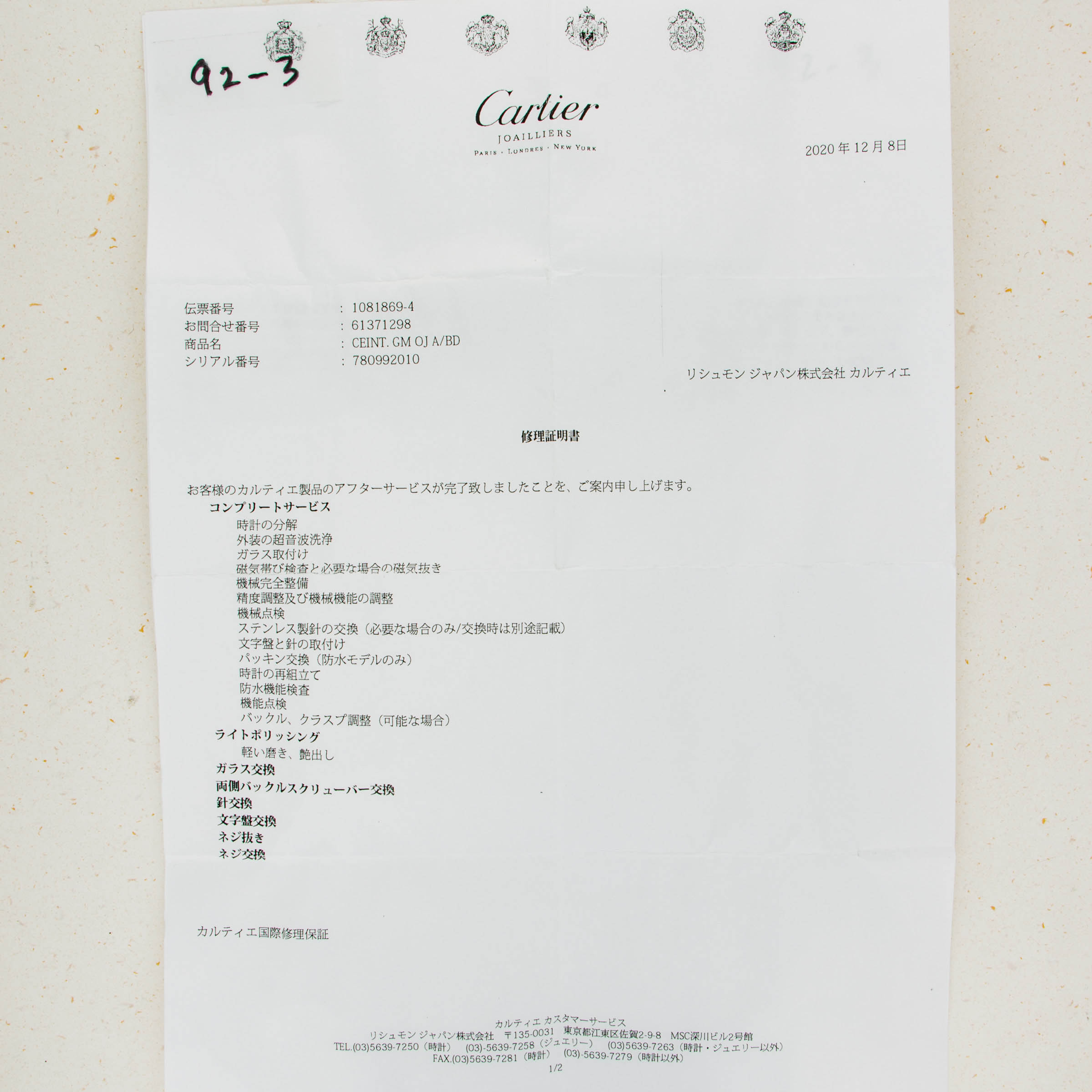 Watch is in very good overall condition. Case shows some wear on the edges, with some marks and nicks visible on the case. Caseback has a service sticker affixed, and all the engravings are crisp and visible. SWISS MADE signed dial was replaced at service. Watch comes with original gold deployant buckle. A receipt of service is included from Cartier Japan, dated 2020.