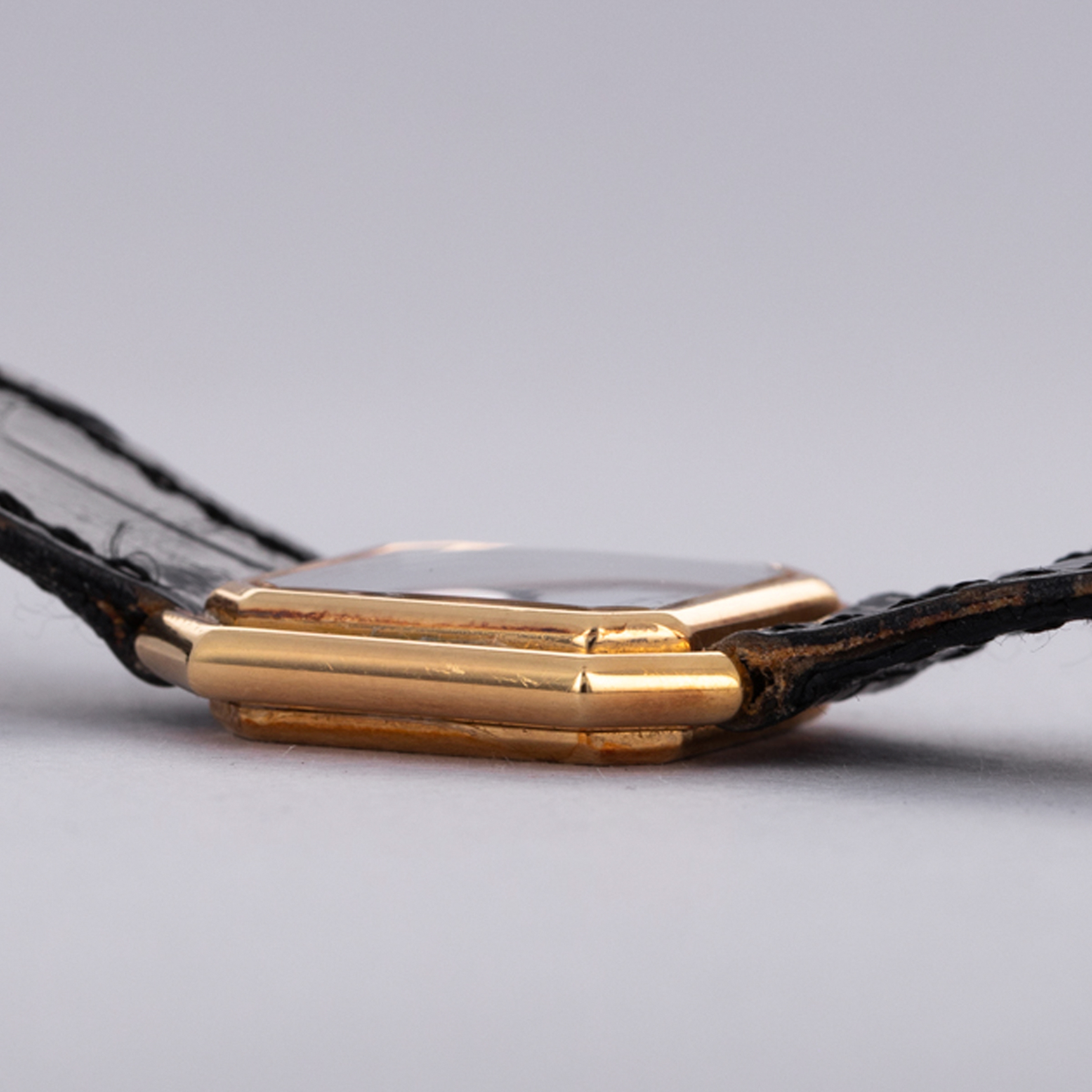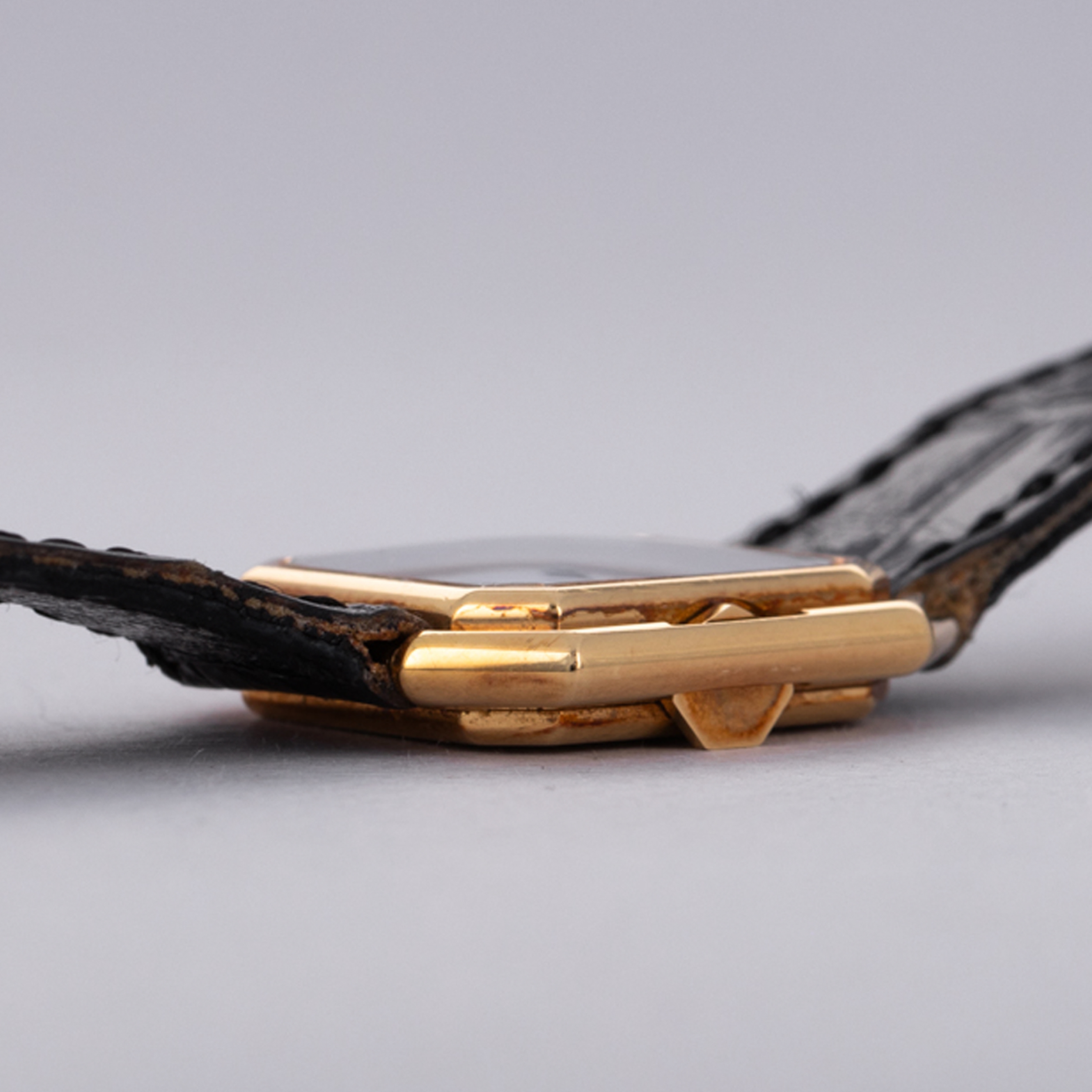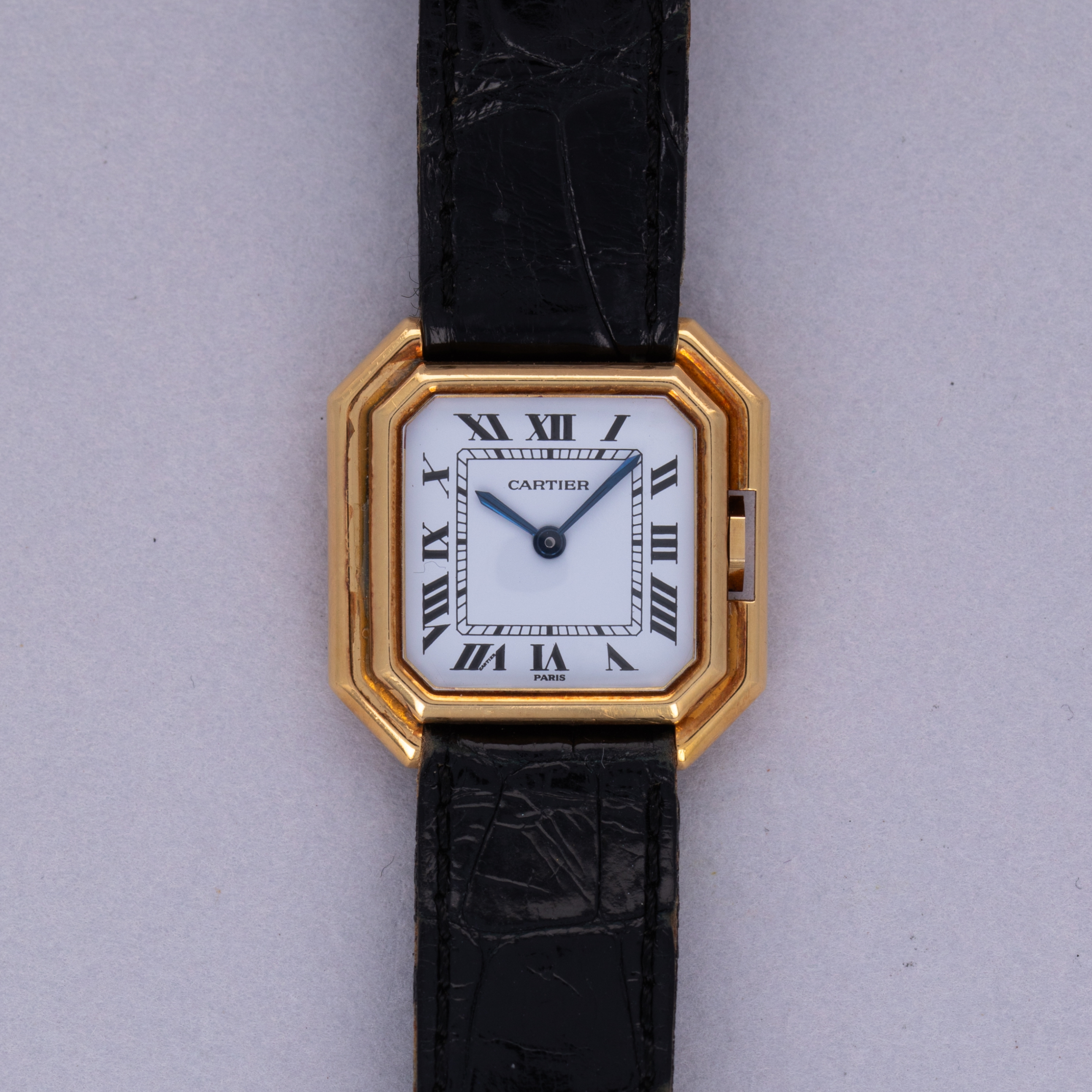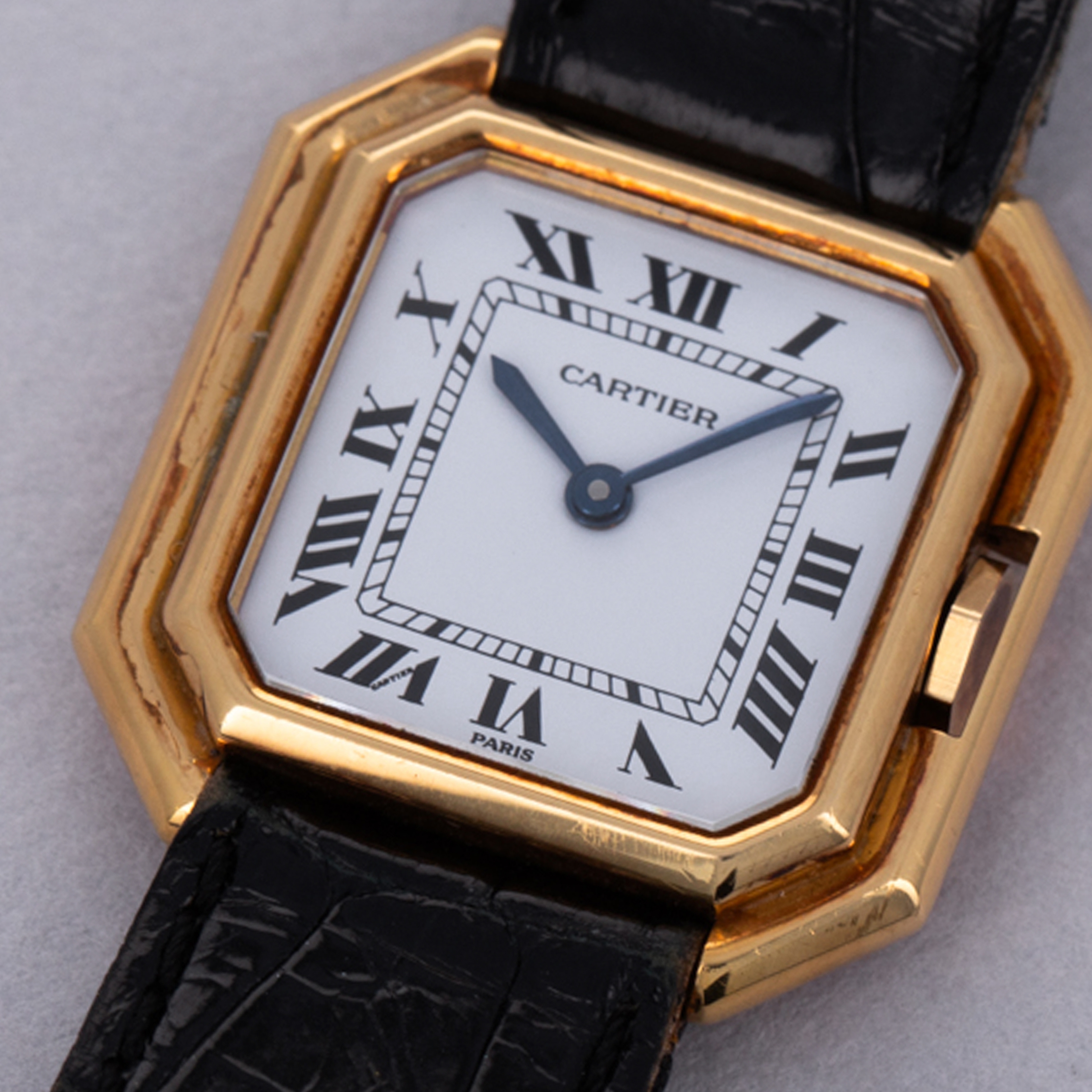 Famed for their iconic collections and classical styling, French jeweller and watchmaker Cartier hold a vital position within the horology industry. However, one such collection that flies under the radar is the Ceinture, first launched in 1927 but reintroduced to Cartier's line-up in the early 1970s, around 1973. First offered in two case sizes, 25mm and 27mm, until a larger 31mm variant was introduced, the Ceinture is a dynamic timepiece known for its unique twist on the Tank’s design. Powered by the manual wind cal. 78.1 movement, the model we have here is perhaps the variant that is truest to Cartier's ethos with its 18kt yellow gold case and bright white dial featuring black Roman numerals, a railroad minute track and blued steel hands. Of course, the Ceinture's most distinctive element is its unusual octagonal case. Somewhat reminiscent of a belt's buckle ('ceinture' means 'belt' in French after all), the Ceinture resembles a square that has had its corners cut, which in turn allows the watch to wear more prominently on the wrist than one would assume judging solely on its dimensions. With its deep-stepped bezel design, the Ceinture is truly an interesting timepiece on the wrist. Feeding into this intrigue is the Ceinture's octagonal crown, which sits within its case and acts as an extension of the stepped bezel. Cartier also decided to forgo their signature sapphire cabochon crown so that the Ceinture's crown could sit within the bezel, a feature that Cartier calls "remontoir imperdable" (captive winding).