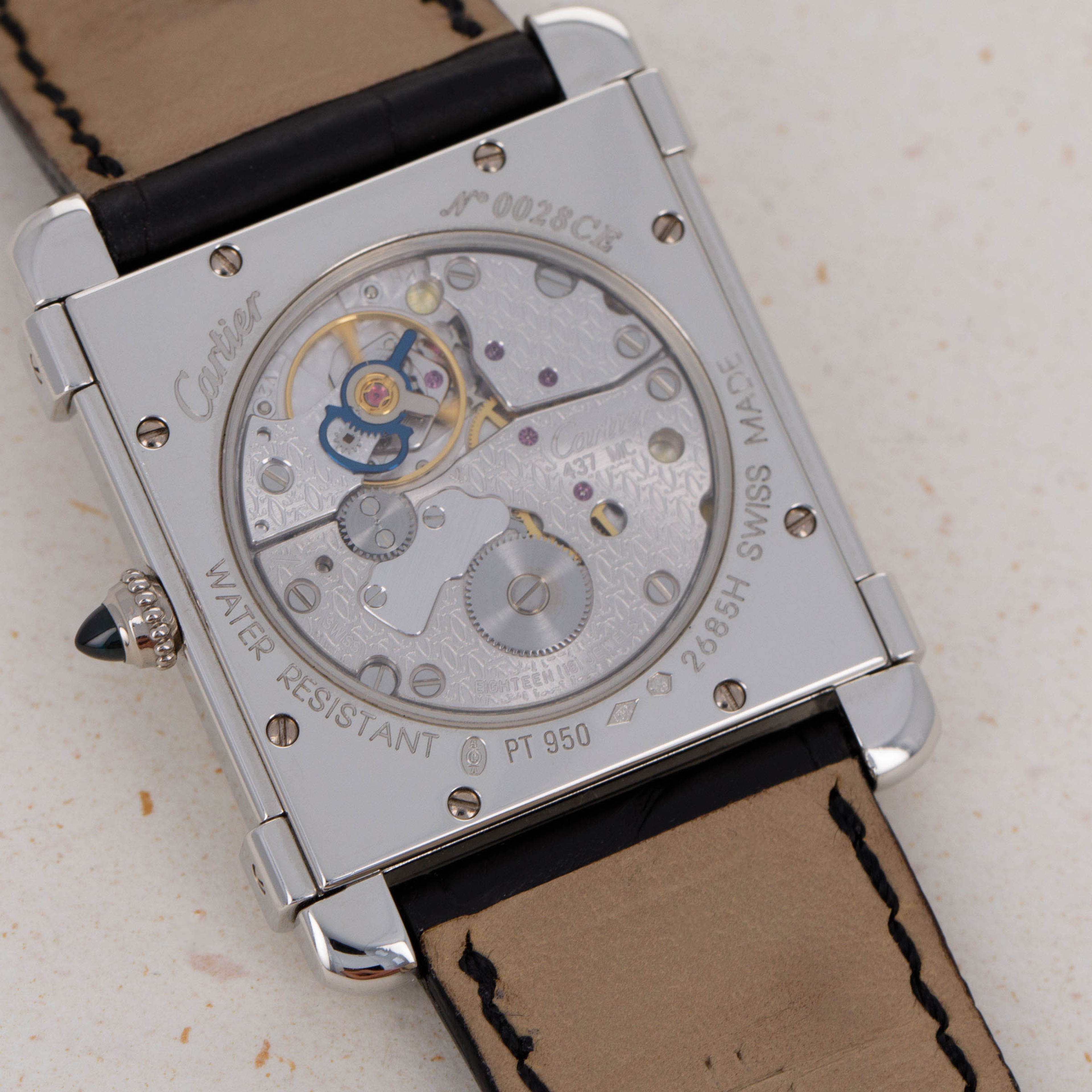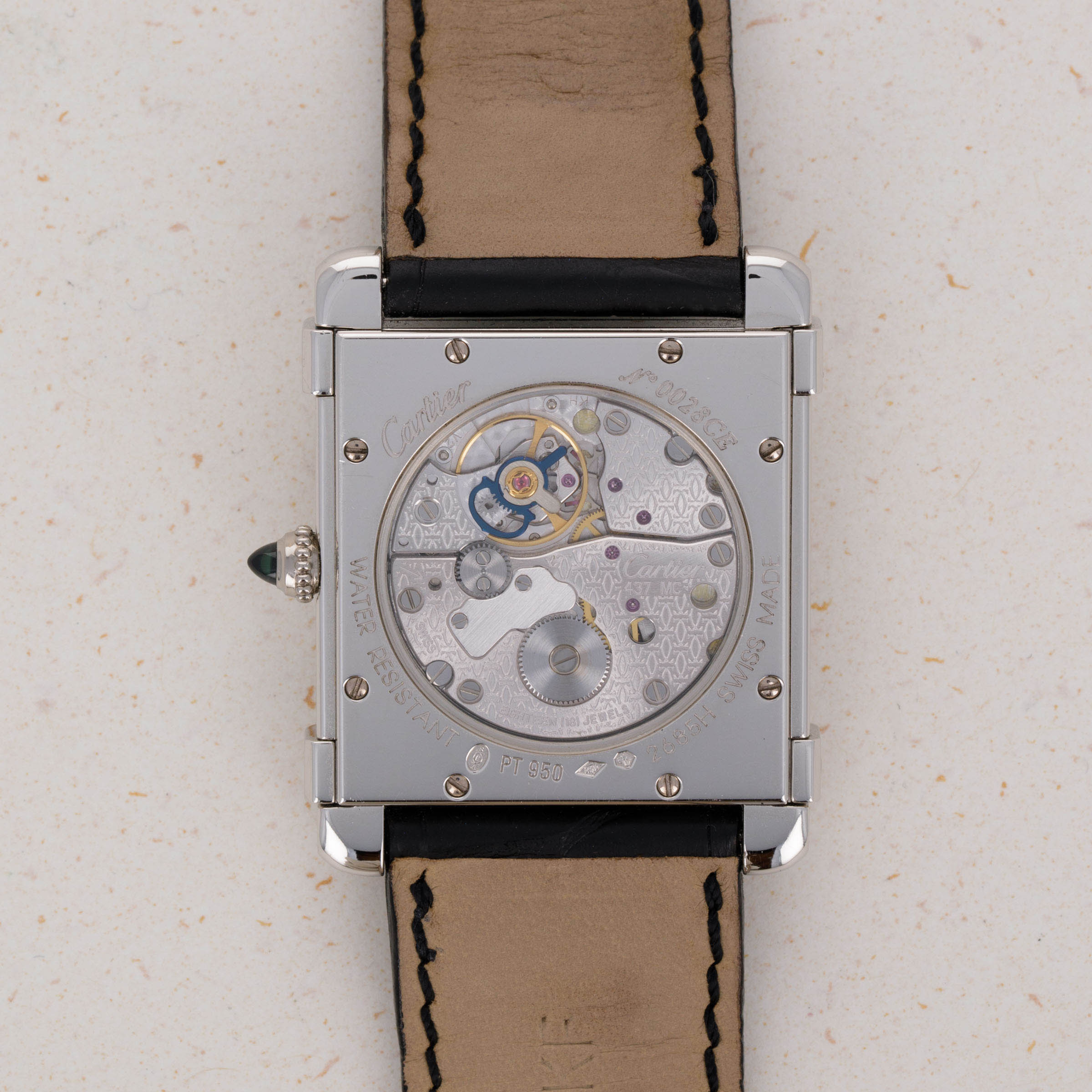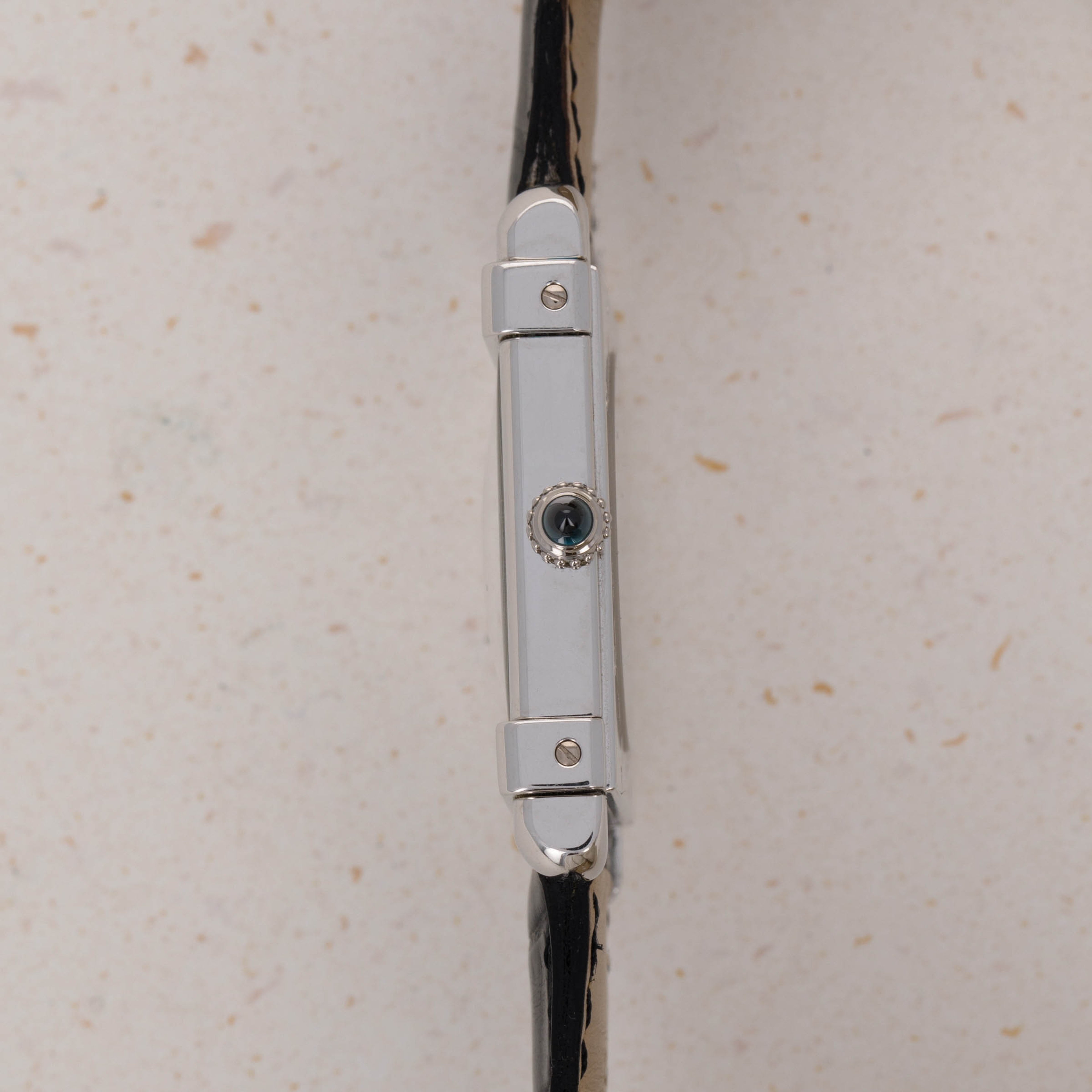 Launched in 1922 as a stylish reinterpretation of the original Cartier Tank that we all know and love, the Cartier Chinoise features a subtly altered case design that utilizes two overlapping bars that sit atop the dial. As such, the Tank’s typically restrained lug design is made more prominent – a design choice inspired by the architectural lines of a Chinese temple portico. This is derived from the appeal that Far Eastern exotica had on design during the 1920s due to just how unique and splendid it was compared to the West’s typical aesthetics. As is often the case with Cartier, they reintroduced the Tank Chinoise decades after it was originally produced as a throwback to their original designs. A rare watch indeed, this platinum timepiece derives from Cartier’s high-end mechanical design movement, the Collection Privée Cartier Paris. Introduced in 1998 and in production until 2008, the CPCP was known for its incredible mechanical movements, designs inspired by Cartier’s archives (as is the case with then Chinoise), and low production numbers. Produced in platinum and rose gold for only a handful of years, the Cartier Tank Chinoise was a wonderful inclusion in the CPCP and today is a rare and coveted piece of the brand's history and heritage for the significance of its design and role in the CPCP.