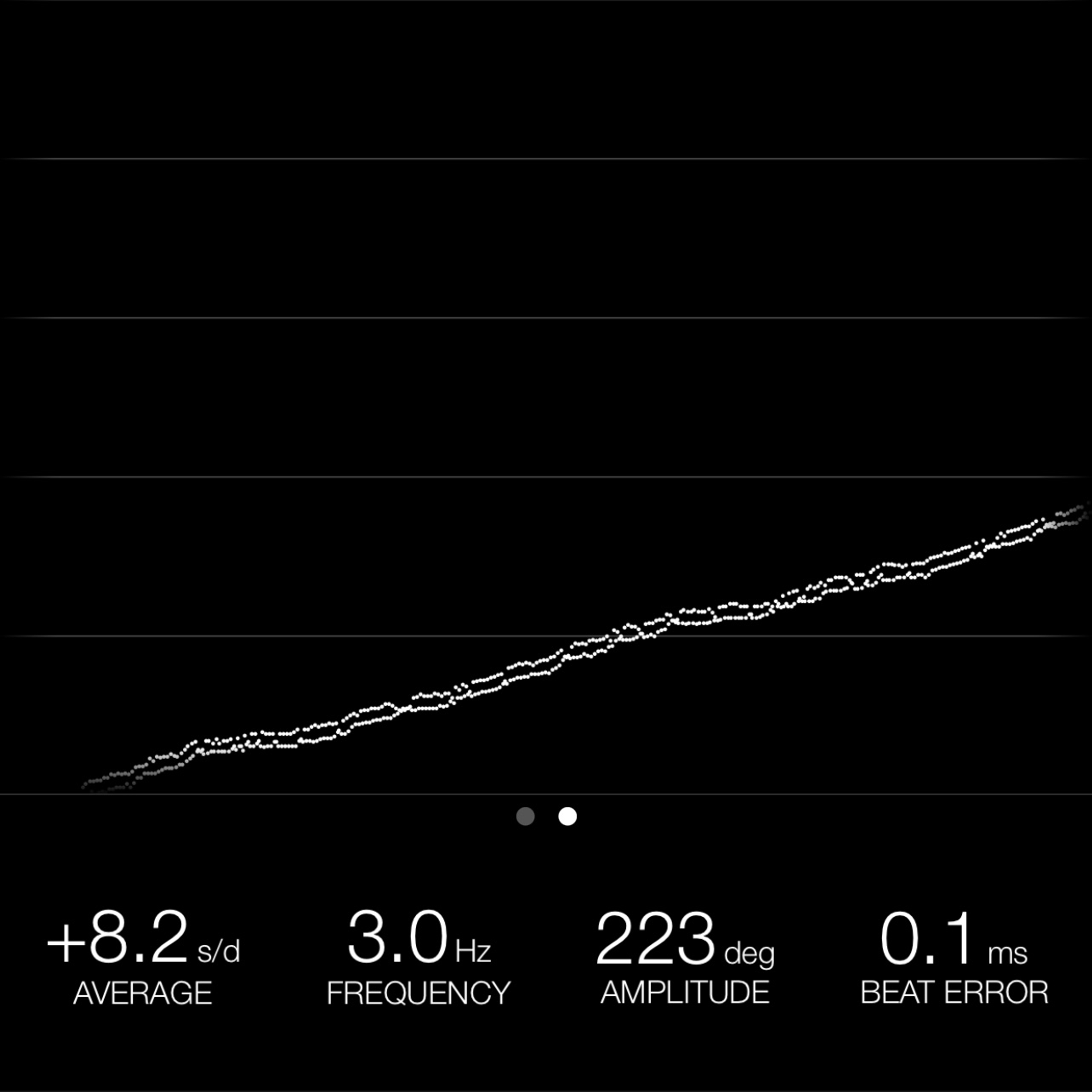 This reading was taken (crown down) with a ONEOF Accuracy Boutique Edition timing machine at time of cataloging. It is provided as a courtesy only, and shall not be construed as a warranty or guarantee of any kind. Please refer to our terms and conditions of sale for more information.