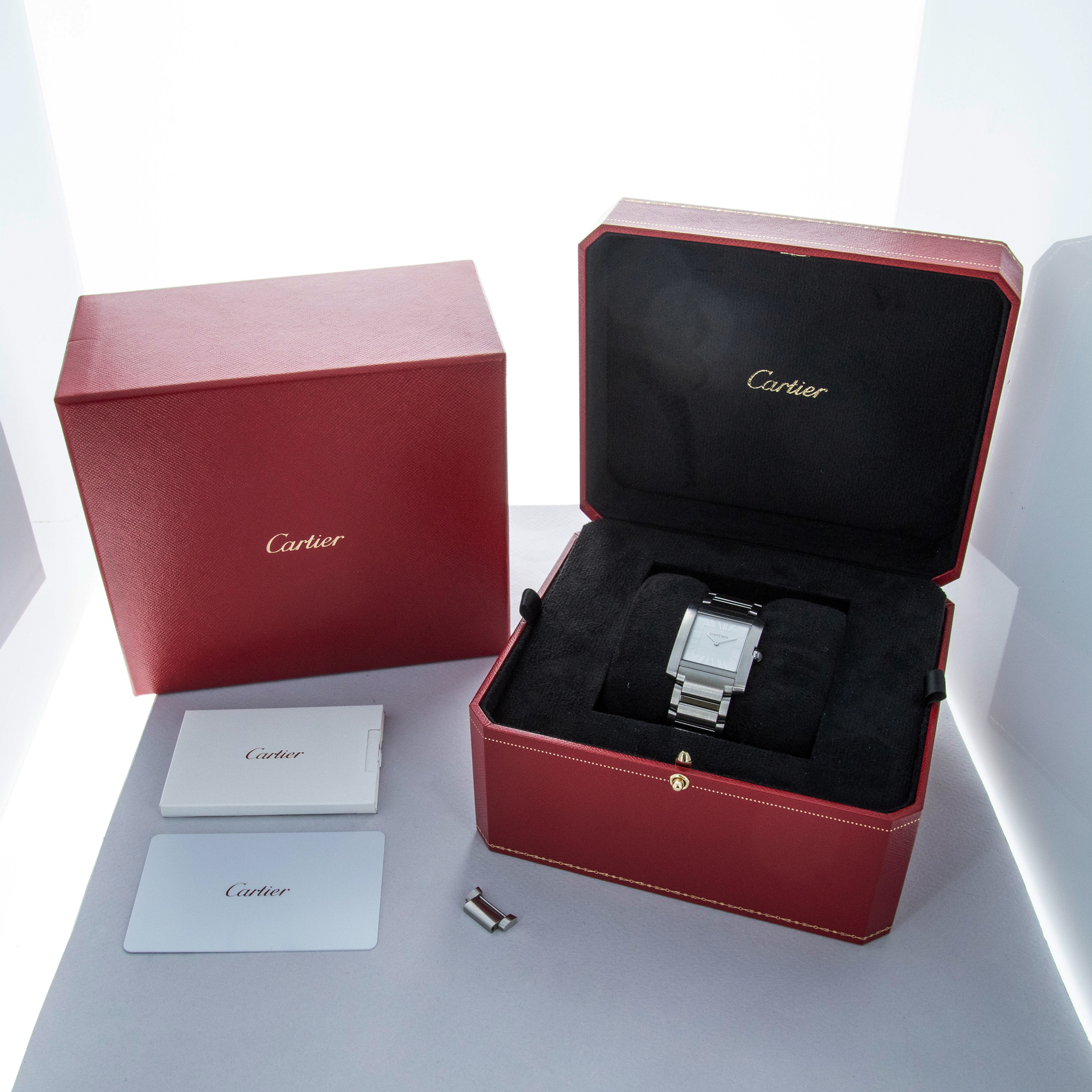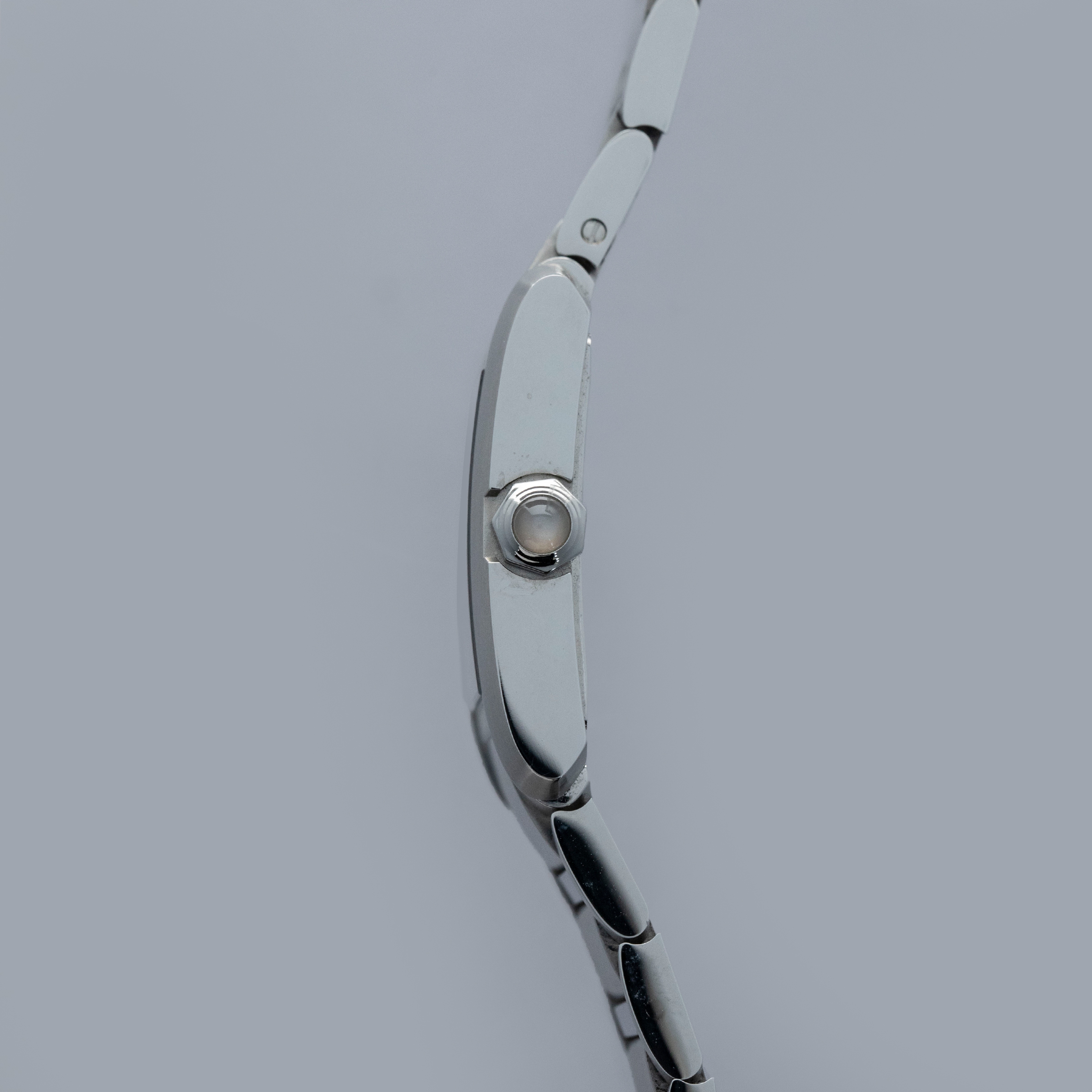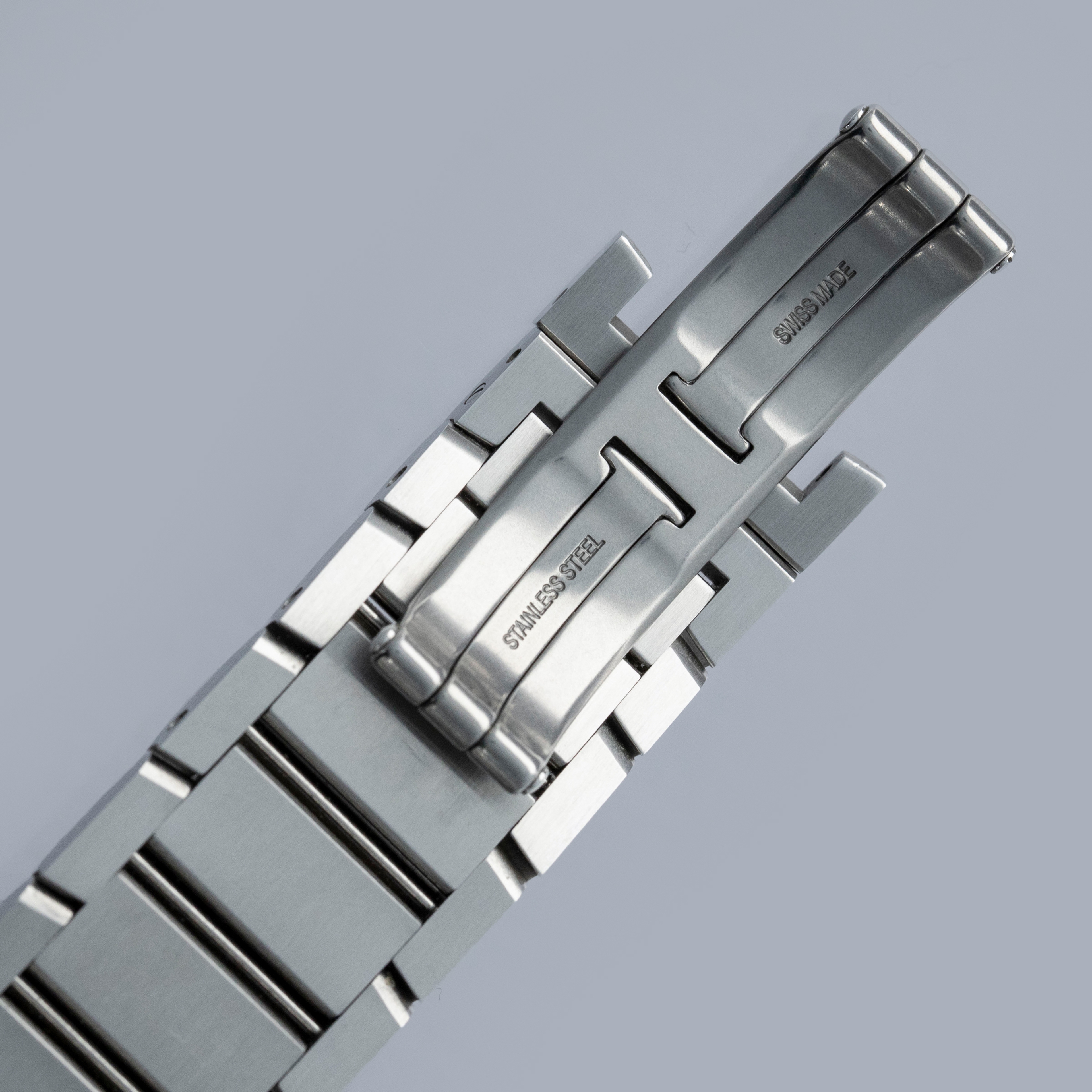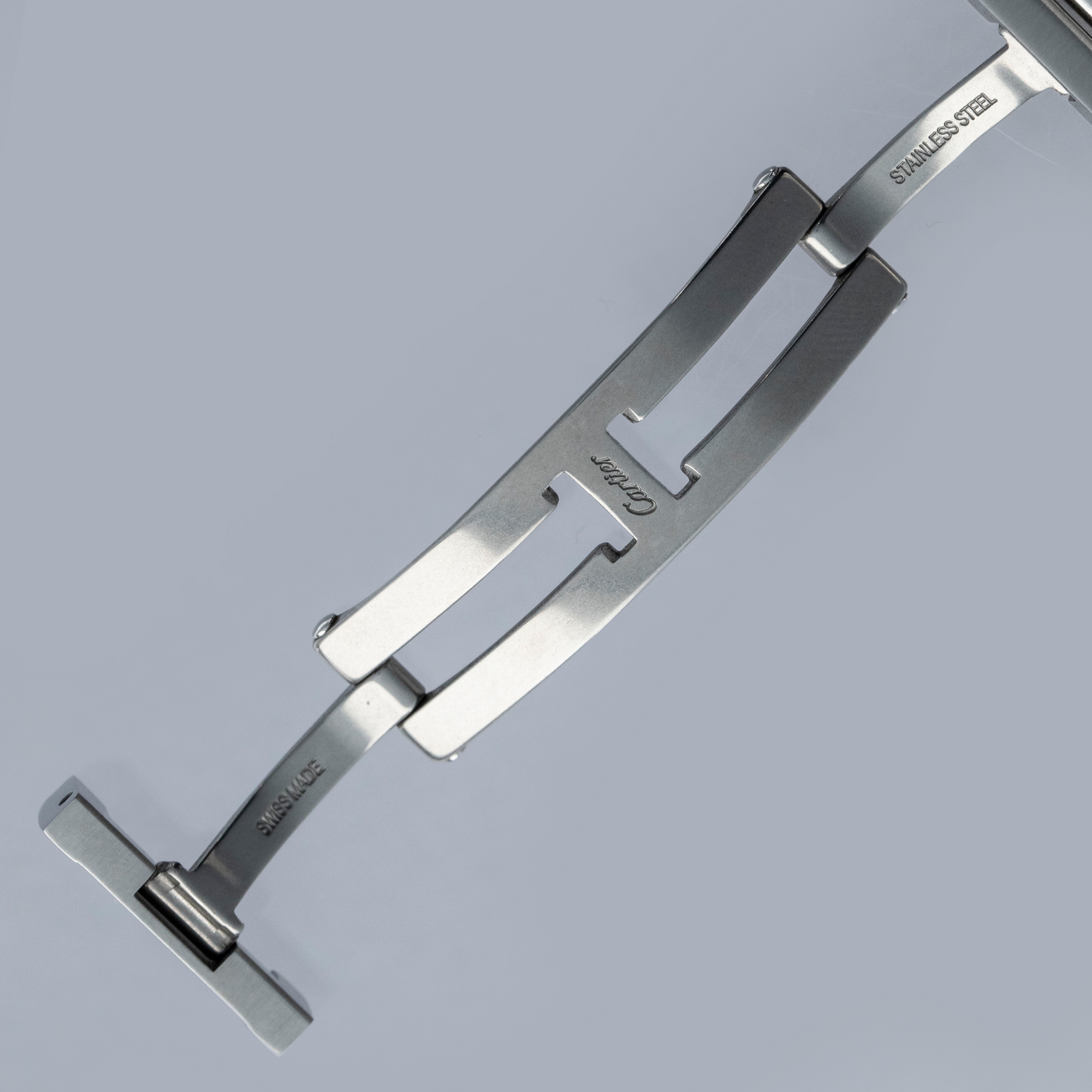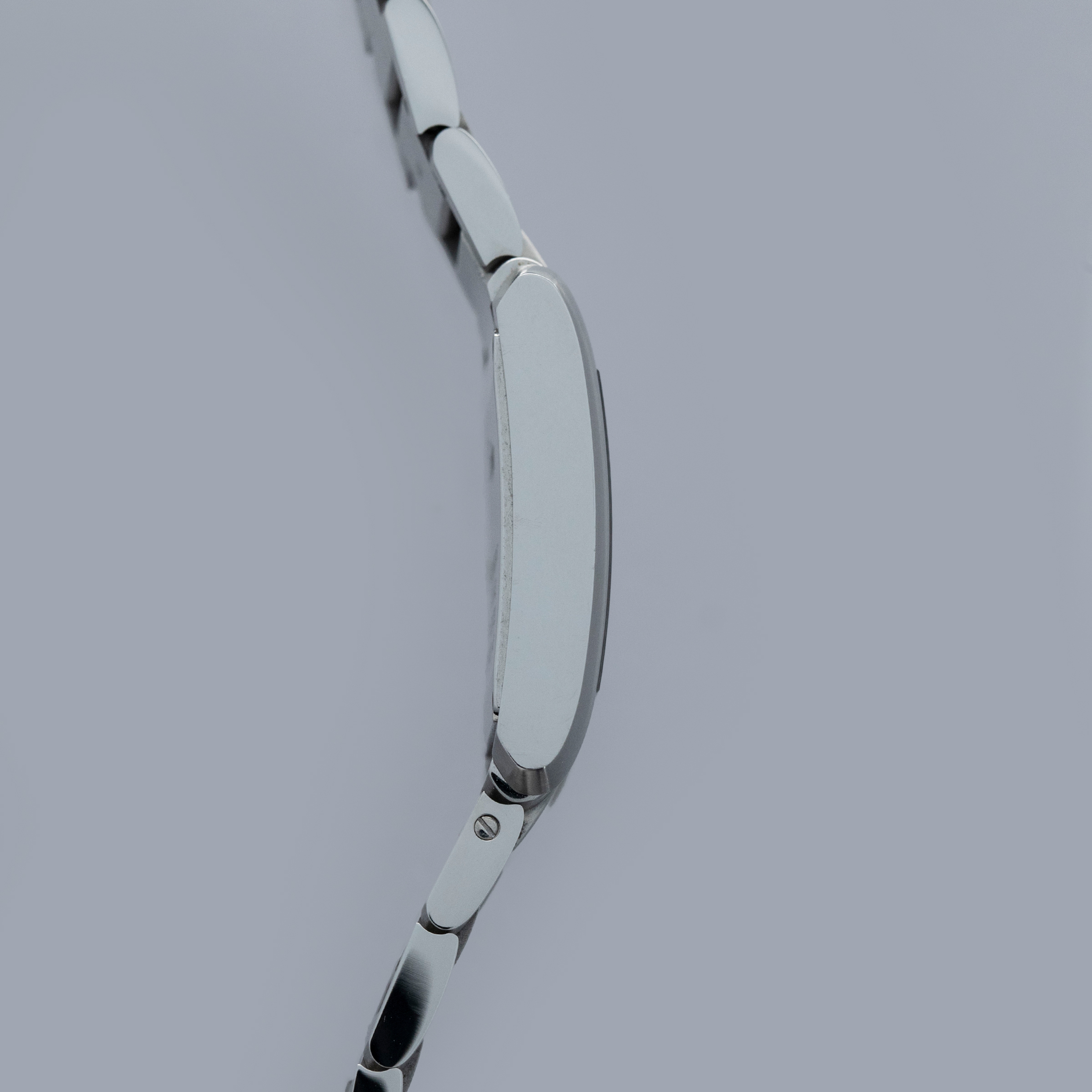 Offered as part of Cartier’s family of Tank models, the Tank Francaise debuted in 1996 as a modern take on the timeless classic, with its angular design and integrated bracelet. Offered here we have the Tank Francaise MM ref. WSAT0086 in stainless steel. Made as a limited edition variant exclusively for the Japanese market, this watch epitomizes elegance and sophistication, as per Cartier’s modus operandi. Boasting a unique design through its silver on silver monochromatic display, the Francaise’ bright display is unique and stylish. Boasting an entirely brushed construction, this example’s case and bracelet contrast the bright dial and give the watch a rather unique look on the wrist. Fitted with a moonstone cabochon in its winding crown in place of Cartier’s typical sapphire cabochon, the WSTA0086 takes Cartier’s distinctive allure and modifies it intriguingly.