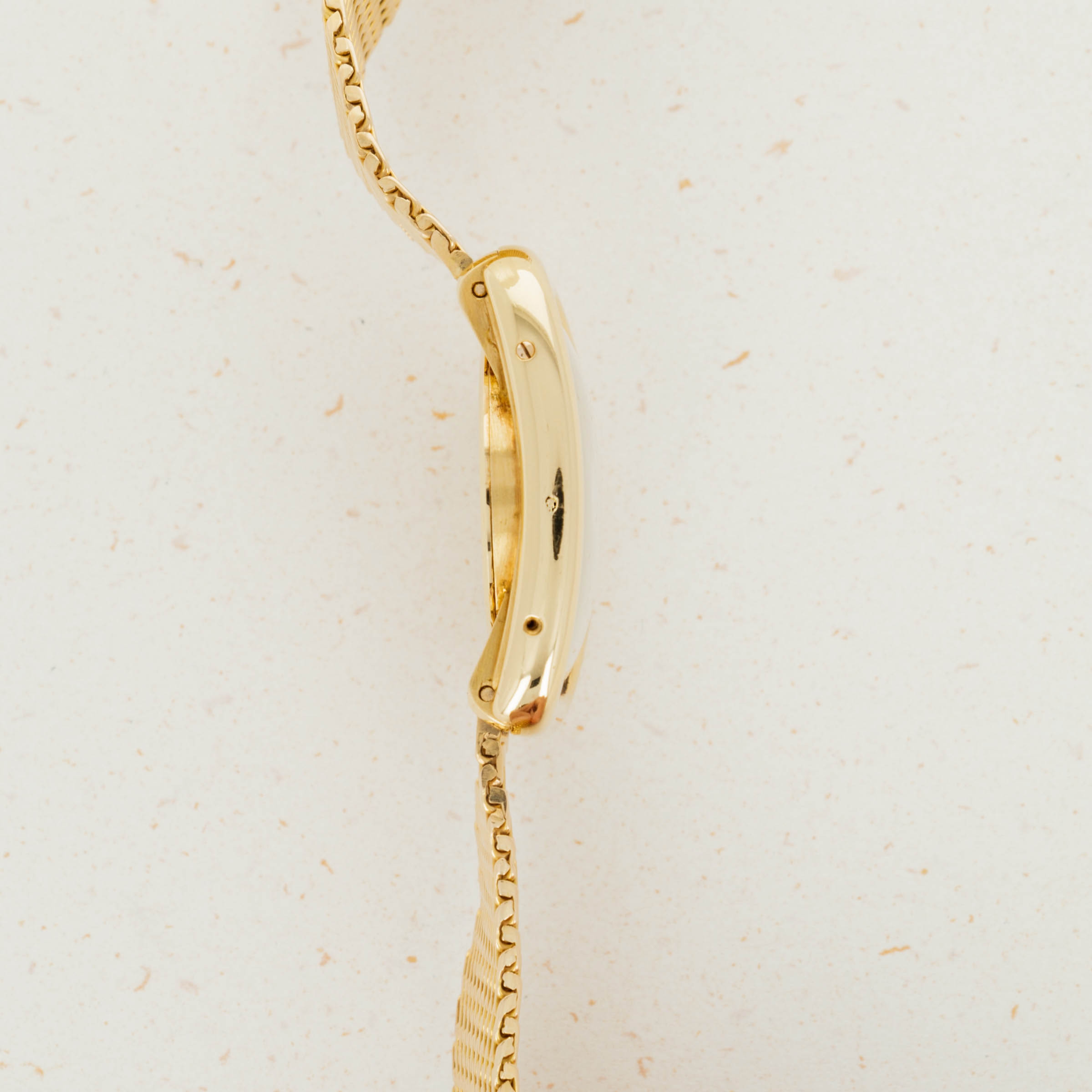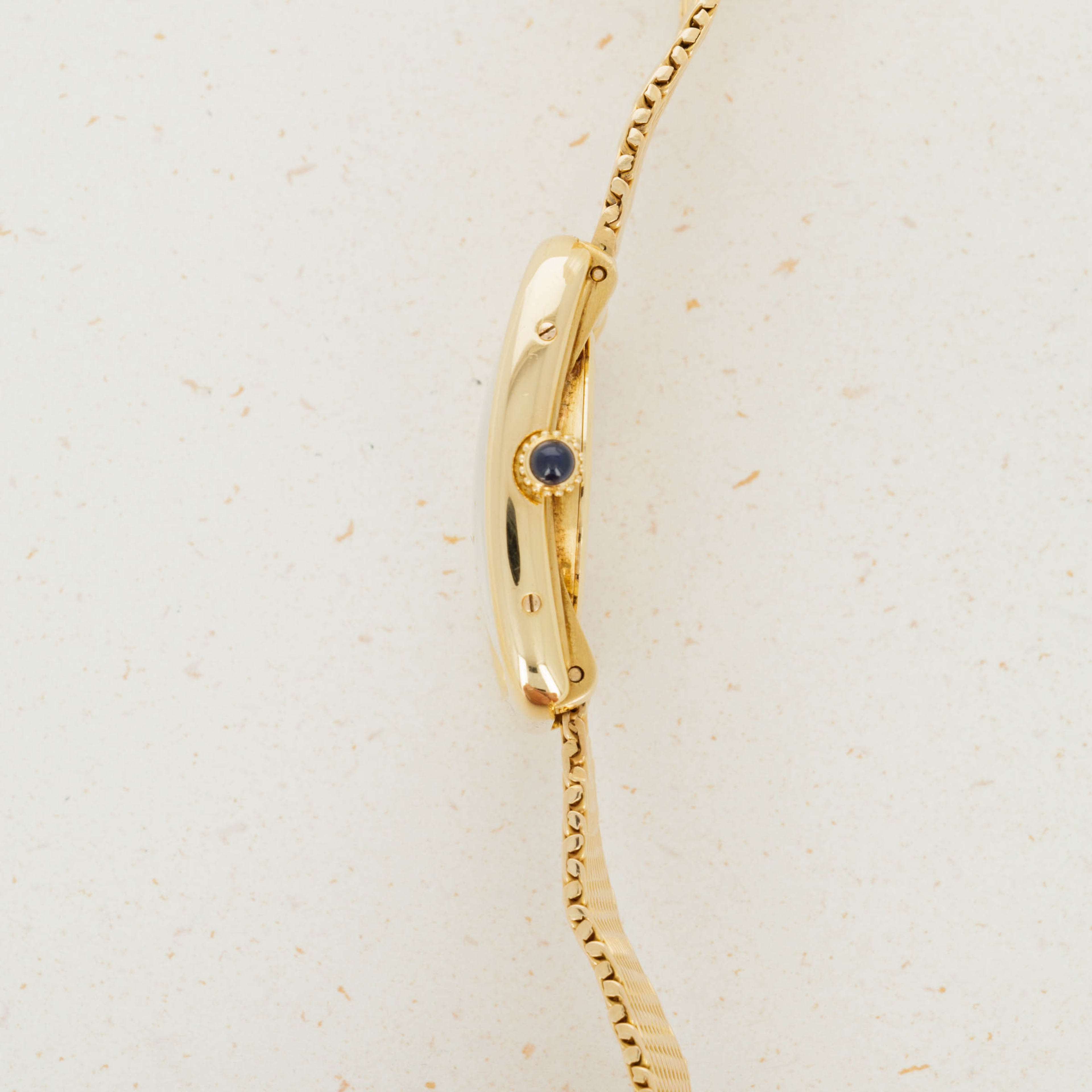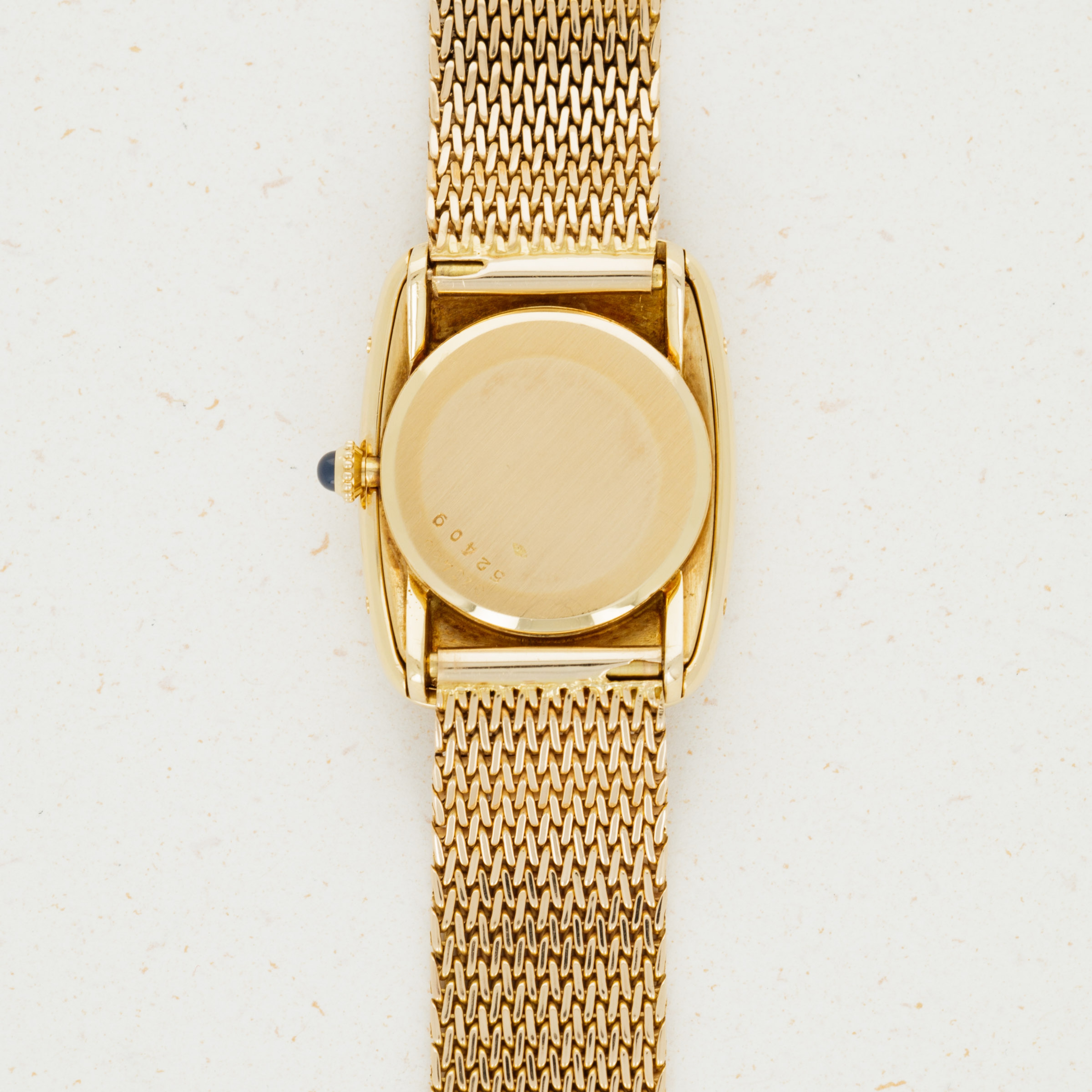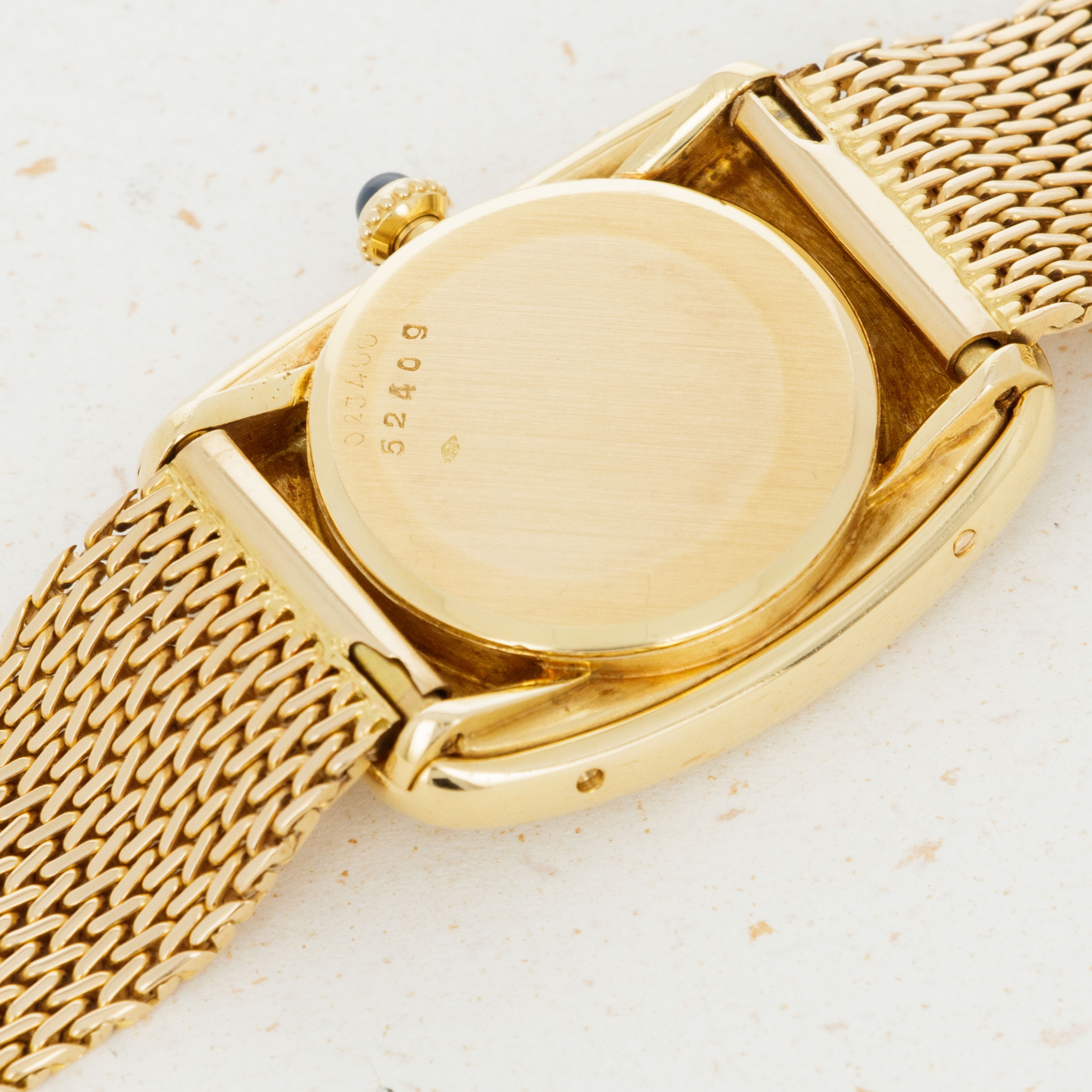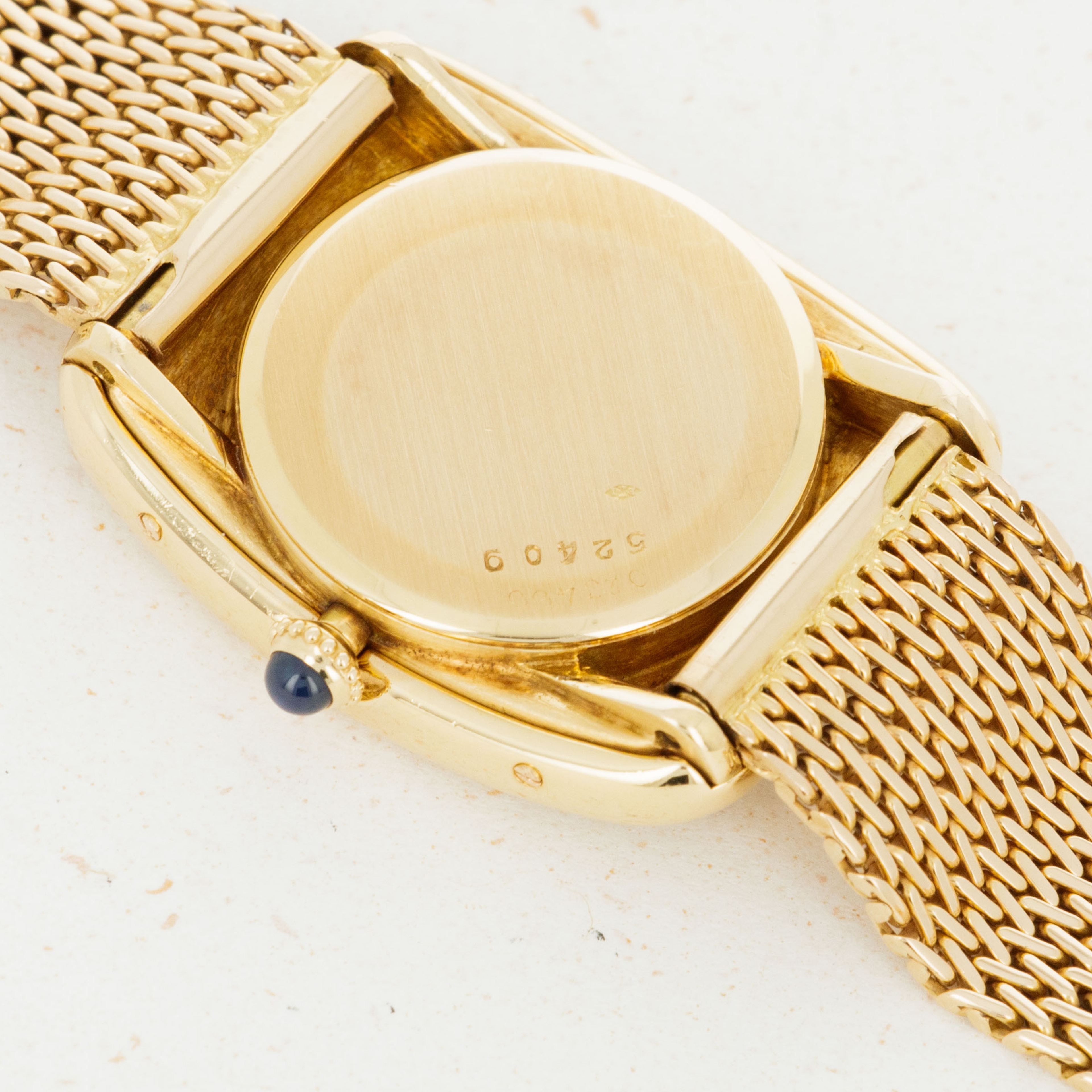 Overall condition is very good to excellent. Original dial is in mint condition. Light surface abrasions present on the case. Case serial and hallmarks are clearly visible, and serial number is stamped on caseback and mid case in multiple places. 18k bracelet is unsigned, but bears French hallmarks and appears to be original to the watch. Please note: One of the four case screws (on the 9 o'clock side) of the case is missing.