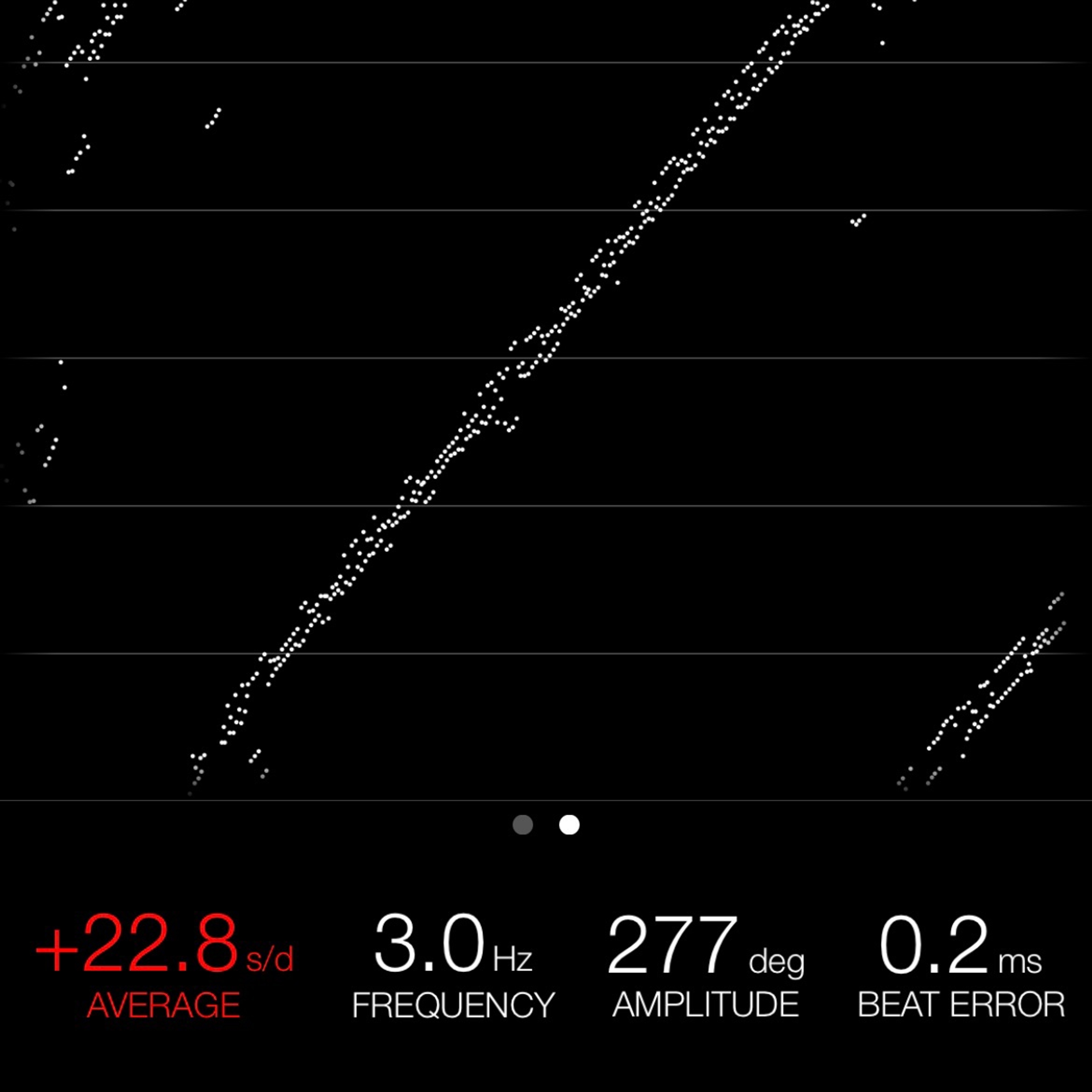 This reading was taken (crown down) with a ONEOF Accuracy Boutique Edition timing machine at time of cataloging. It is provided as a courtesy only, and shall not be construed as a warranty or guarantee of any kind. Please refer to our terms and conditions of sale for more information.