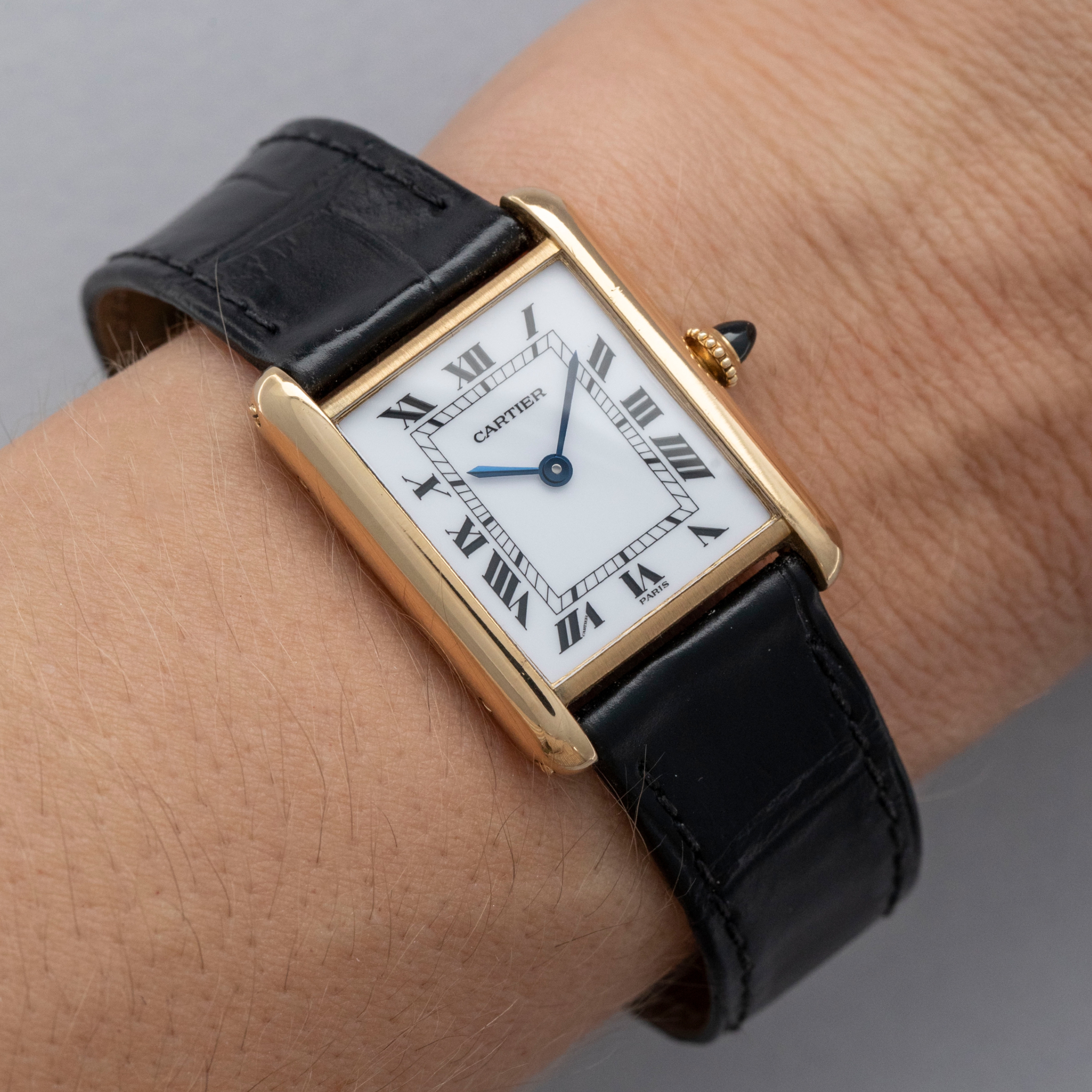 Another element of the Tank Louis Cartier's iconic design; its svelte case dimensions. This means it is an excellent unisex option for men looking for a classical timepiece, and women looking for something that will fill their wrists perfectly.