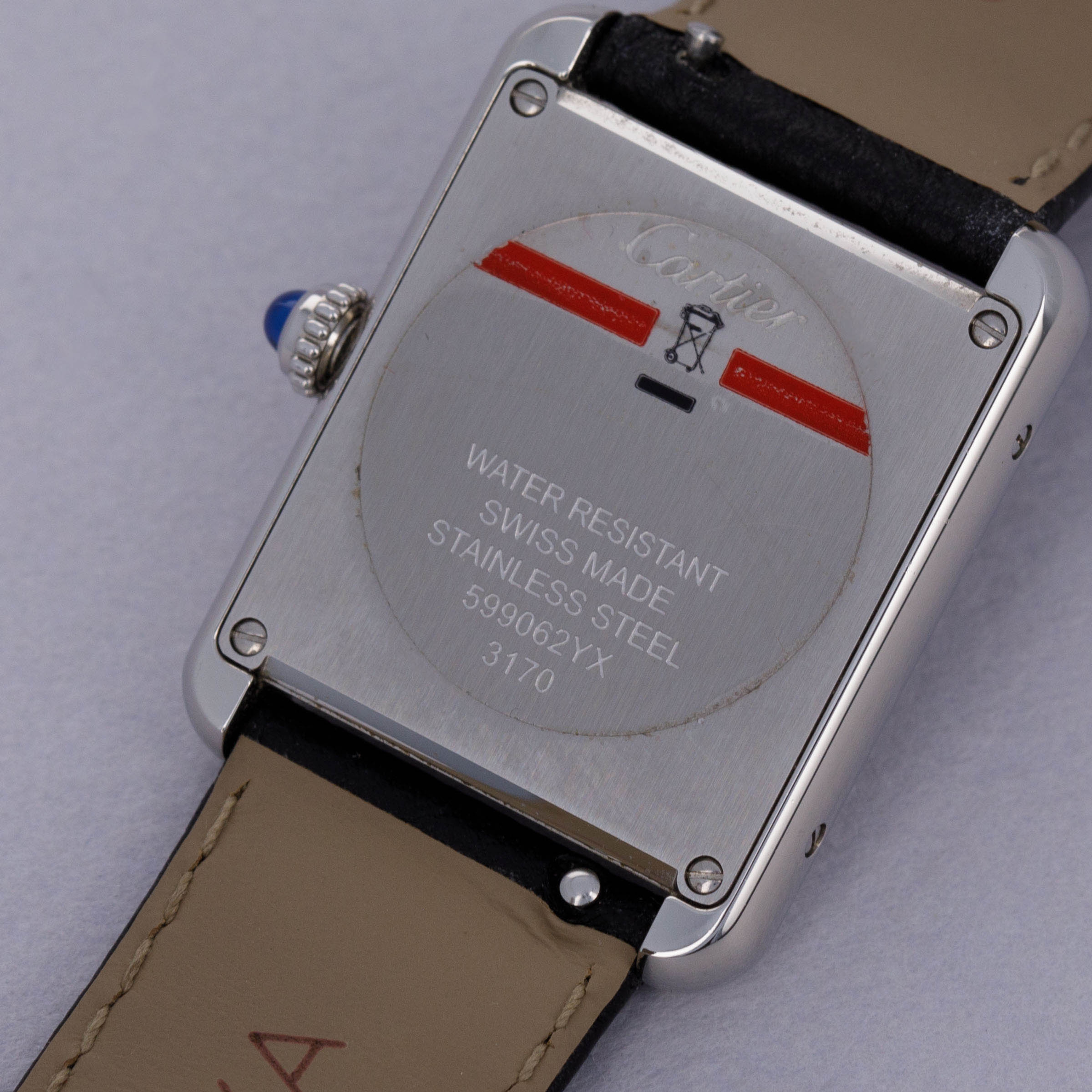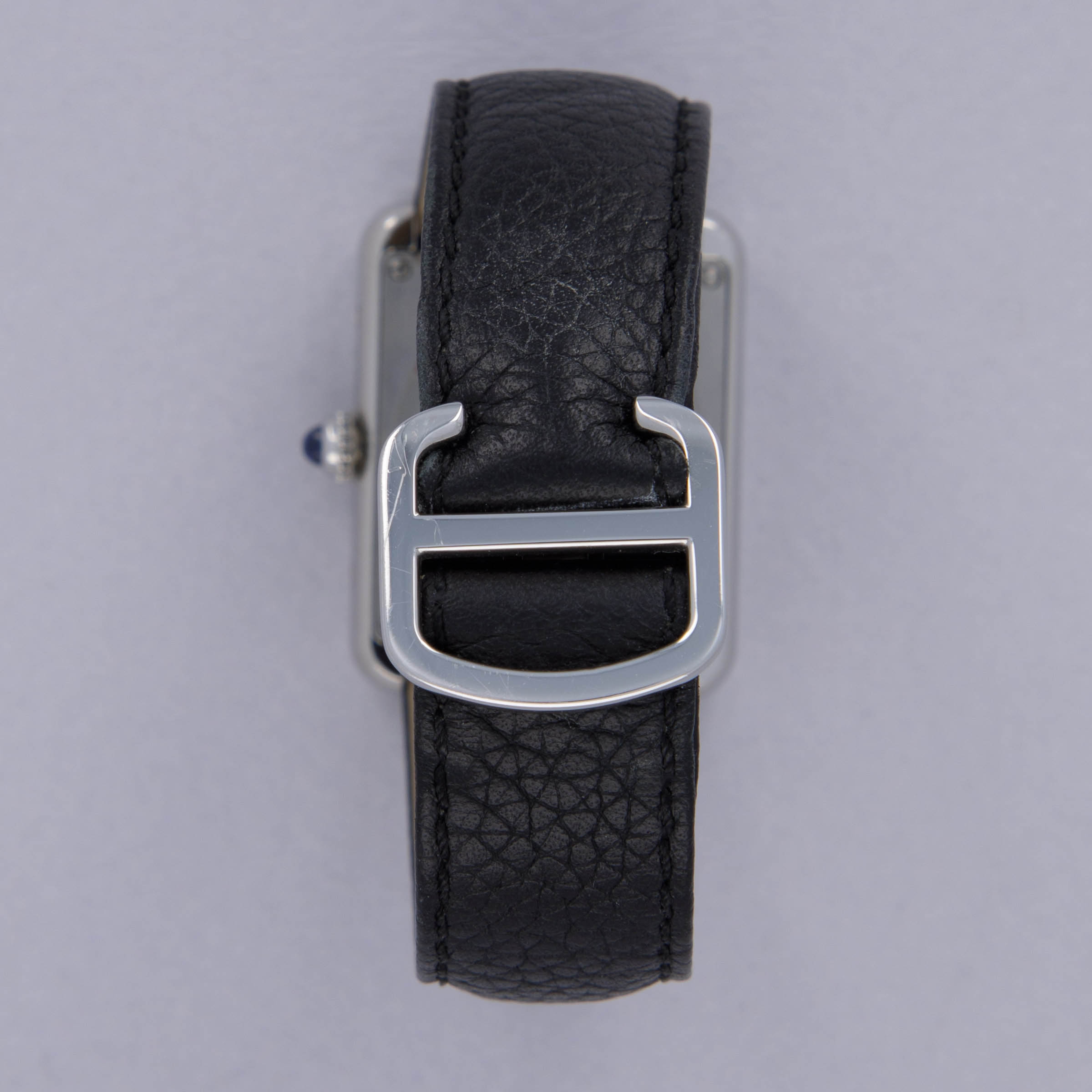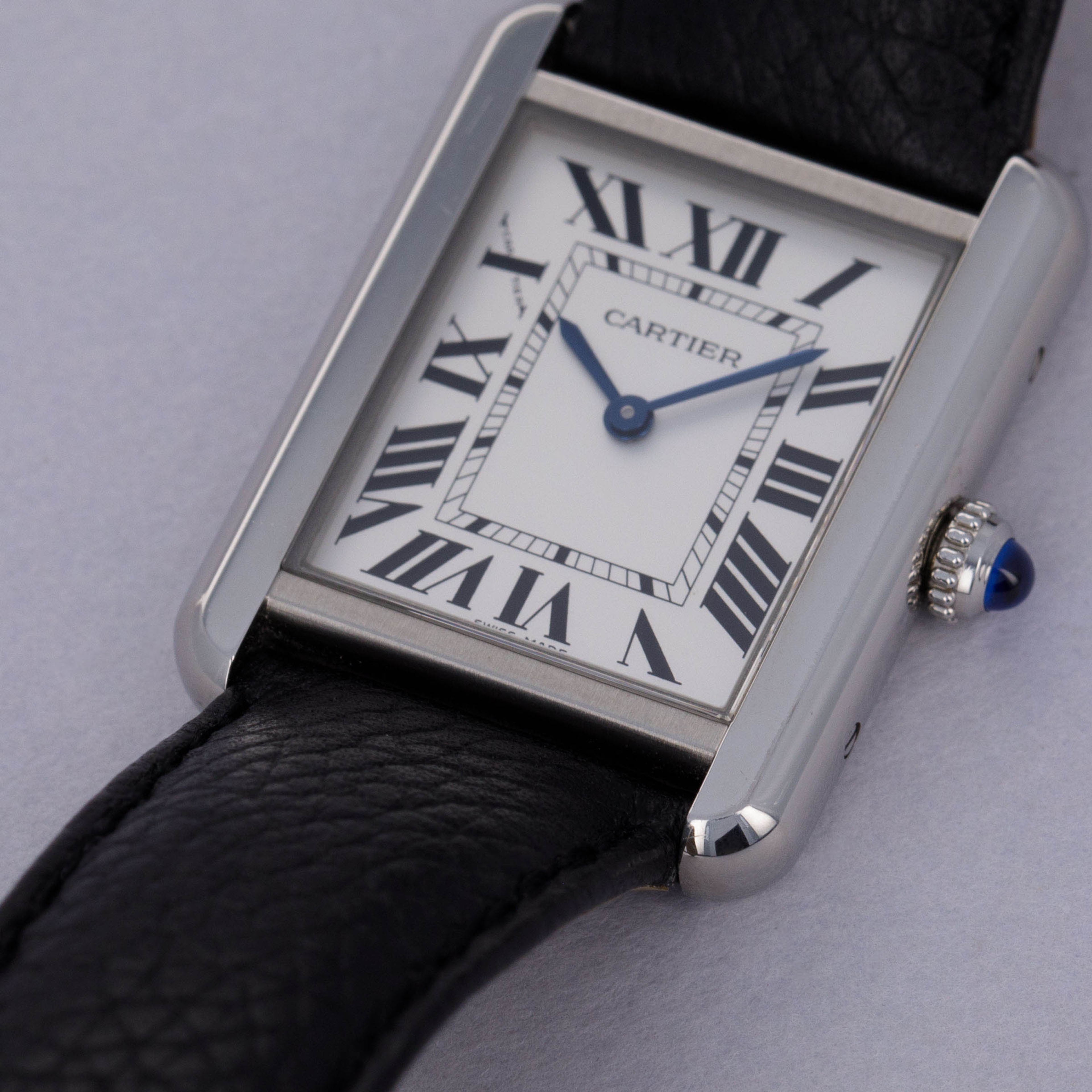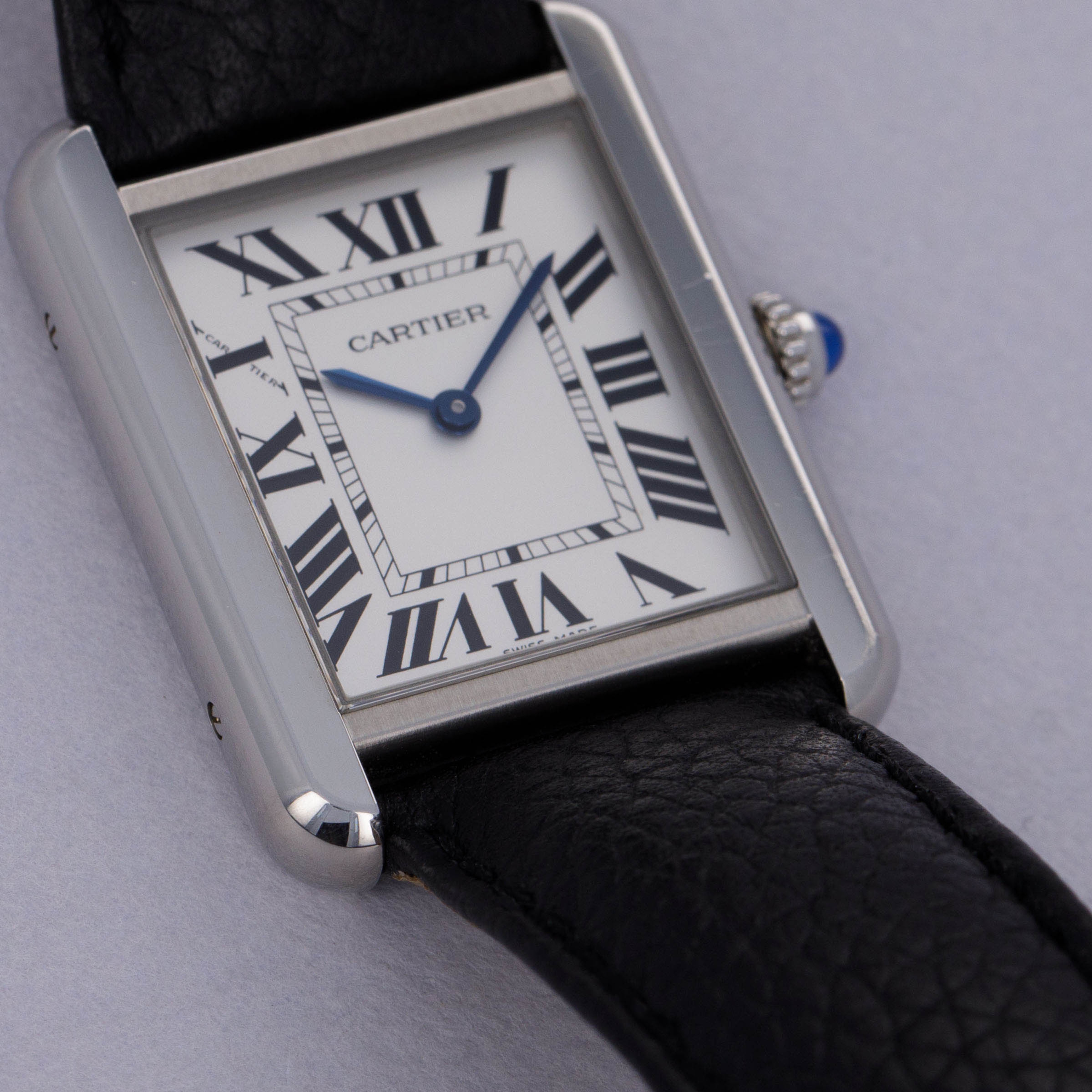 An intelligent expansion of the Tank's iconic design, the Tank Solo democratizes the Tank thanks to its steel construction and quartz movement in just the same way that the Tank Must de Cartier did during the 1980s and beyond.