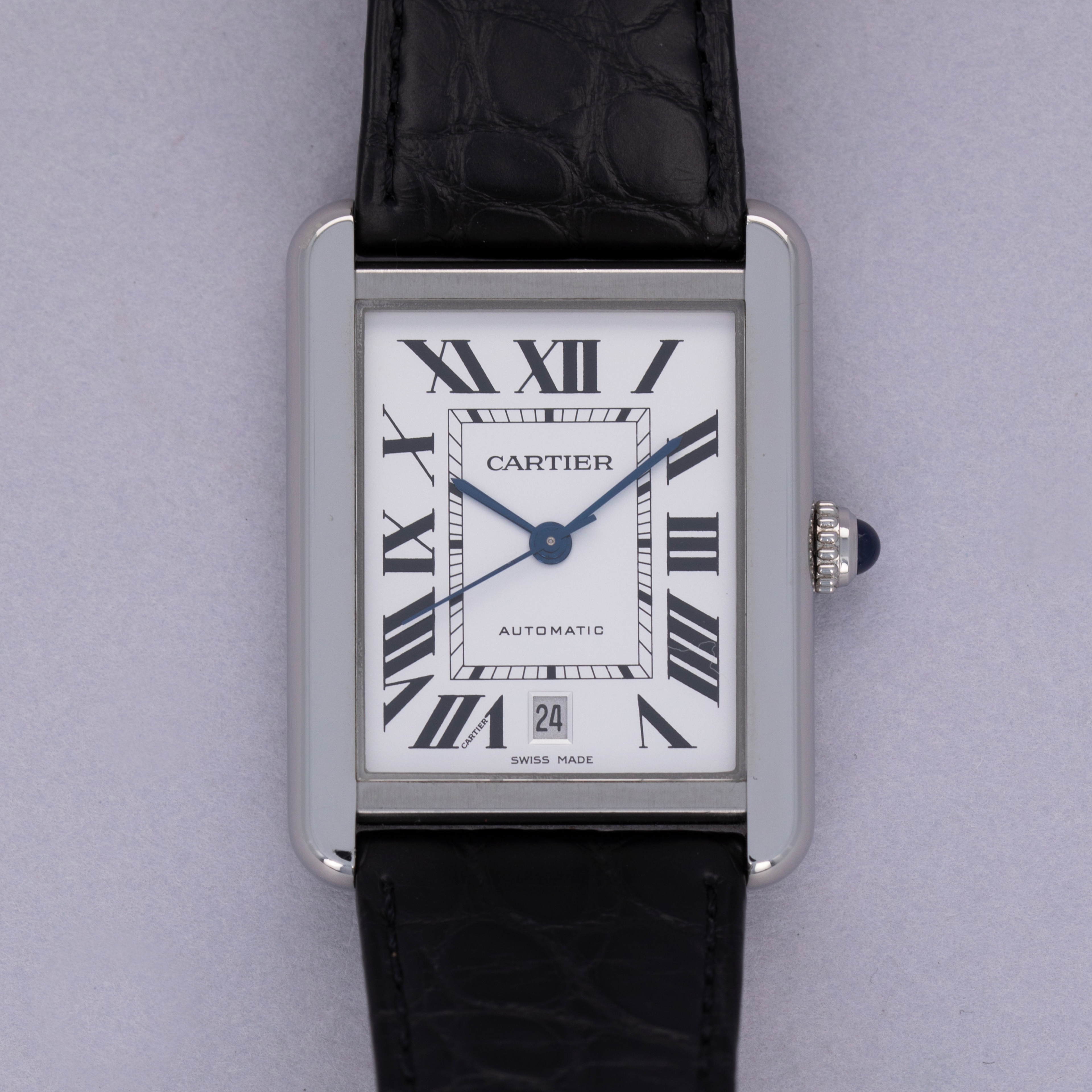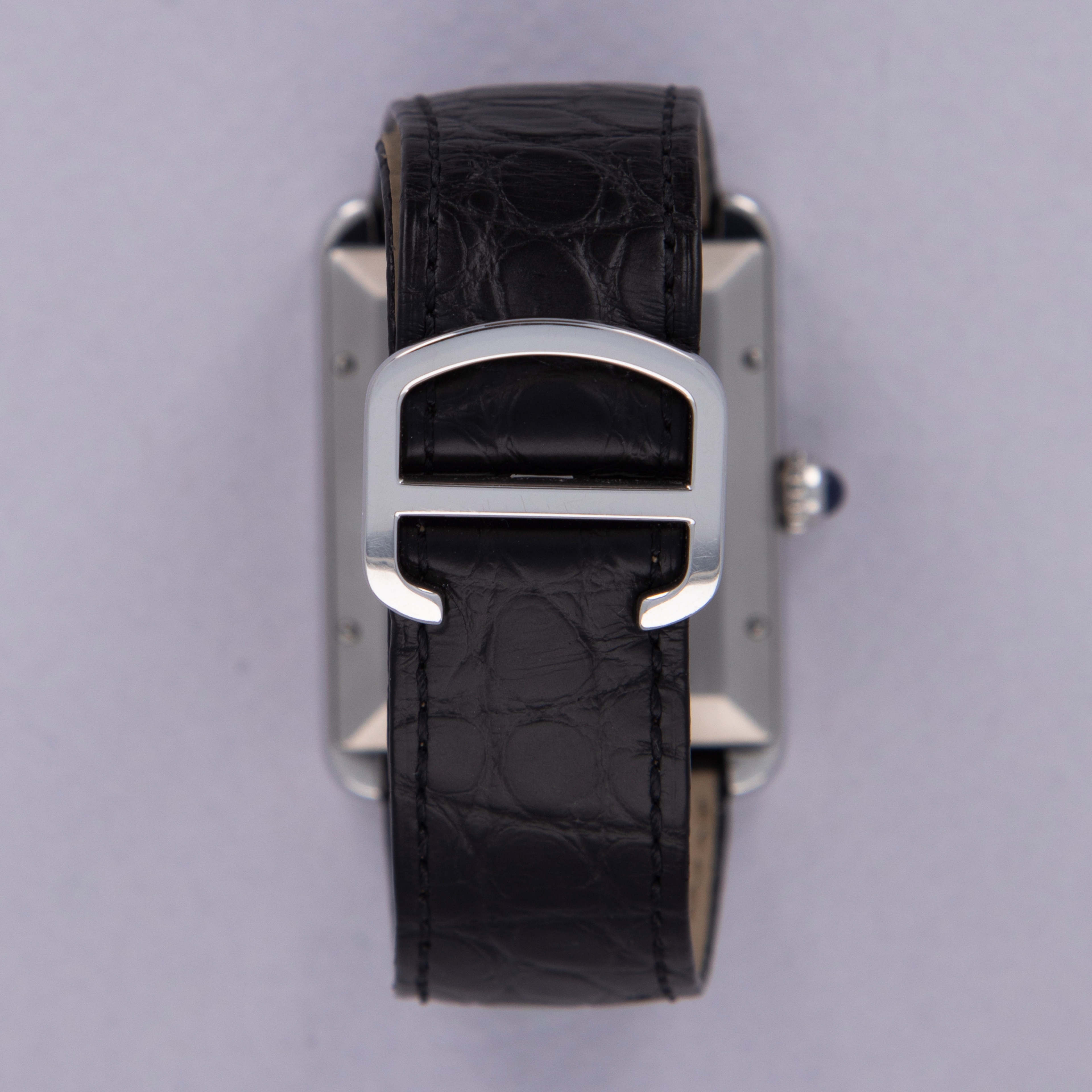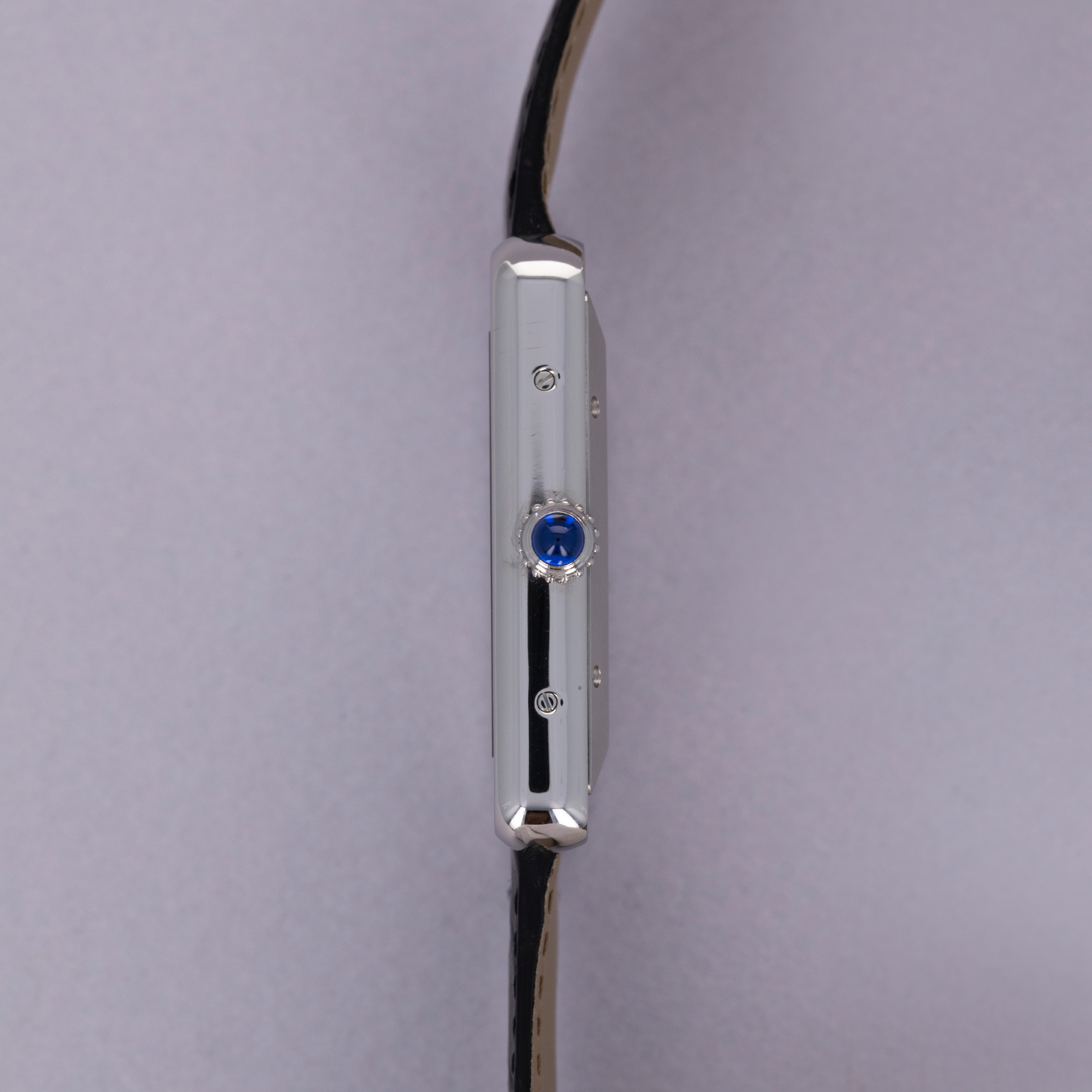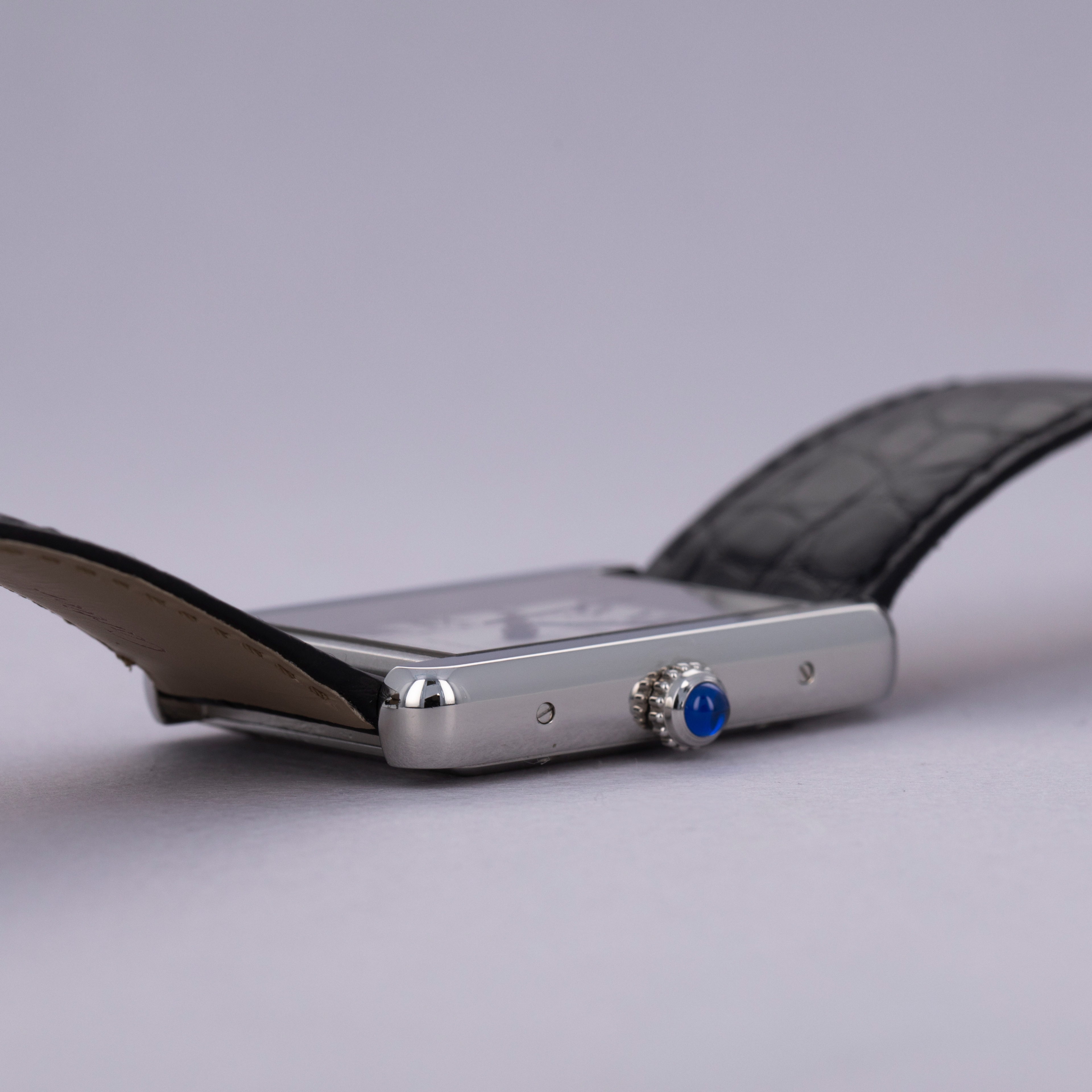 Maintaining the Tank's iconic silhouette, the Tank Solo fits on the wrist with a familiar poise for Cartier collectors. Its rectangular profile and sapphire-capped cabochon fill the wrist just as they have for over a century now.