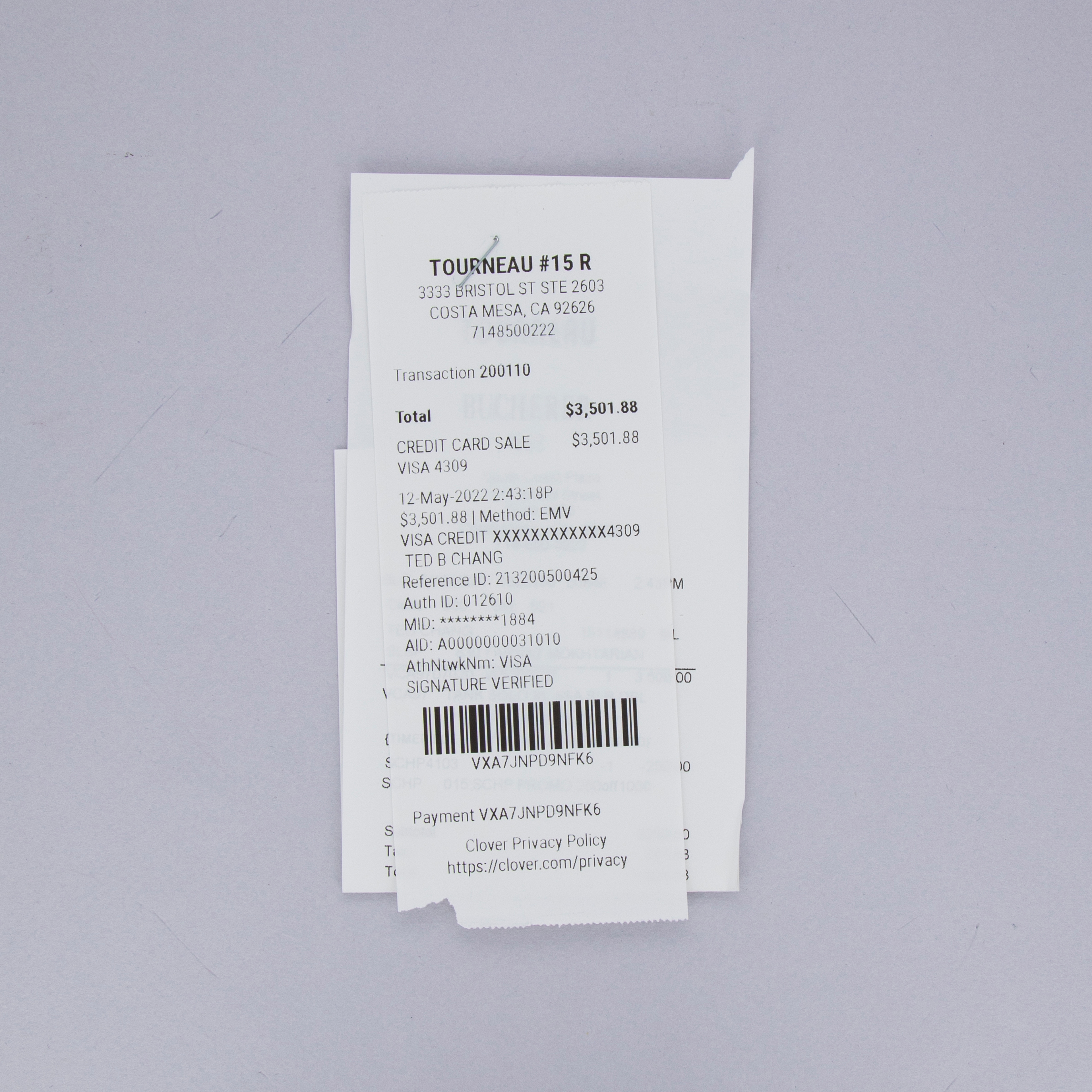 Tourneau 3rd Party Guarantee and receipts
