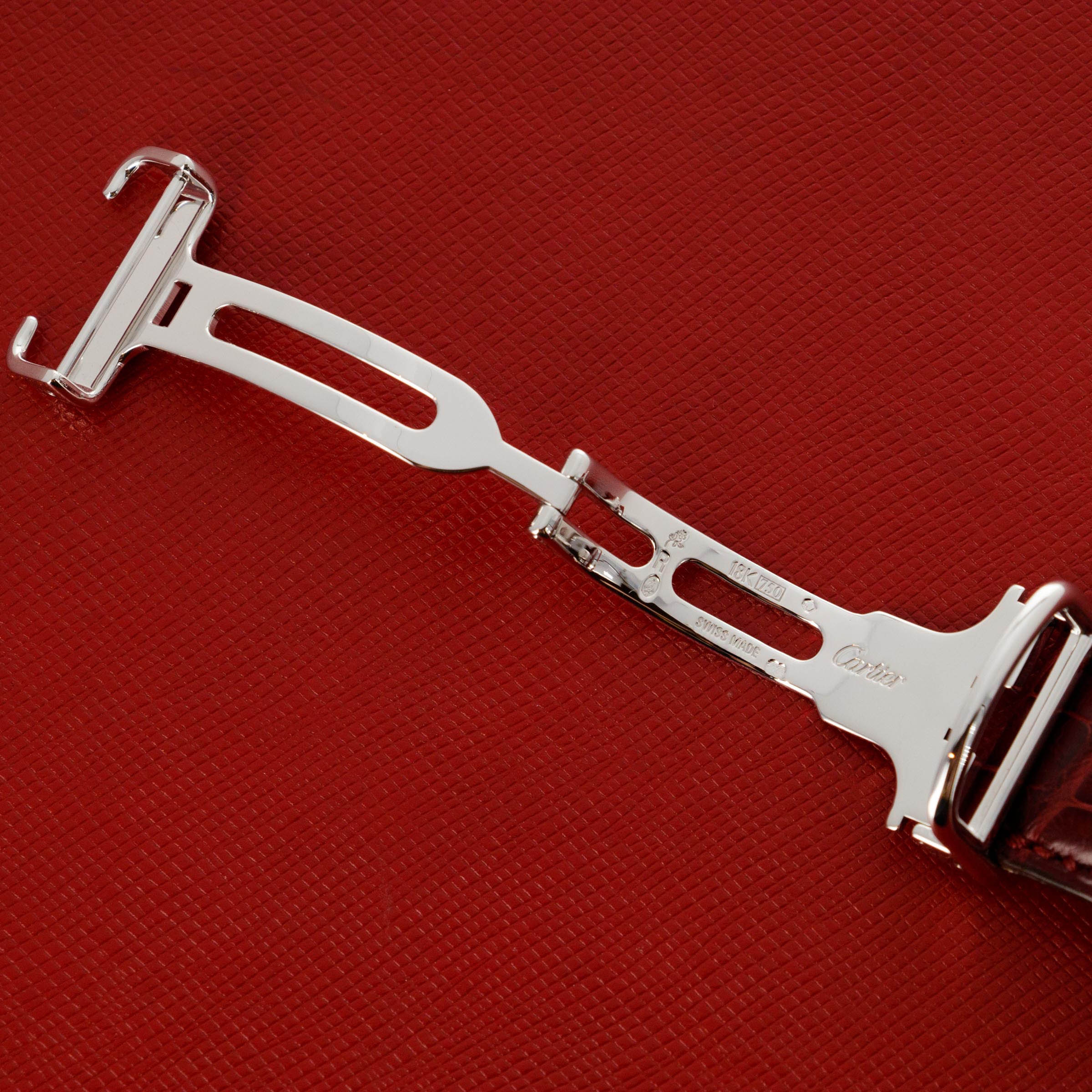 Featuring a clean white dial with blue inscriptions, small applied dot hour markers and one oversized Roman numeral at 12 o'clock, the Monopoussoir's dial is rather distinctive when compared to Cartier's typical dial designs.