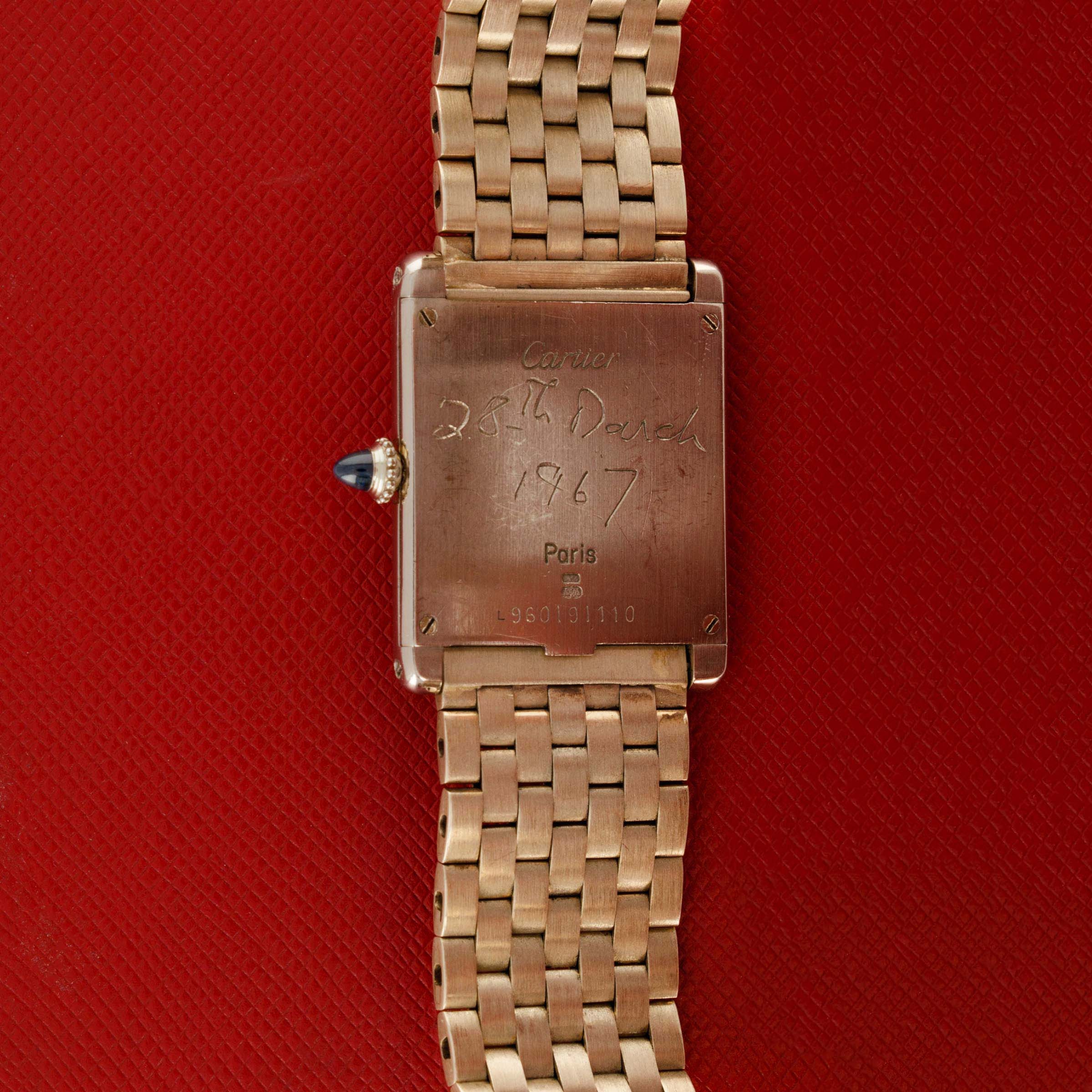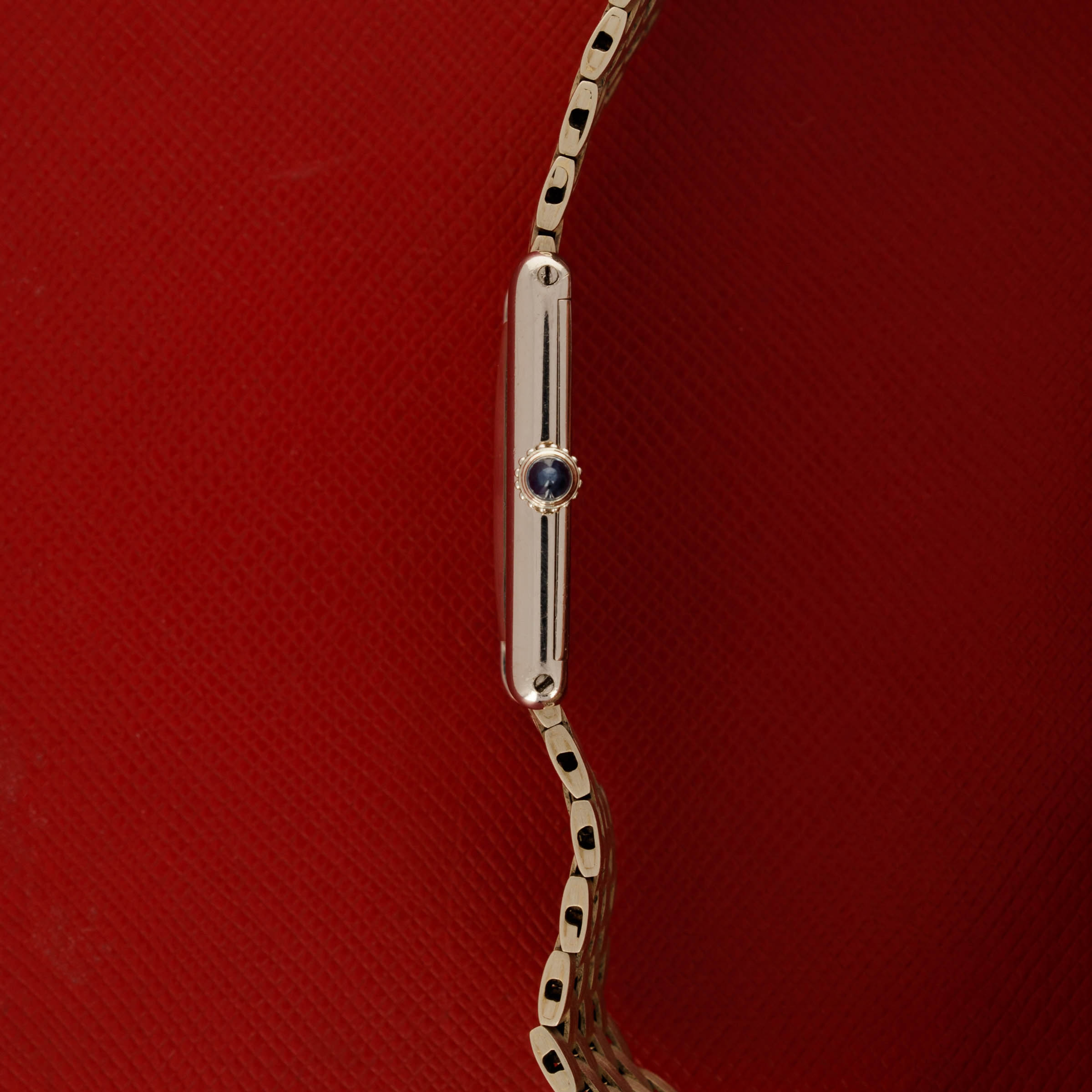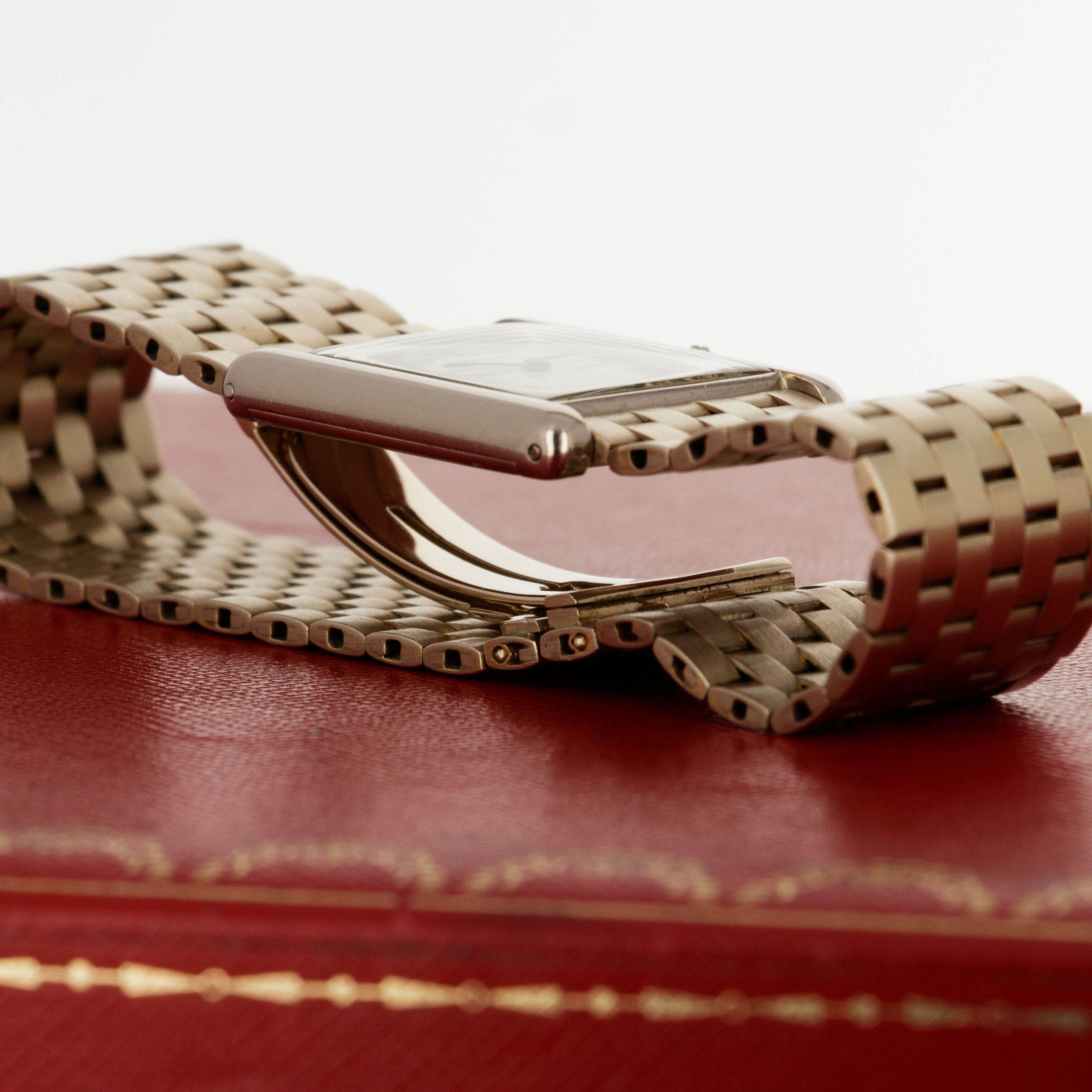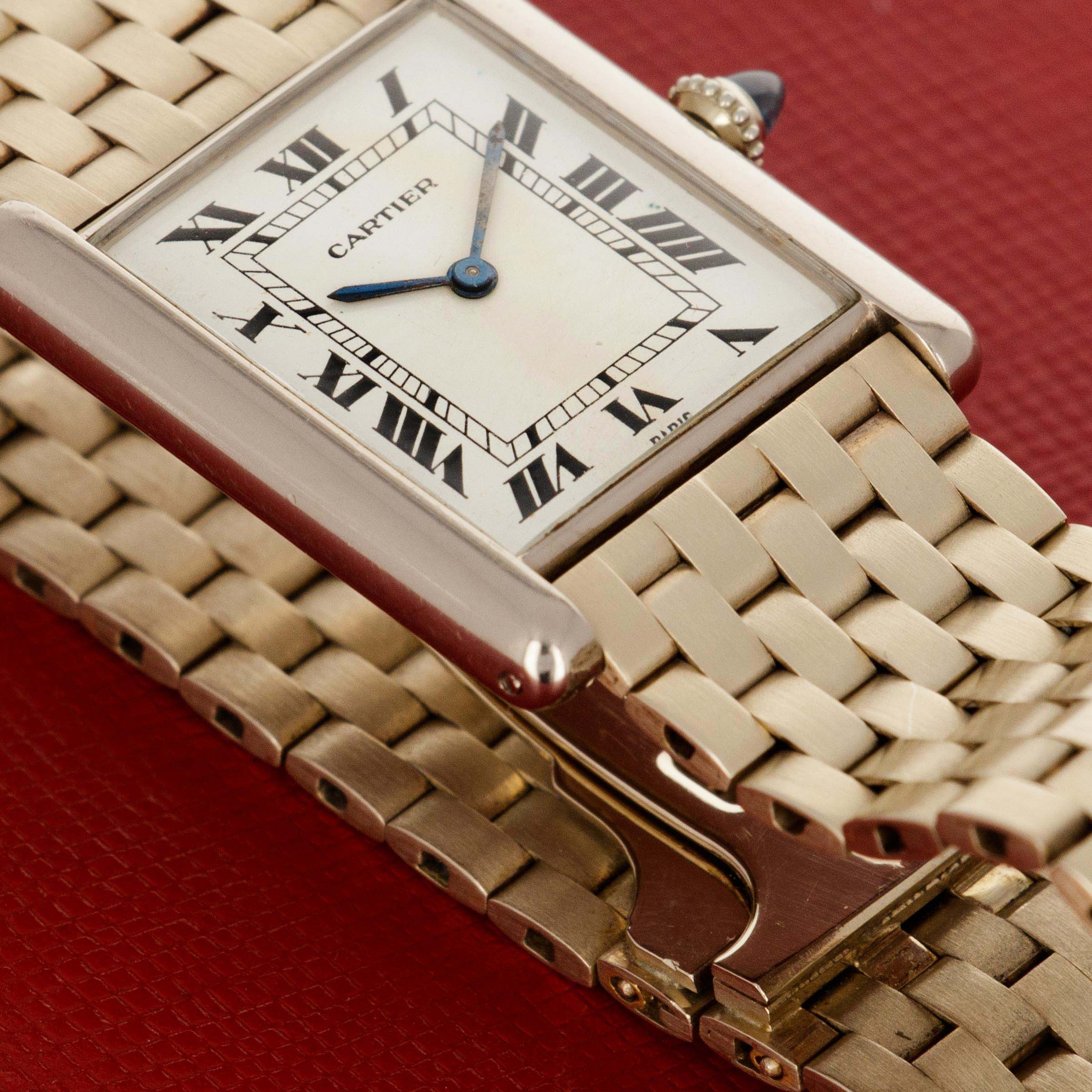A wonderfully luxurious timepiece thanks to its entirely white gold construction, this Tank Louis combines a rare bracelet with a unique caseback inscription to create a piece of true historical treasure.