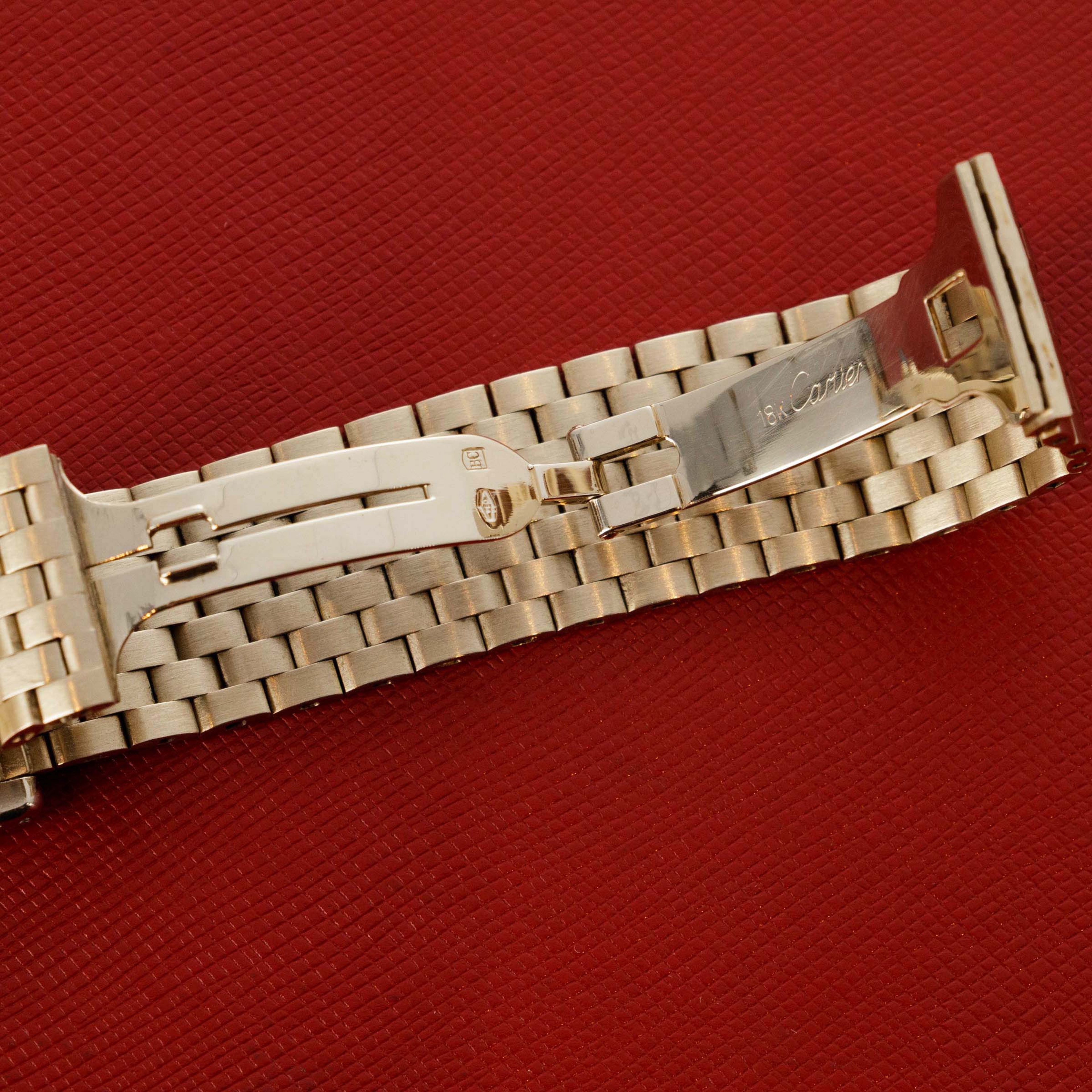 Released in 1917, the Cartier Tank was designed by Louis Cartier after he was inspired by the shape of the Renault tanks he saw on the Western Front during WWI. Perhaps one of the most recognizable pieces of horological design to ever be created, the Tank’s rectangular shape, svelte proportions, and timeless aesthetic have enabled it to earn a top spot within the horological hall of fame. Amongst the plethora of models that belong to this iconic collection is perhaps the purest distillation of its design, the Tank Louis Cartier. True to the original, the Tank Louis Cartier features the same classical dial and rounded case sides called “brancards” that stretch to form its lugs as the watch Louis Cartier designed all those years ago, which spawned the now-legendary collection and all of its associated models such as the Tank Francaise, Tank Cintree and so on. Offered here we have an original 1970s example of the Tank Louis in 18kt white gold on an exceedingly rare 18kt white gold bracelet. Often these examples are on leather straps, with bracelets like this most often seen in 18kt yellow gold. With its monochromatic aesthetic resulting from the entirely white gold construction and white dial this example is an understated piece of pure luxury that few will get the opportunity to experience.