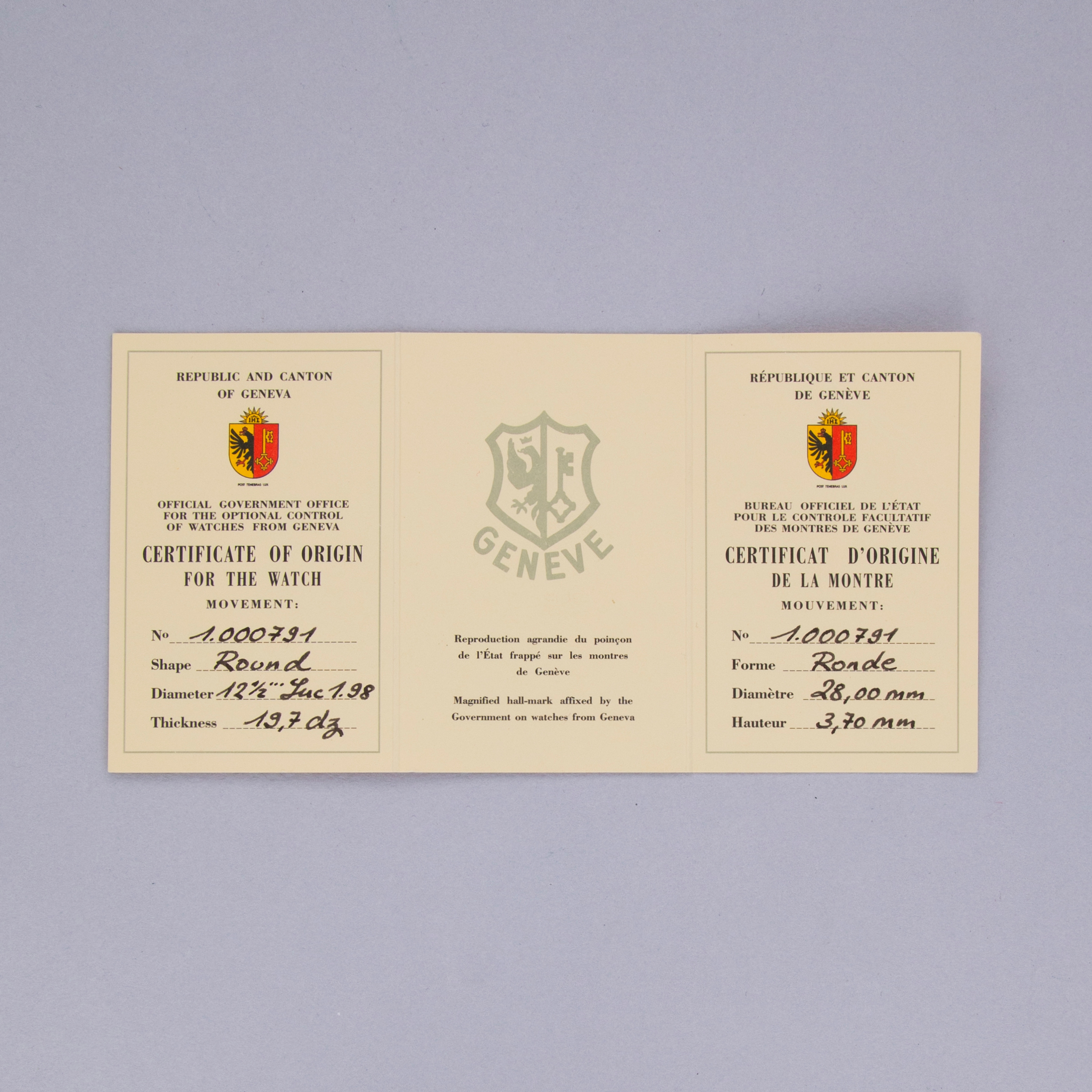 Watch is in excellent overall condition. Watch has been previously polished but engravings are all crisp and fully visible. Only minor surface wear evident on case. Watch comes with original guarantee papers and box, as well as additional service paperwork and a guarantee card issued by 1916 Co when watch was resold in 2022.