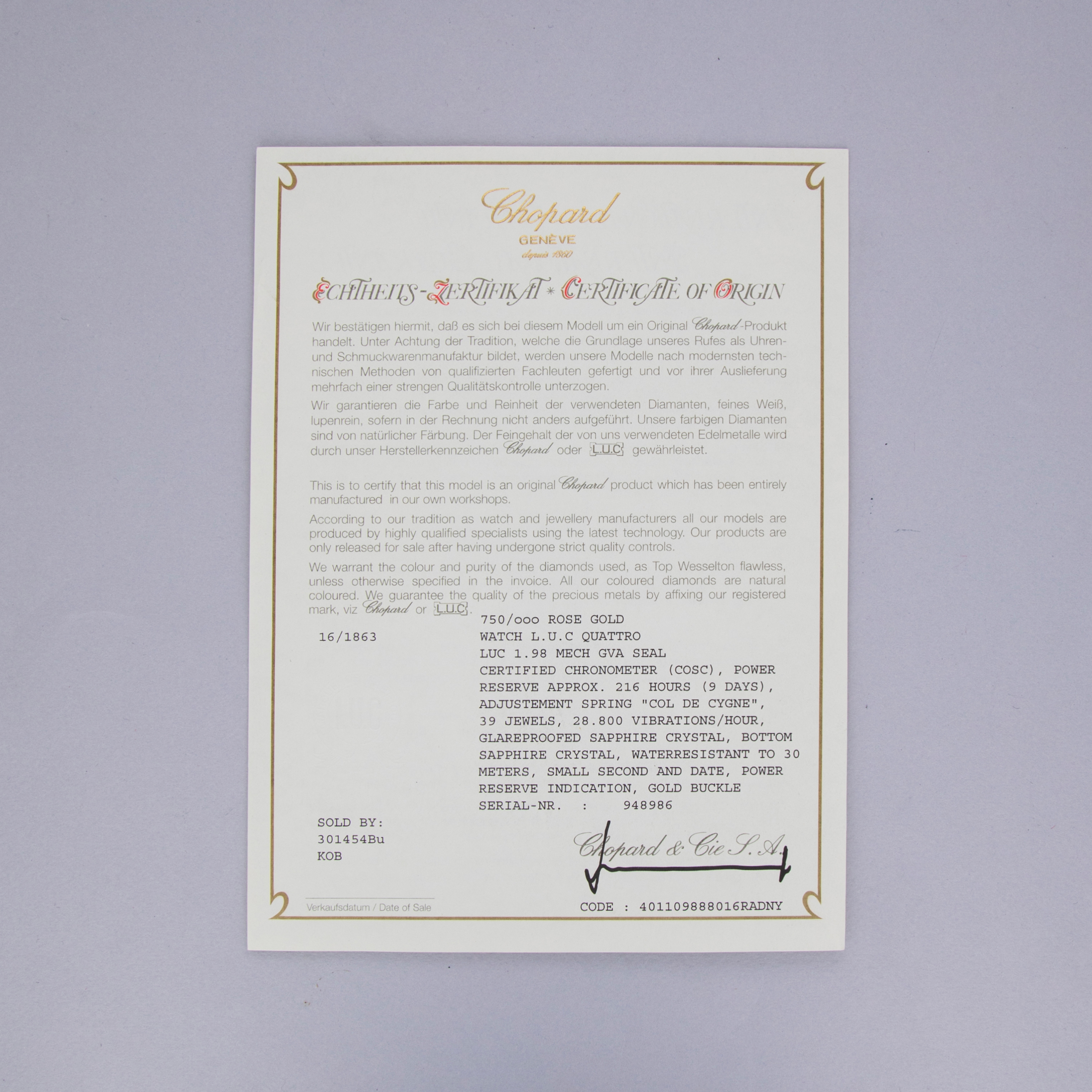 Chopard L.U.C Quattro 16/1863 Limited Edition 18k RG Box and Papers