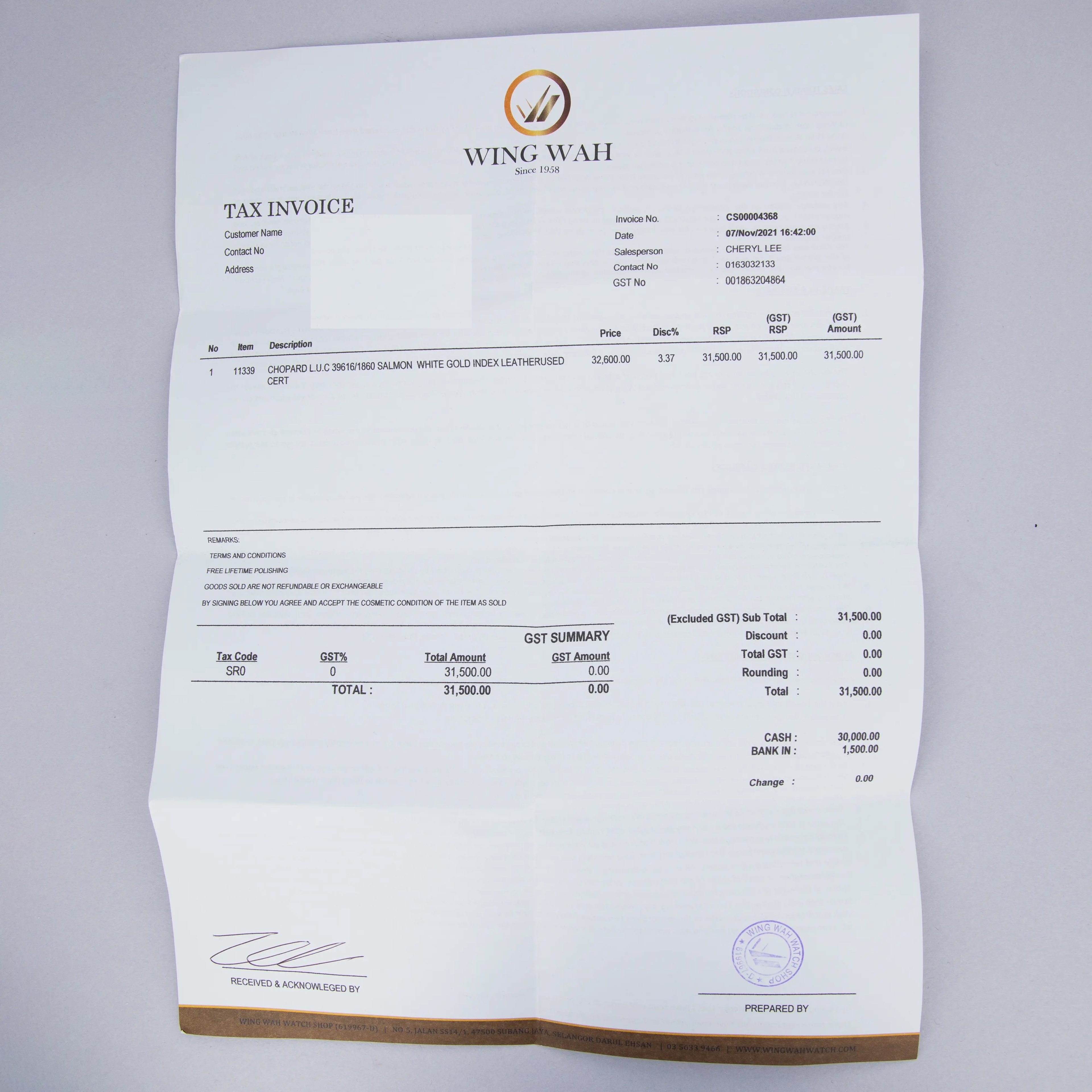 Original Guarantee and secondary purchase receipt